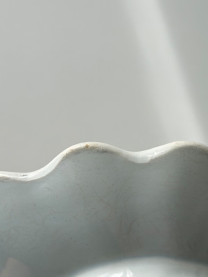 condition: シェルの端からラインが入っています。小さなチップや窯傷あり。古手の味わいのある1点です。