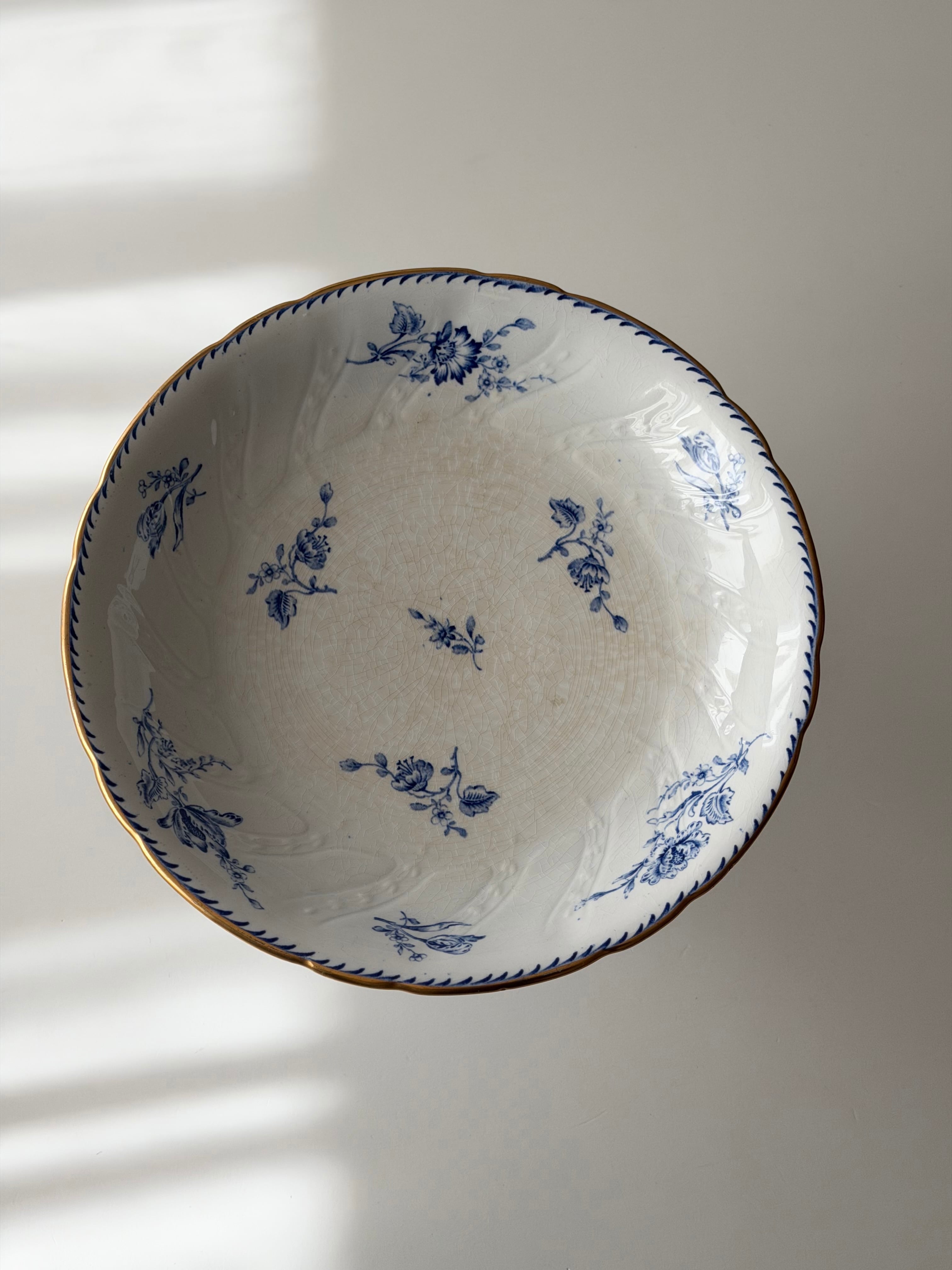 器の内側に散らされたブルーのブーケ柄が可愛らしいデザイン。