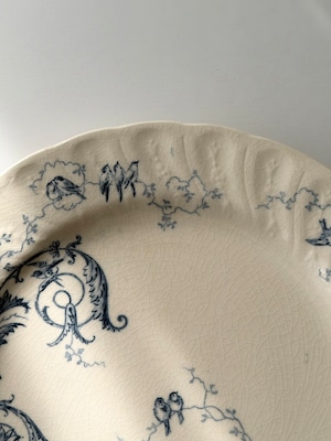 Gien ジアン / “RINCEAUX” blue 唐草と小鳥の平皿プレート φ24cm (b)