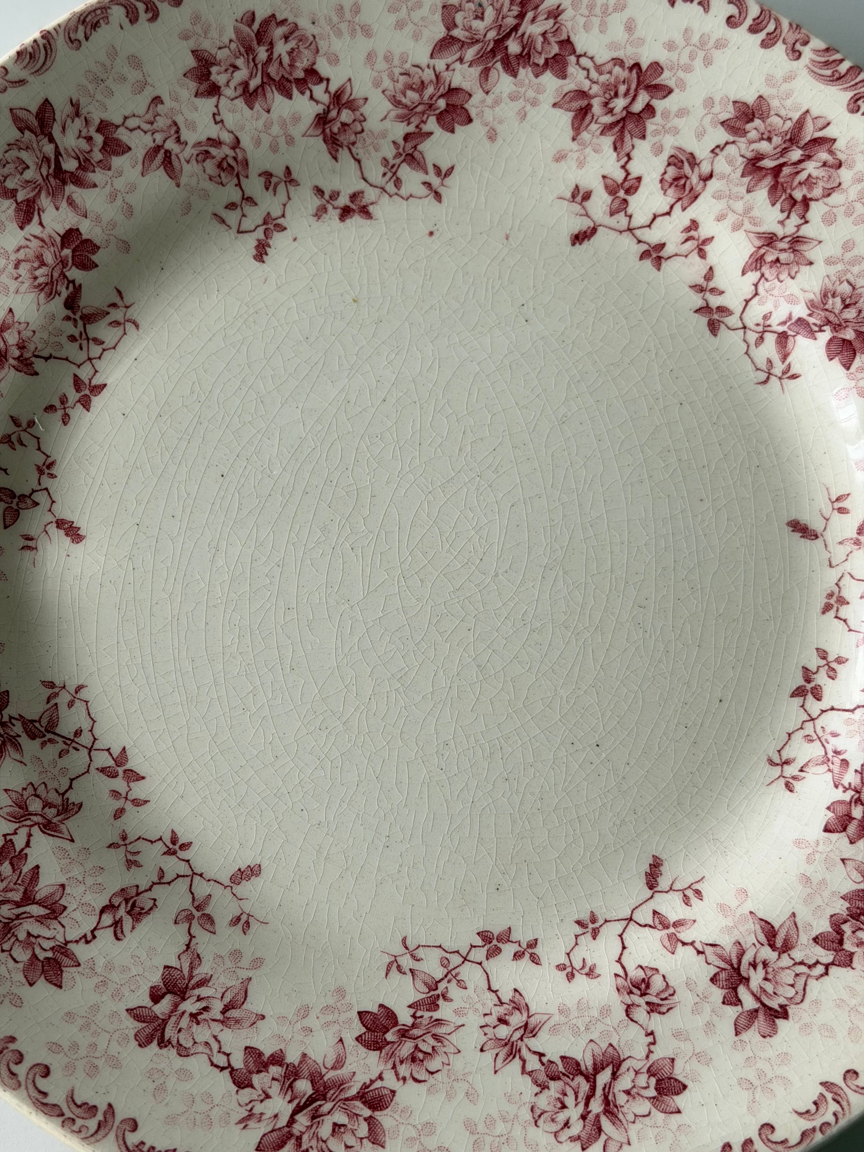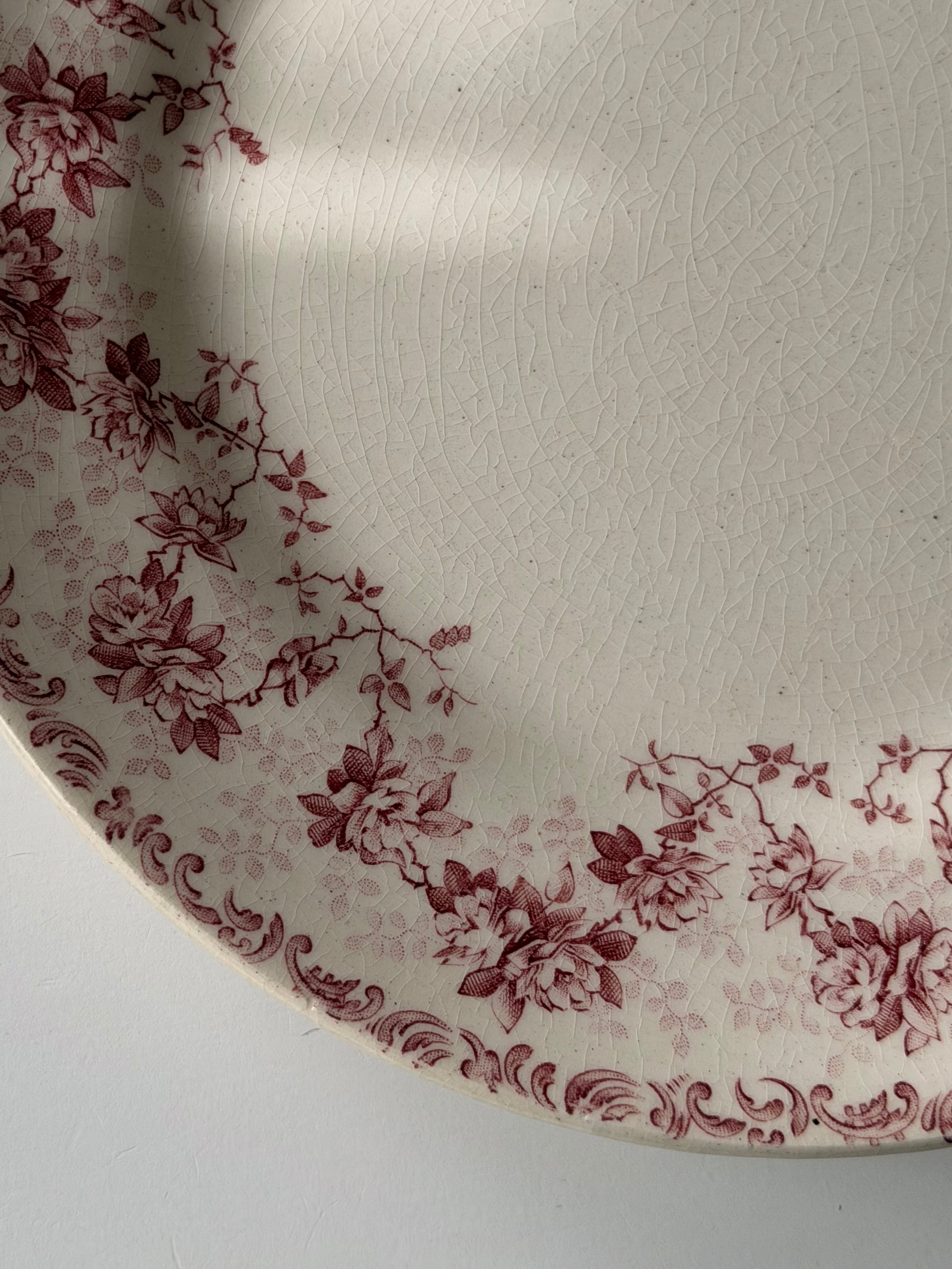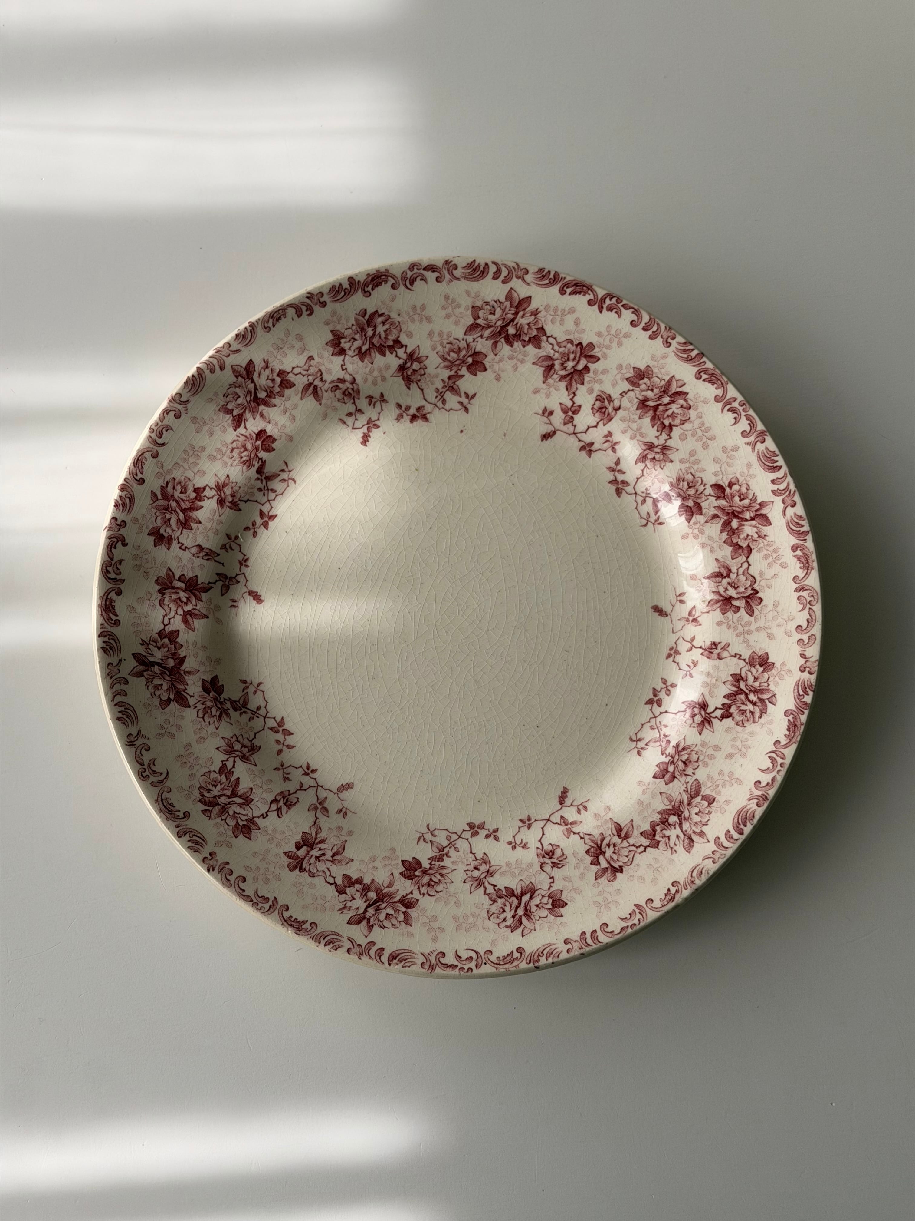 赤みがかったボルドー色で、リムのまわりいっぱいに小花が連なった、