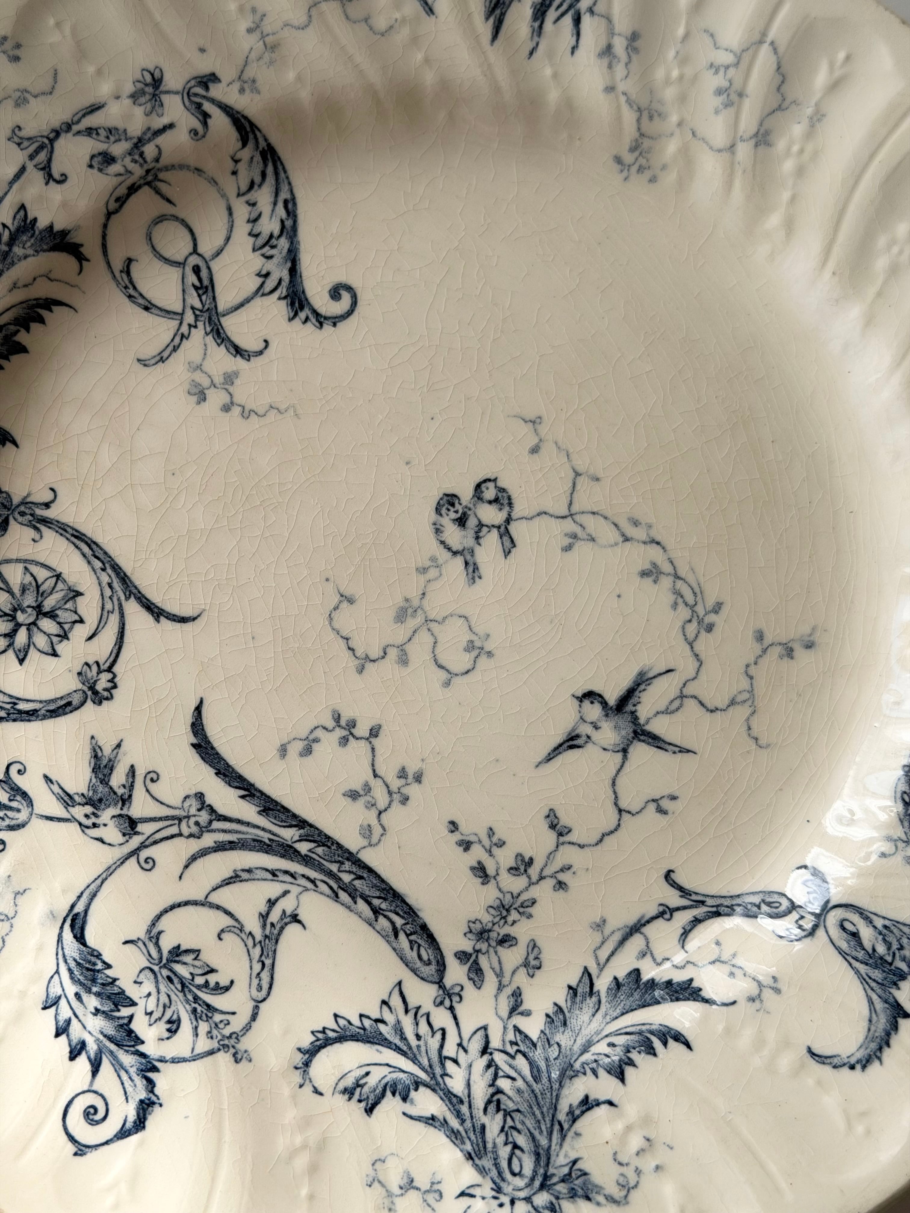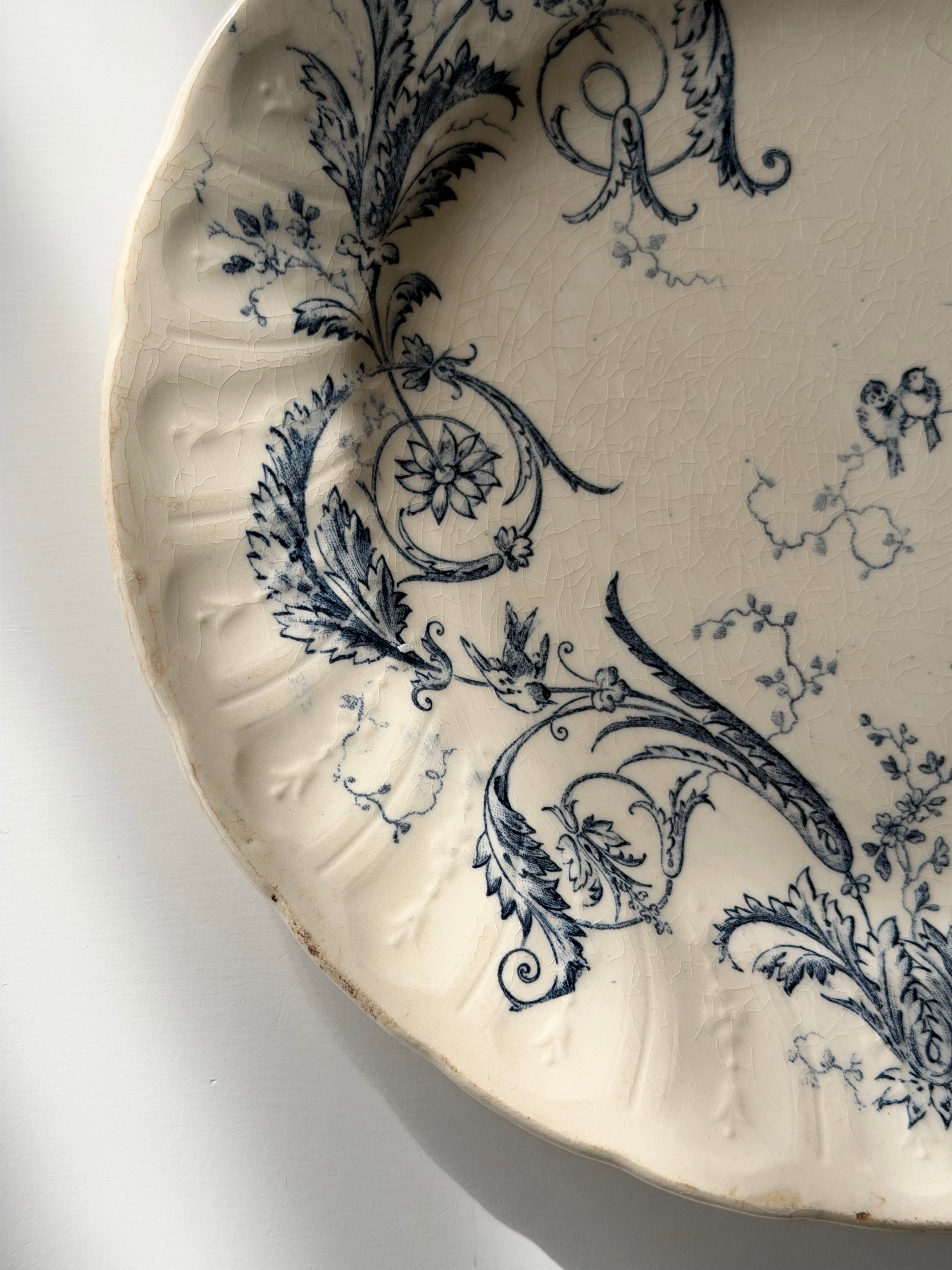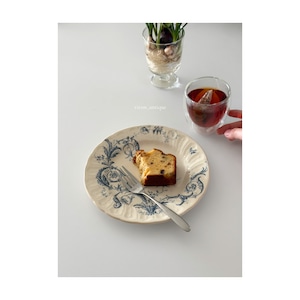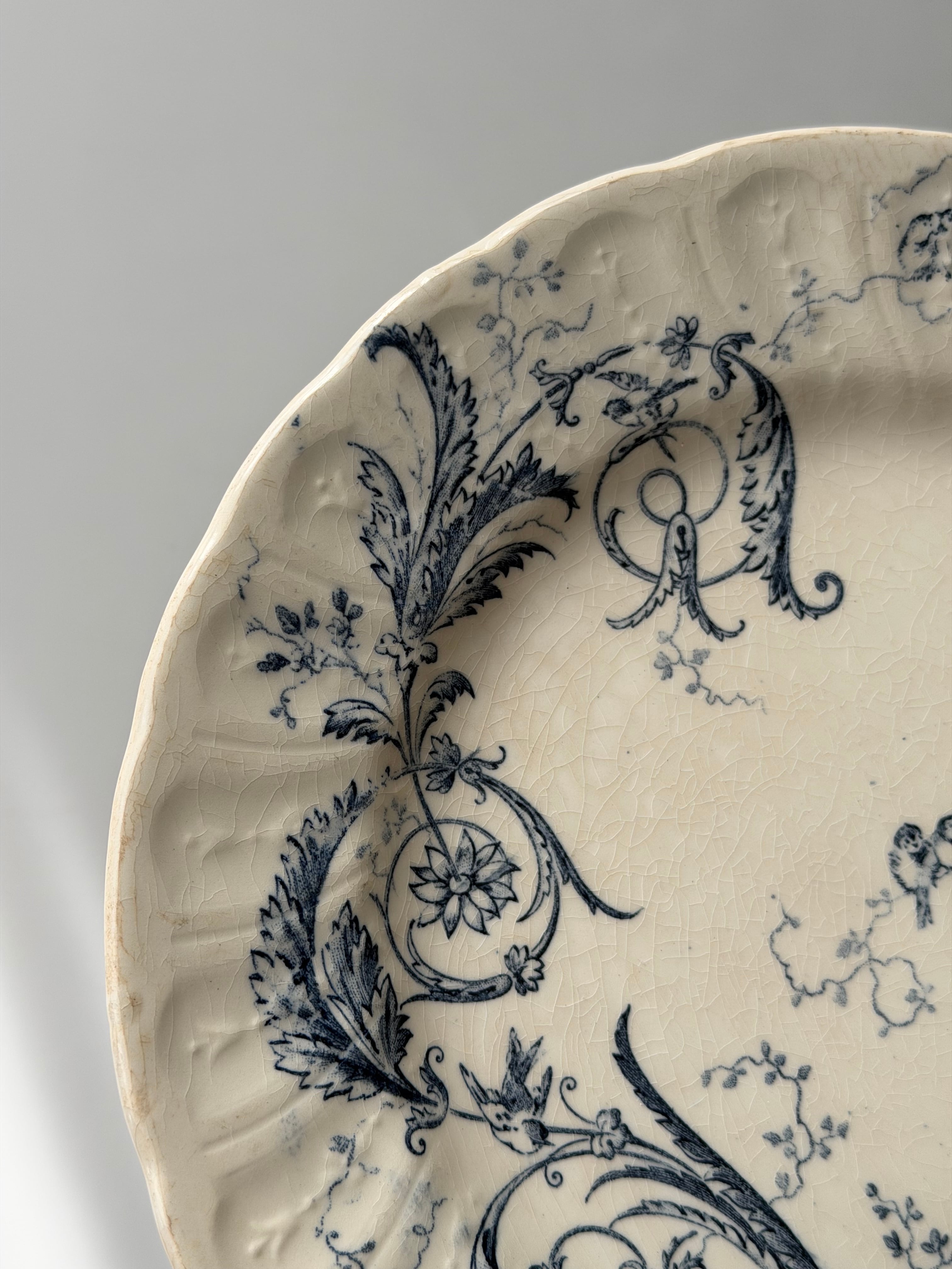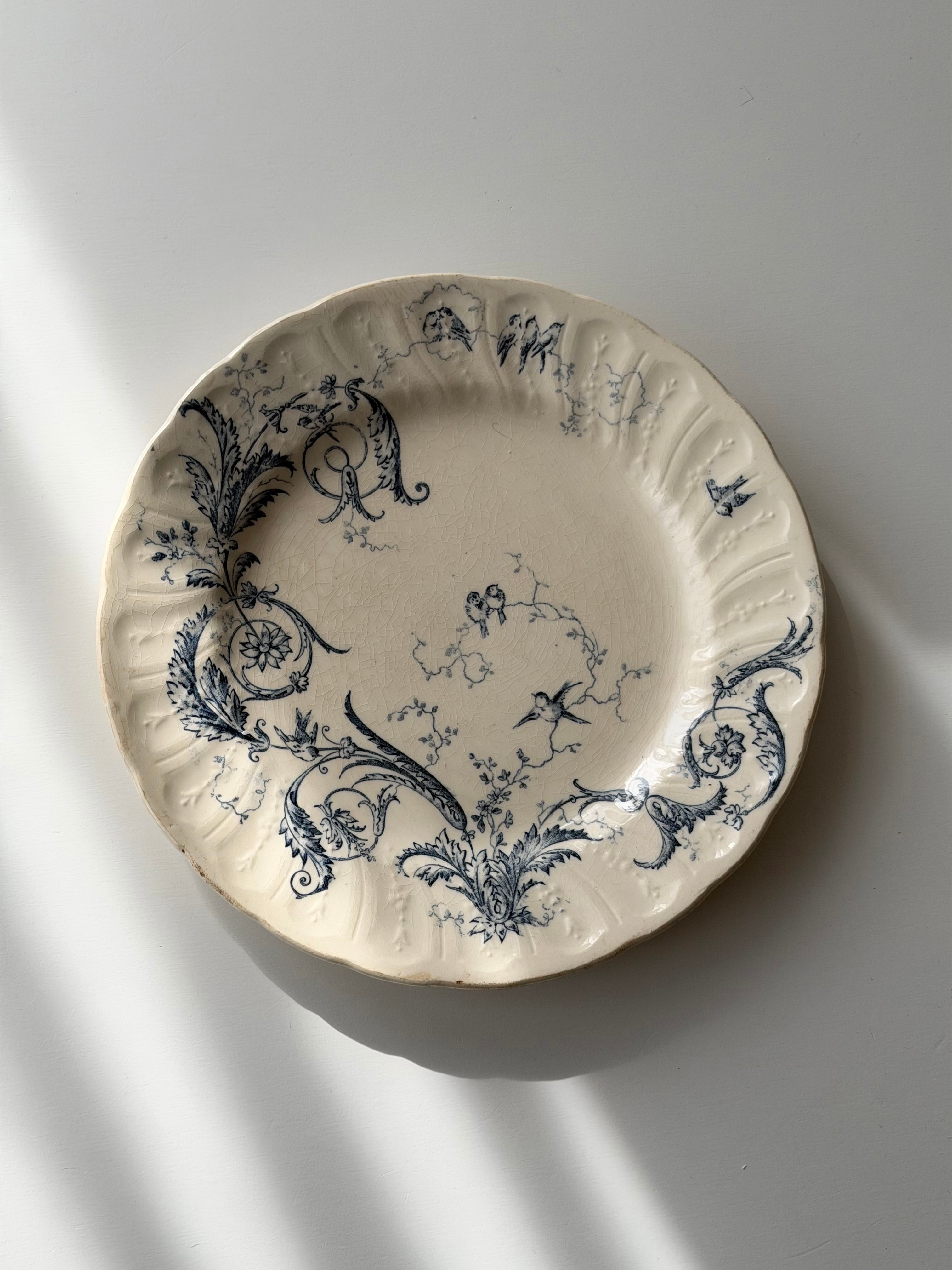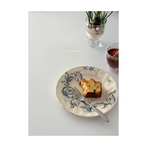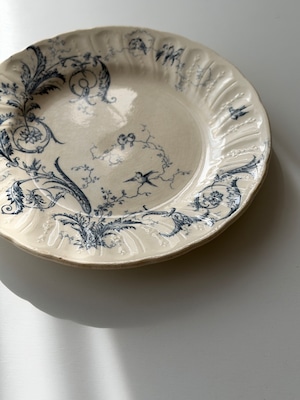 Gien ジアン / “RINCEAUX” blue 唐草と小鳥のデザートプレート c