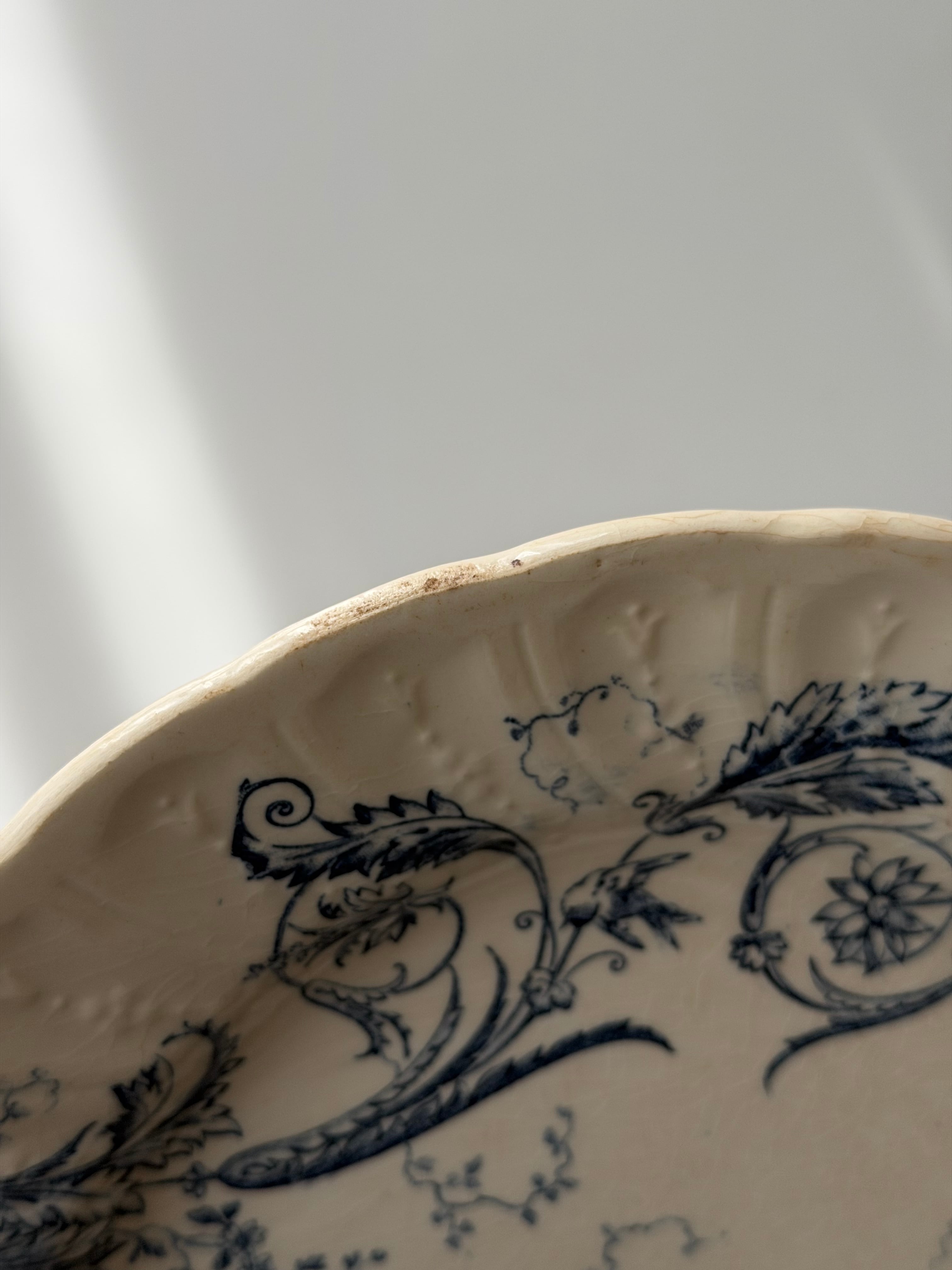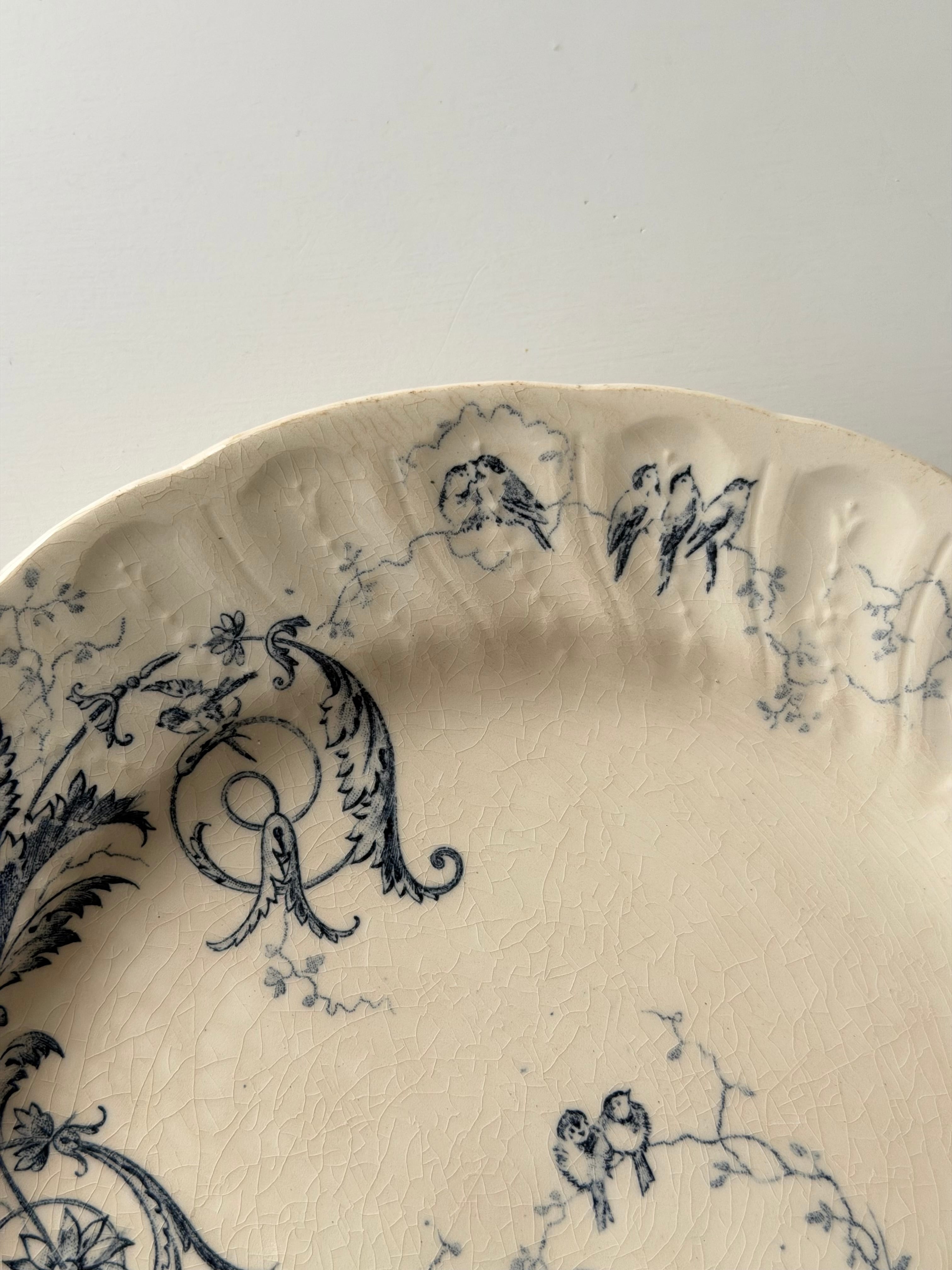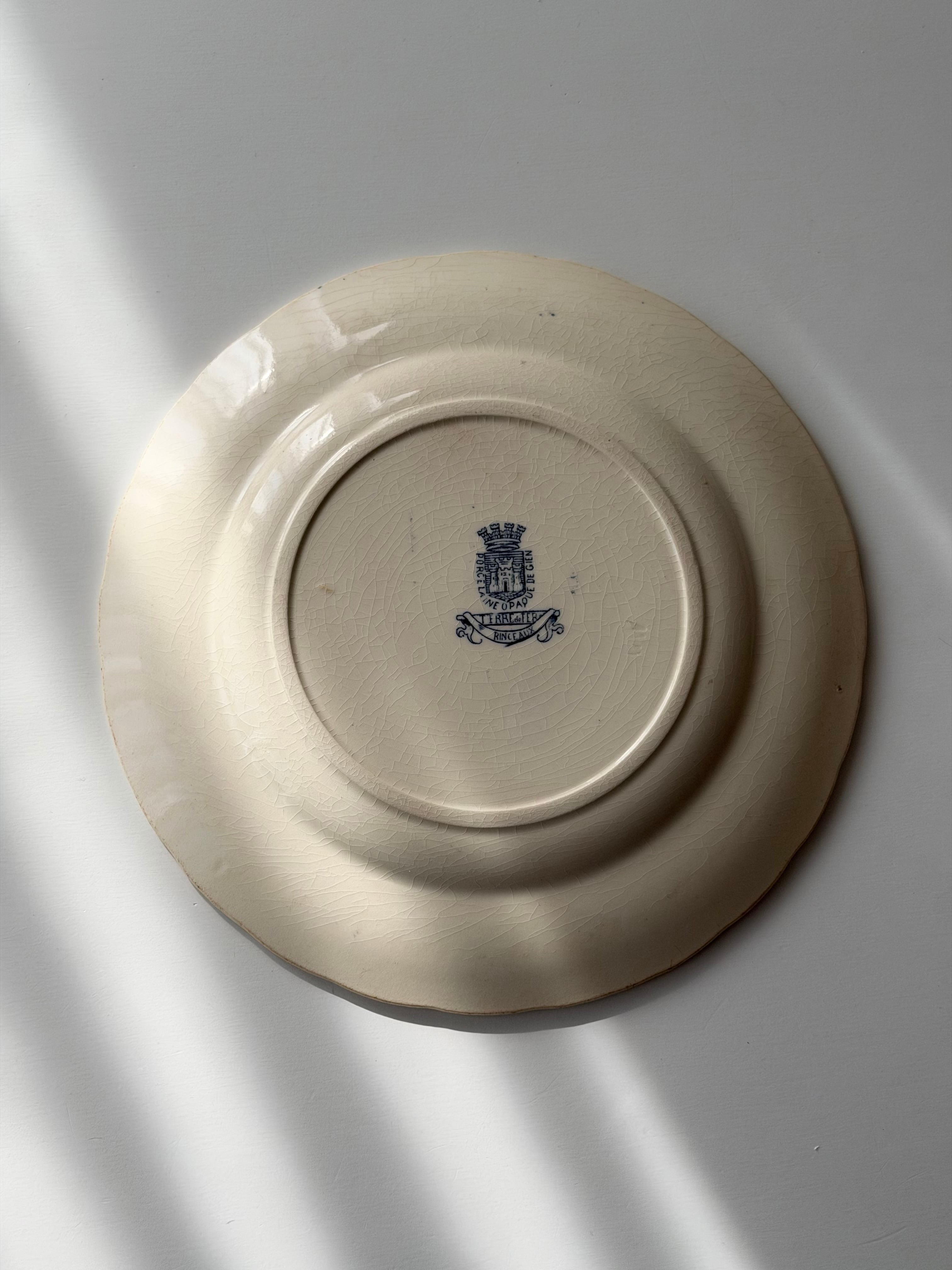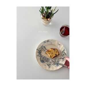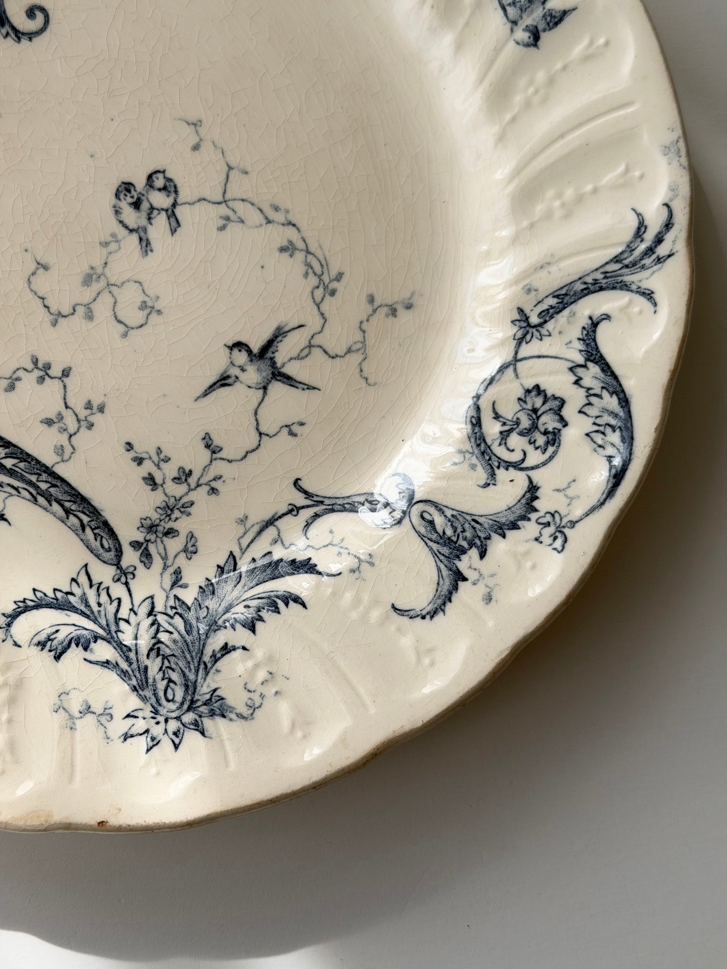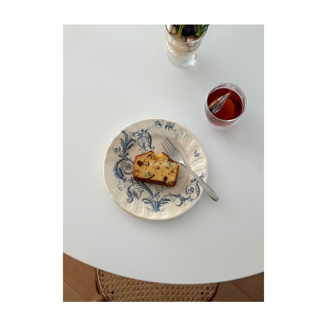 Gien ジアン / “RINCEAUX” blue 唐草と小鳥のデザートプレート c