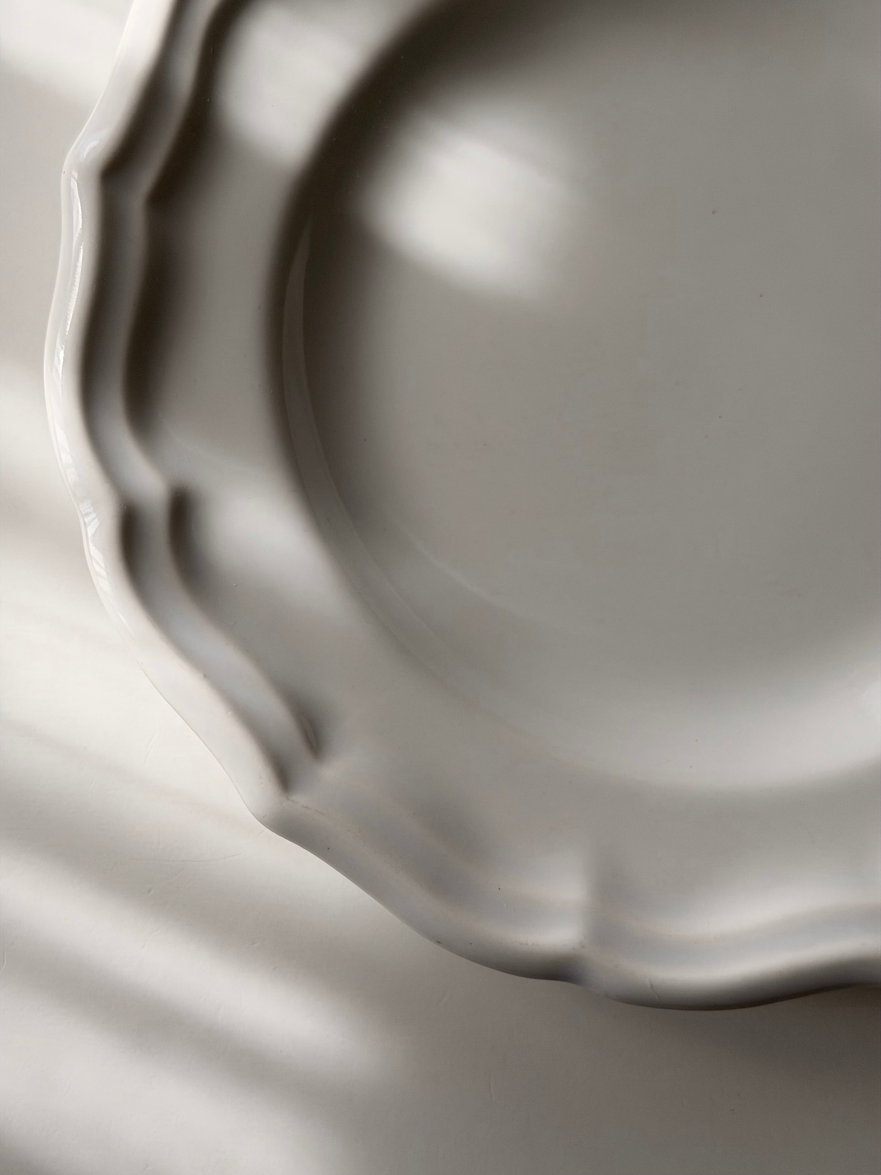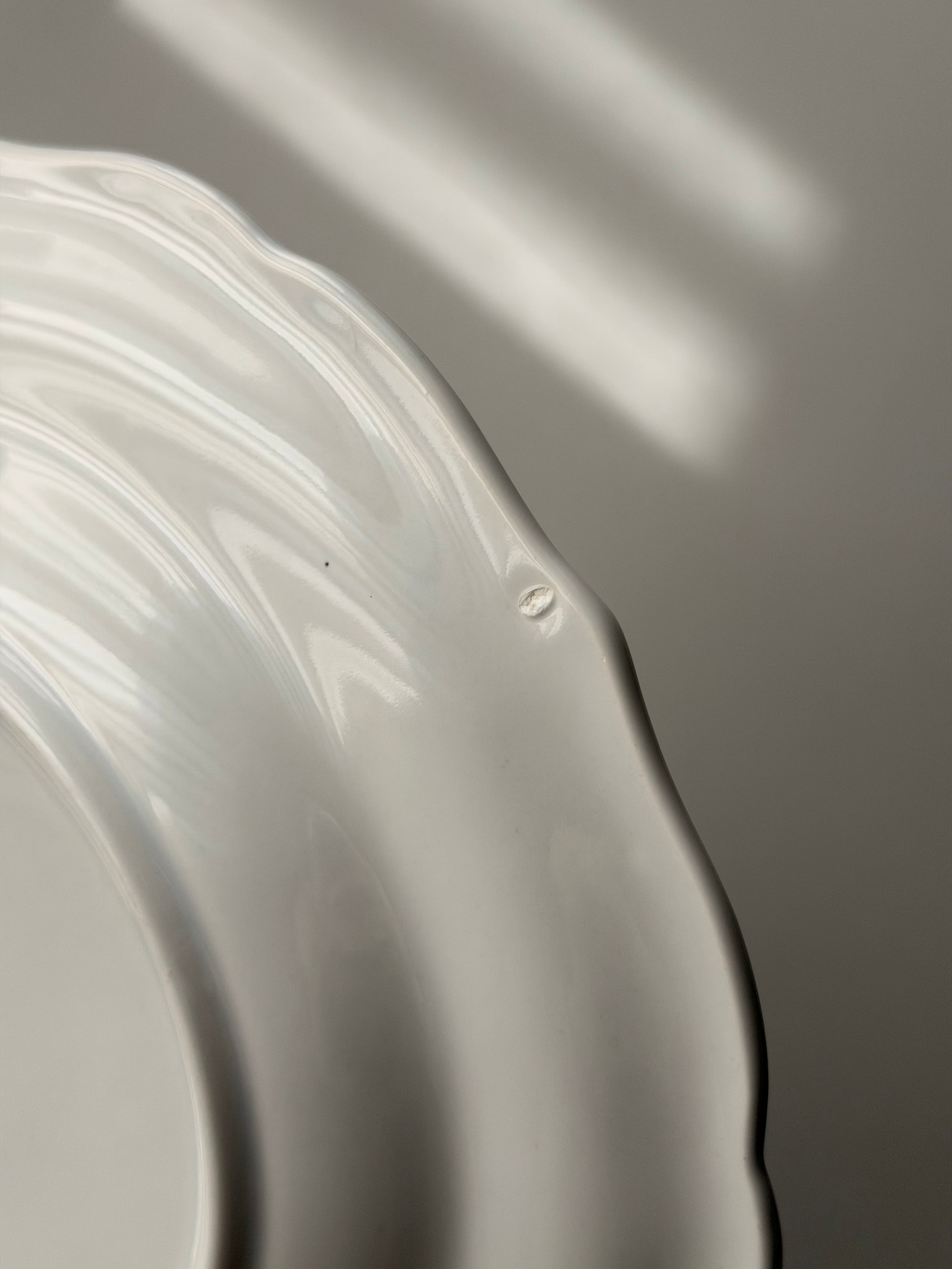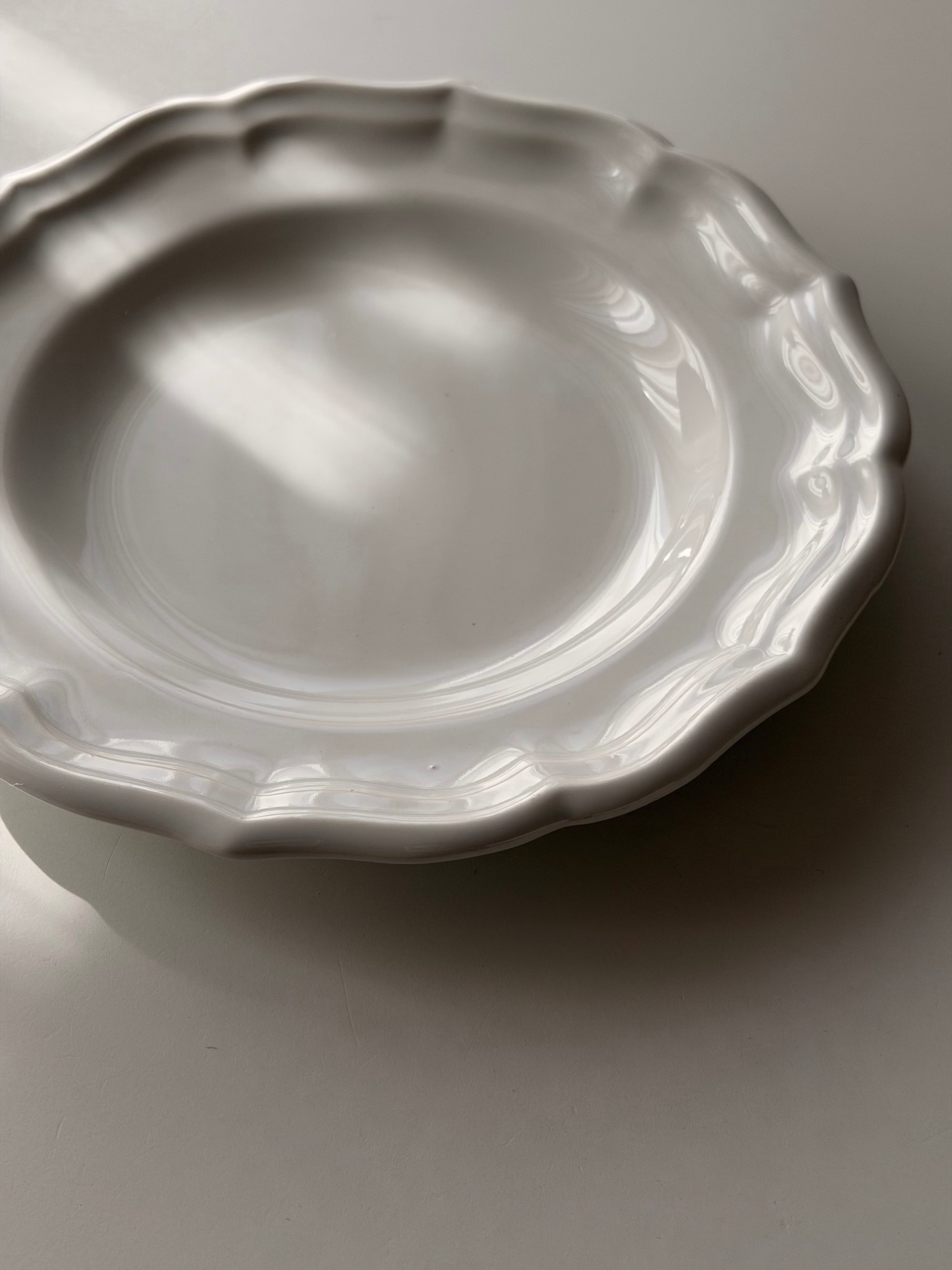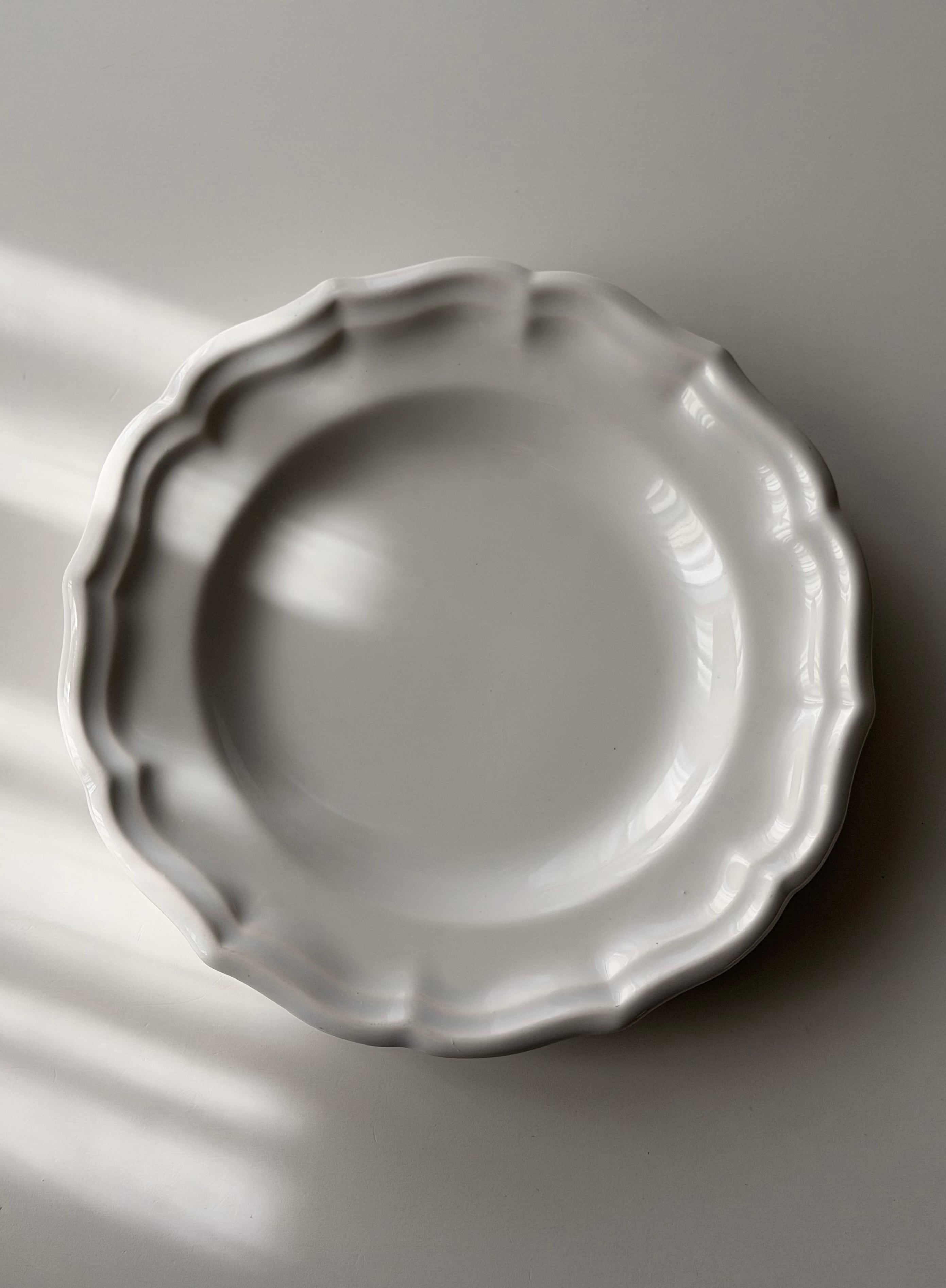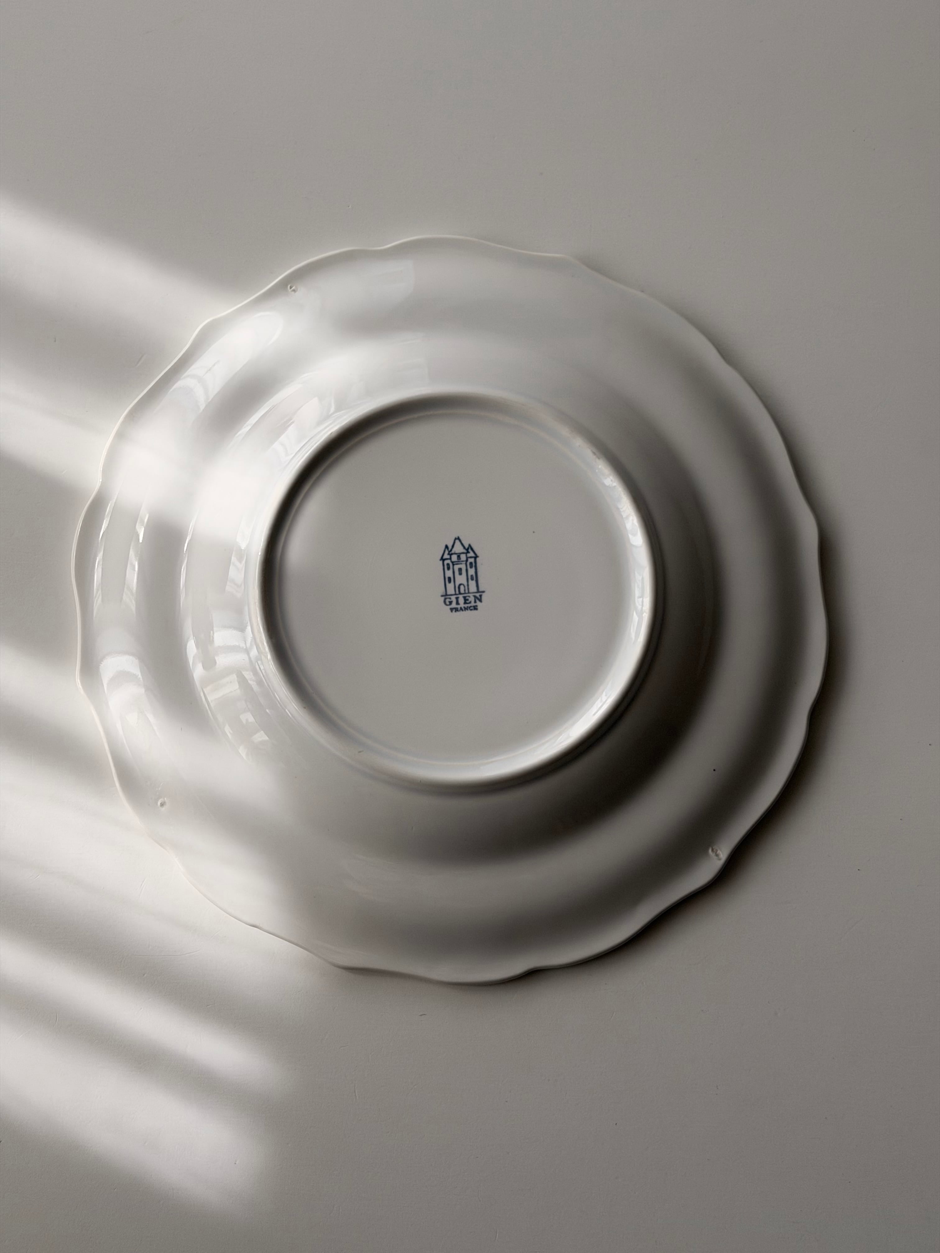 フランス ジアン窯より波打つ花リムが美しい平皿プレート。