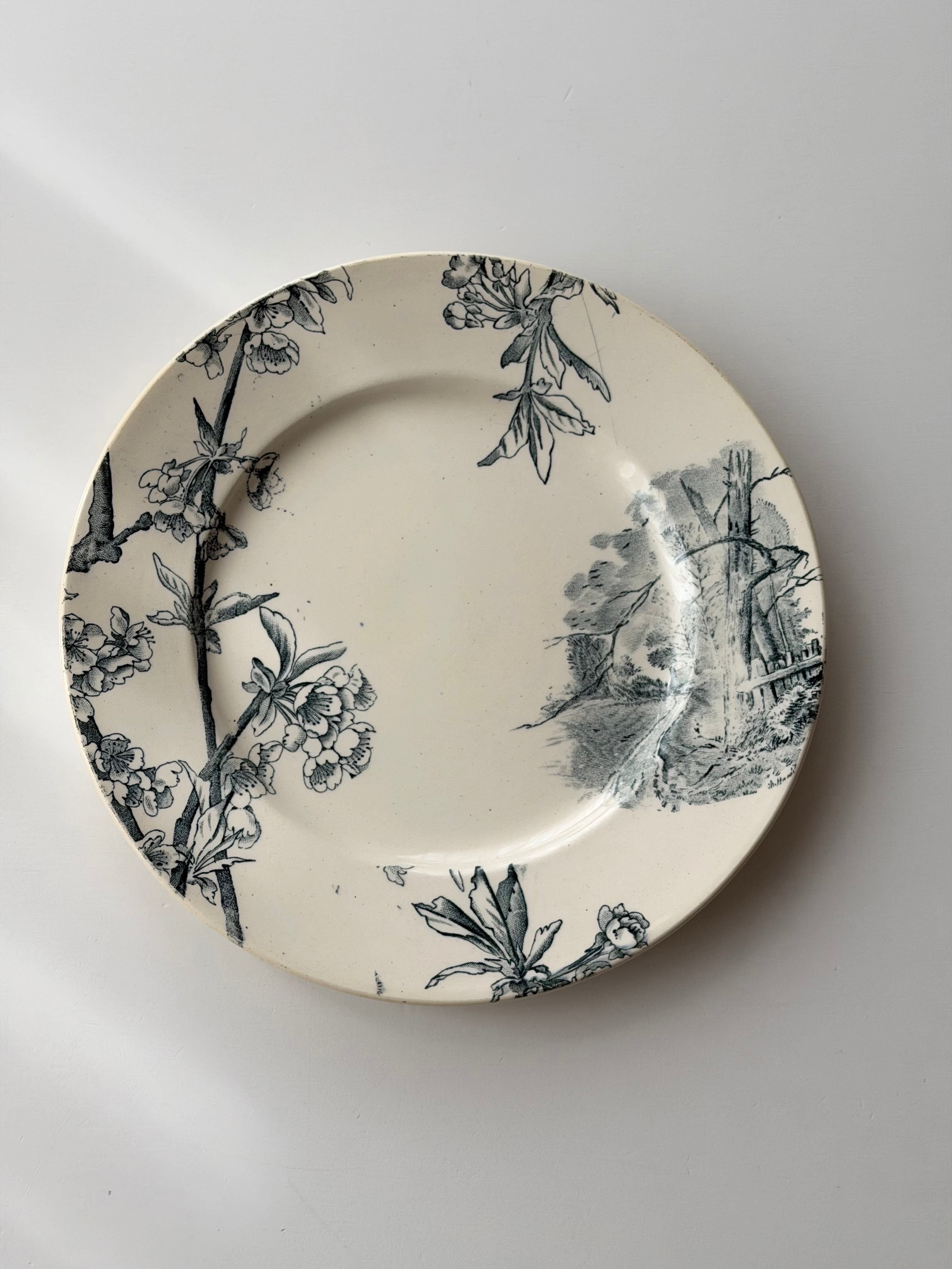 Creil et Montereau クレイユモントロー / “CERISIER” 桜の平皿プレート b