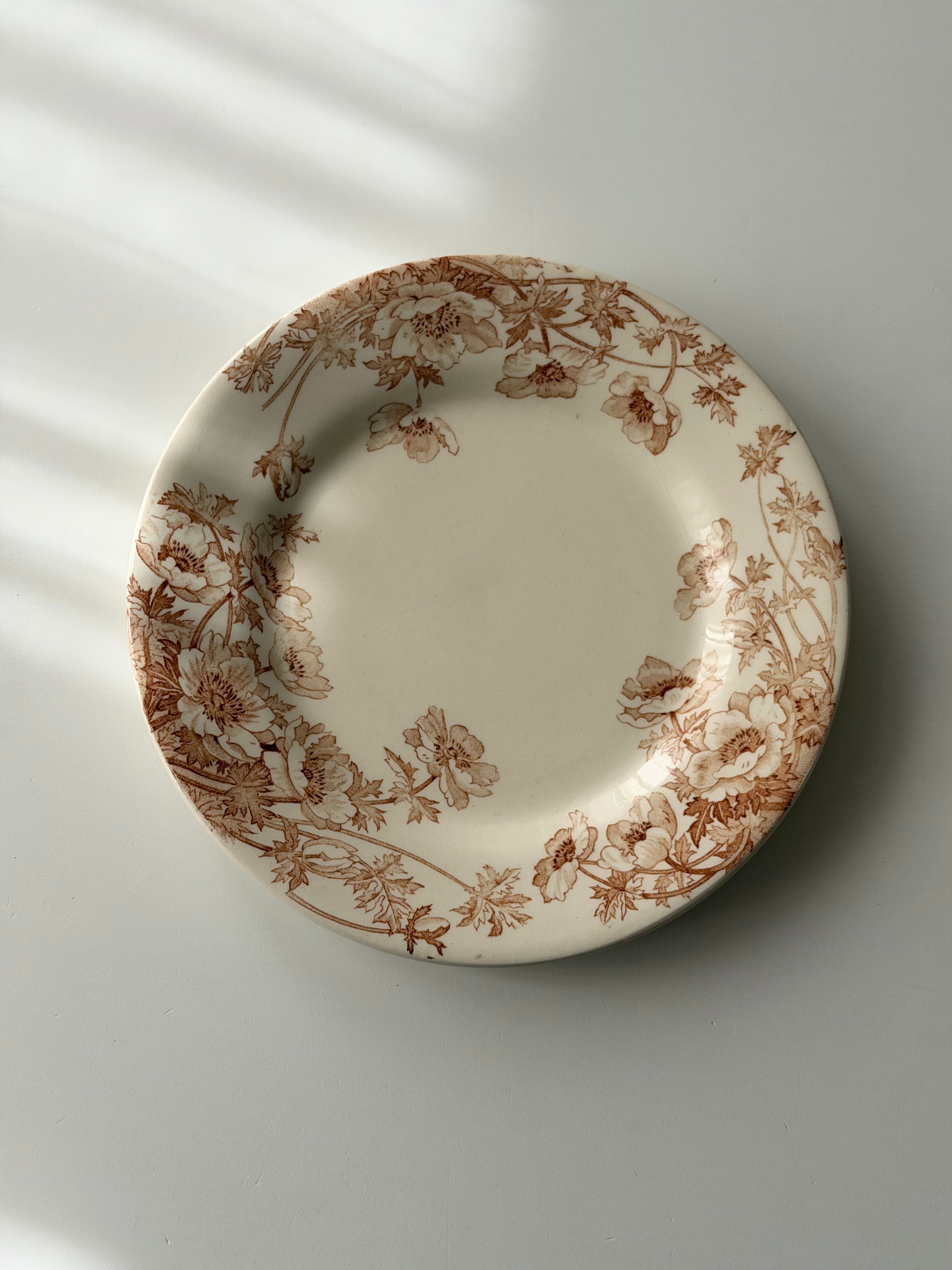 Gien ジアン / “ANEMONES” brown アネモネのデザートプレート c