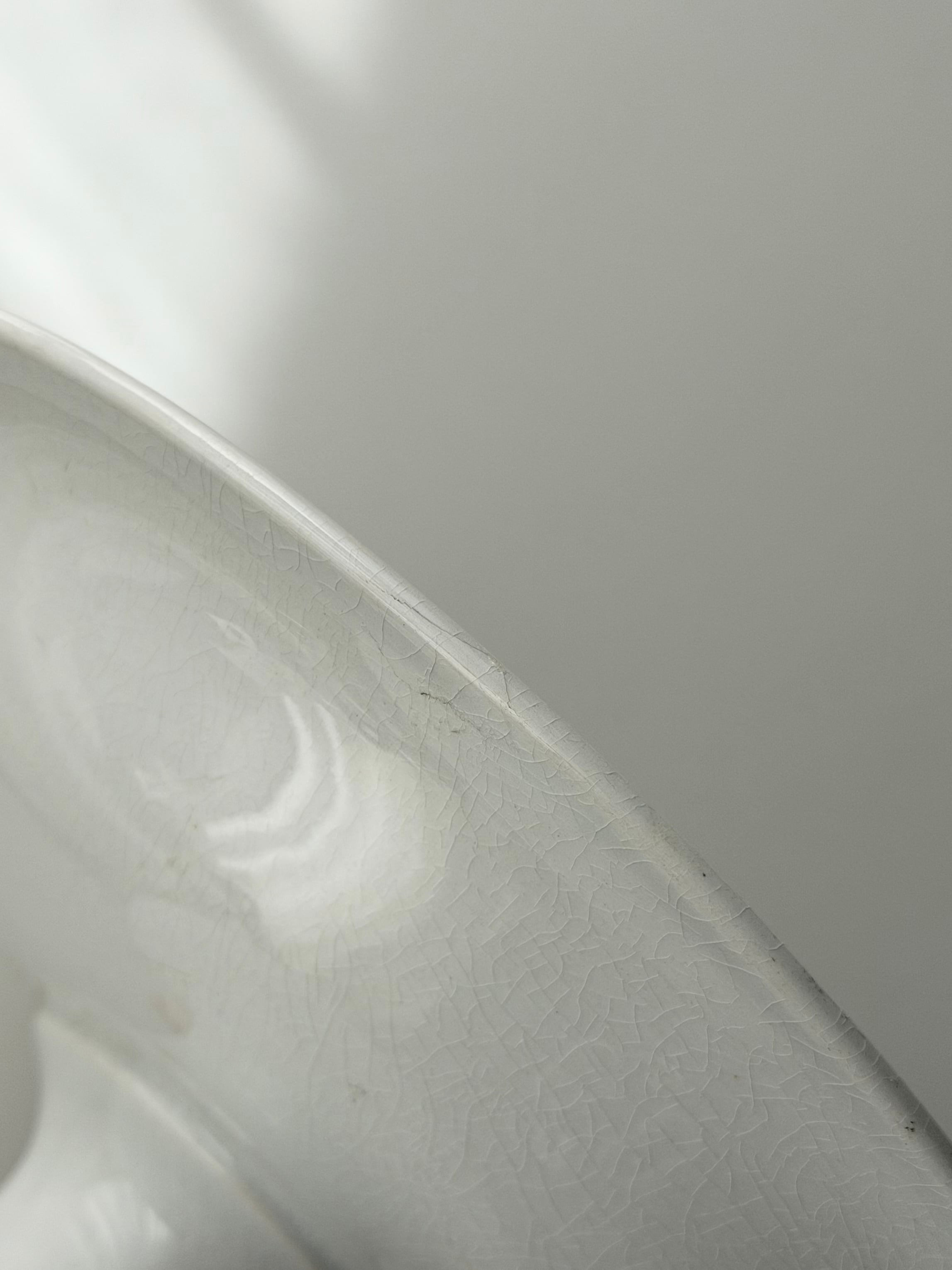 condition: 器のエッジに2か所うっすらラインが入っています。エッジに1か所切込みキズあり。器の裏面一部滲みあり。全体的に艶のある良品です。