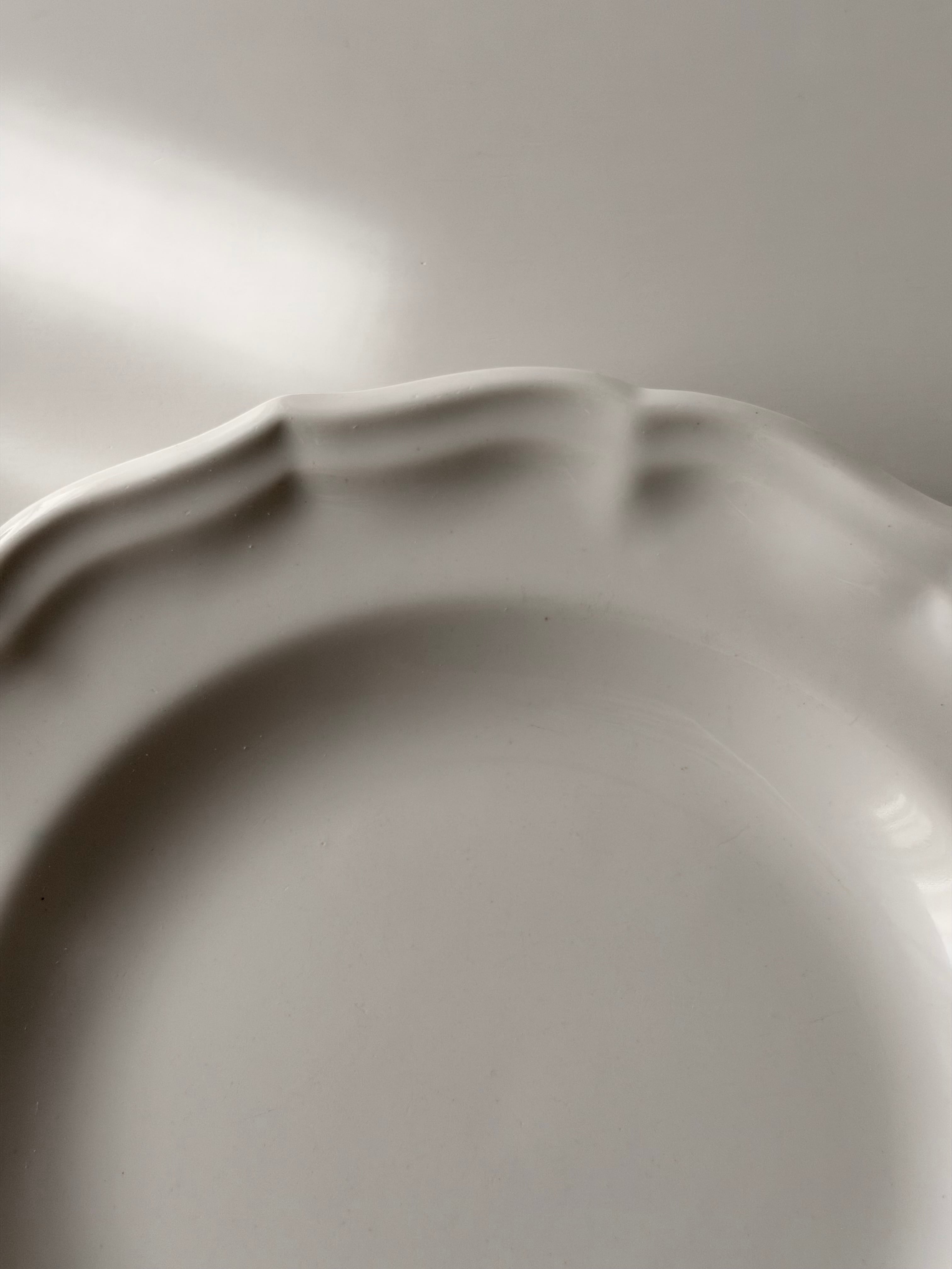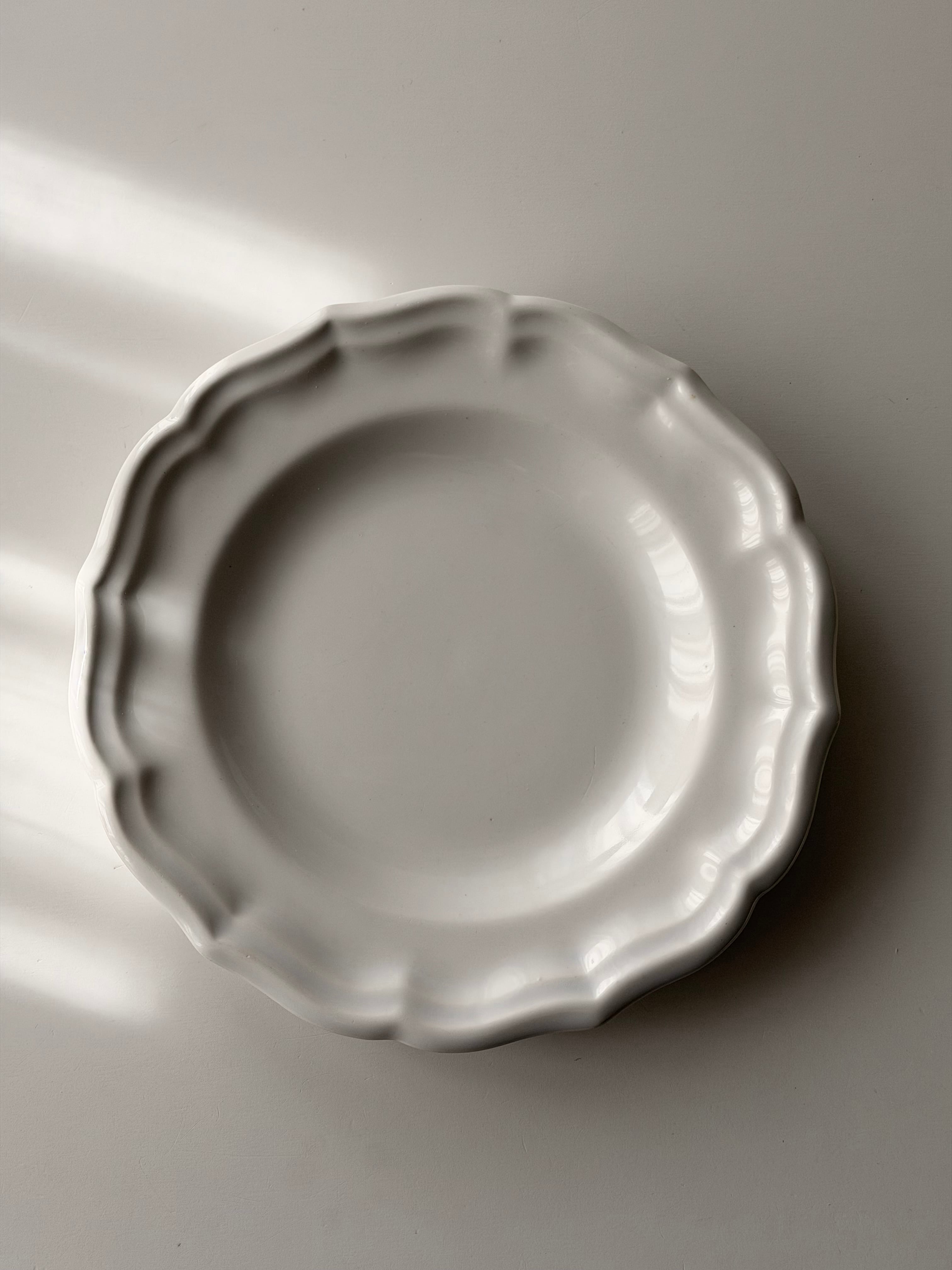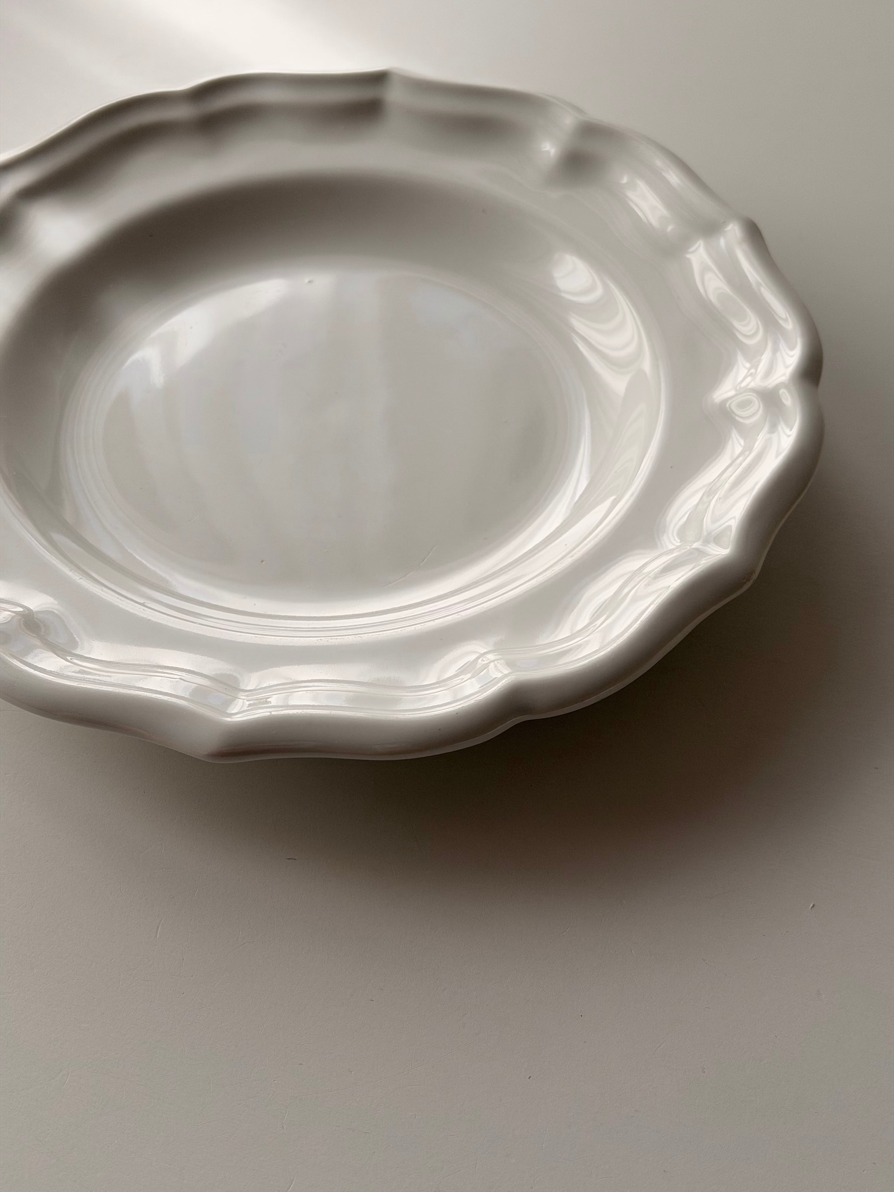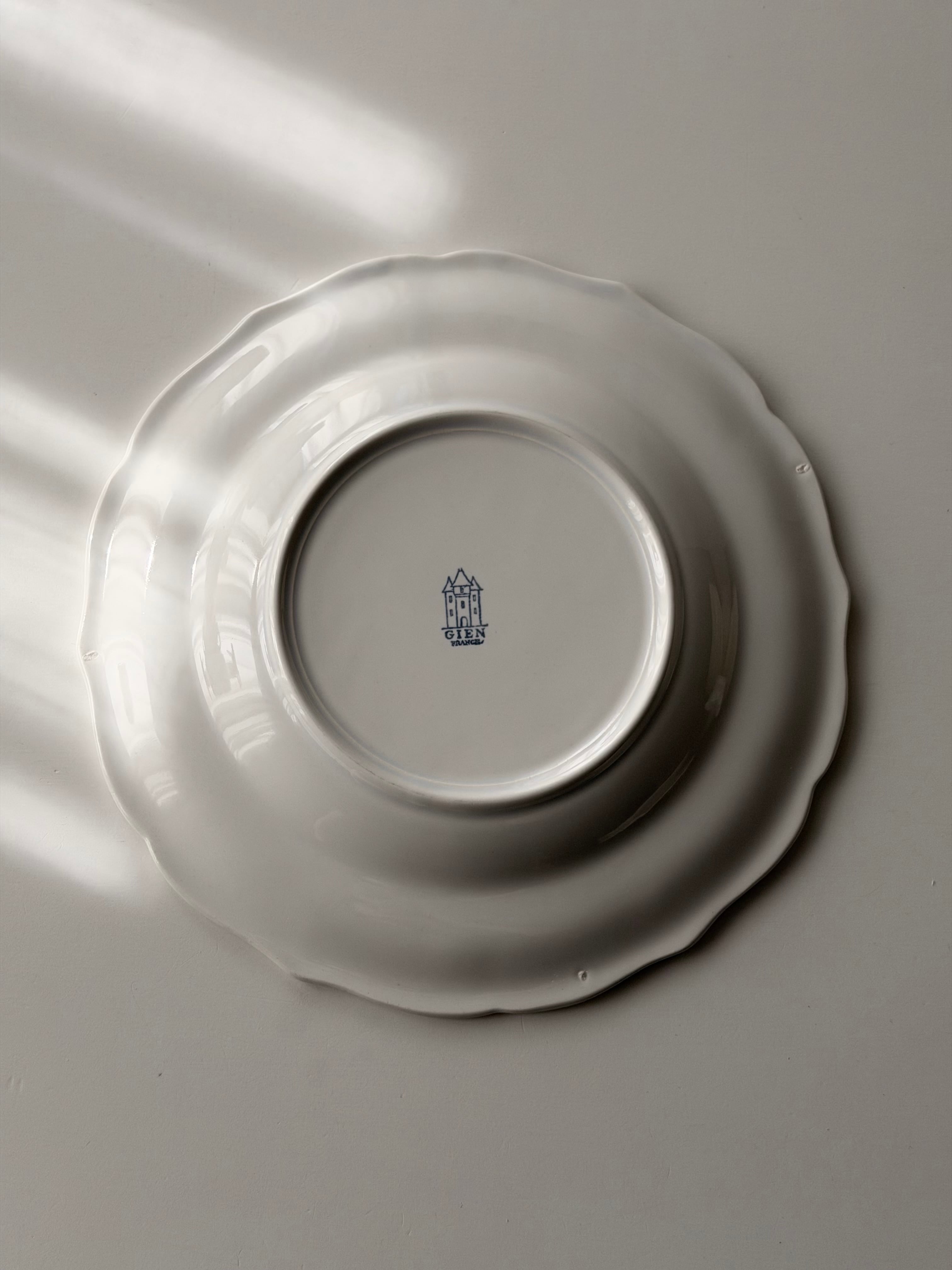 フランス ジアン窯より波打つ花リムが美しい平皿プレート。