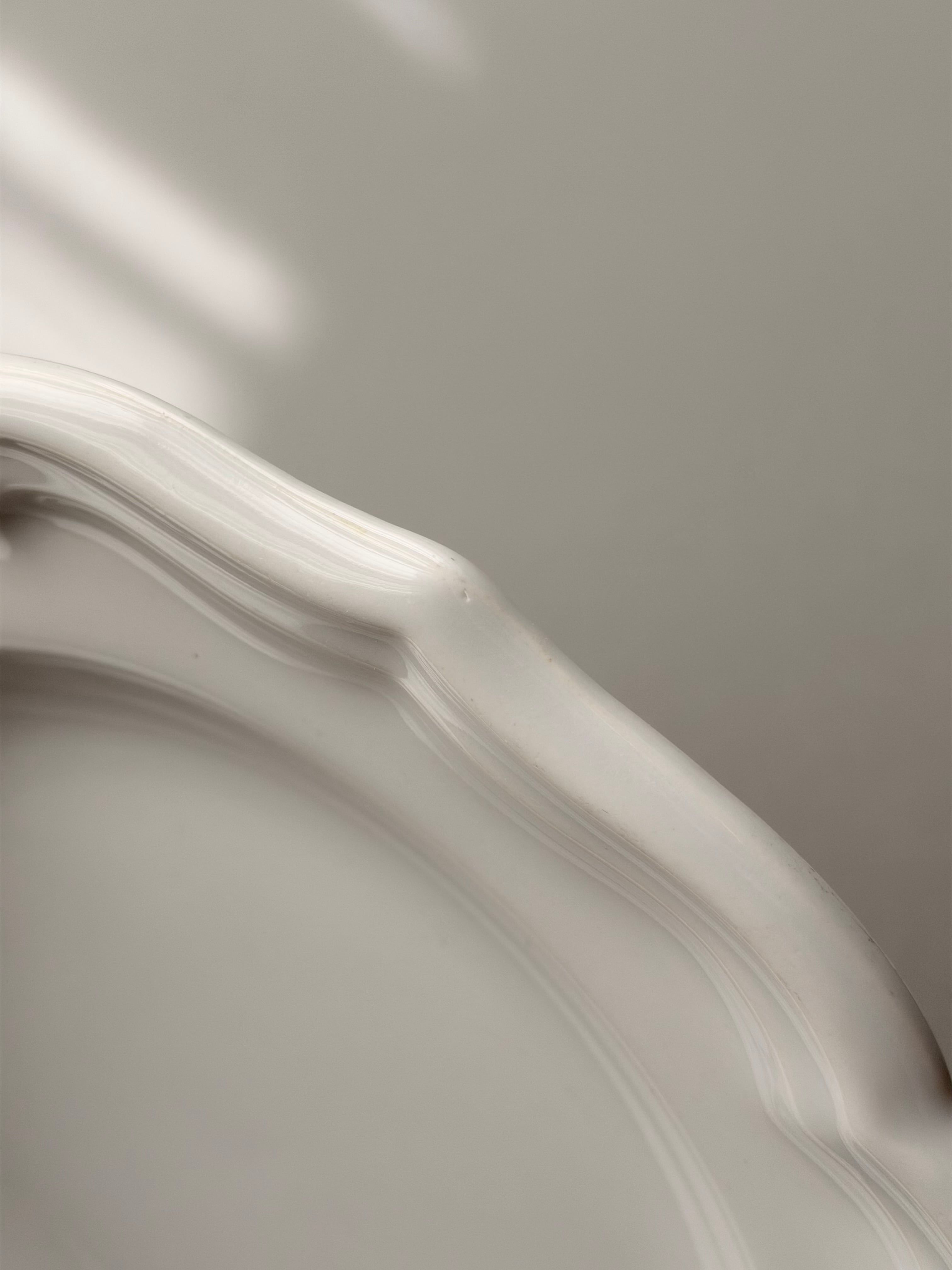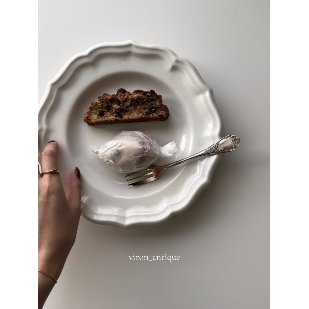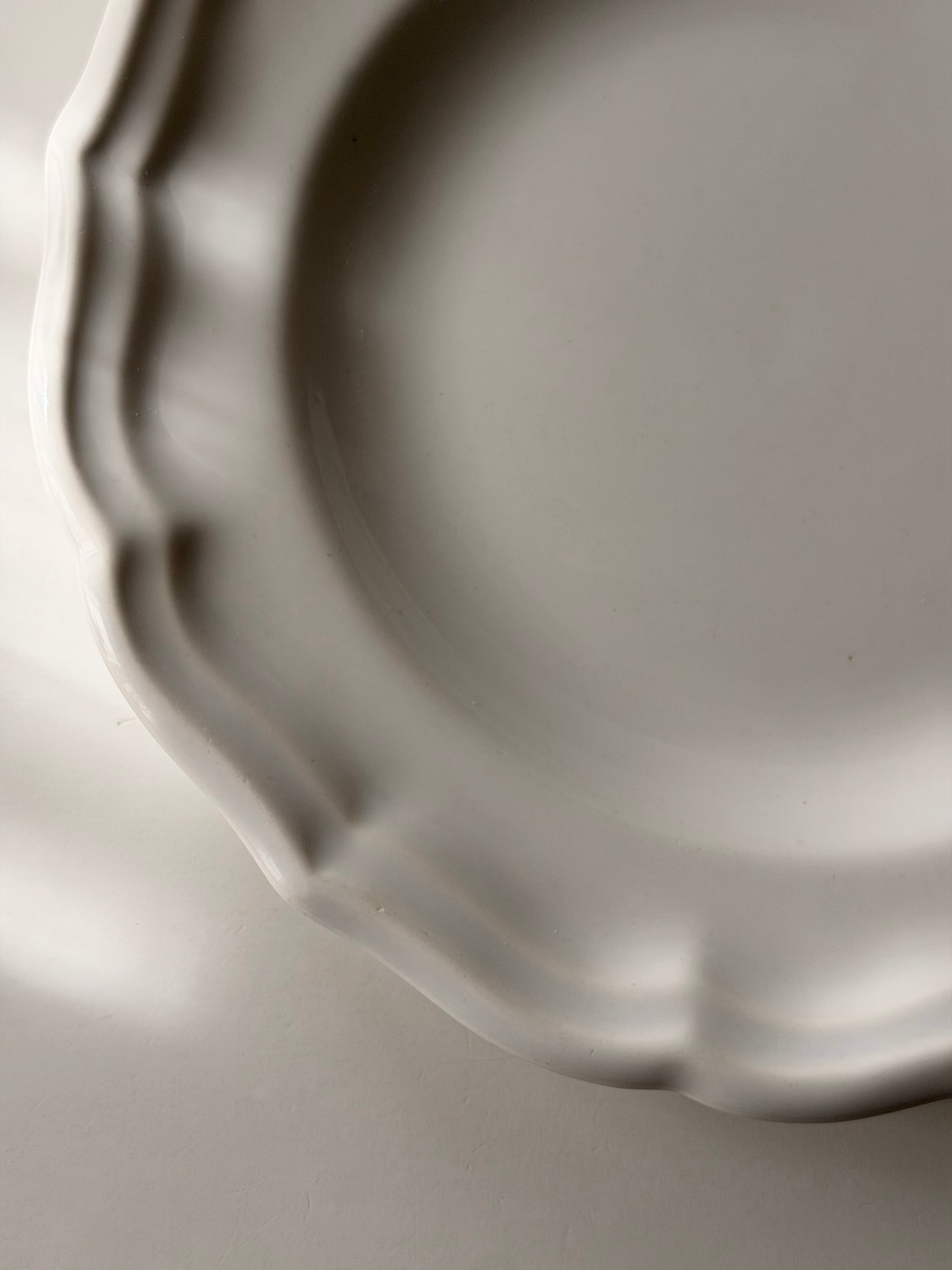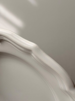 フランス ジアン窯より波打つ花リムが美しい平皿プレート。