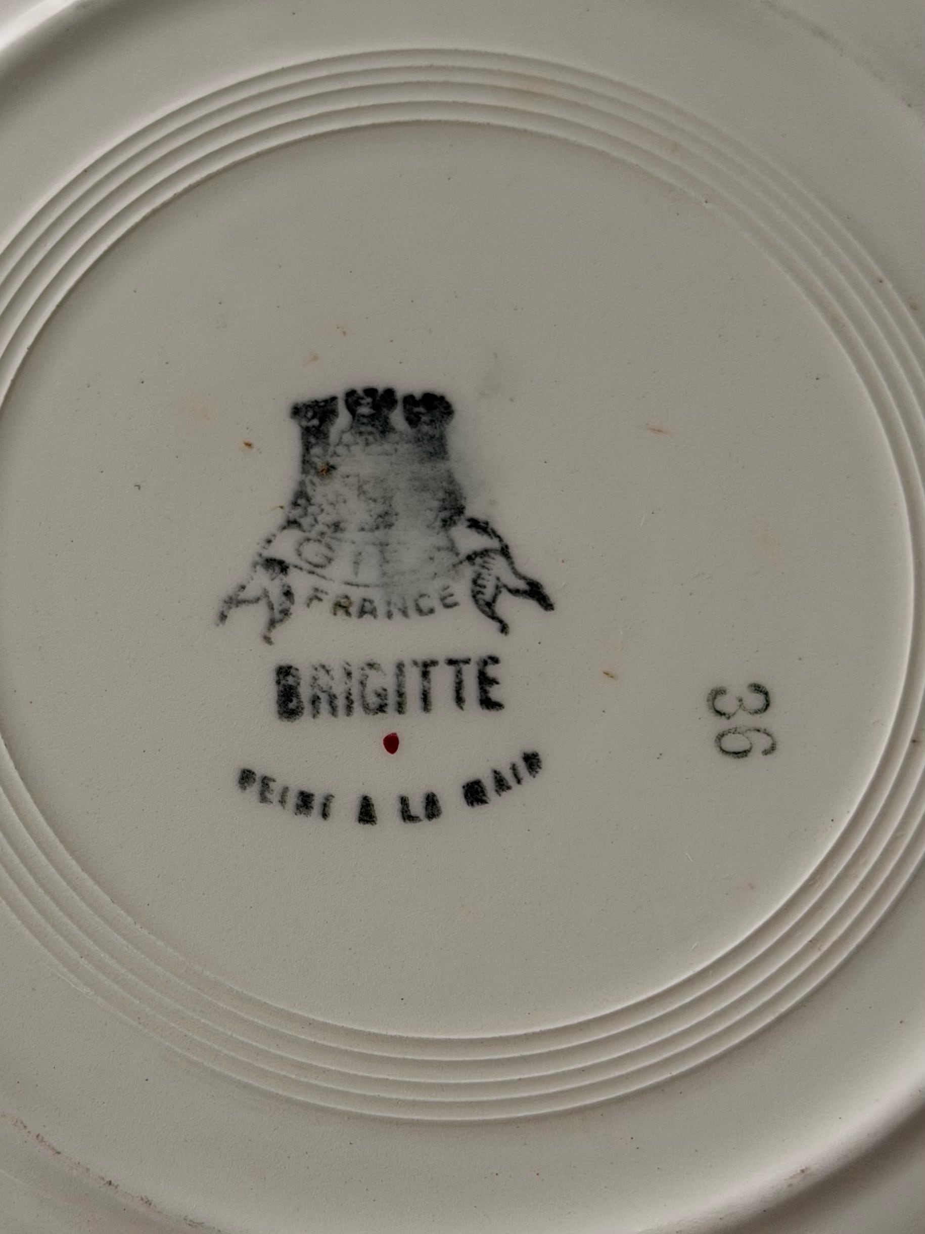 裏面に「PEINT À LA MAIN(ハンドペイント)」の刻印が入る器。