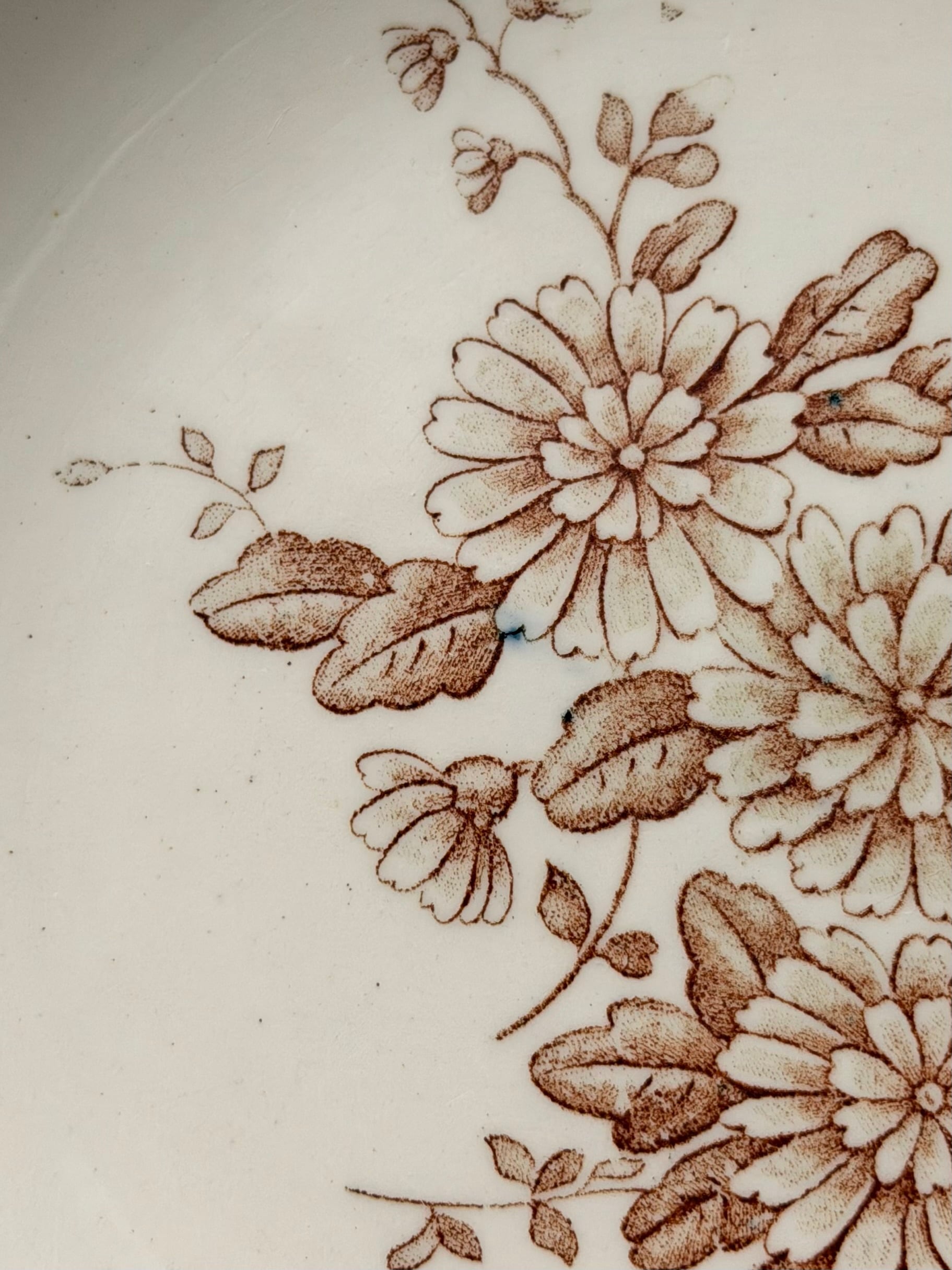リムにまで小さな花や葉がリズミカルに散りばめられ、