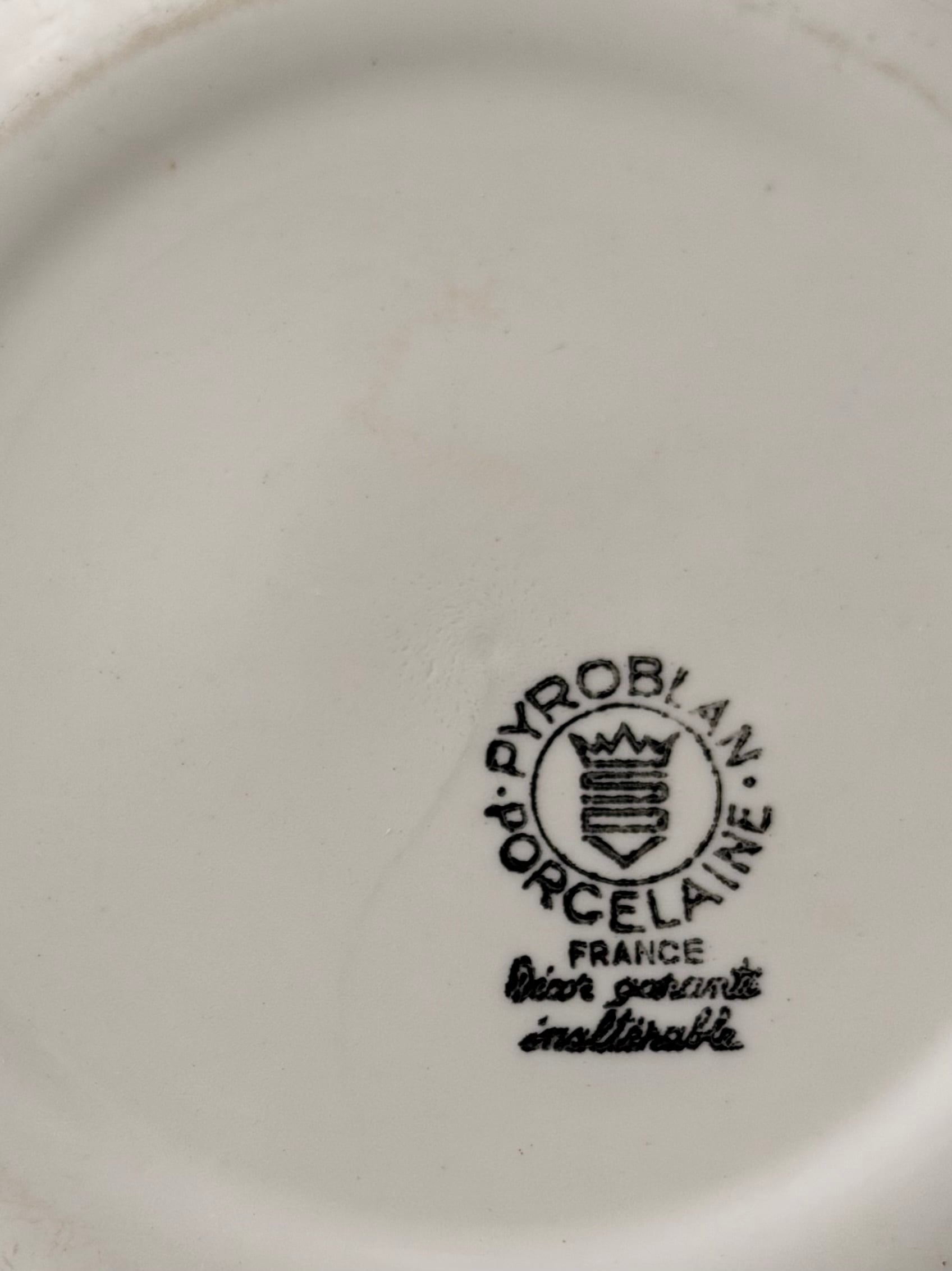 裏面には「PYROBLAN PORCELAINE FRANCE」の刻印が入り、