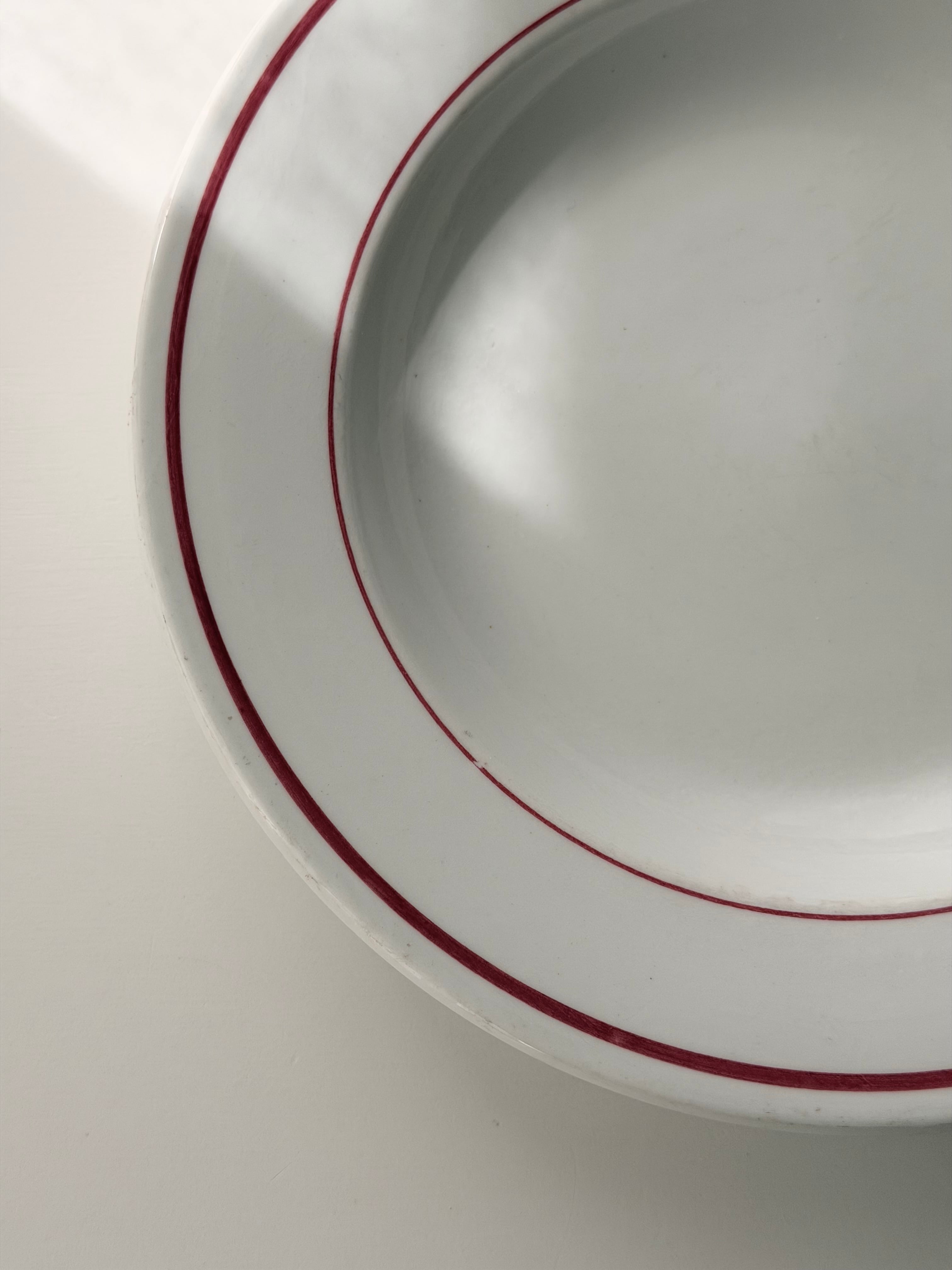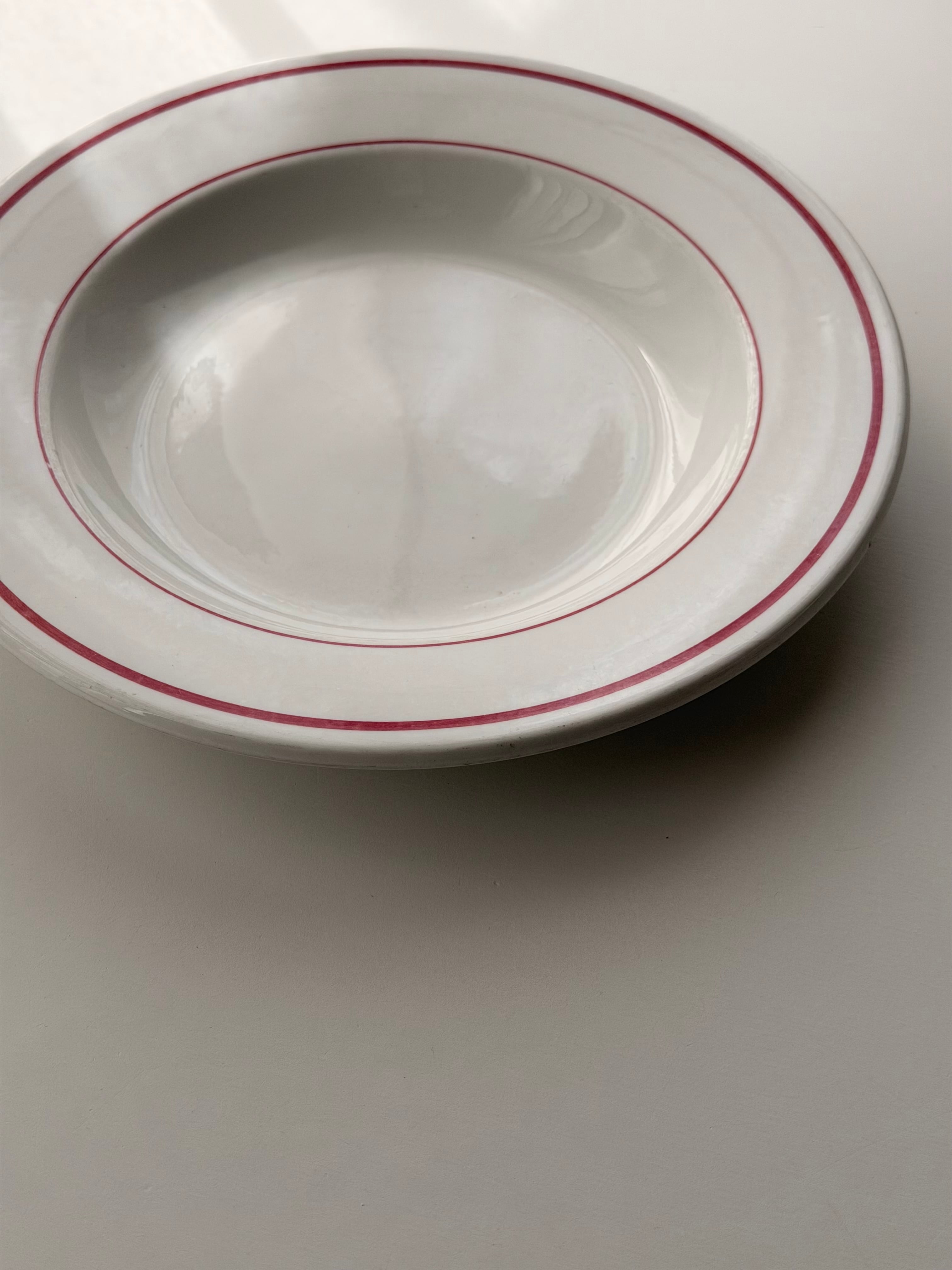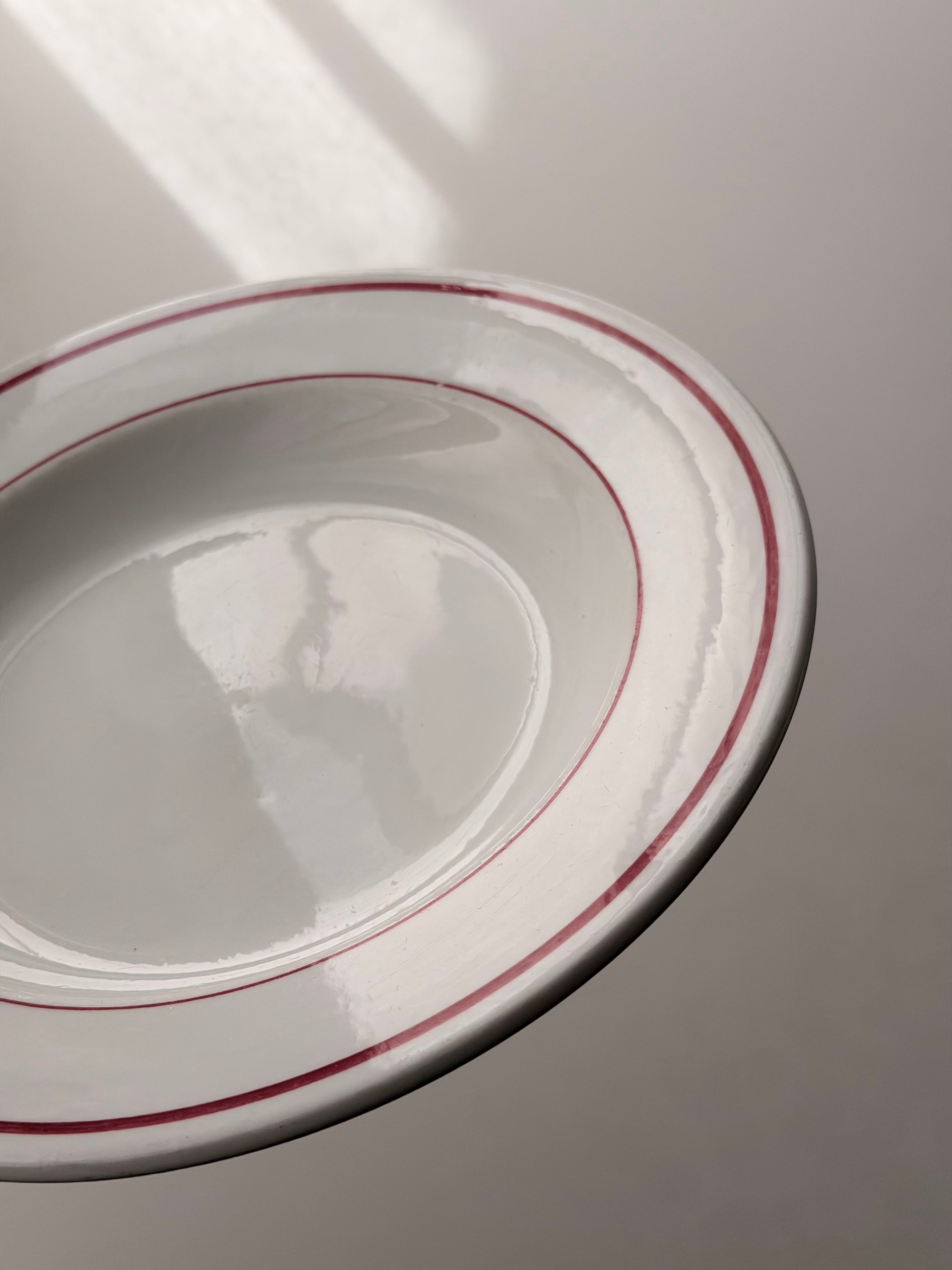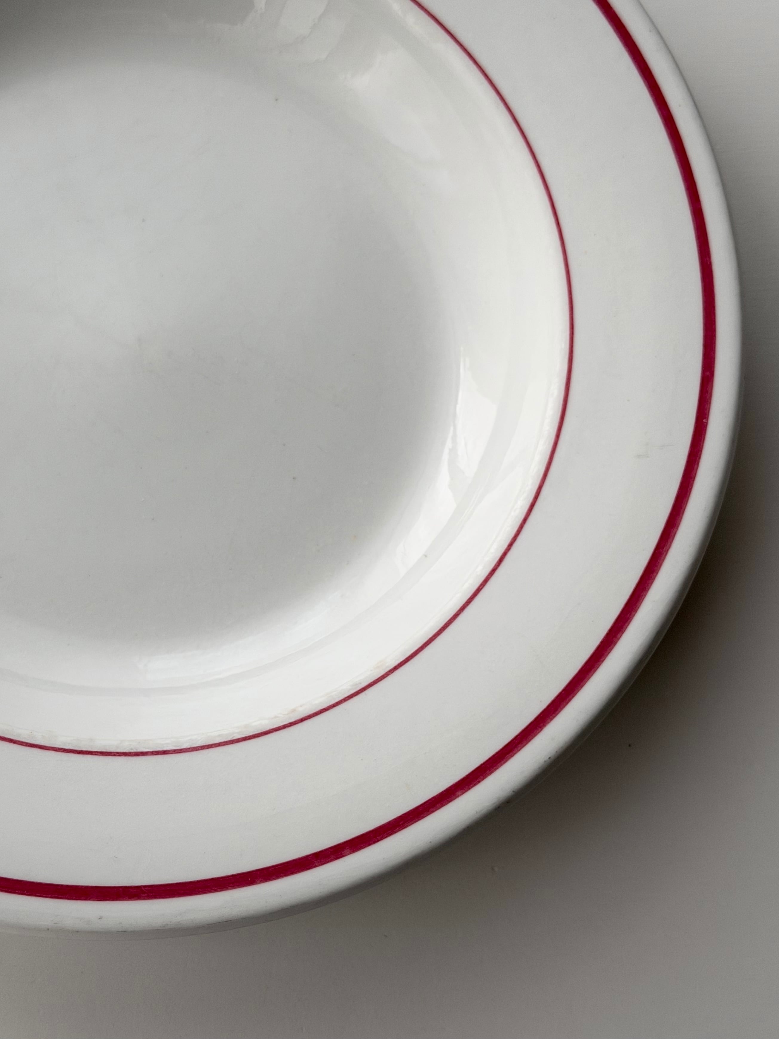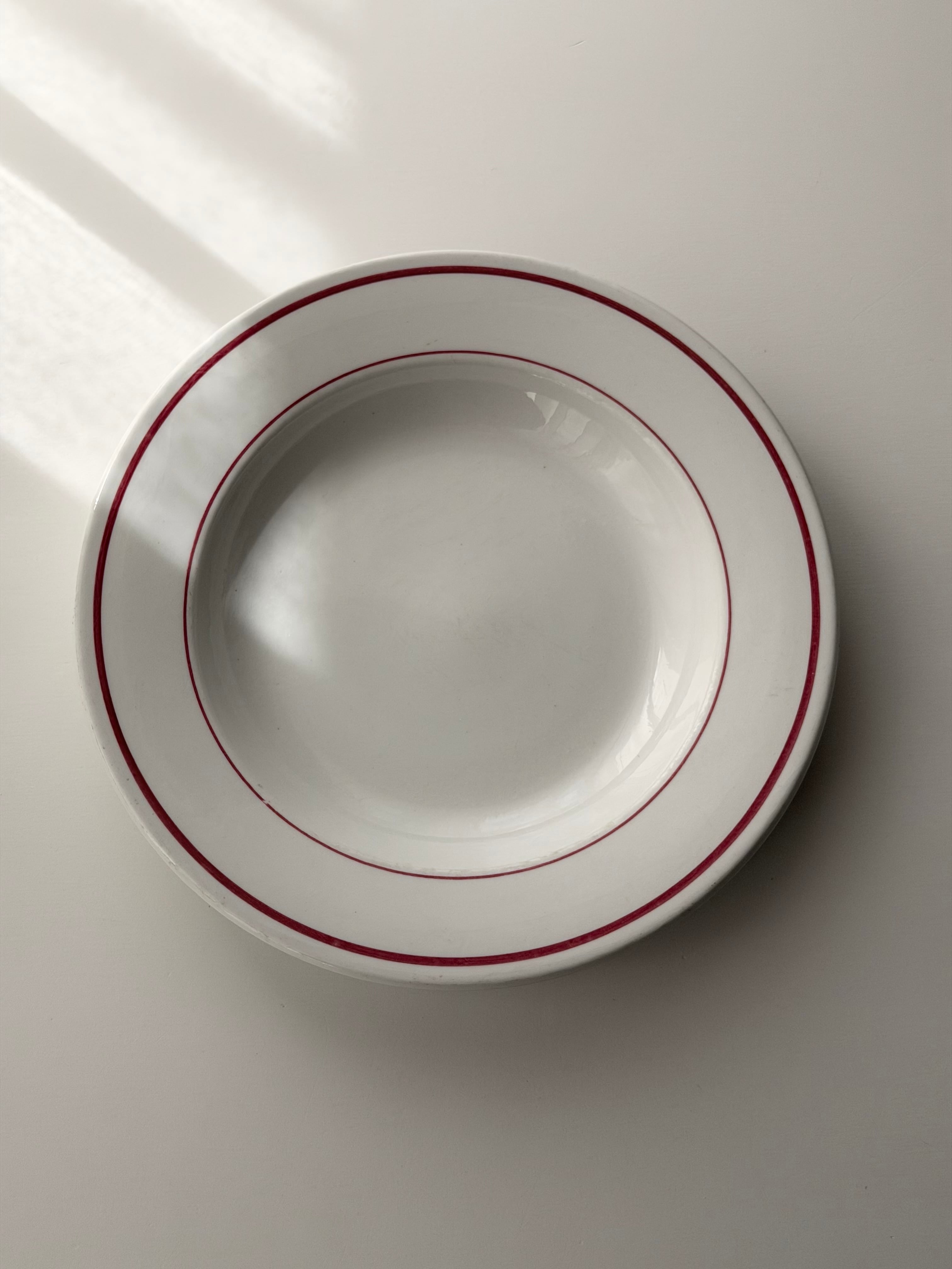 PYROBLAN PORCELAINE / 赤ラインのビストロプレート b