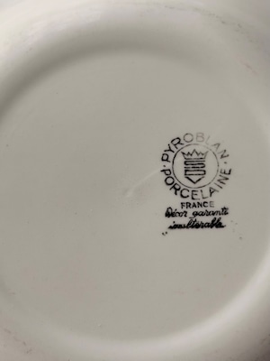 裏面には「PYROBLAN PORCELAINE FRANCE」の刻印が入り、