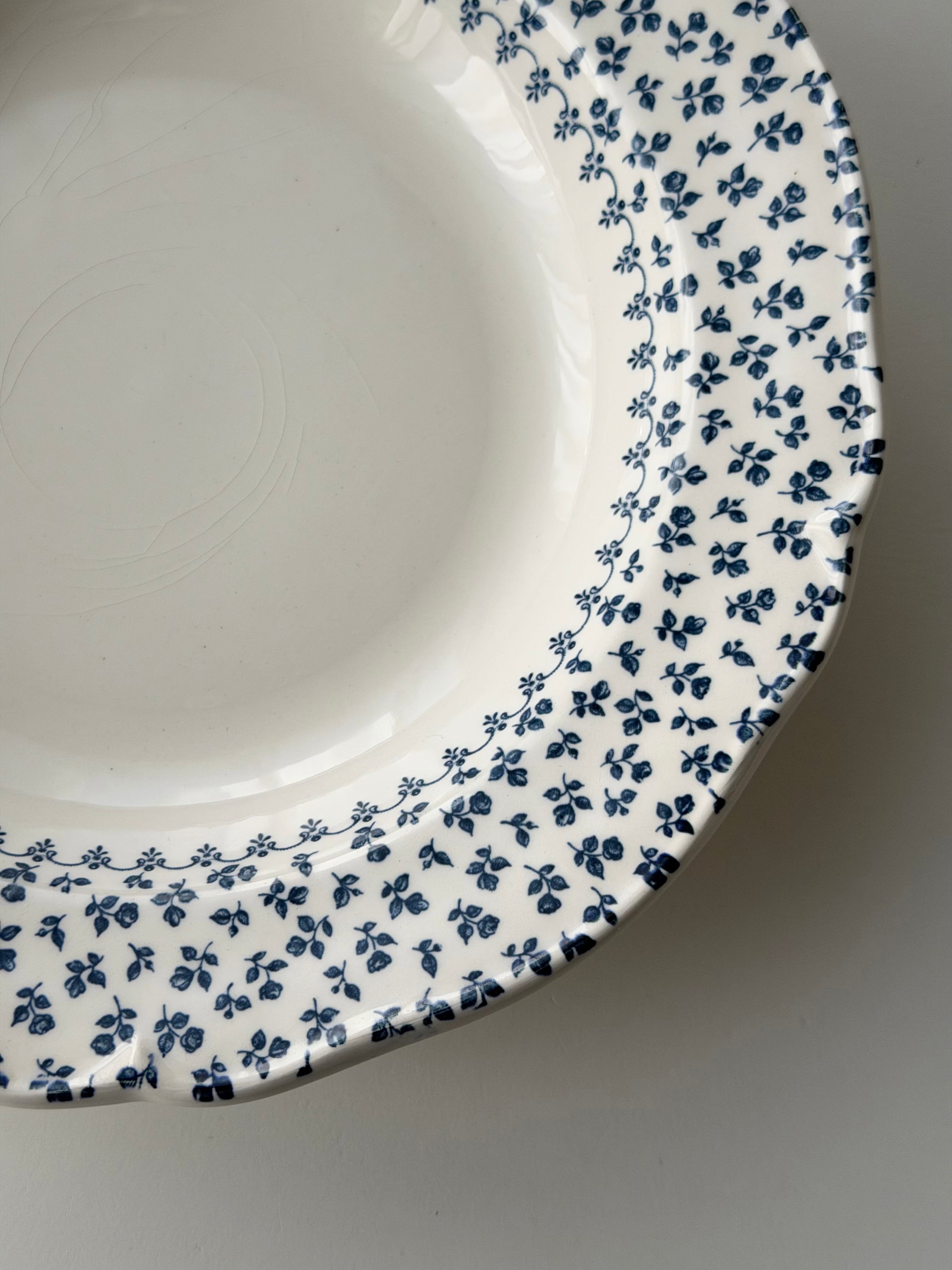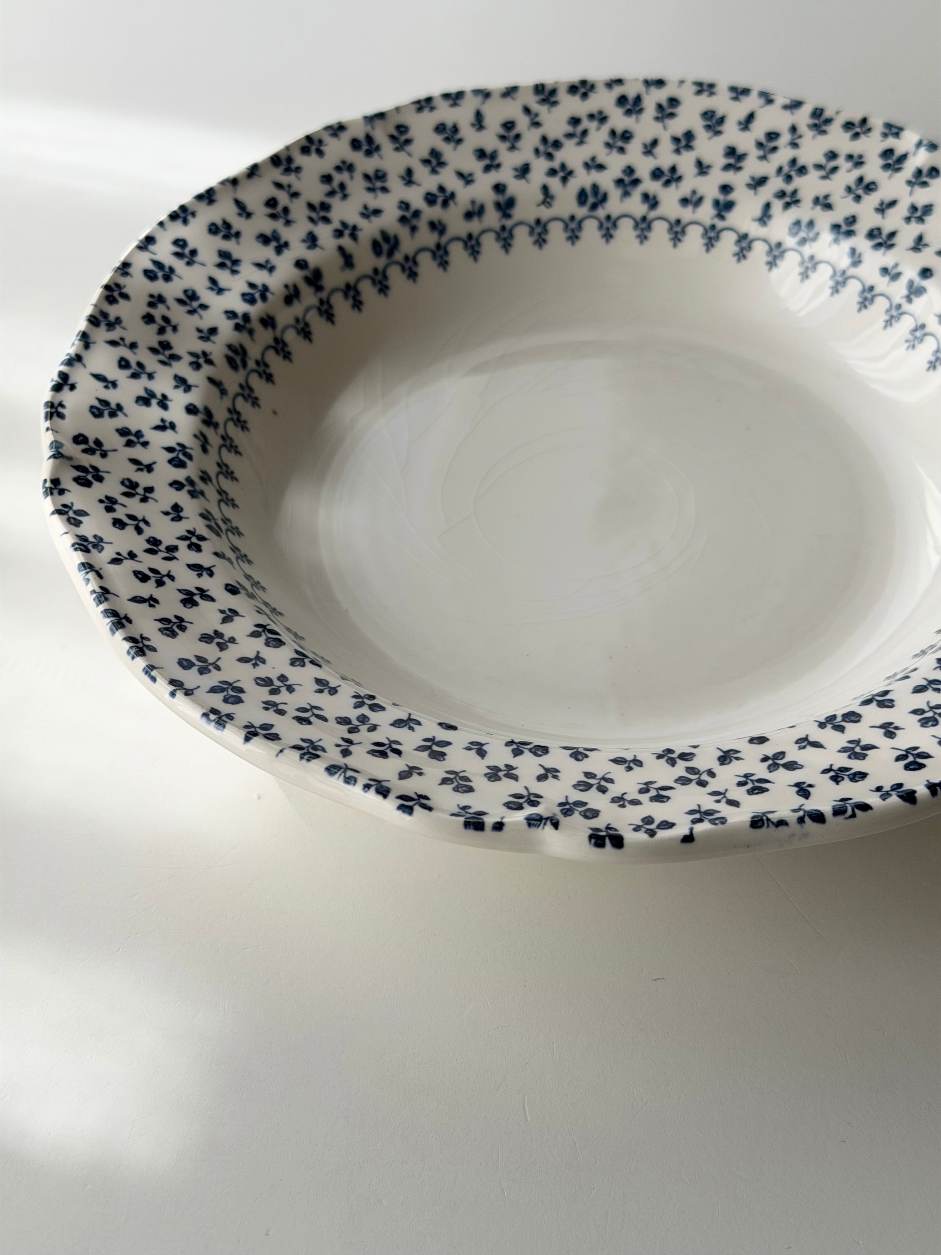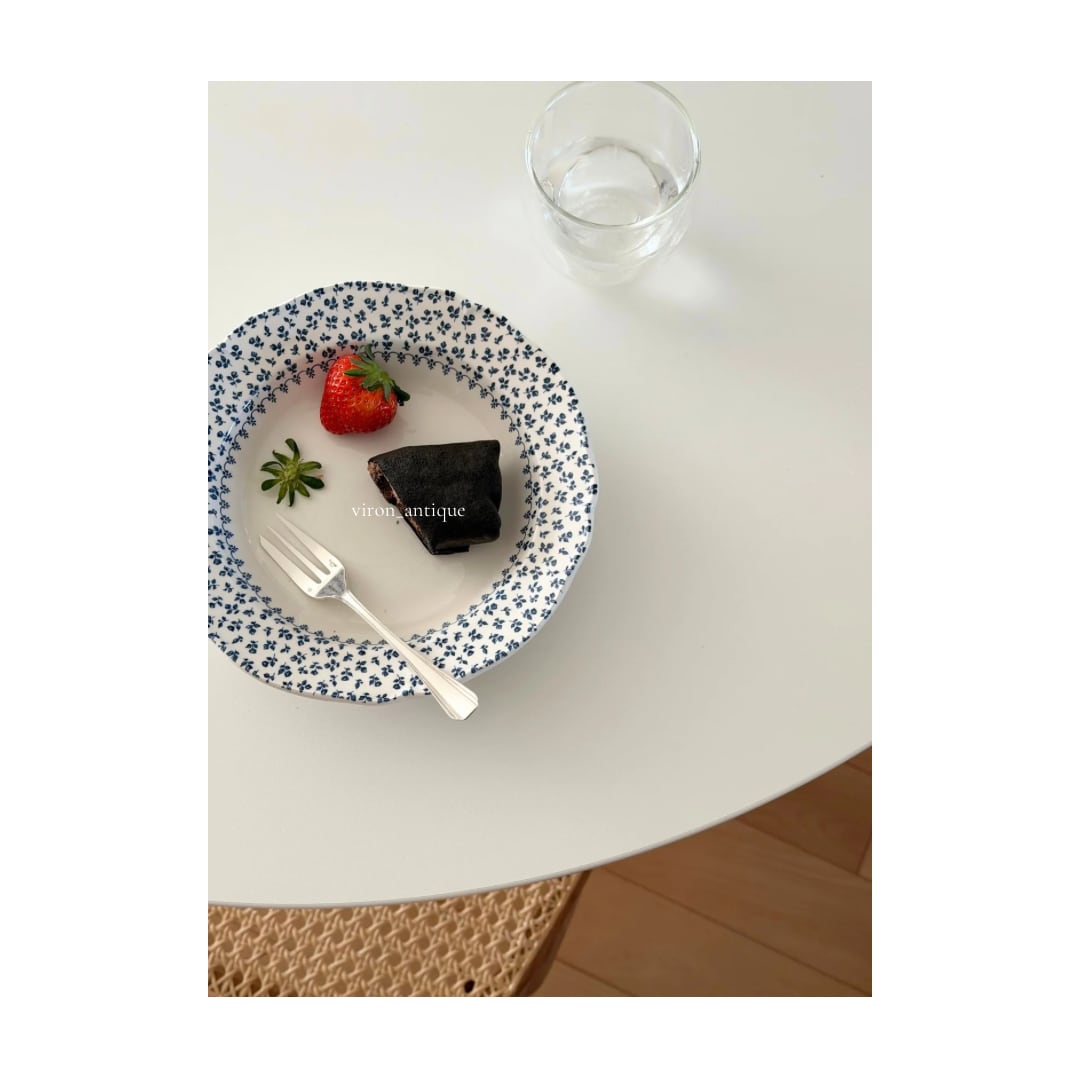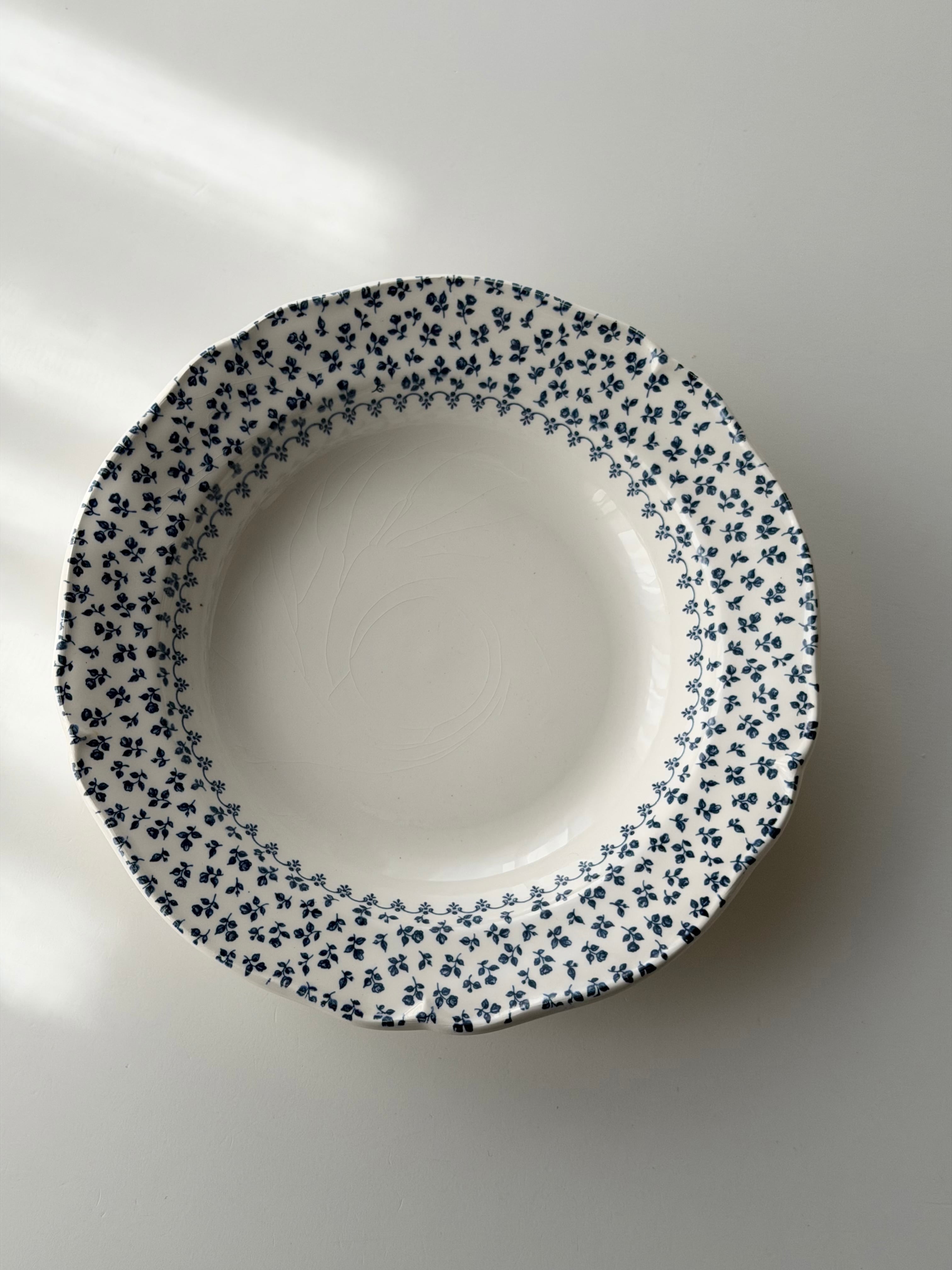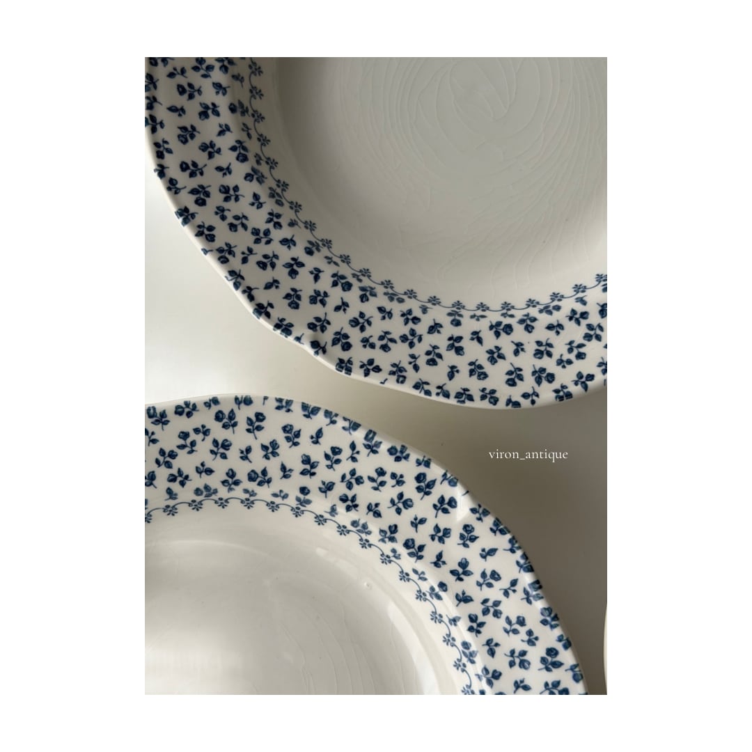 綺麗な白地に青の小花がリムいっぱいに広がる1枚です。