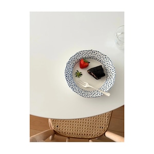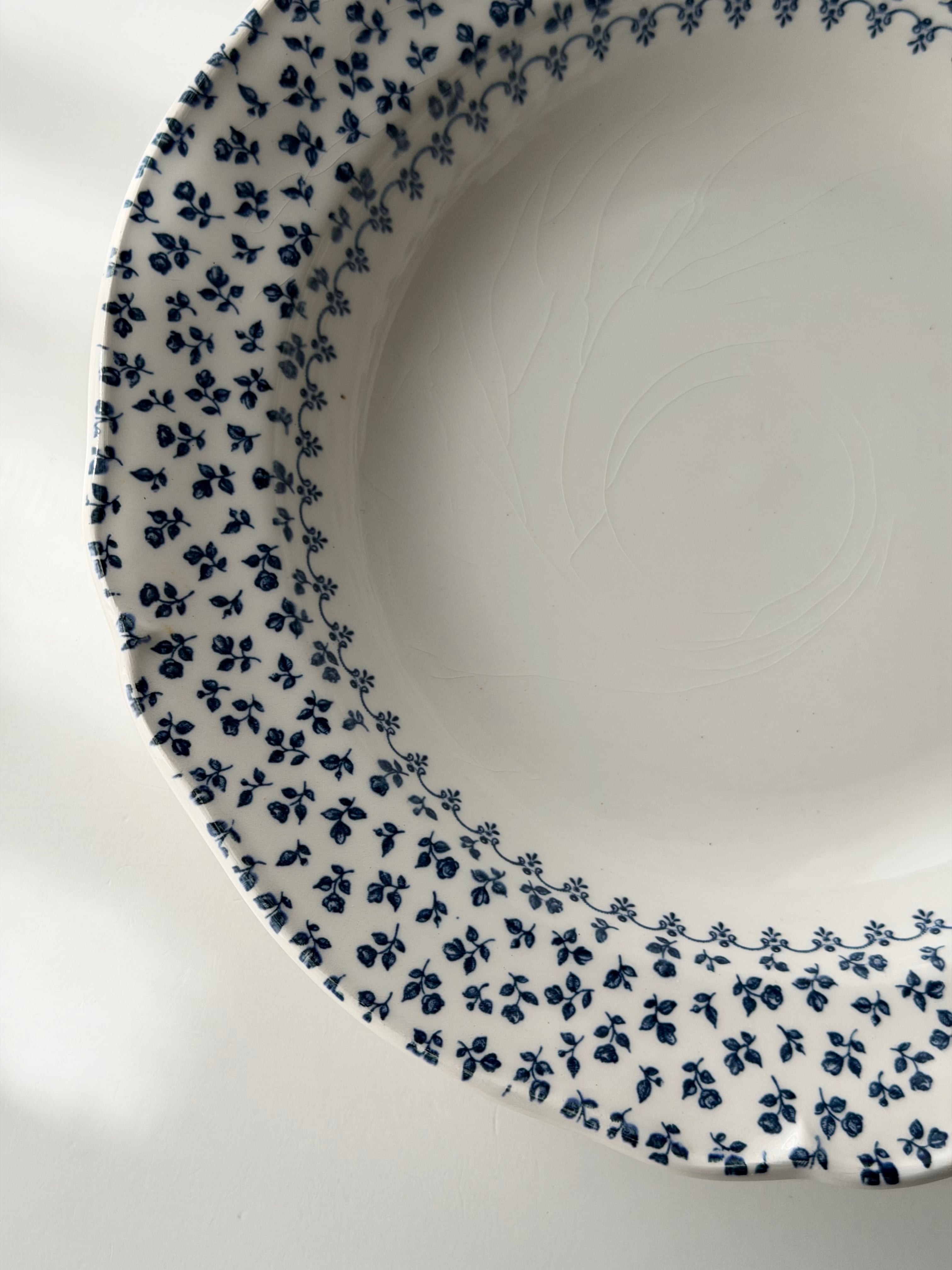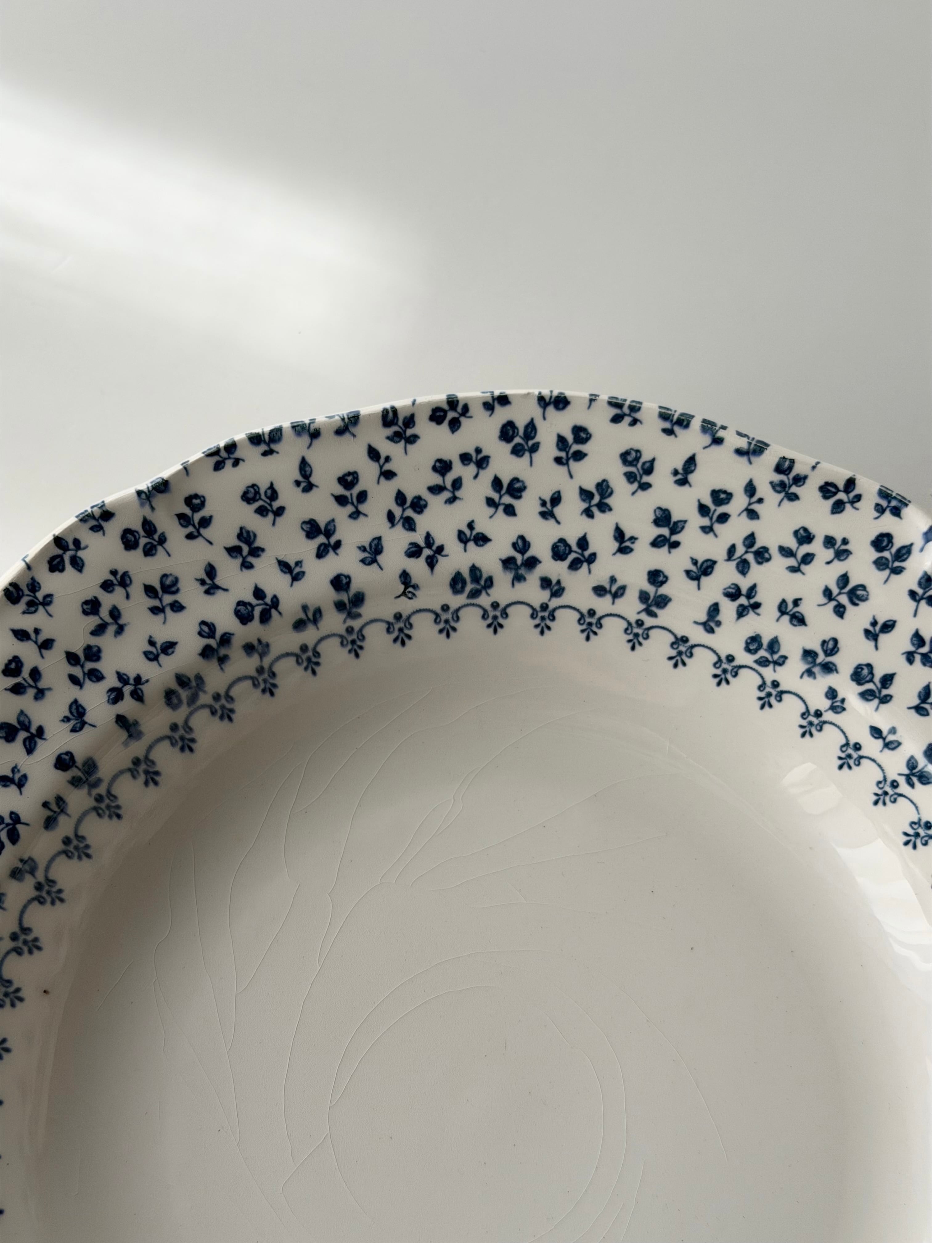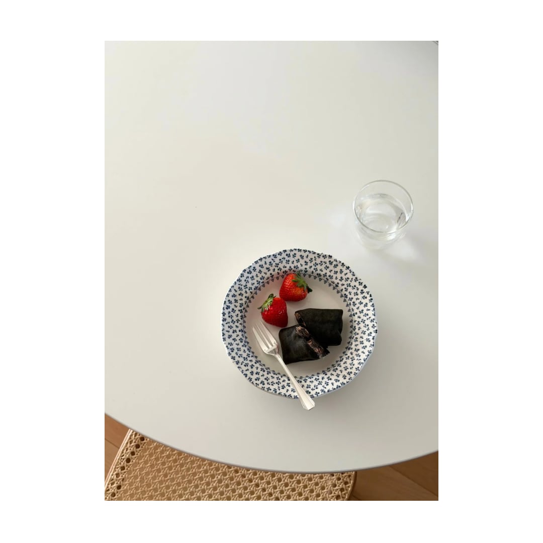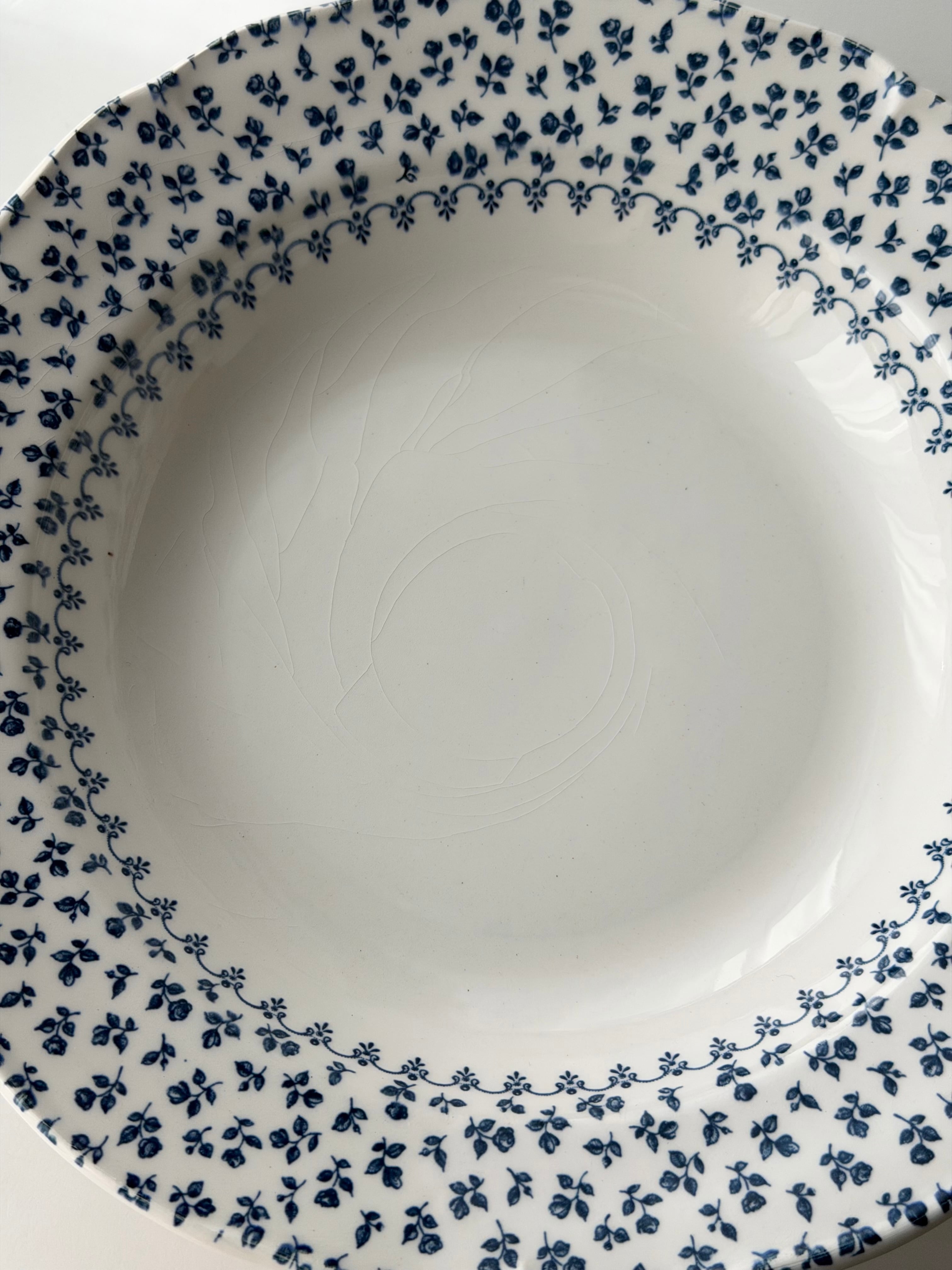 綺麗な白地に青の小花がリムいっぱいに広がる1枚です。