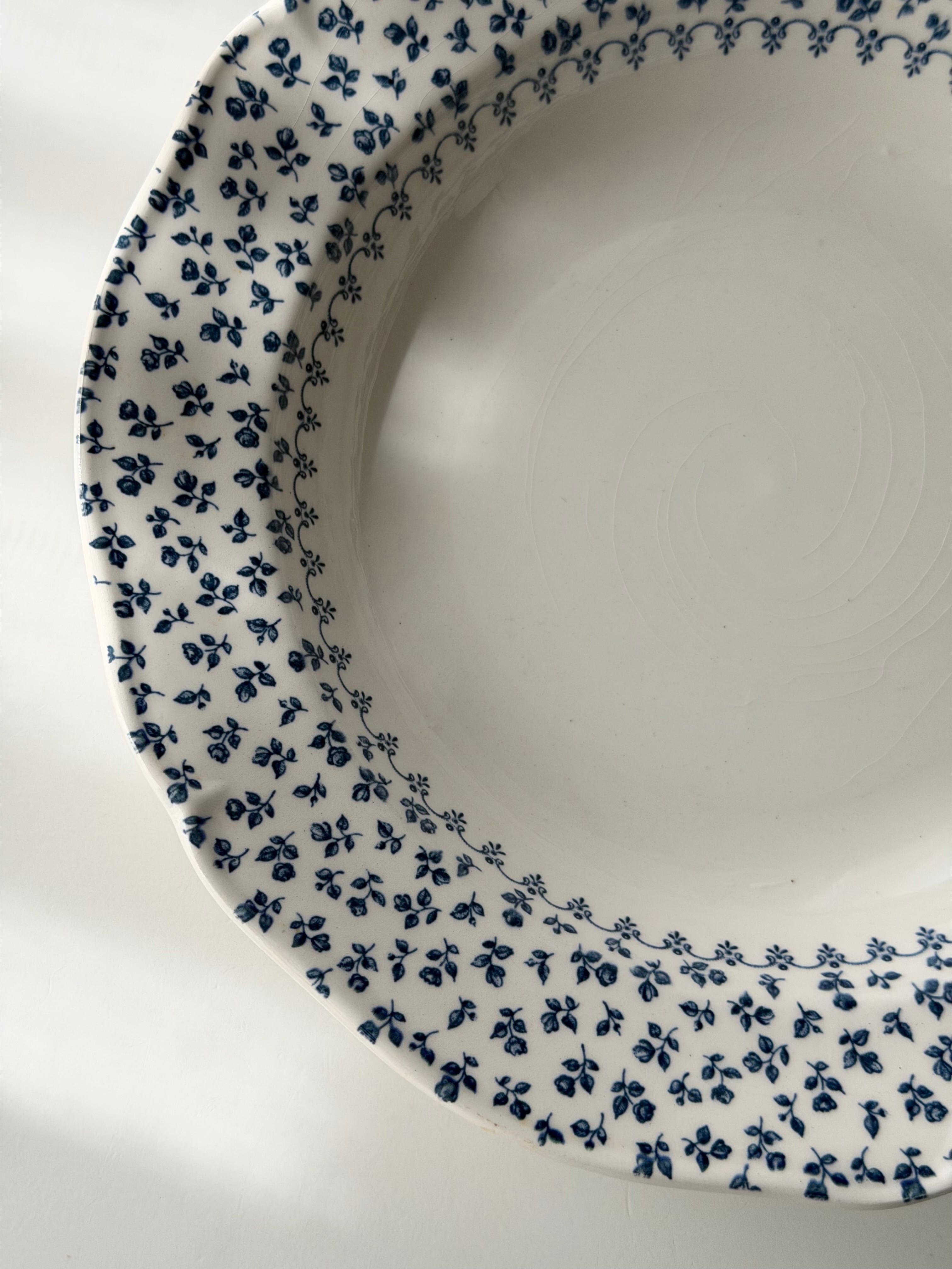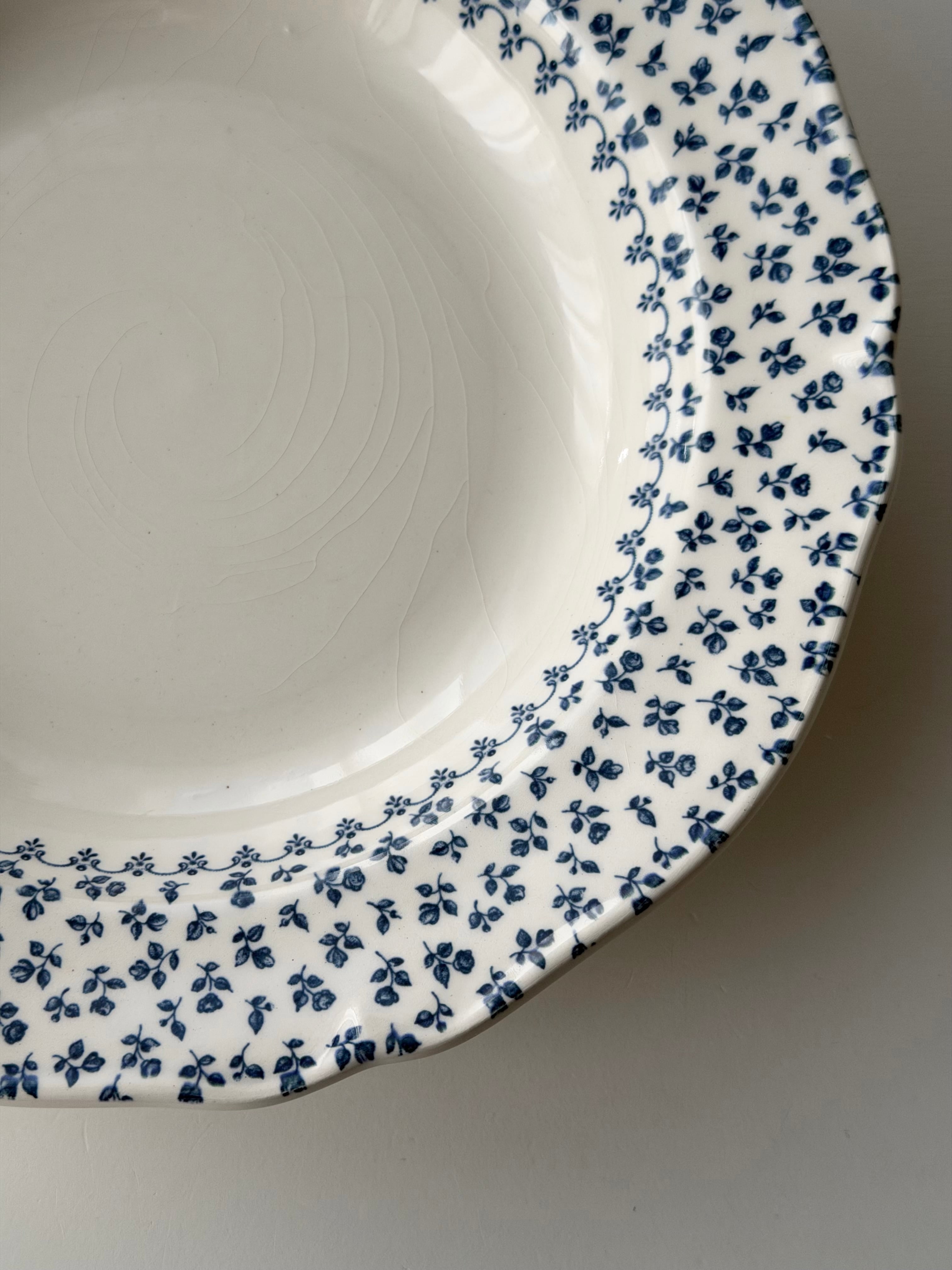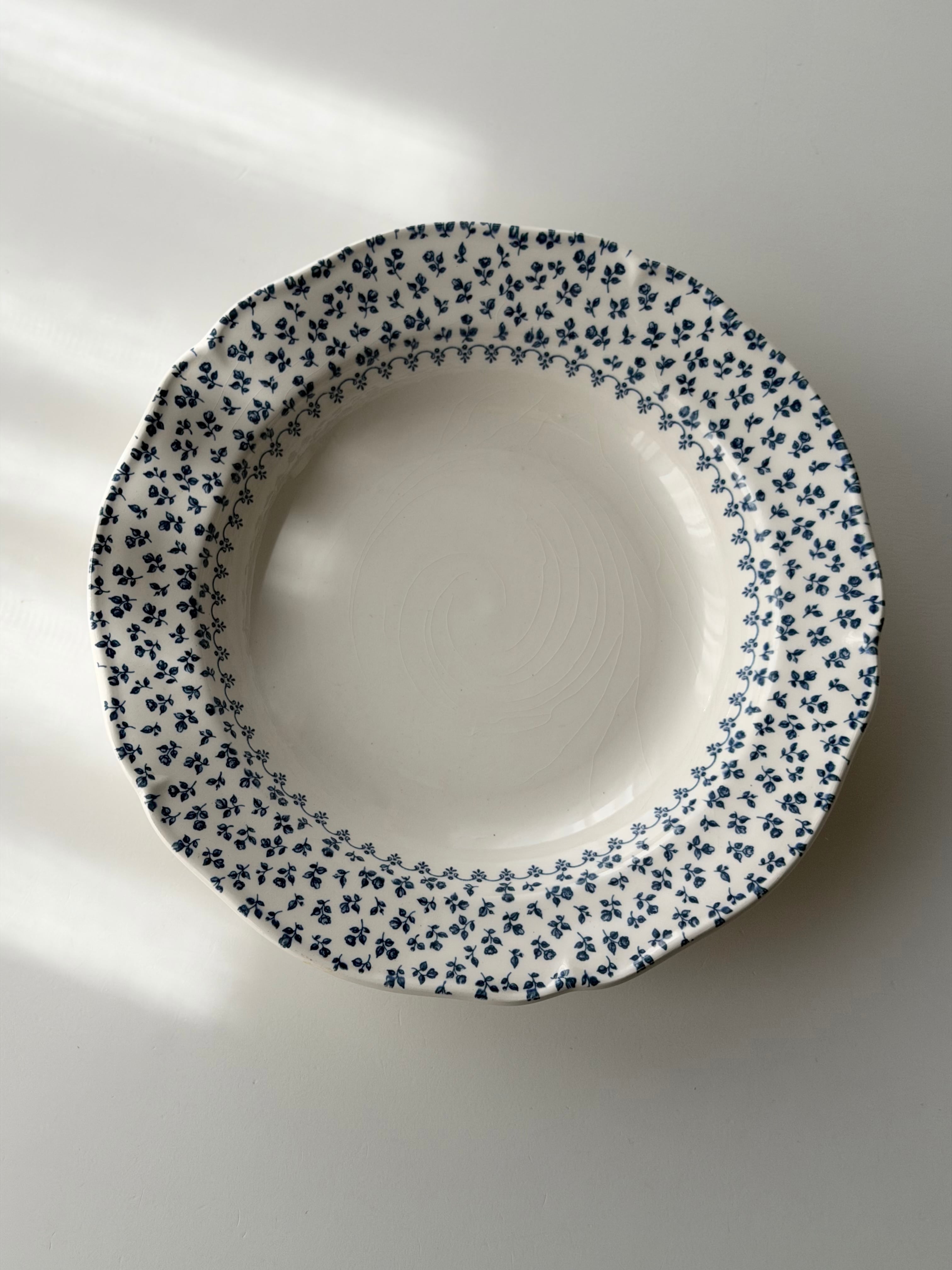綺麗な白地に青の小花がリムいっぱいに広がる1枚です。