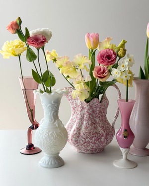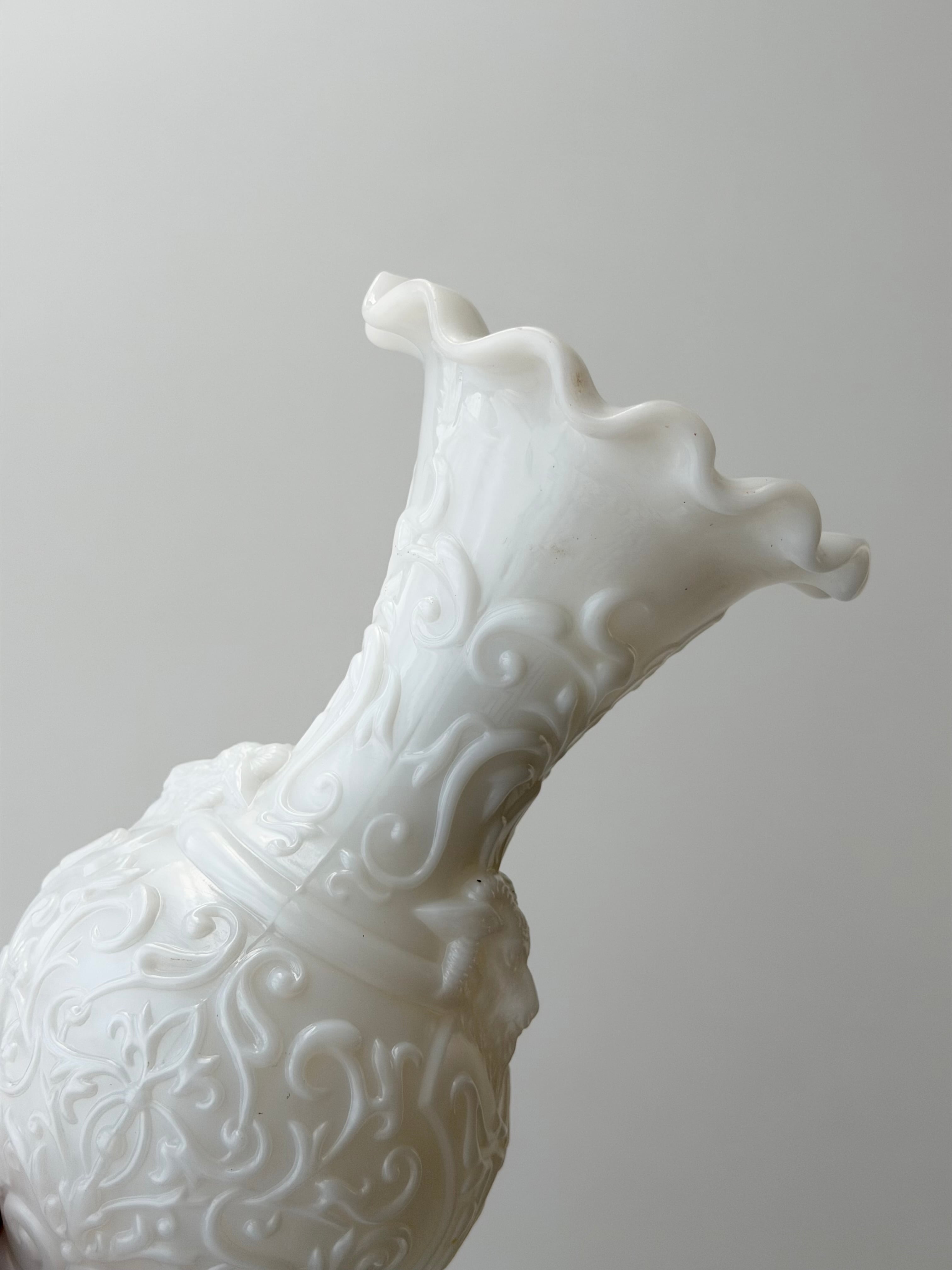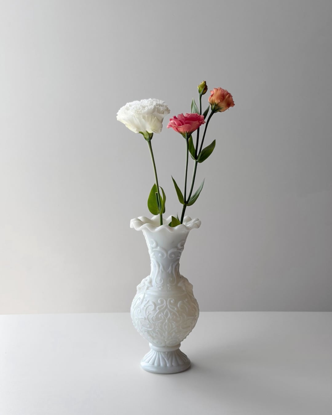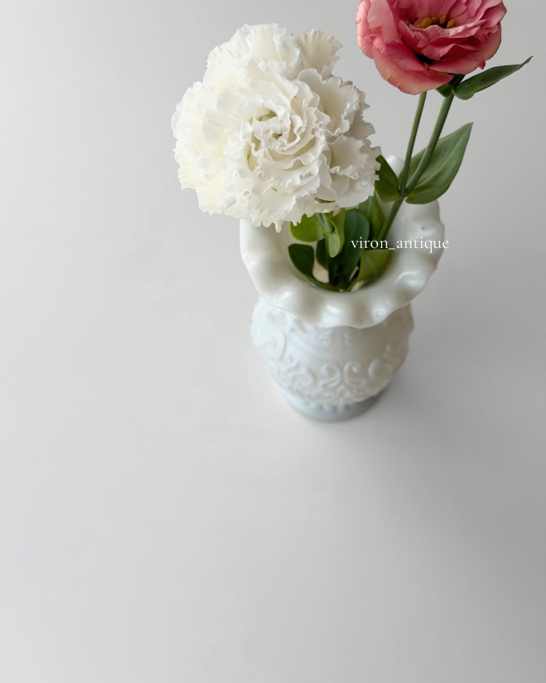 フランスにて買い付けた、Portieuxによるオパリンガラスのフラワーベースです。