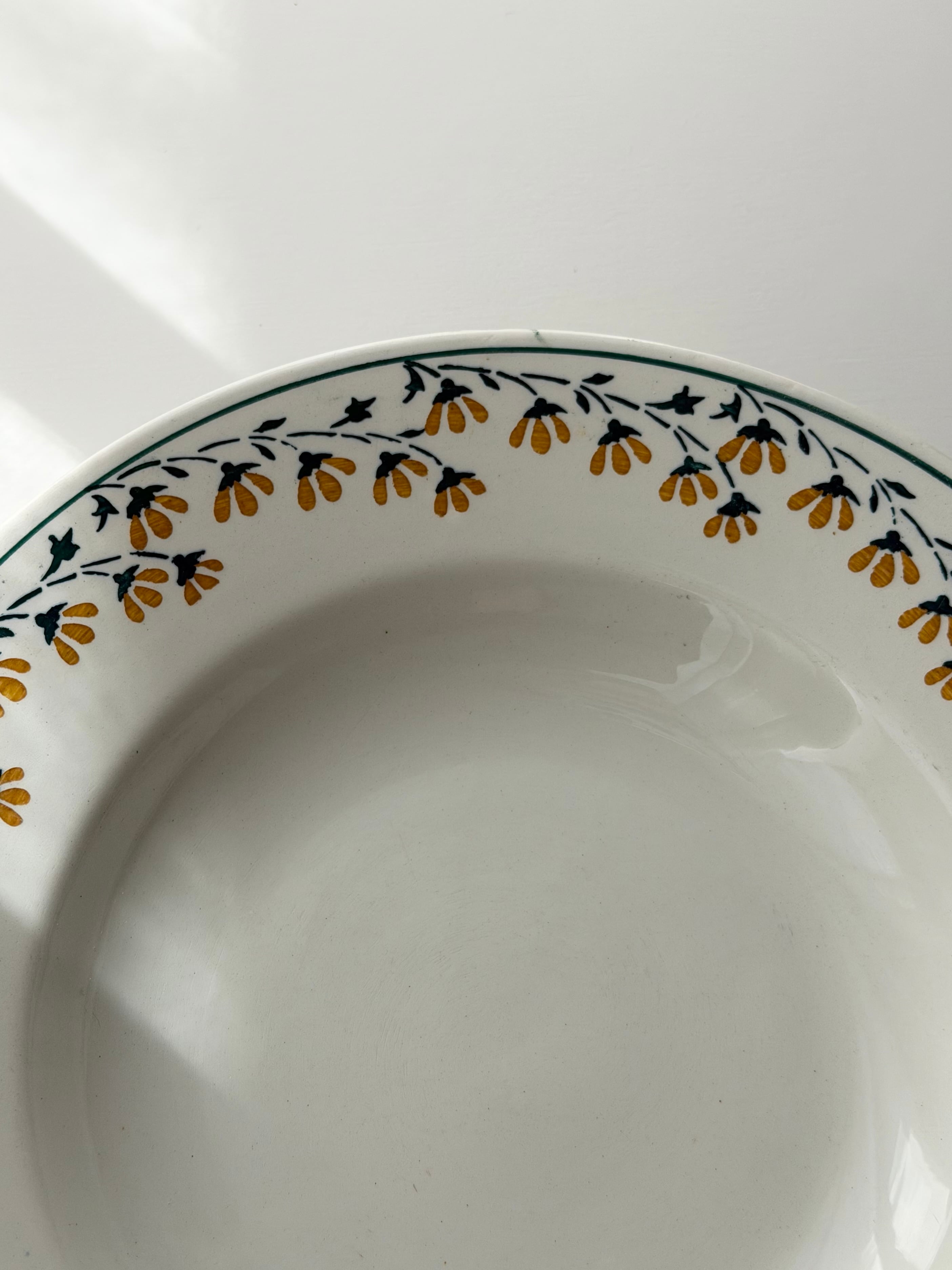 リムをぐるりと、小さな黄色の花が彩るデザイン。