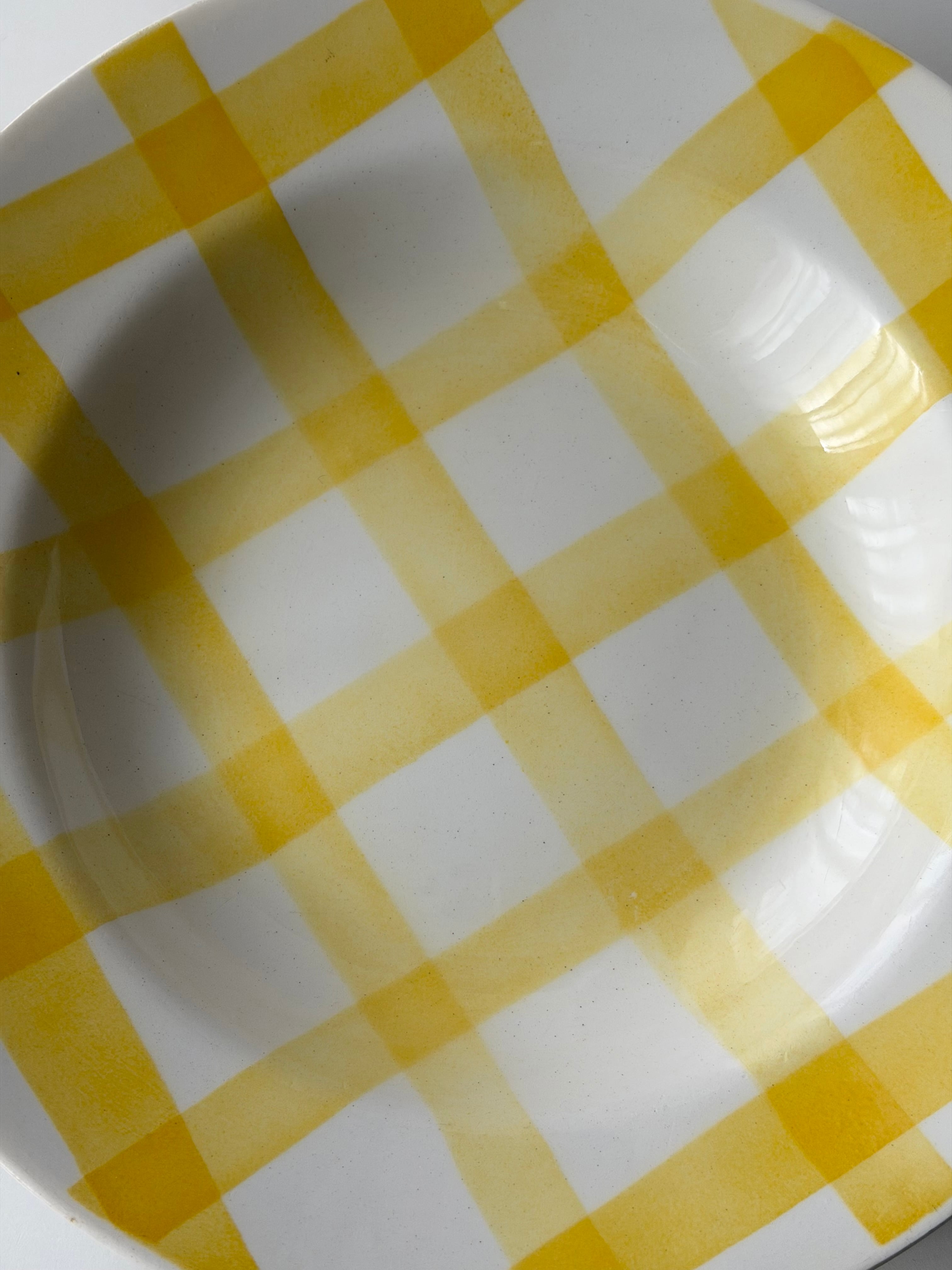 ビタミンカラーのイエローと、ミルキーなホワイトのギンガムチェックです。