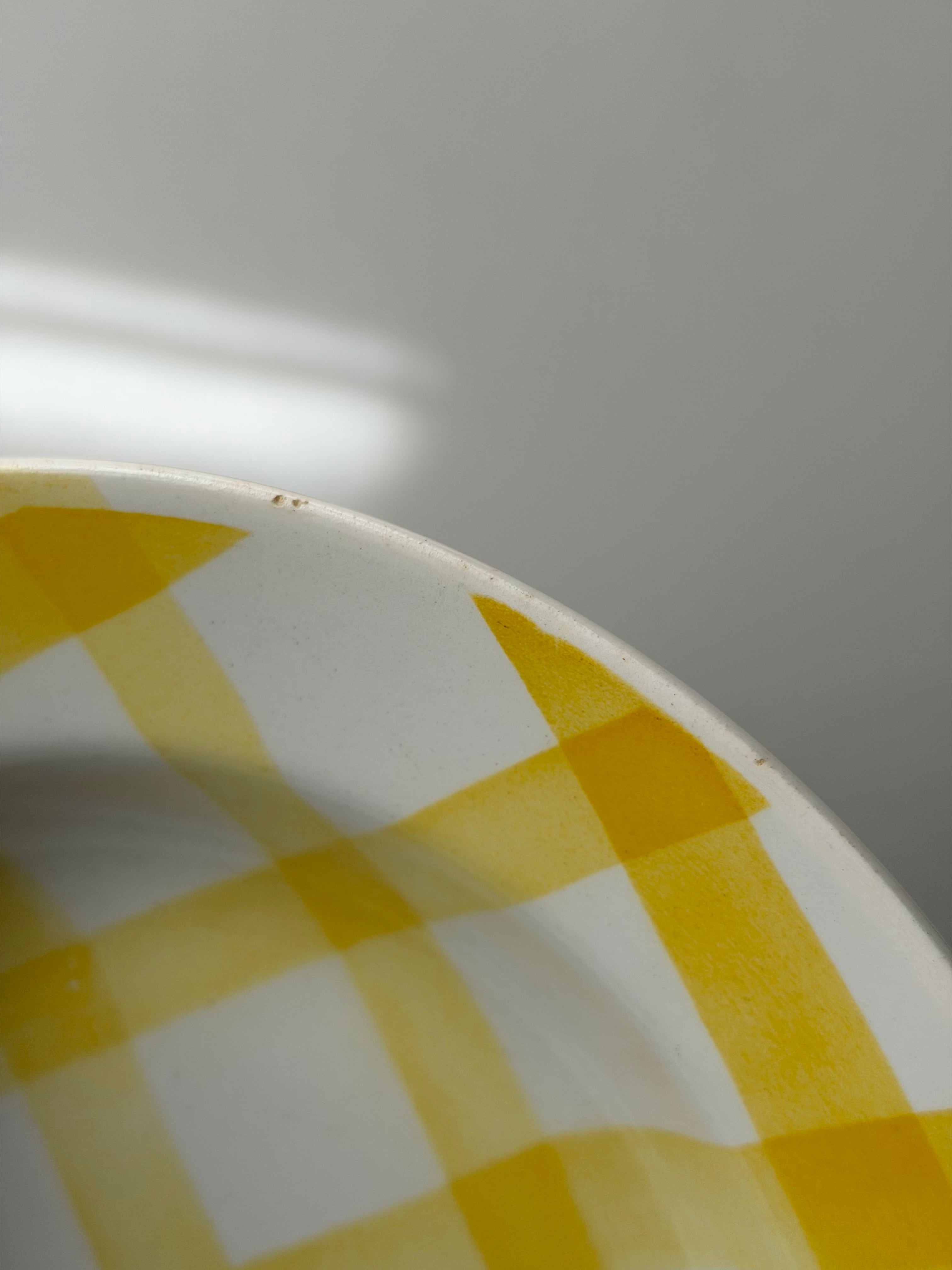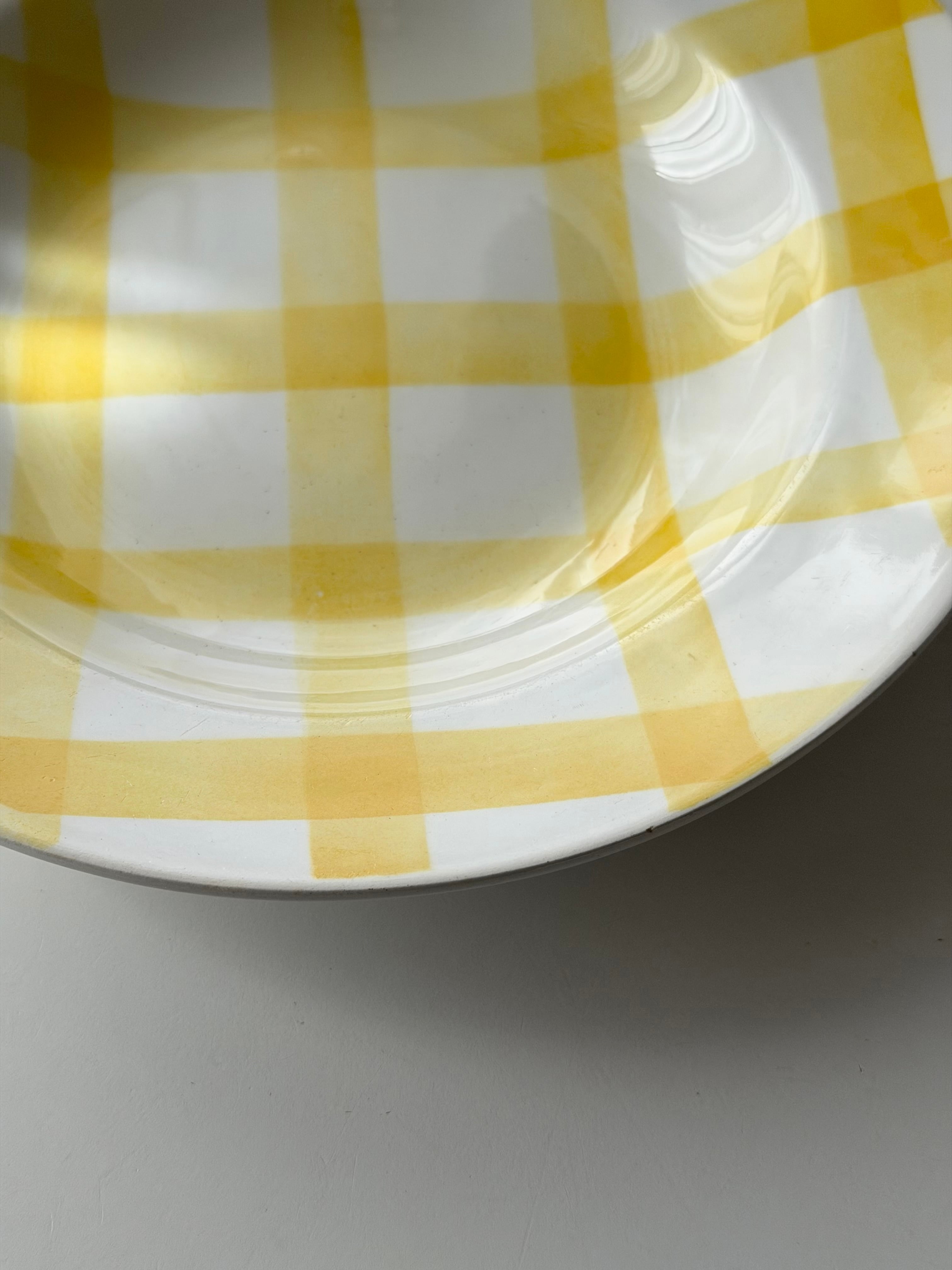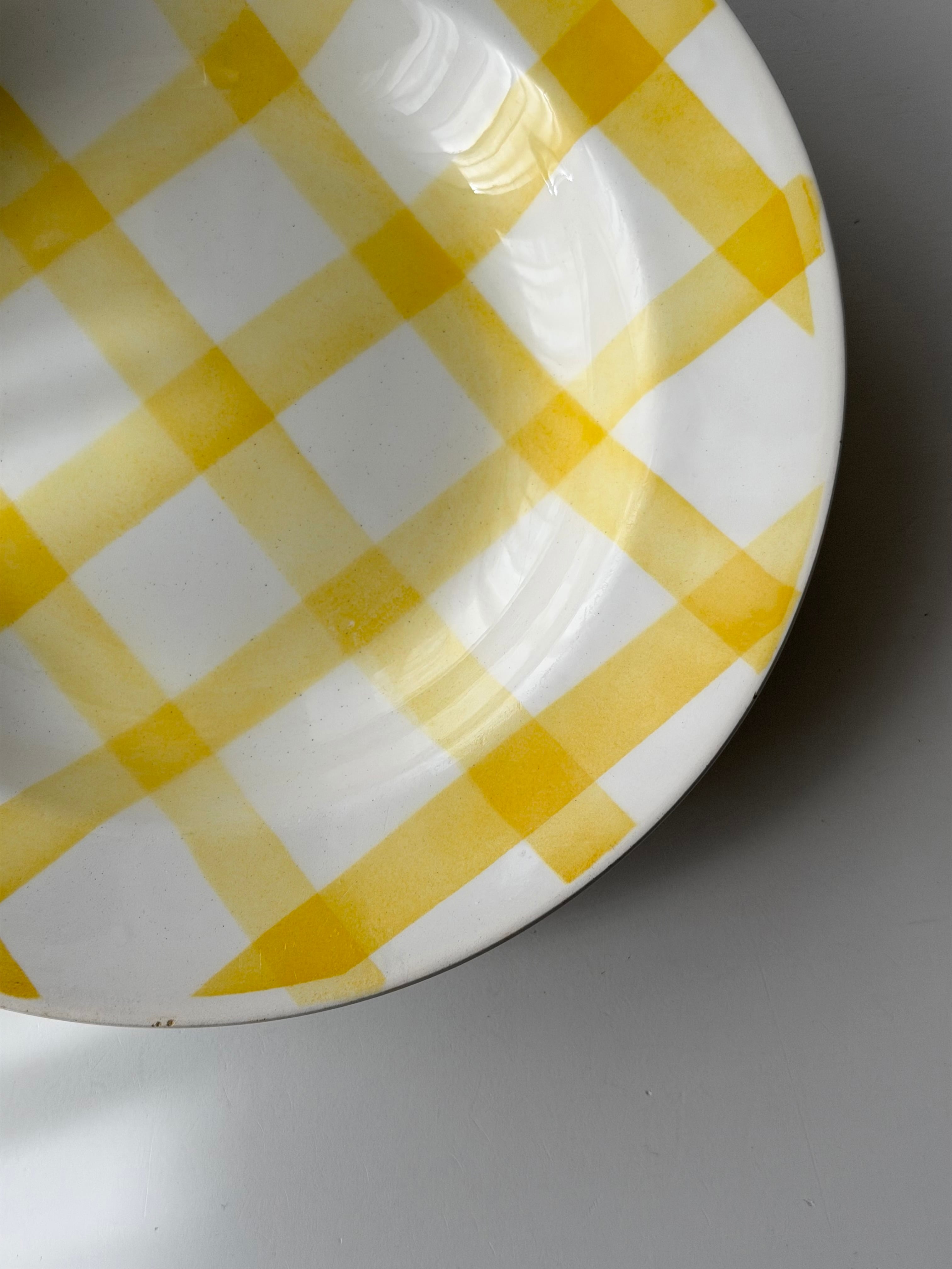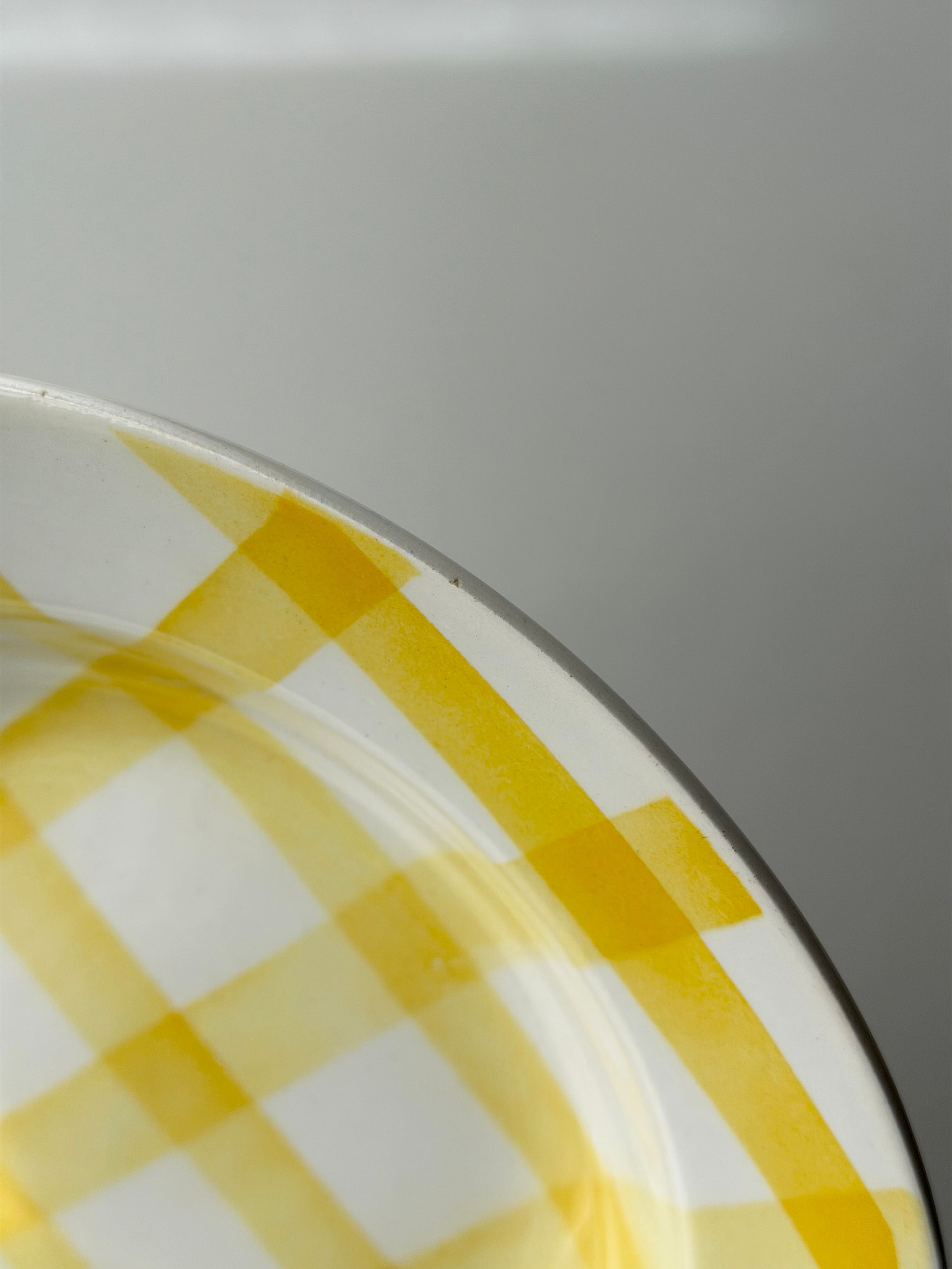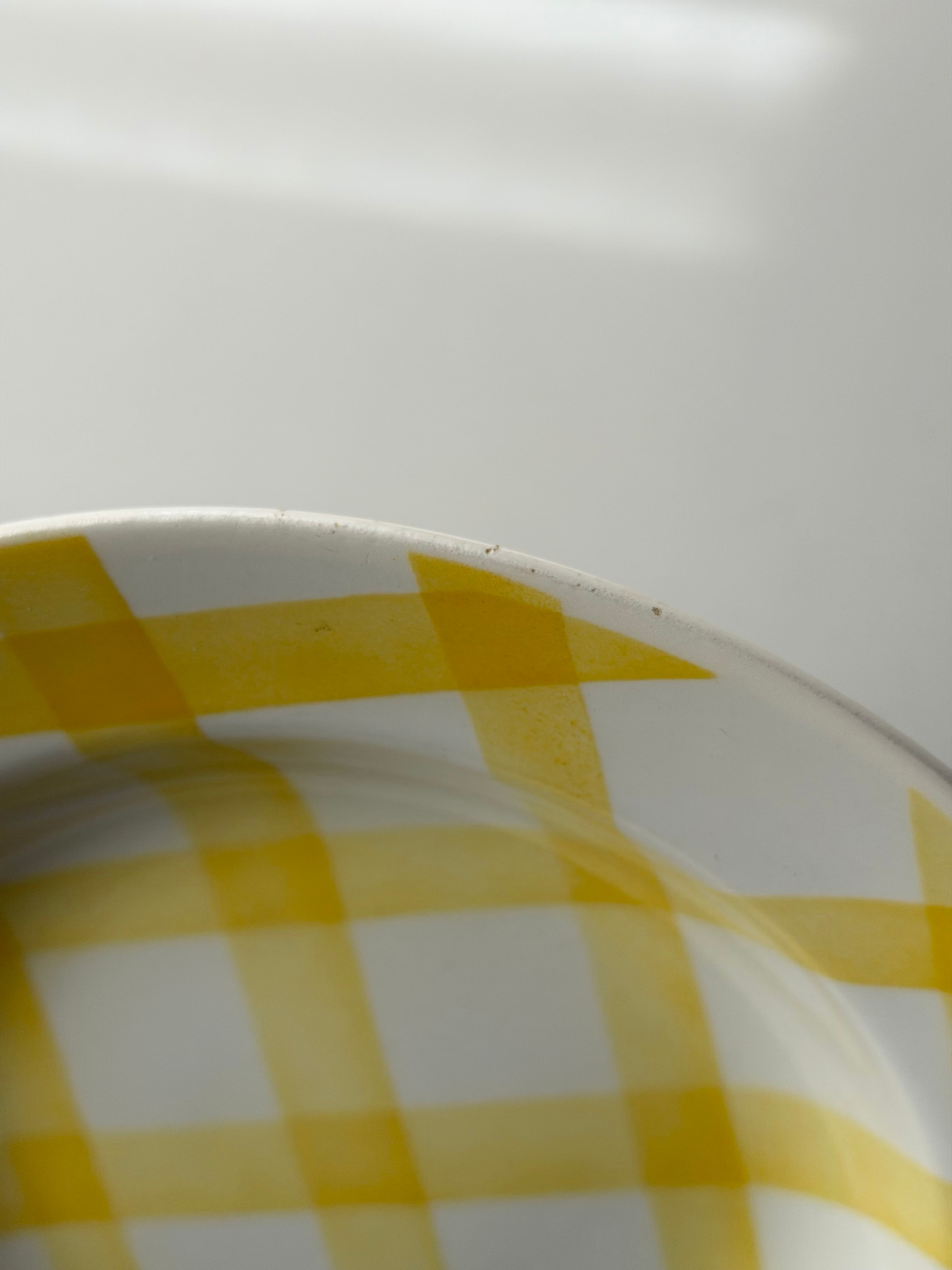 フランス ムーランデルー窯よりチェック柄のポップなプレート。