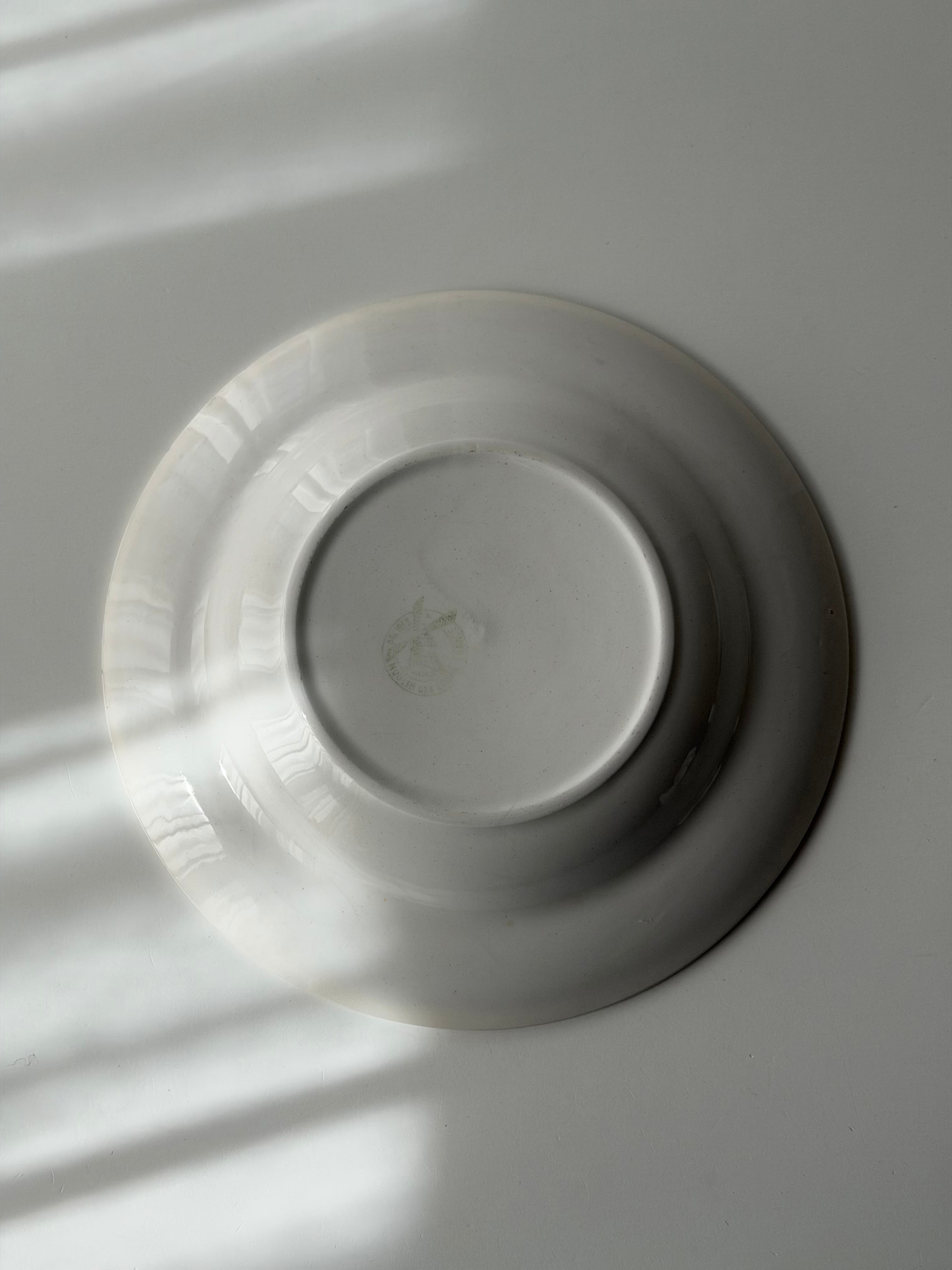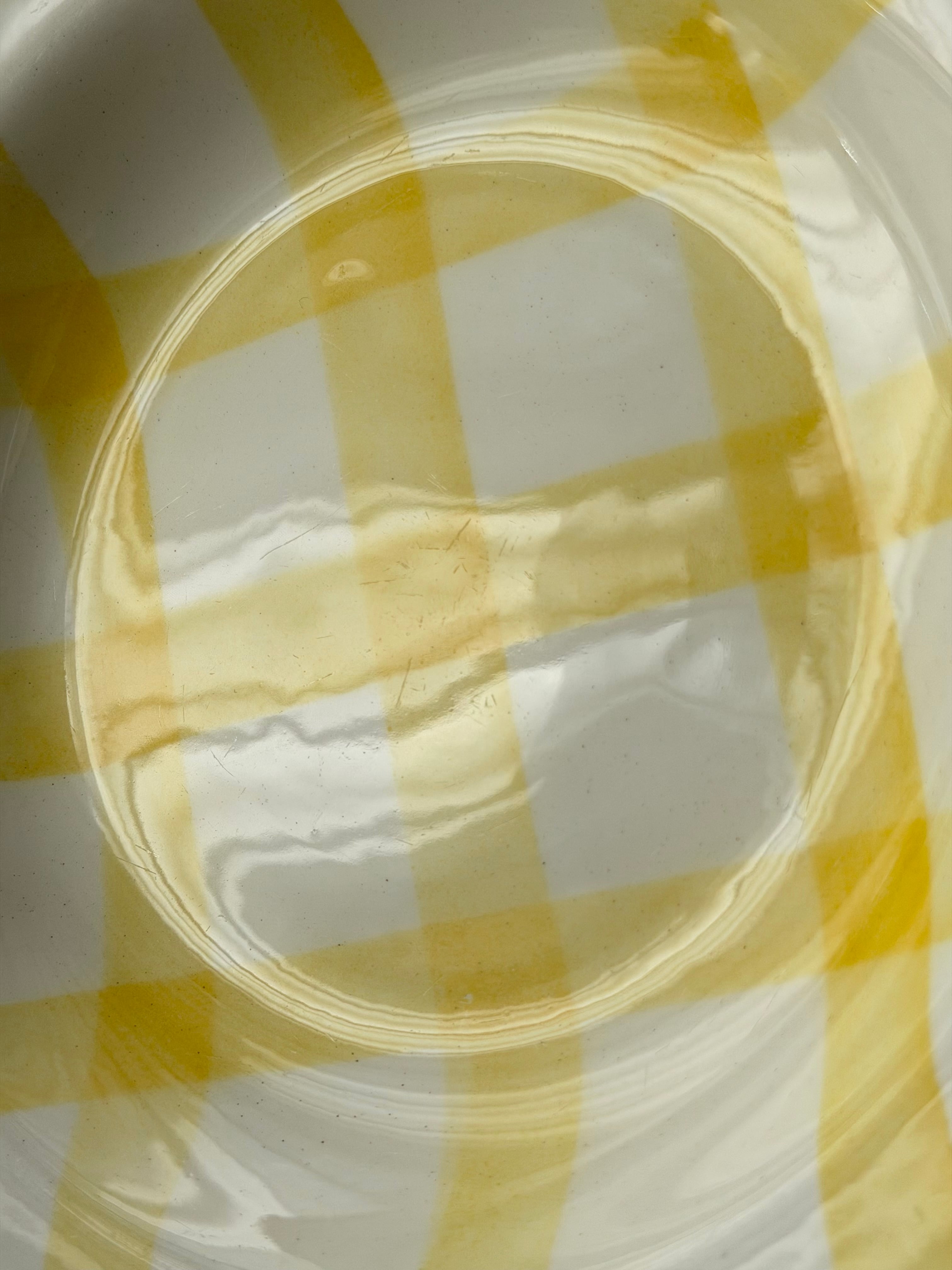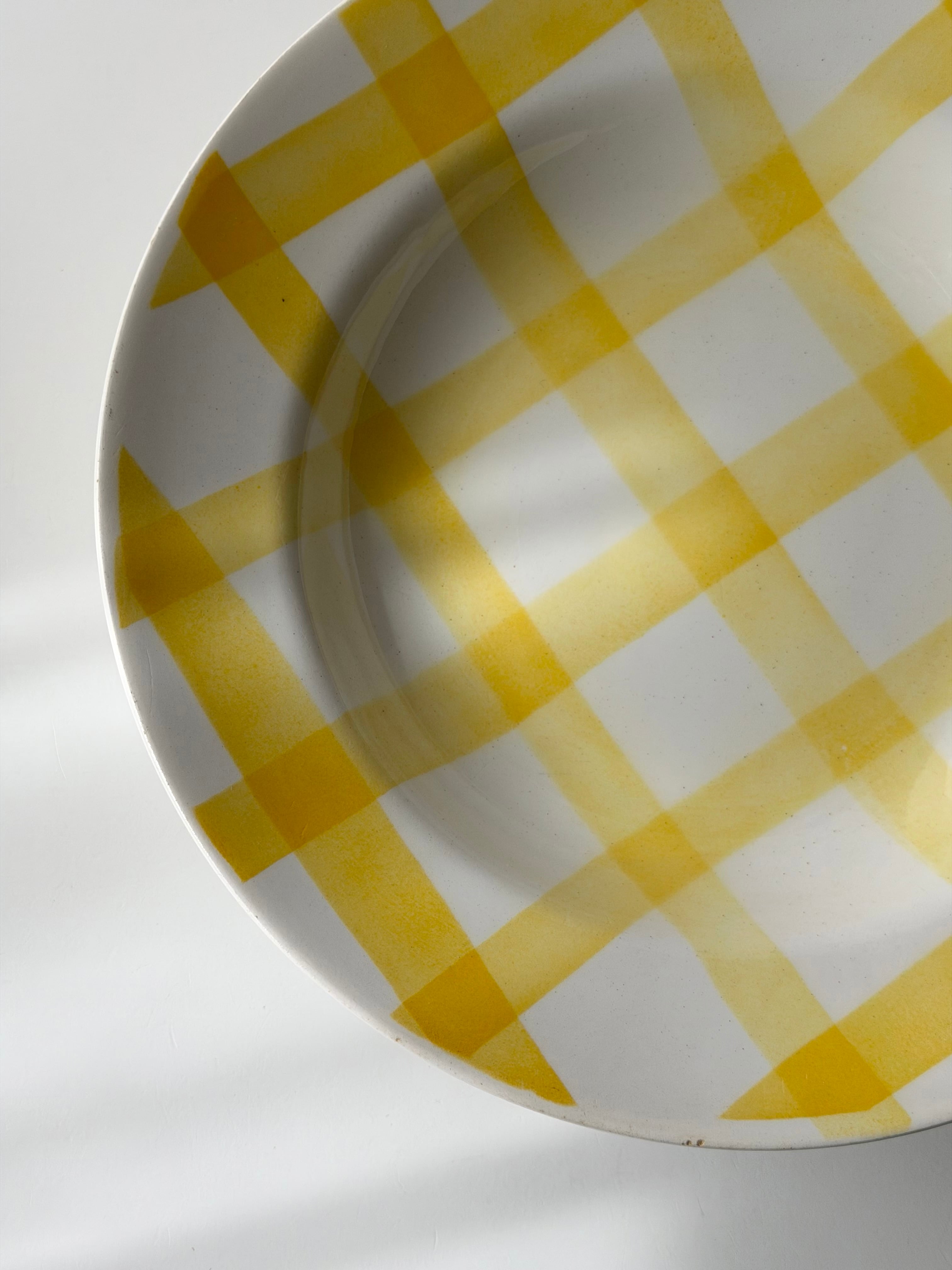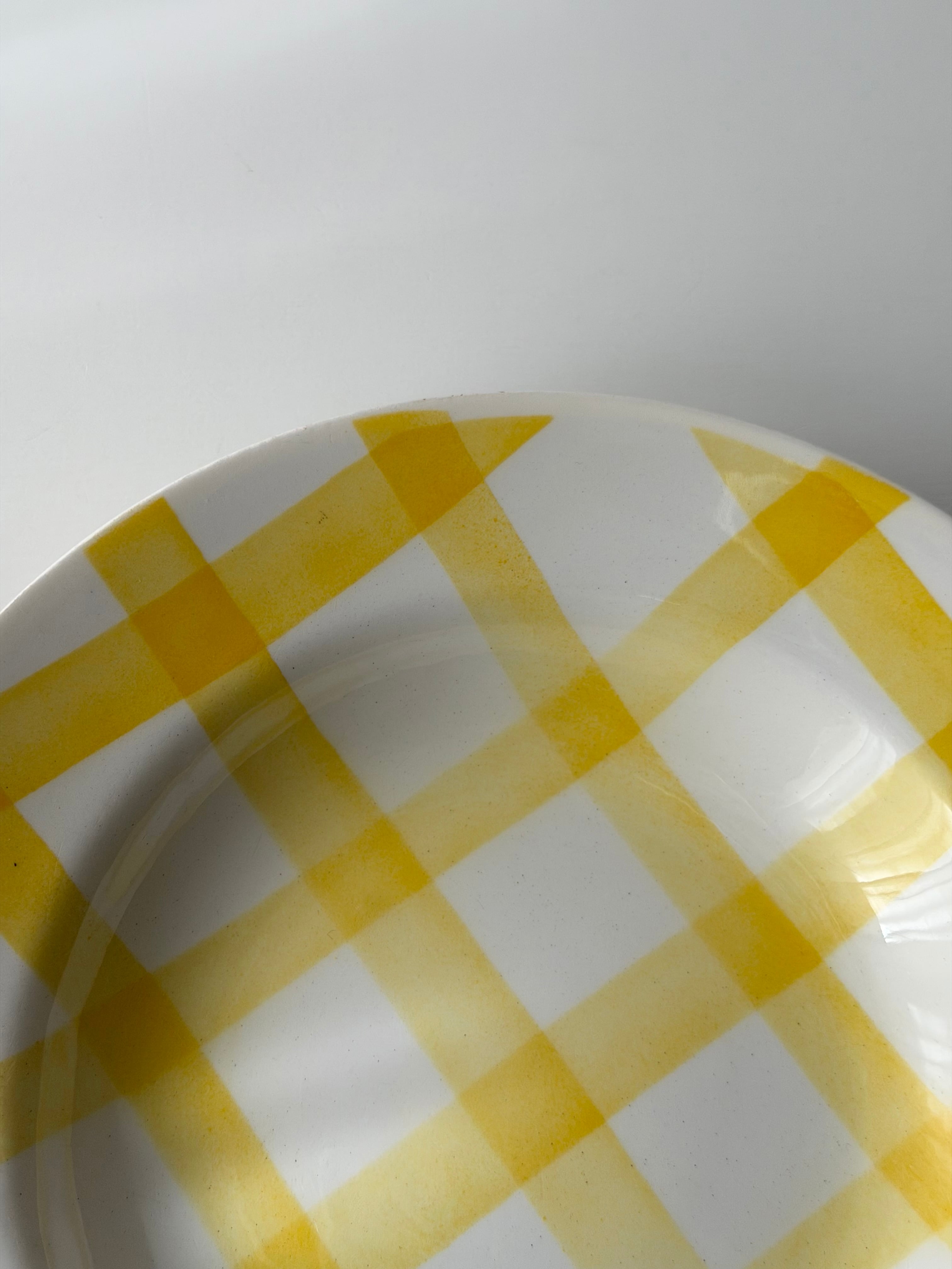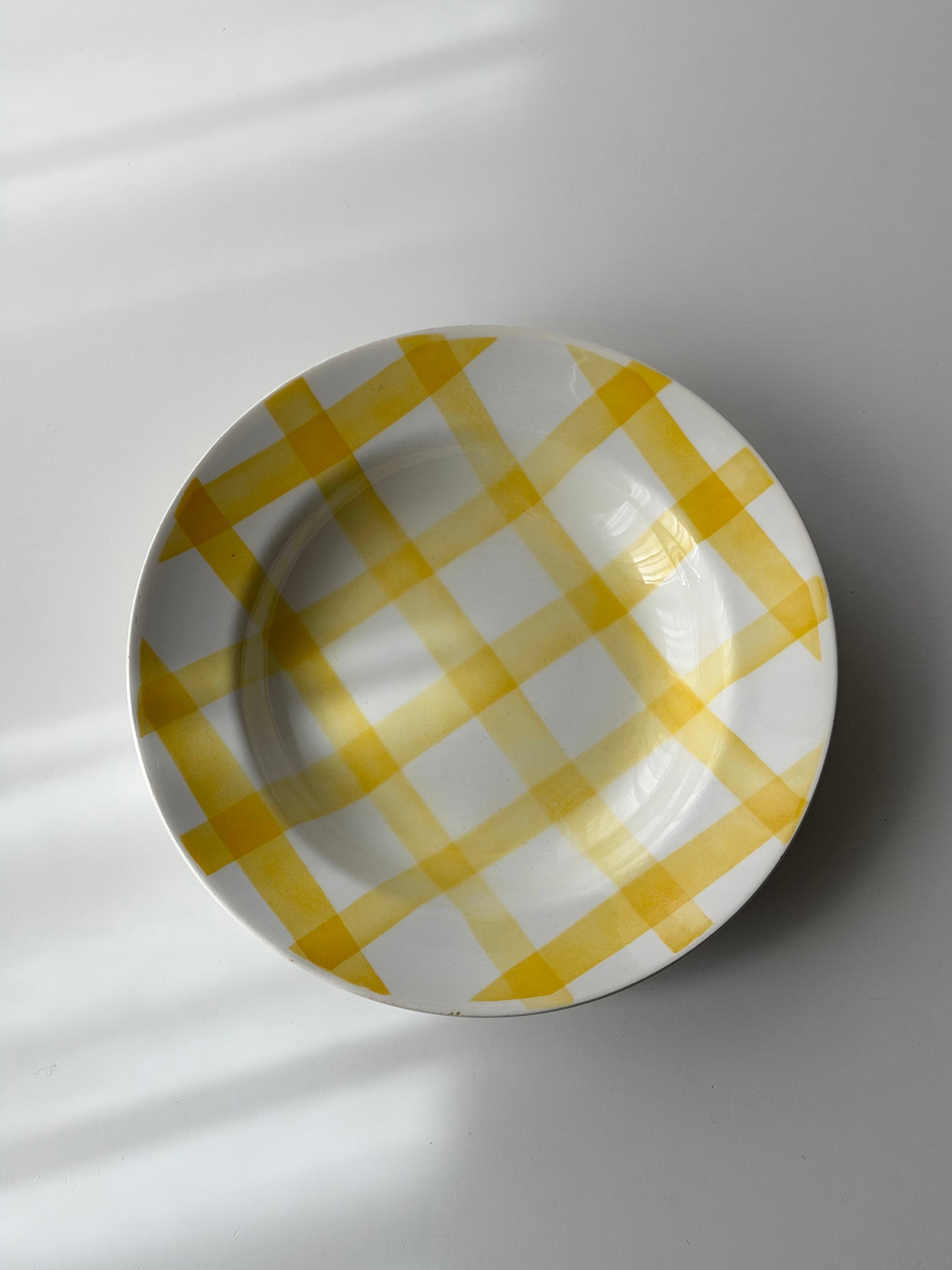 フランス ムーランデルー窯よりチェック柄のポップなプレート。