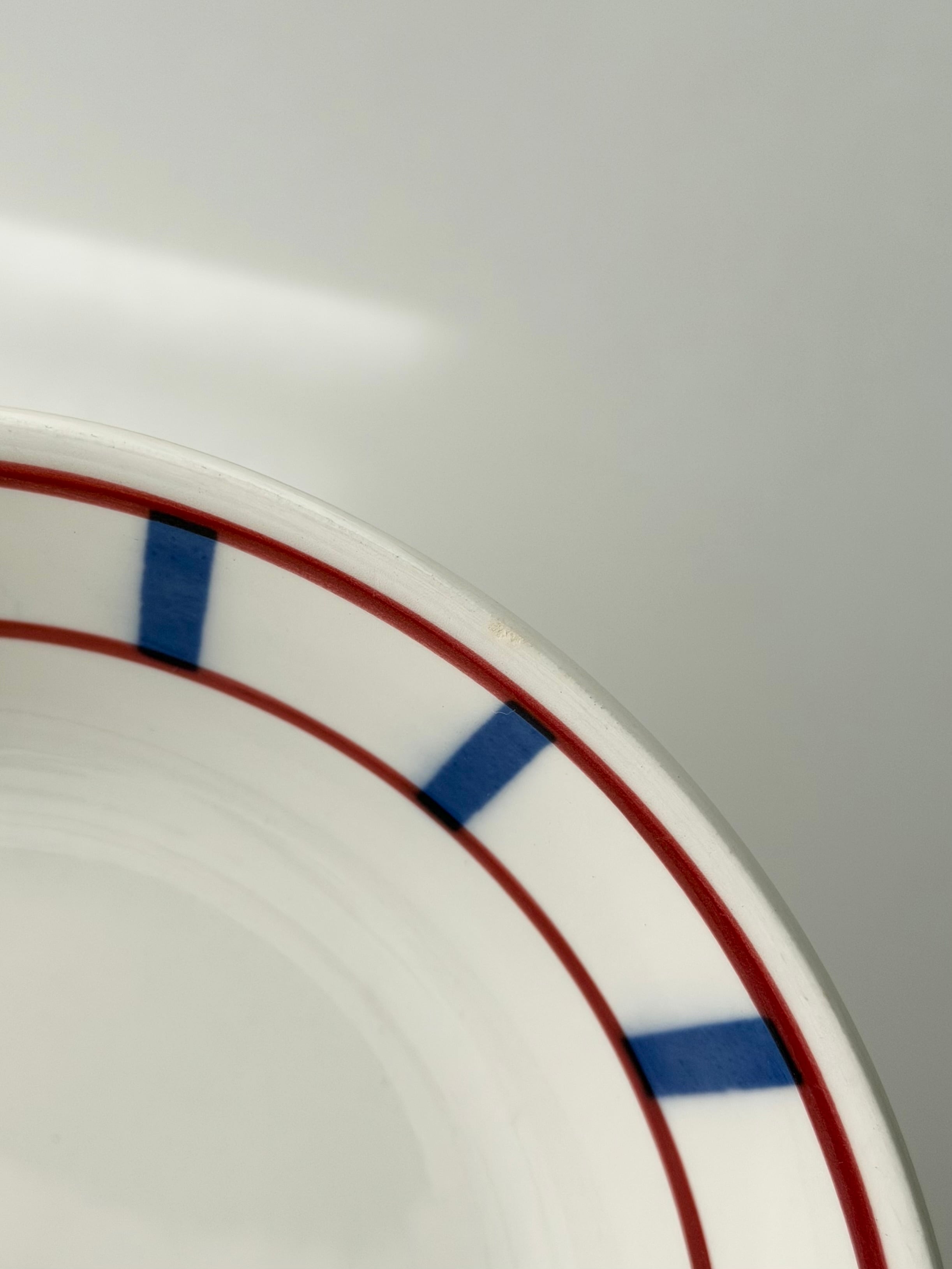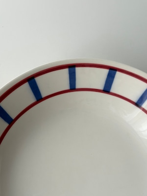 白の陶肌に赤と青がくっきりと映えたトリコロール模様、