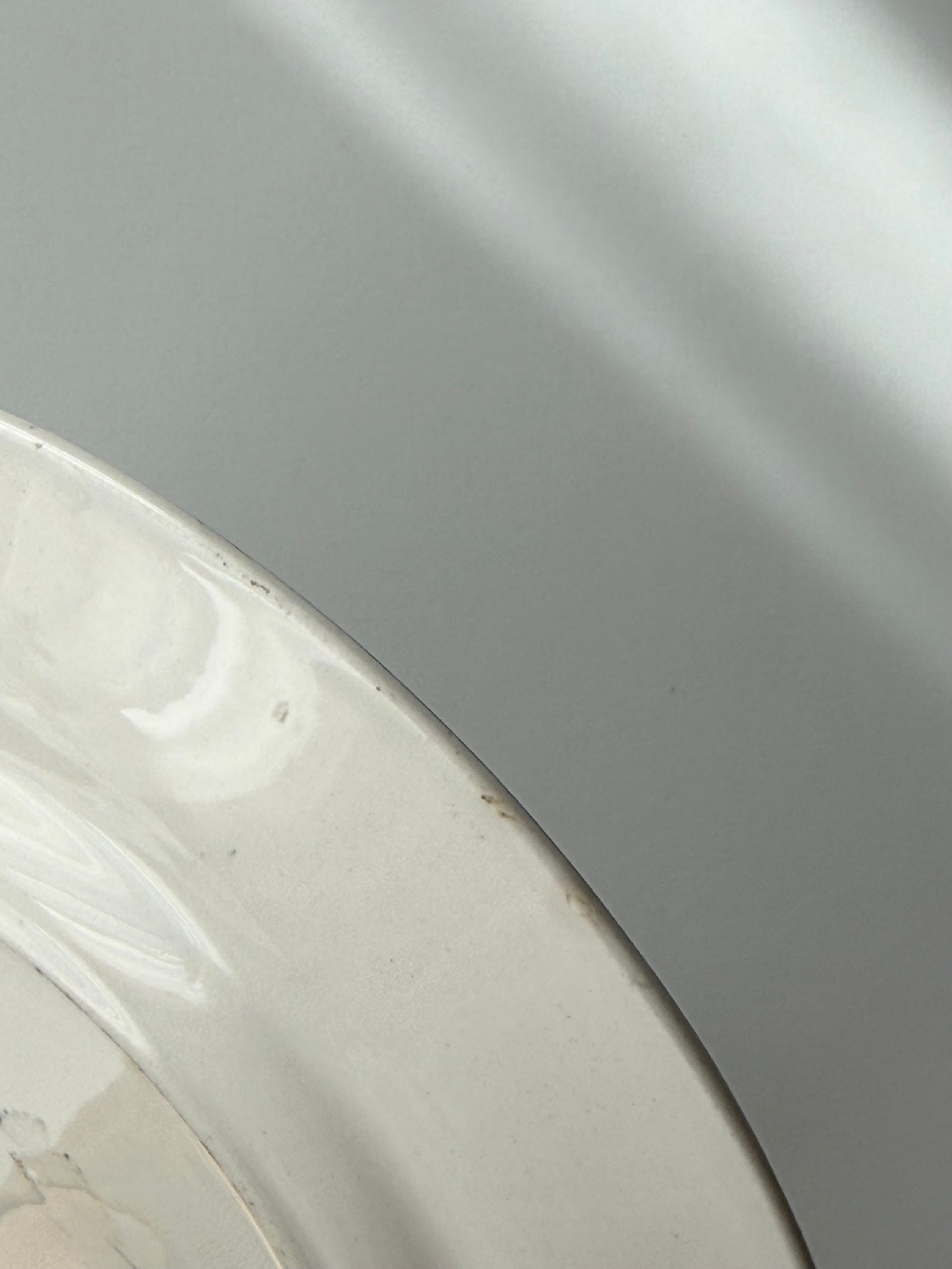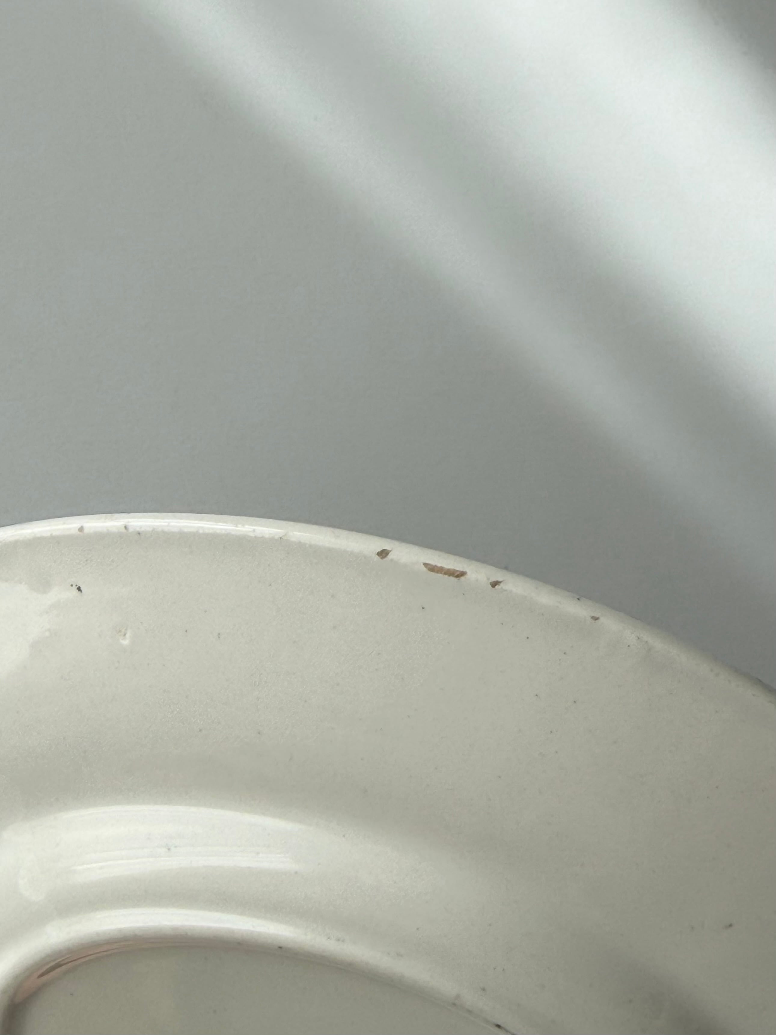 condition: 目立つ汚れや傷なし。エッジ周り、細かなキズ/チップあり。表面に1点膨らんだ窯傷あり。全体的につややかな美品です。