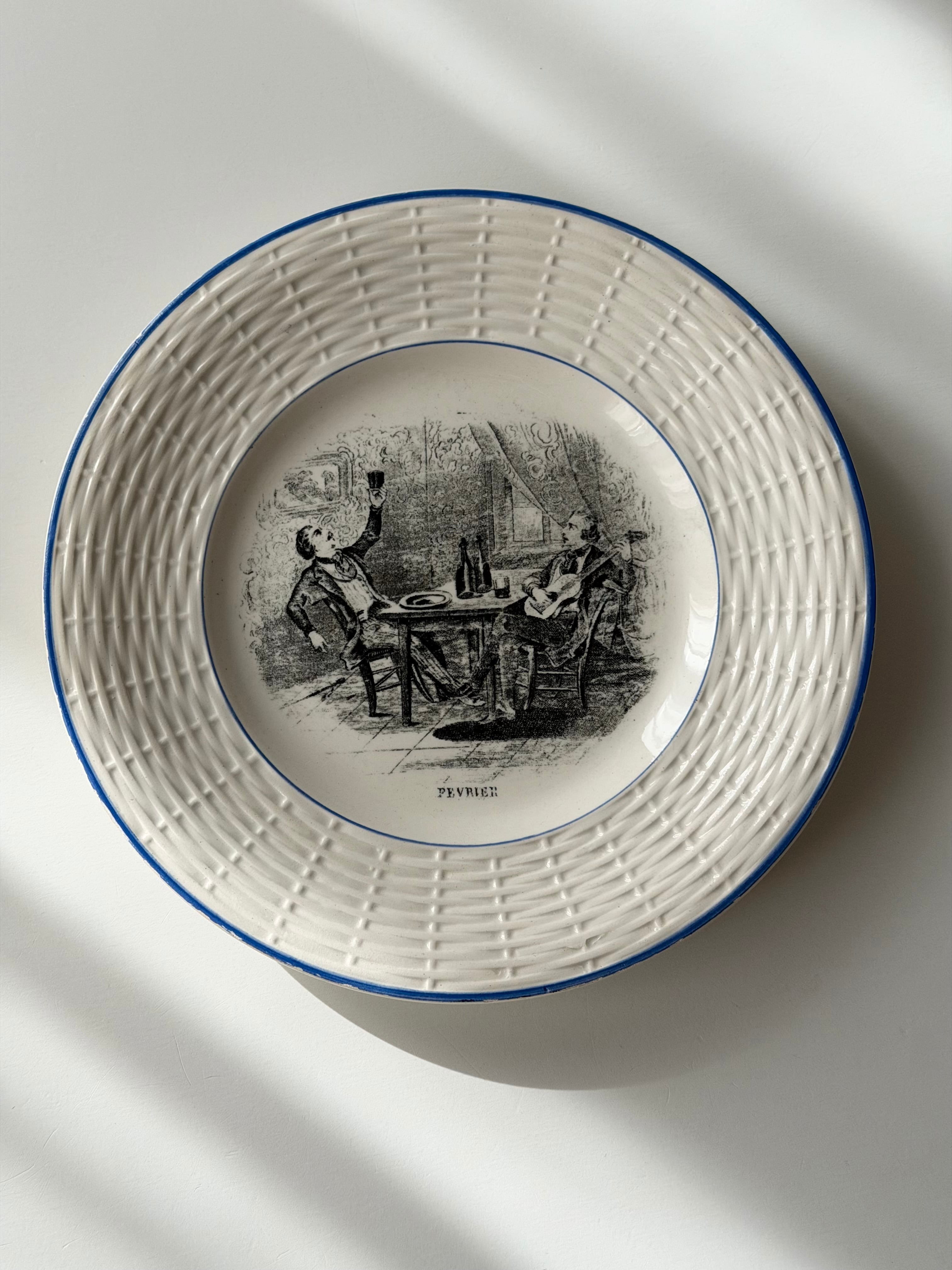 Sarreguemines サルグミンヌ / "FEVRIER" 2月 グリザイユプレート