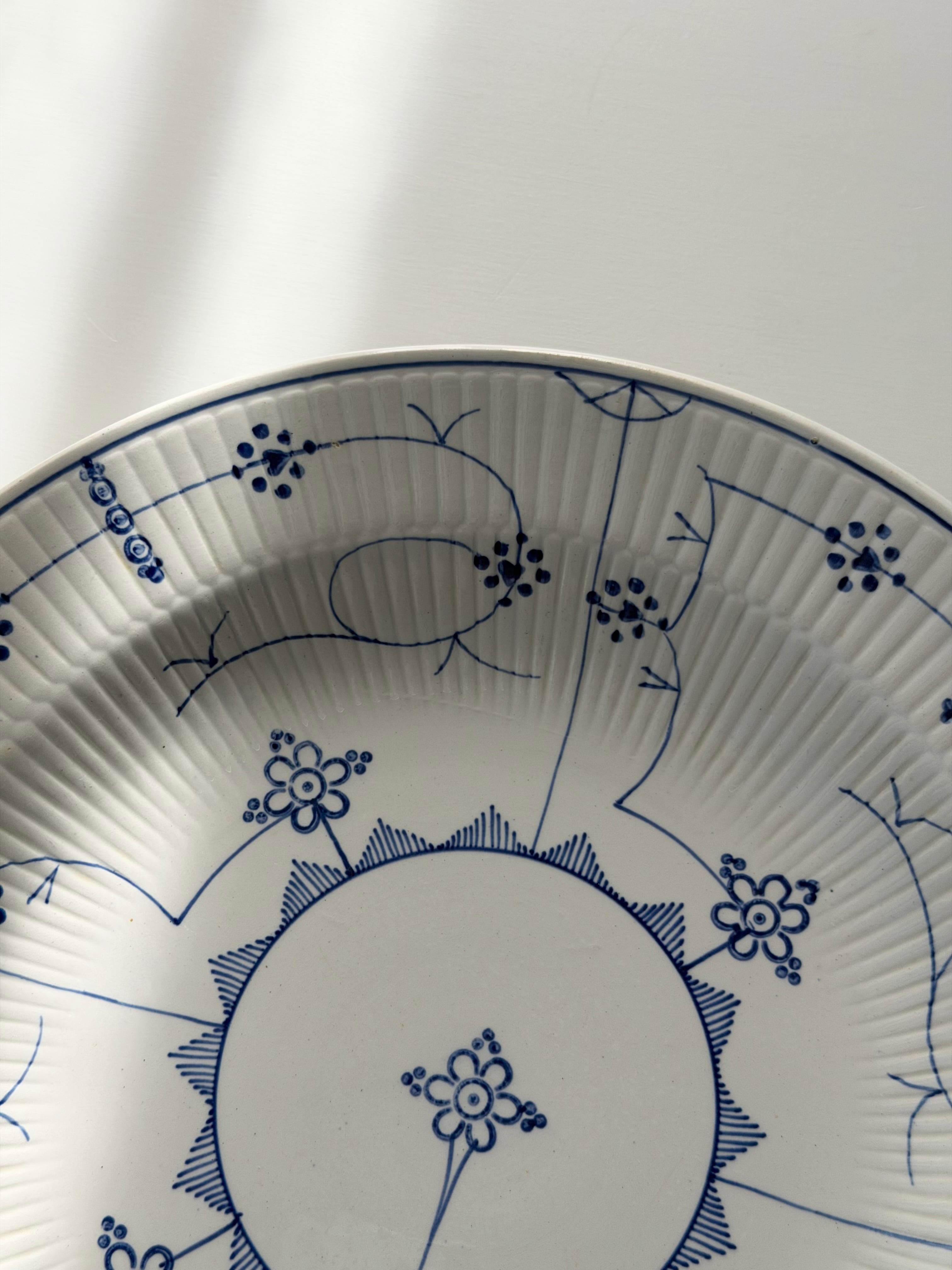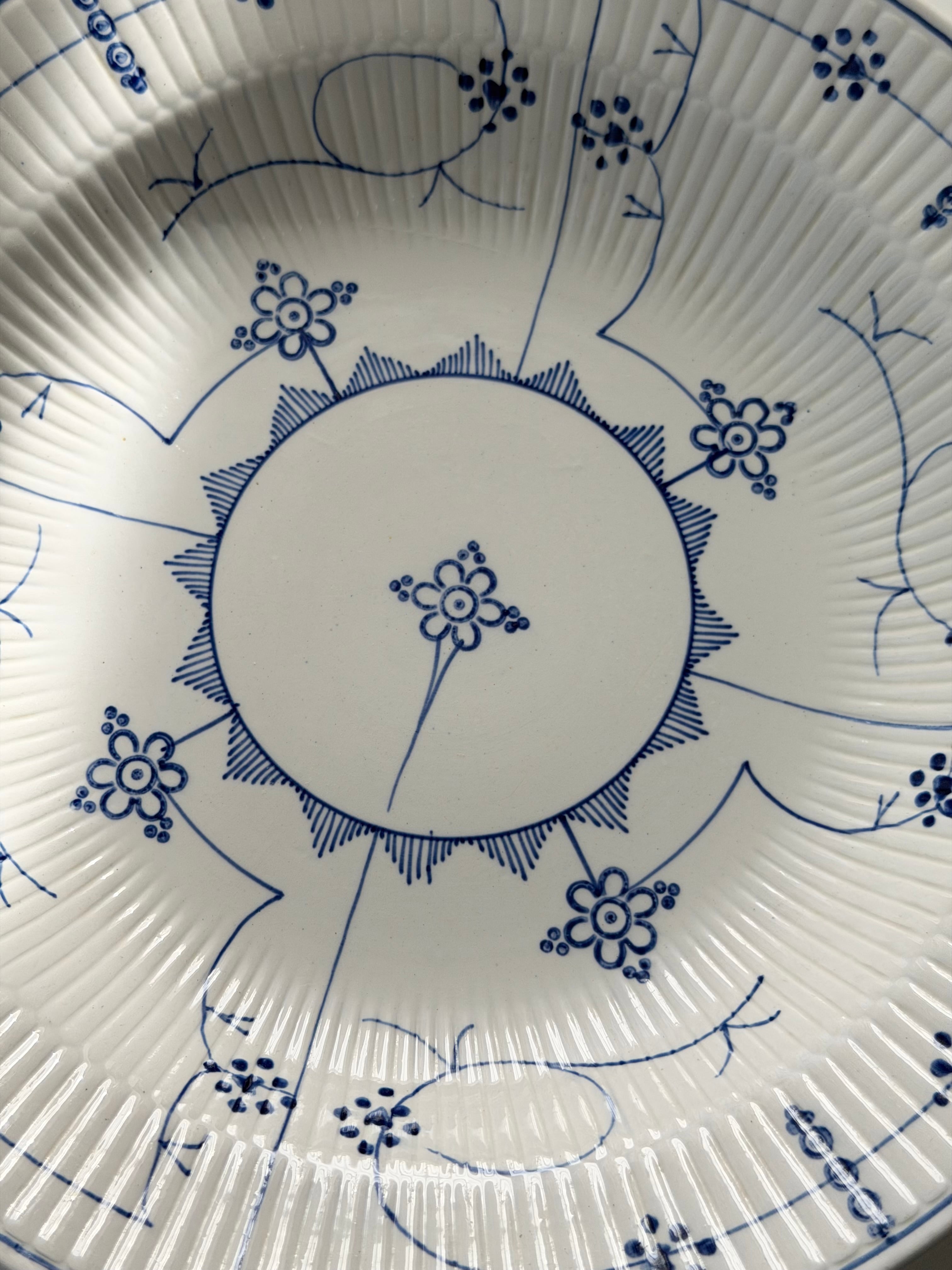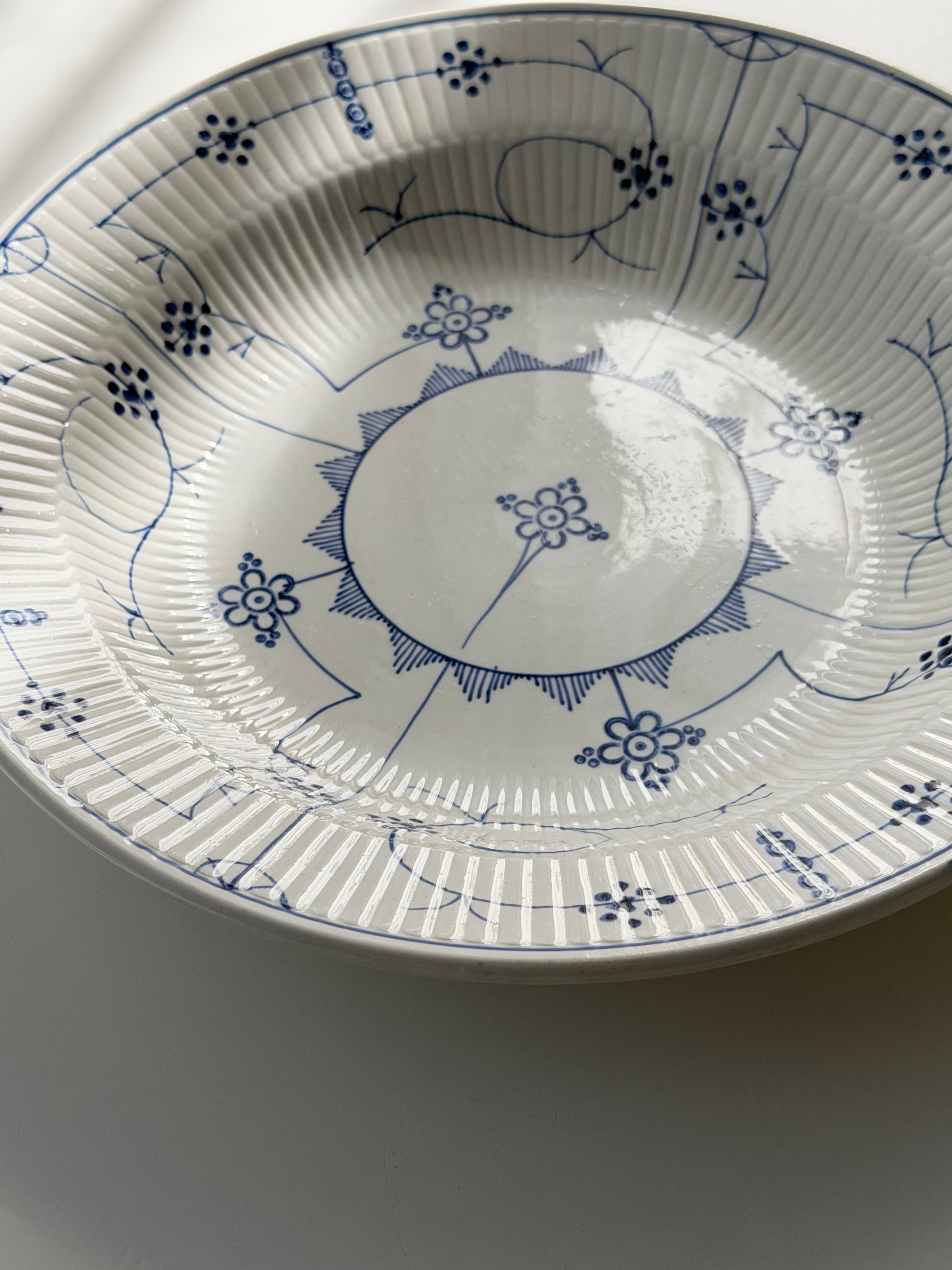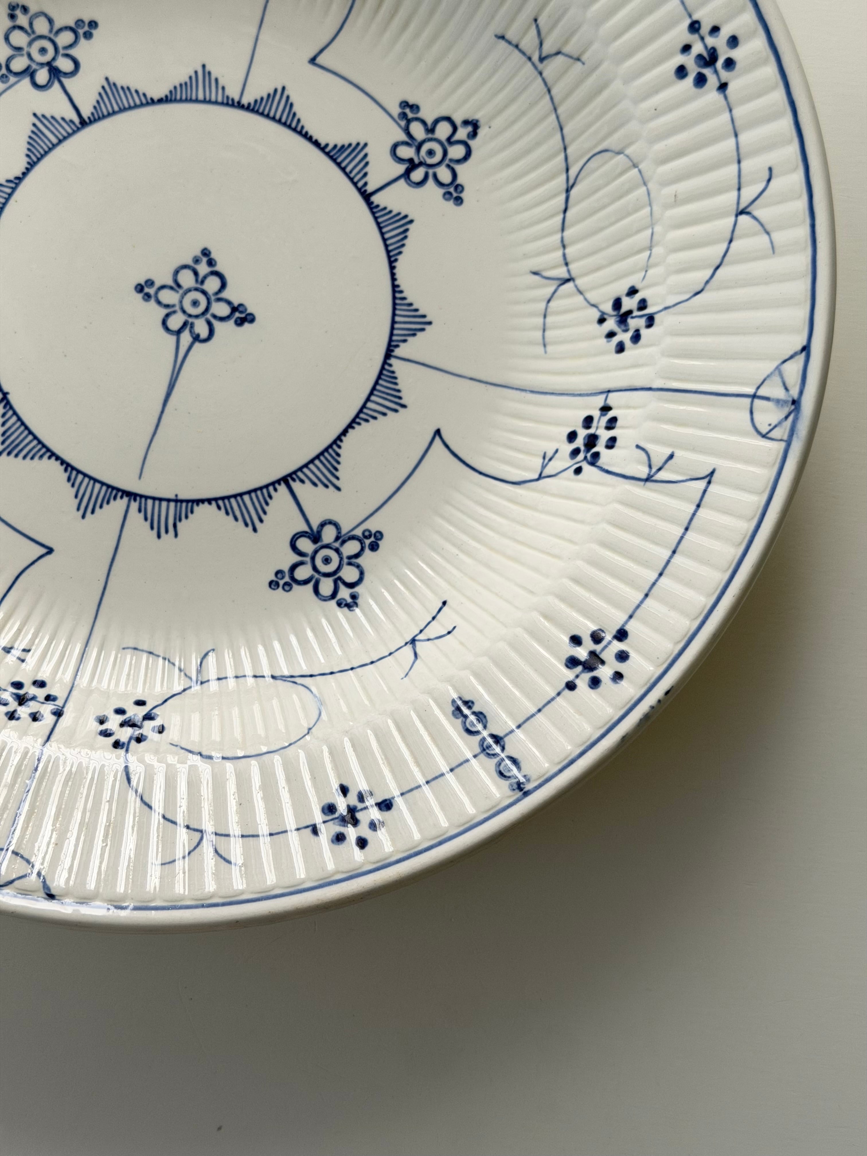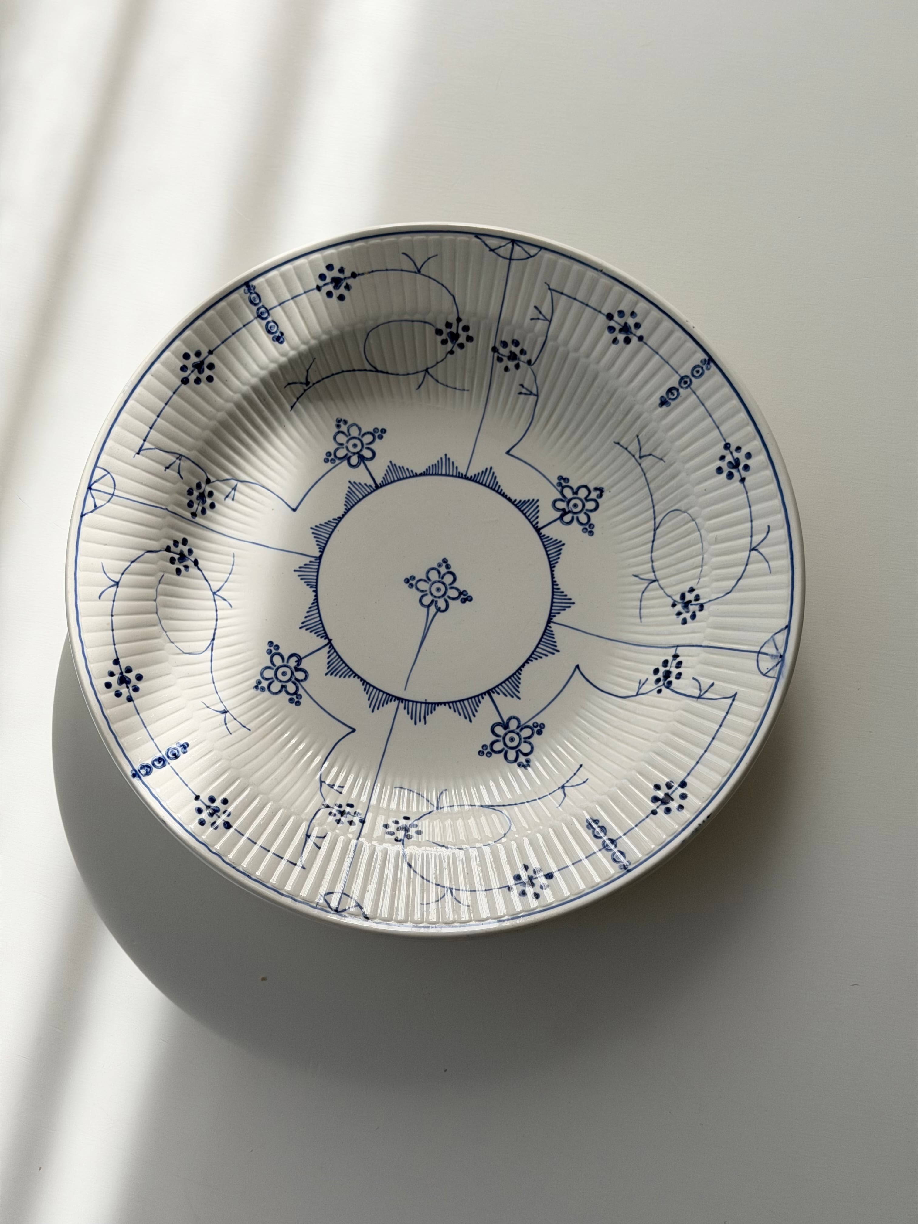 繊細なブルーラインが際立つ、サキソニー柄の深皿プレート。