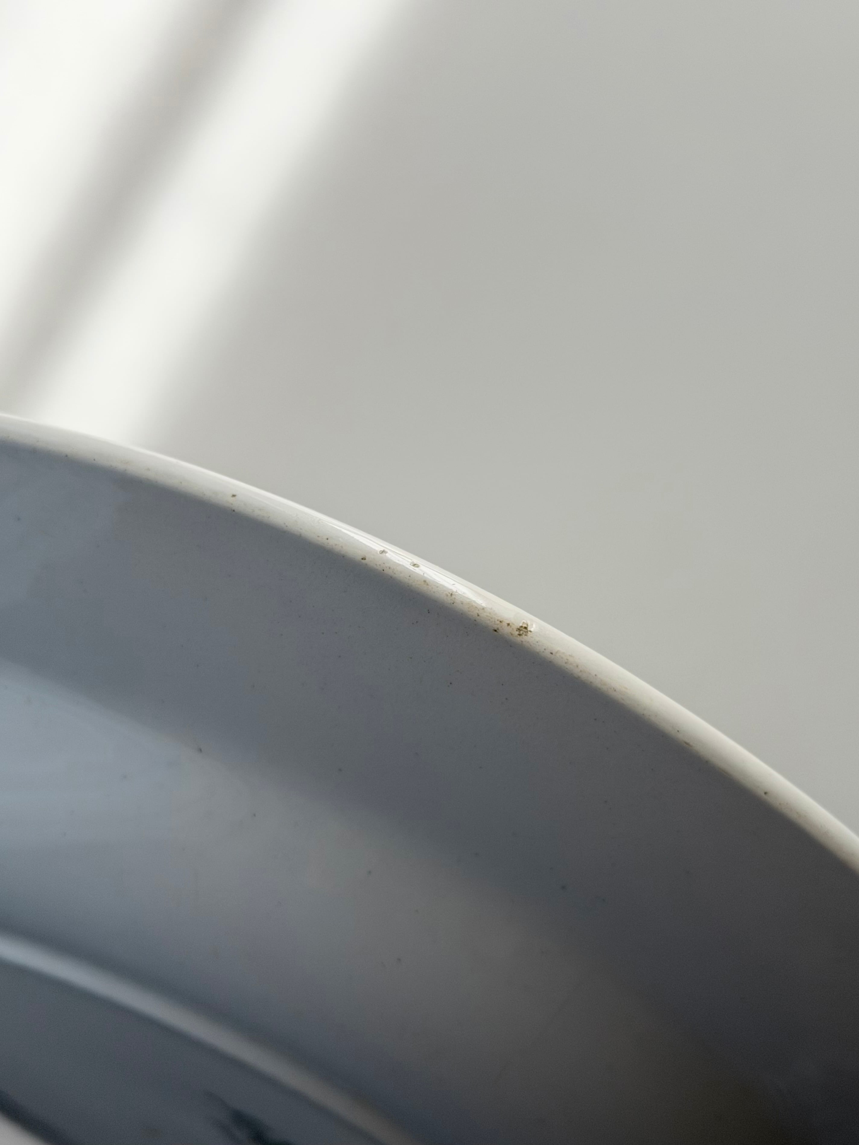 程よく肉厚の陶質で、純白の素地にサックスブルーが印象的。