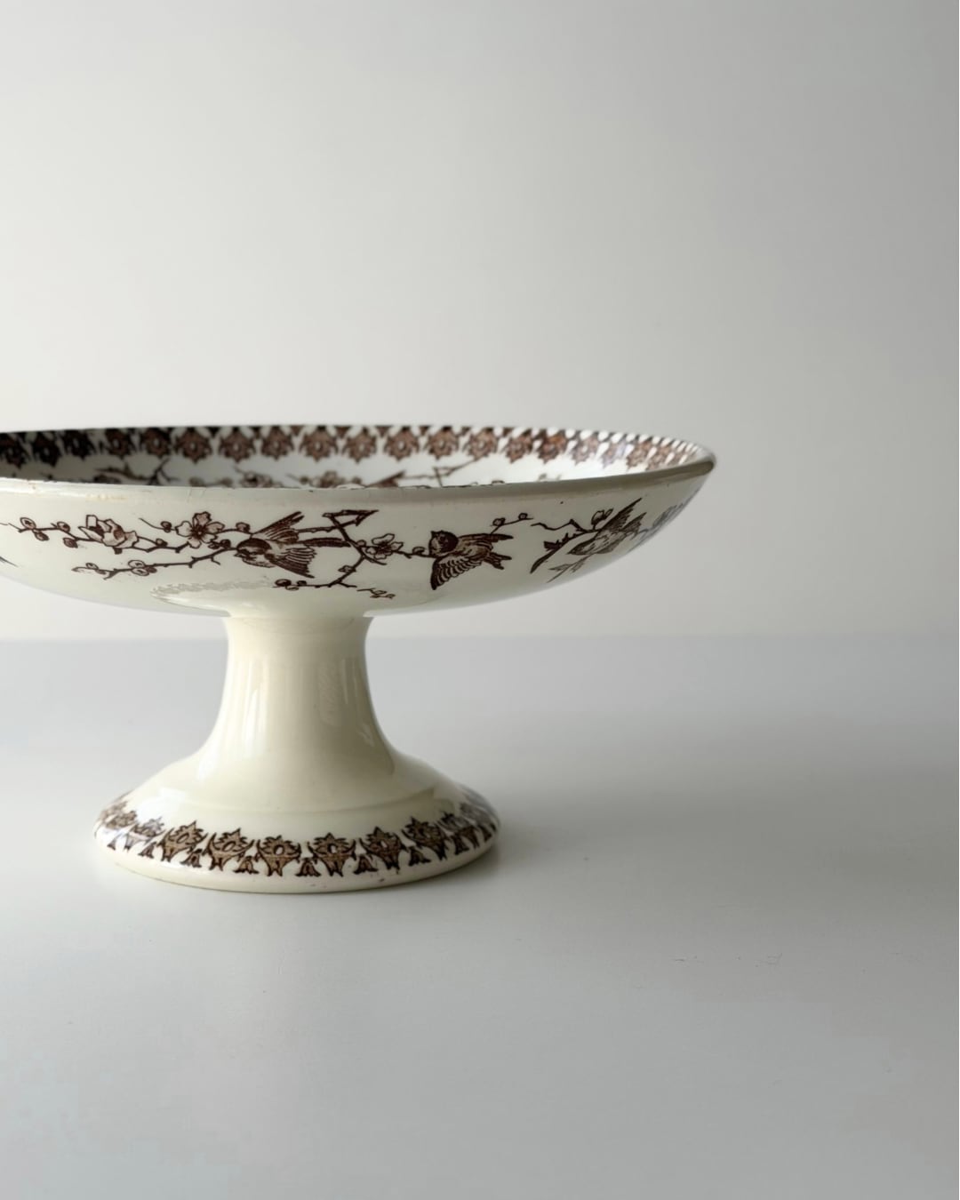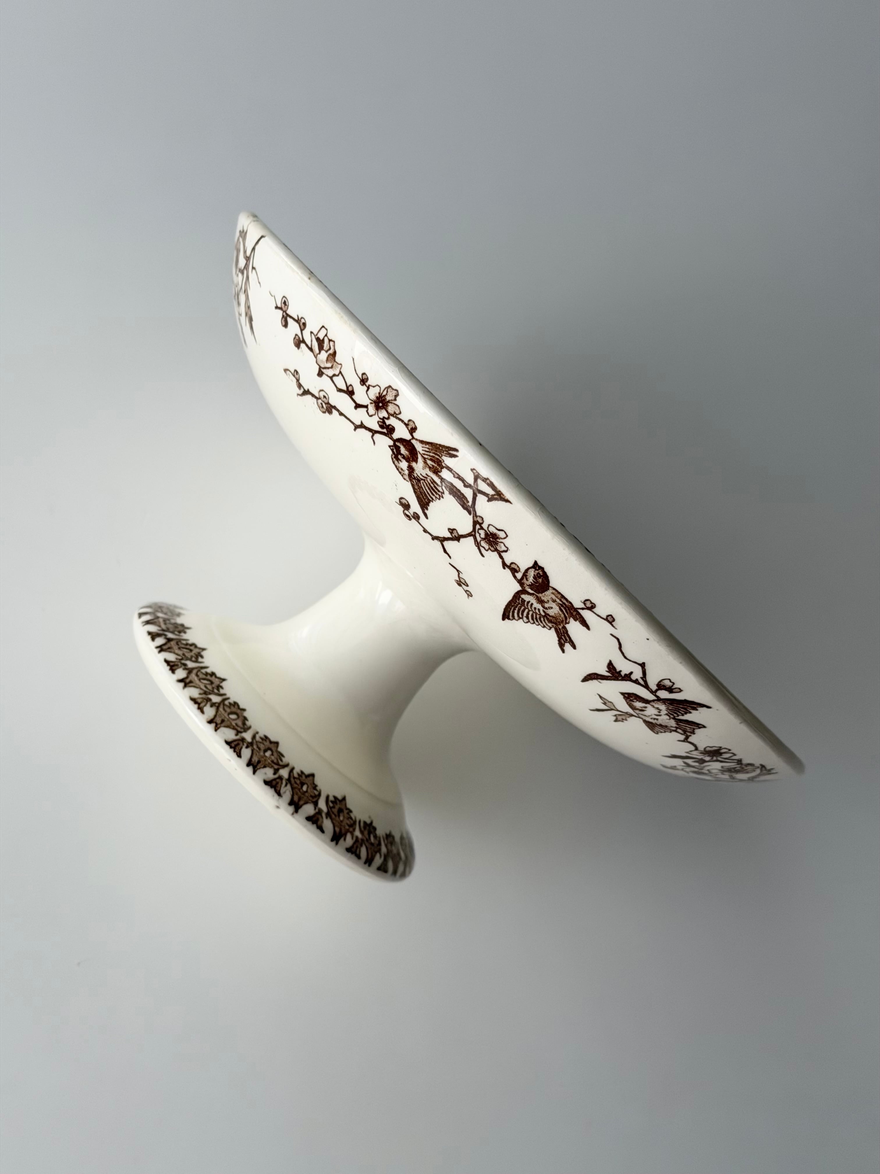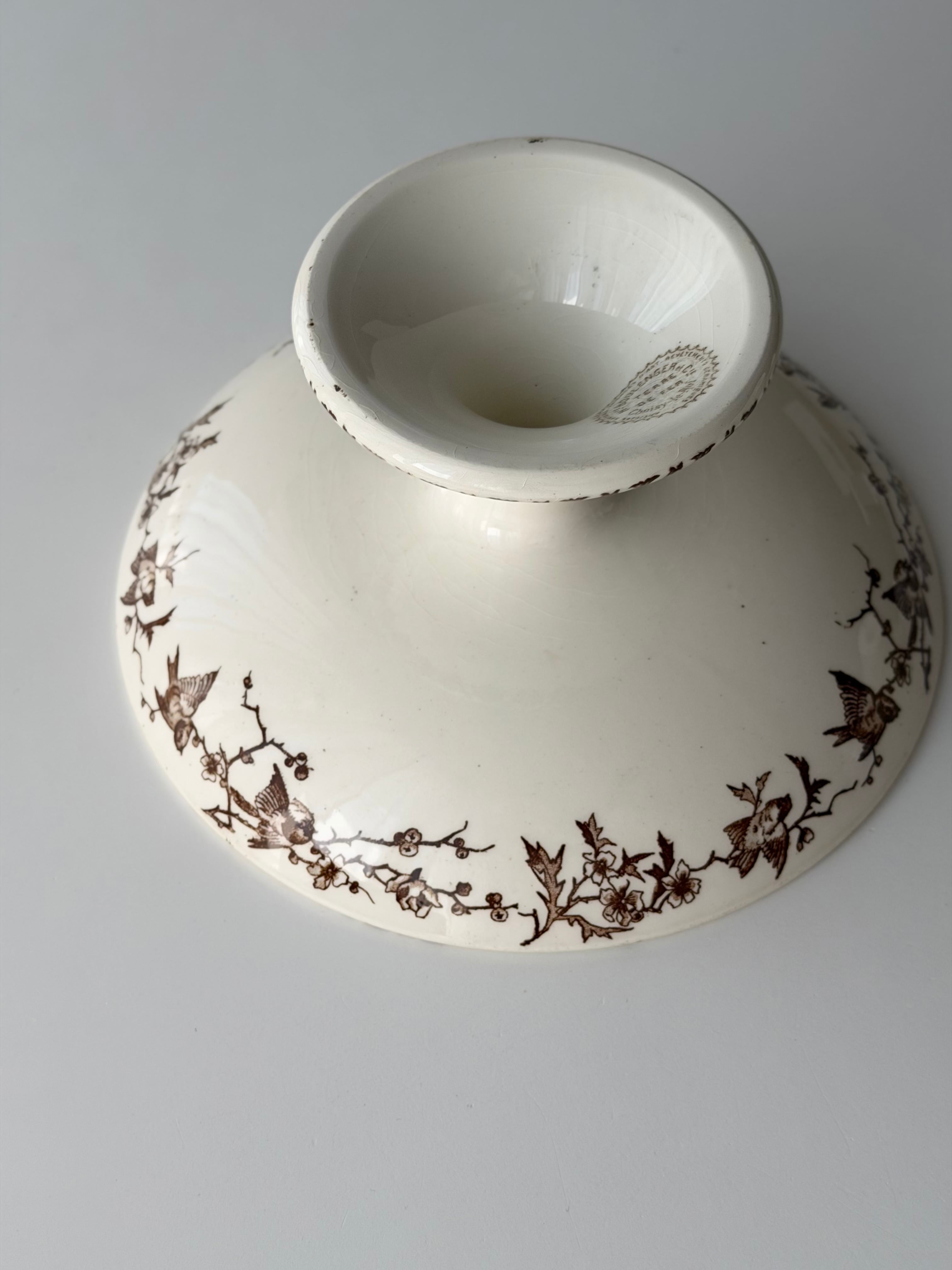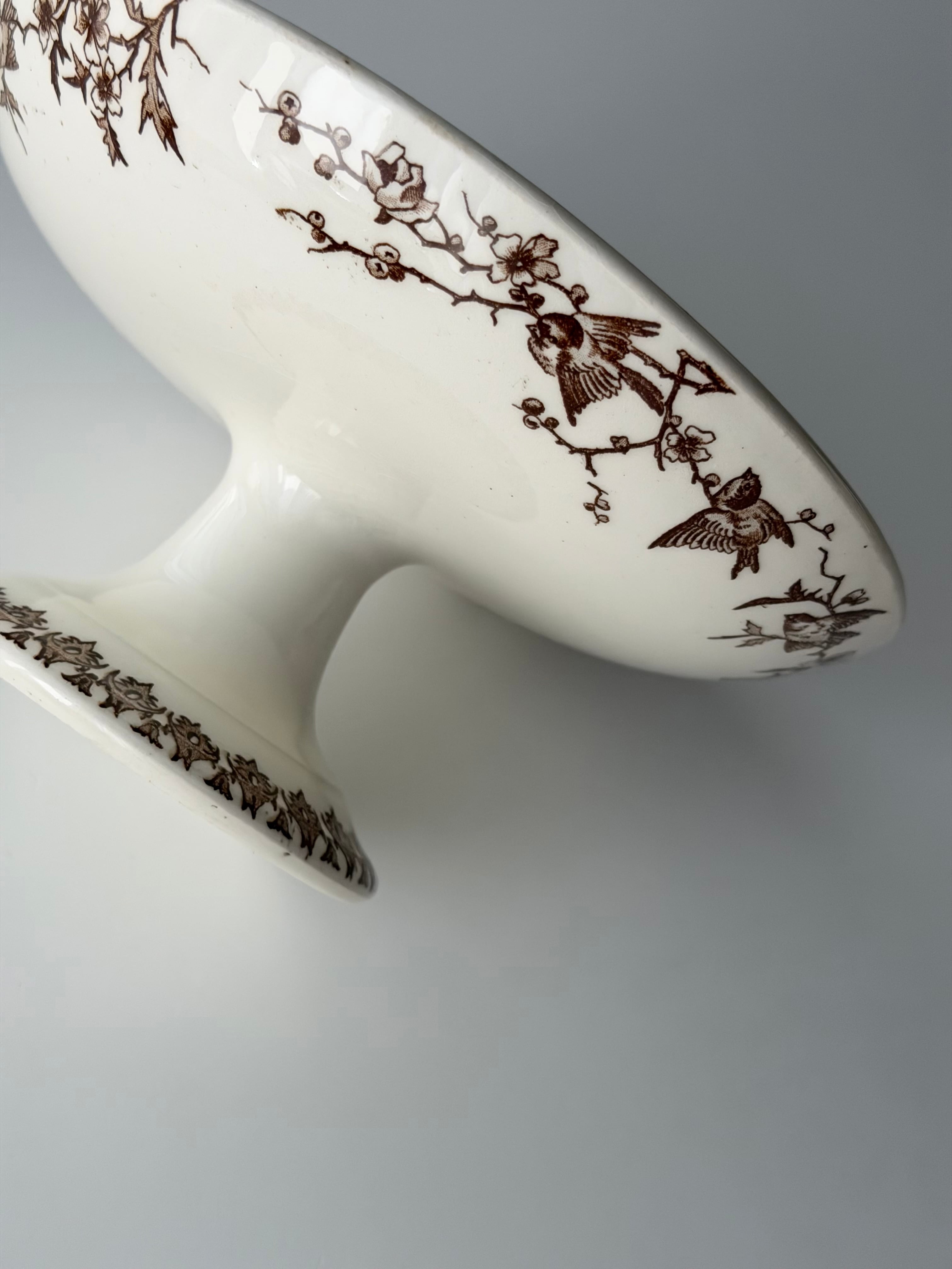 フランス ショワジールロワ窯より、小鳥の転写柄が美しいコンポティエ。