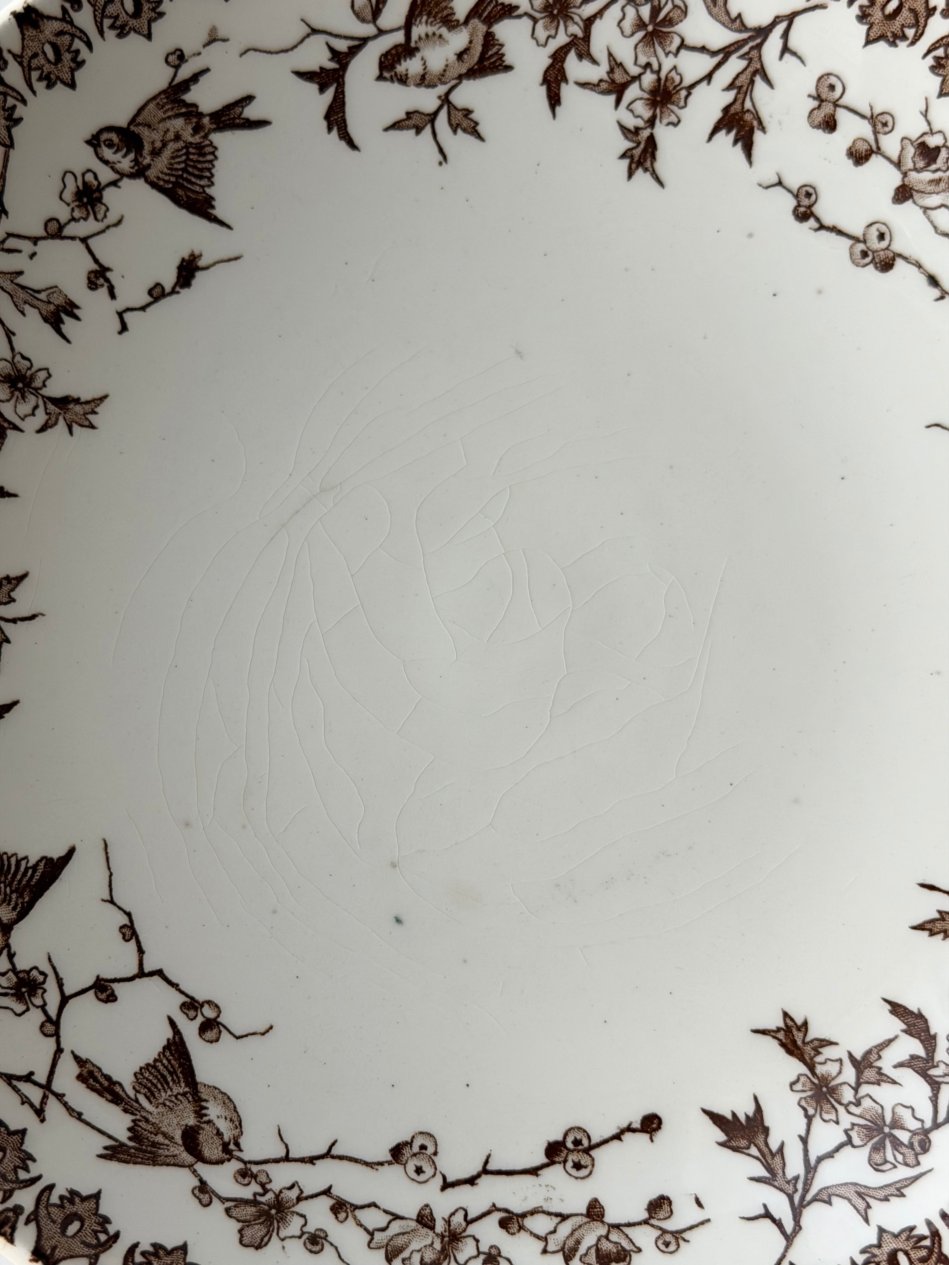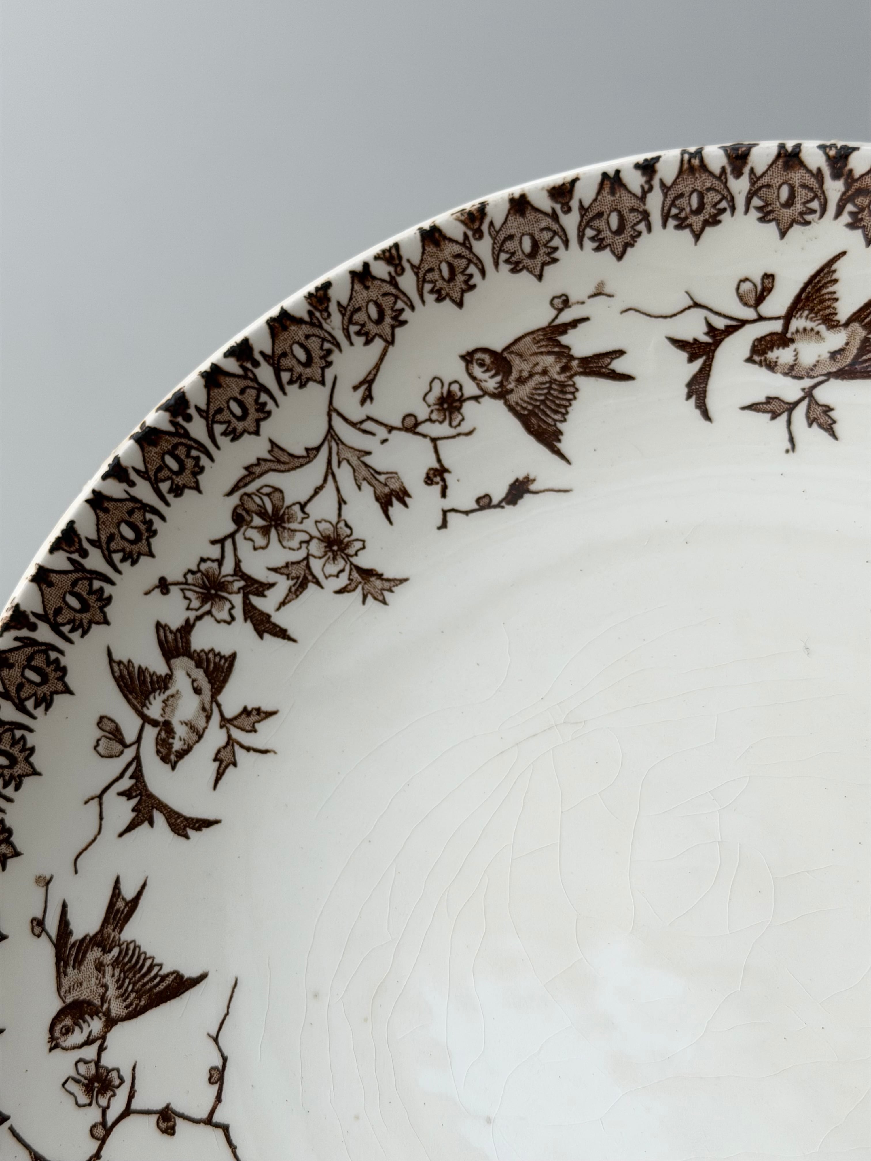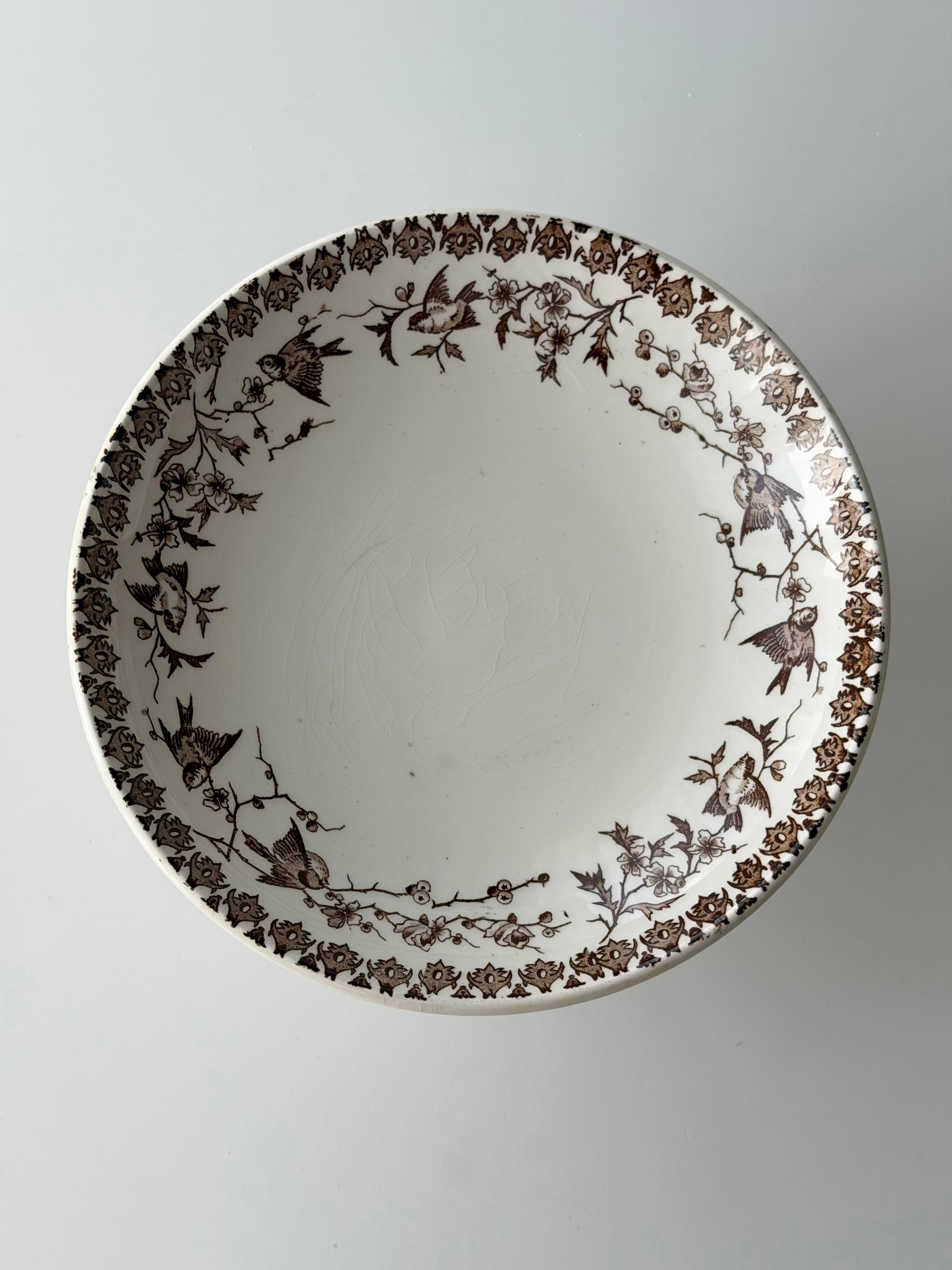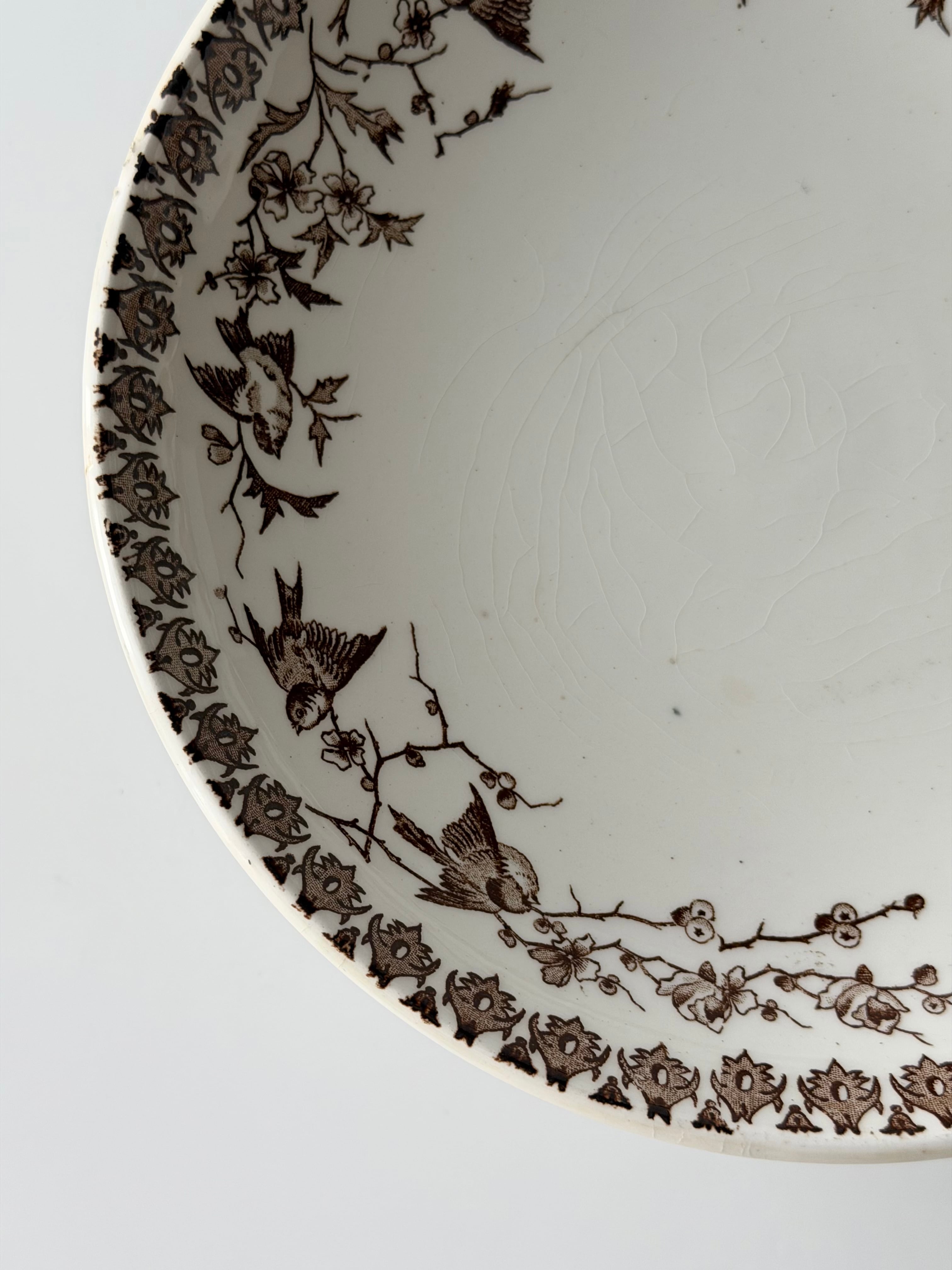 フランス ショワジールロワ窯より、小鳥の転写柄が美しいコンポティエ。