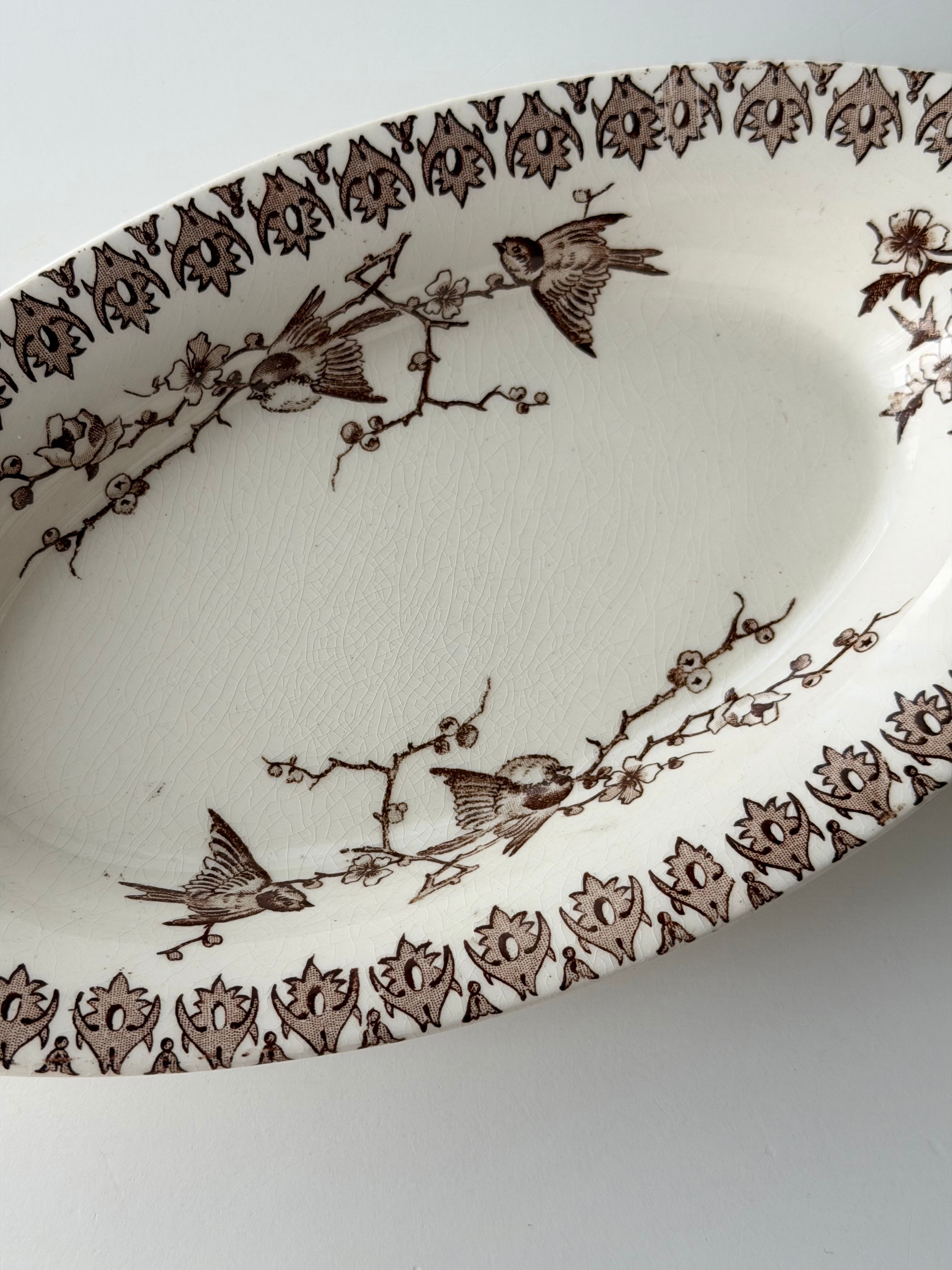 フランス ショワジールロワ窯より、小鳥の転写柄が美しいラヴィエ。
