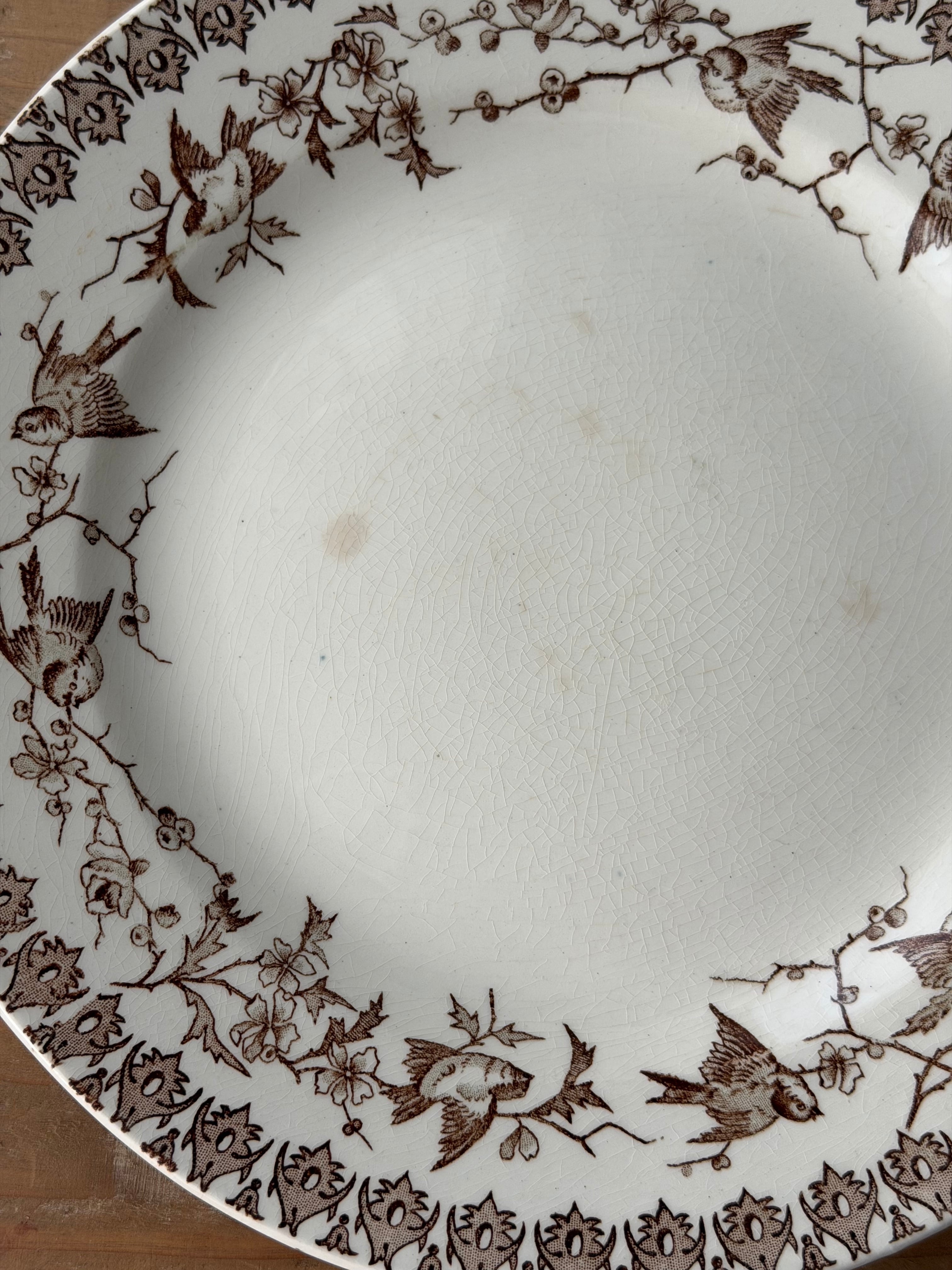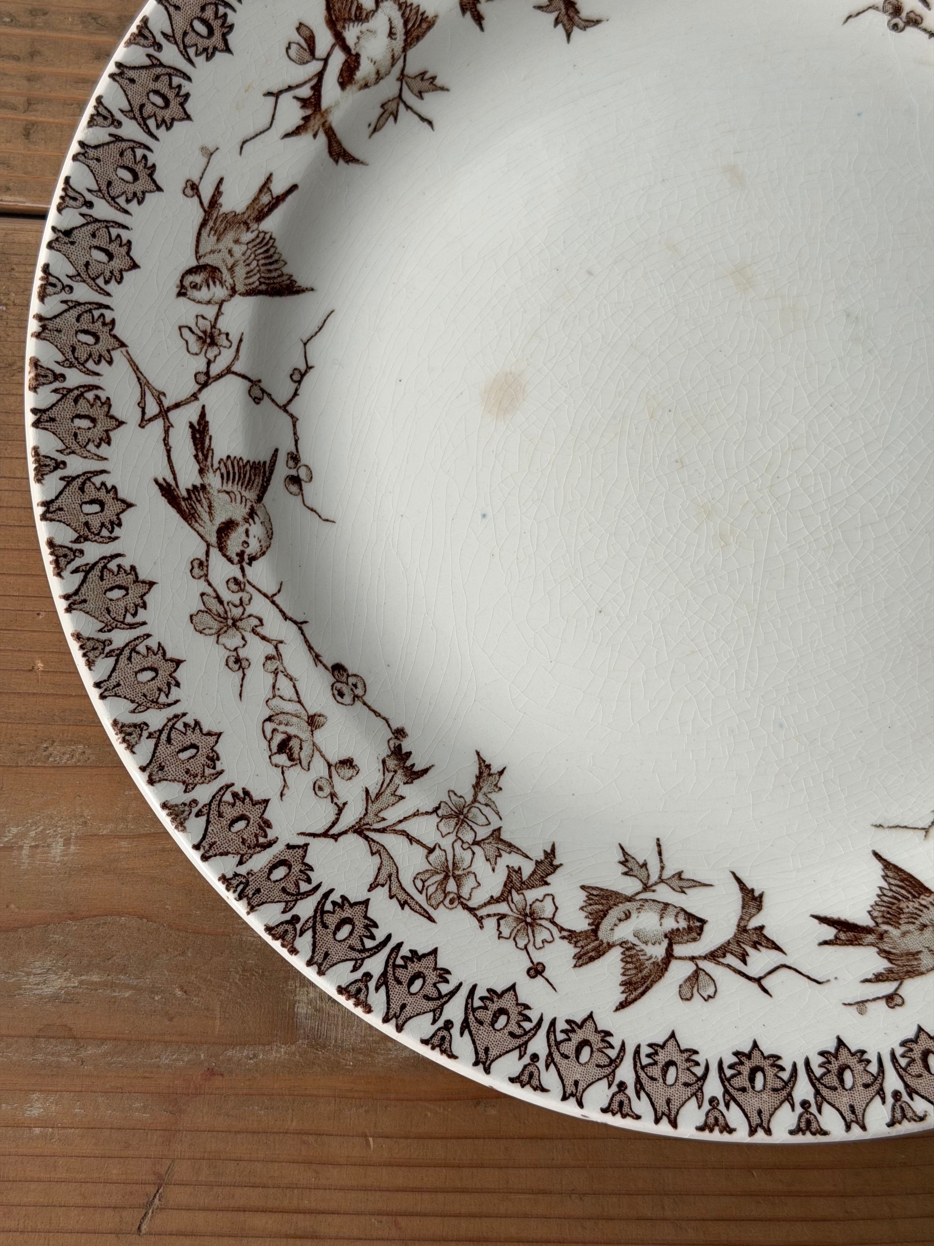 フランス ショワジールロワ窯より、小鳥の転写柄が美しい1枚。