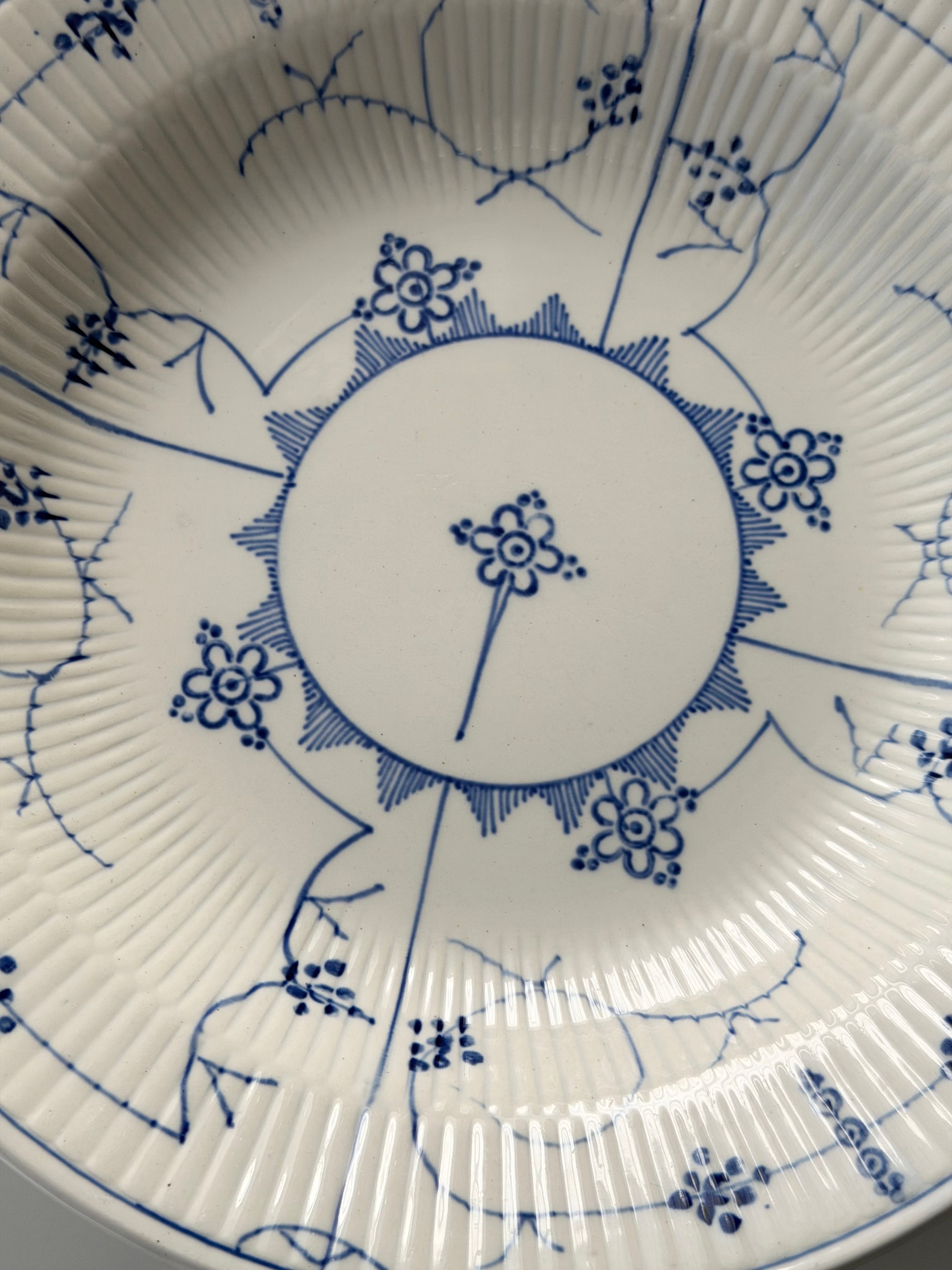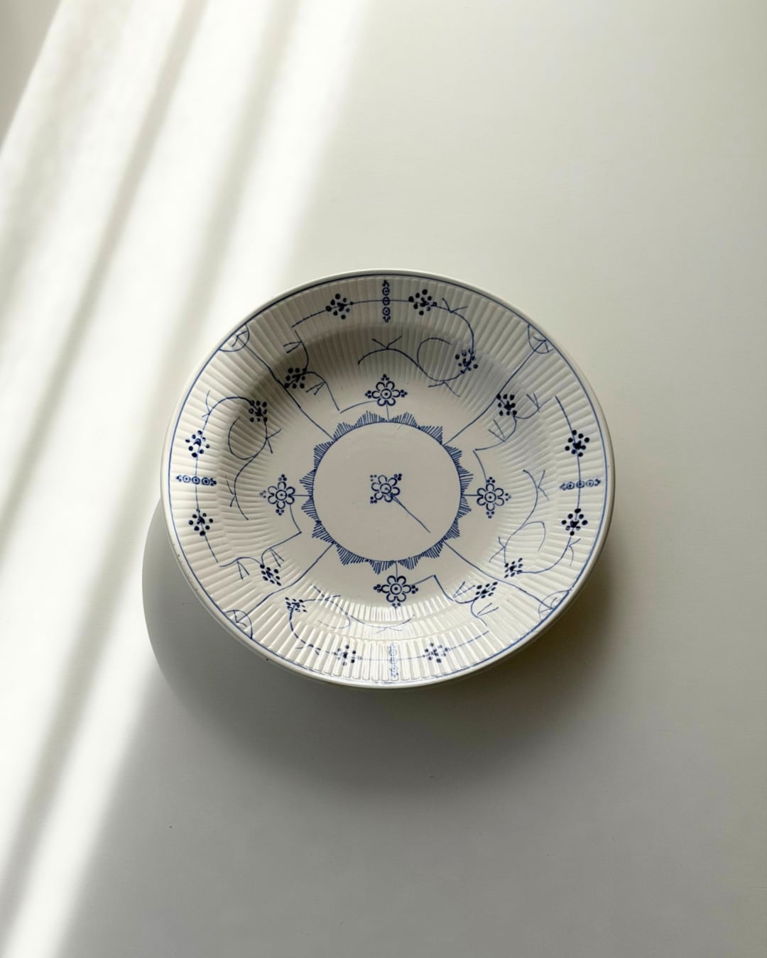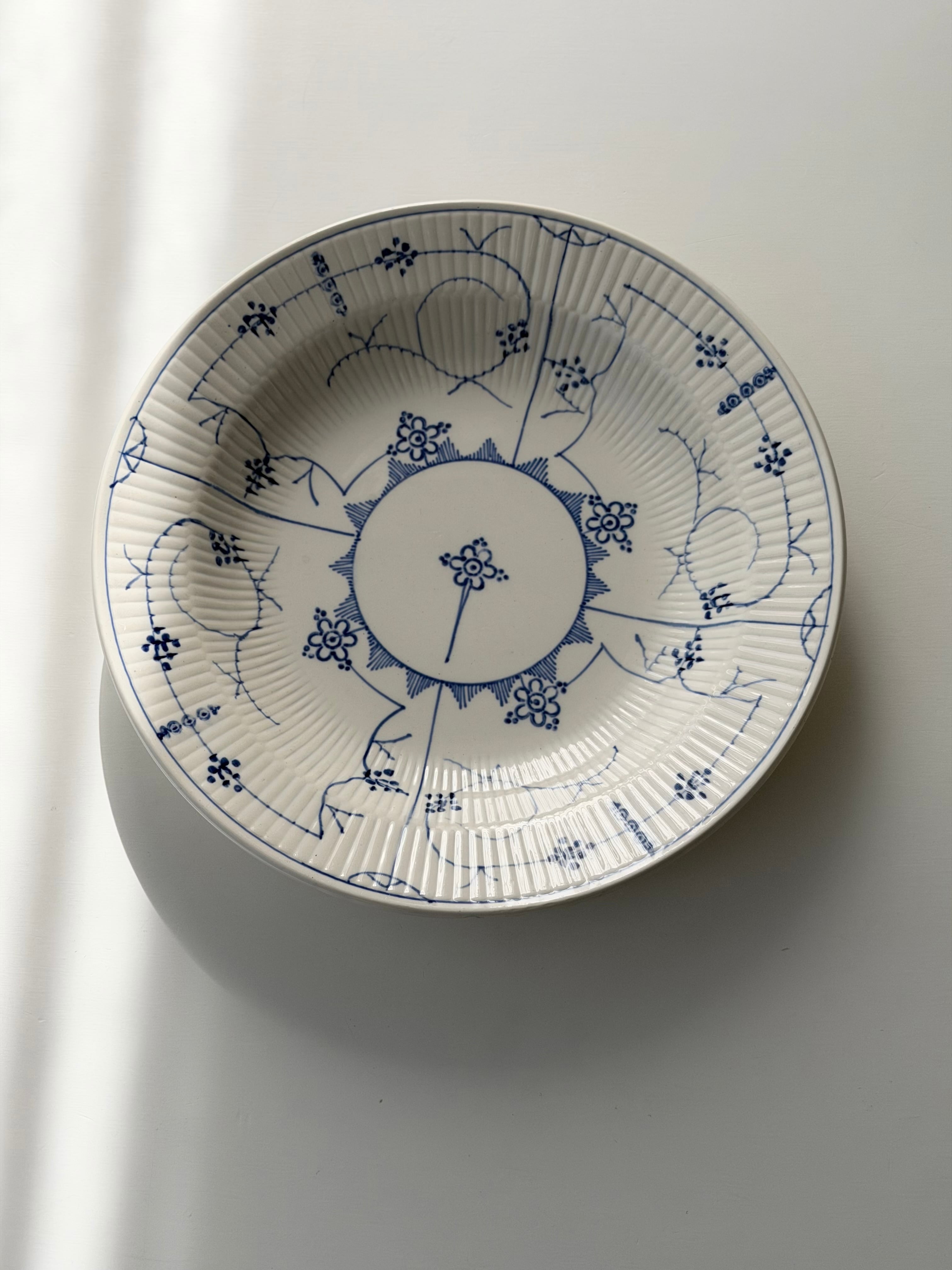 繊細なブルーラインが際立つ、サキソニー柄の深皿プレート。