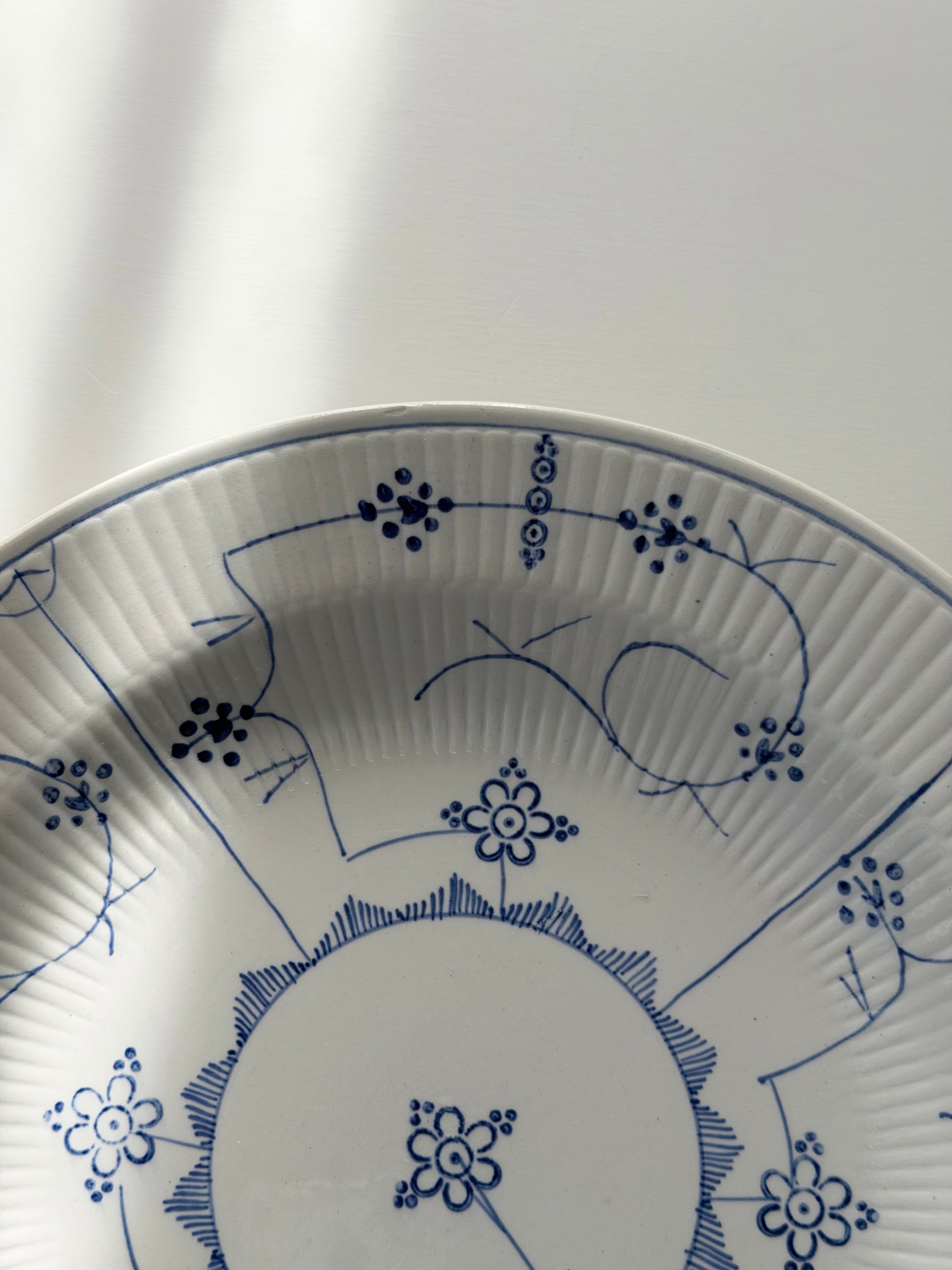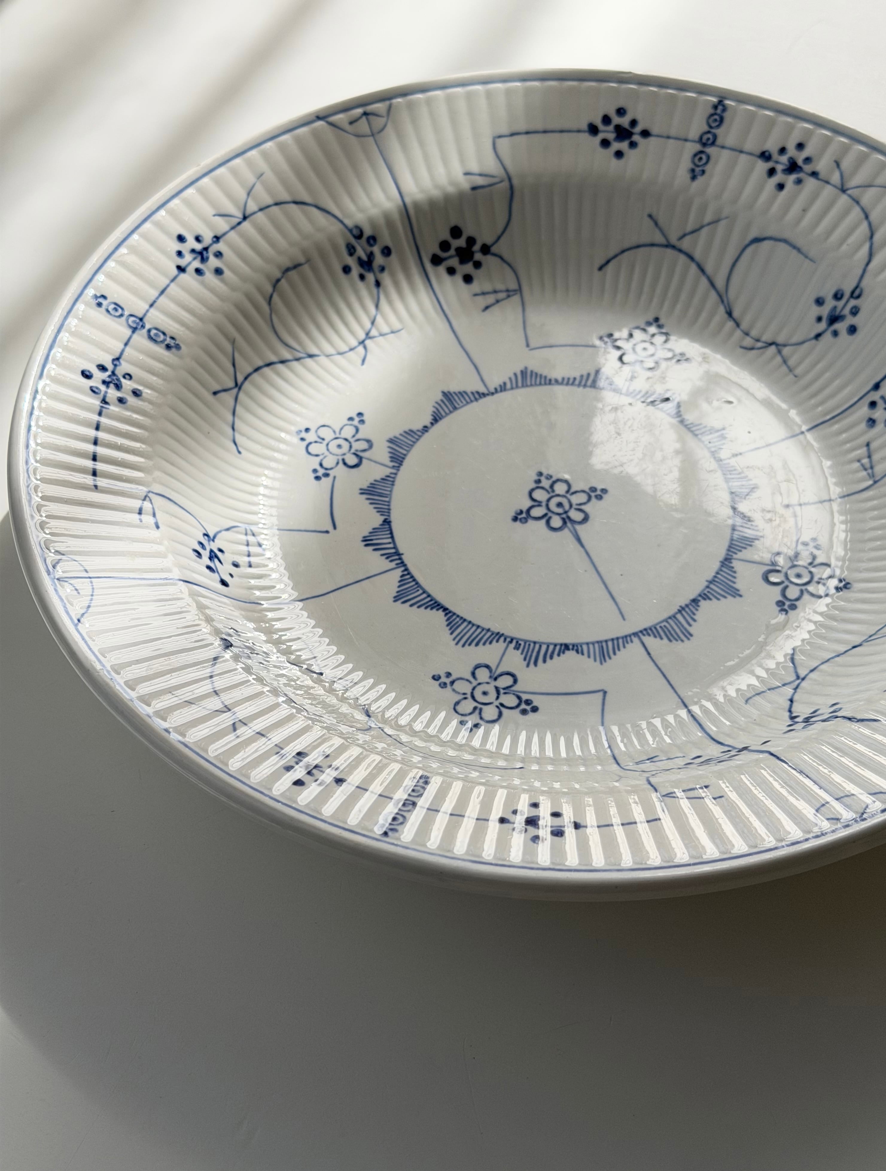 繊細なブルーラインが際立つ、サキソニー柄の深皿プレート。