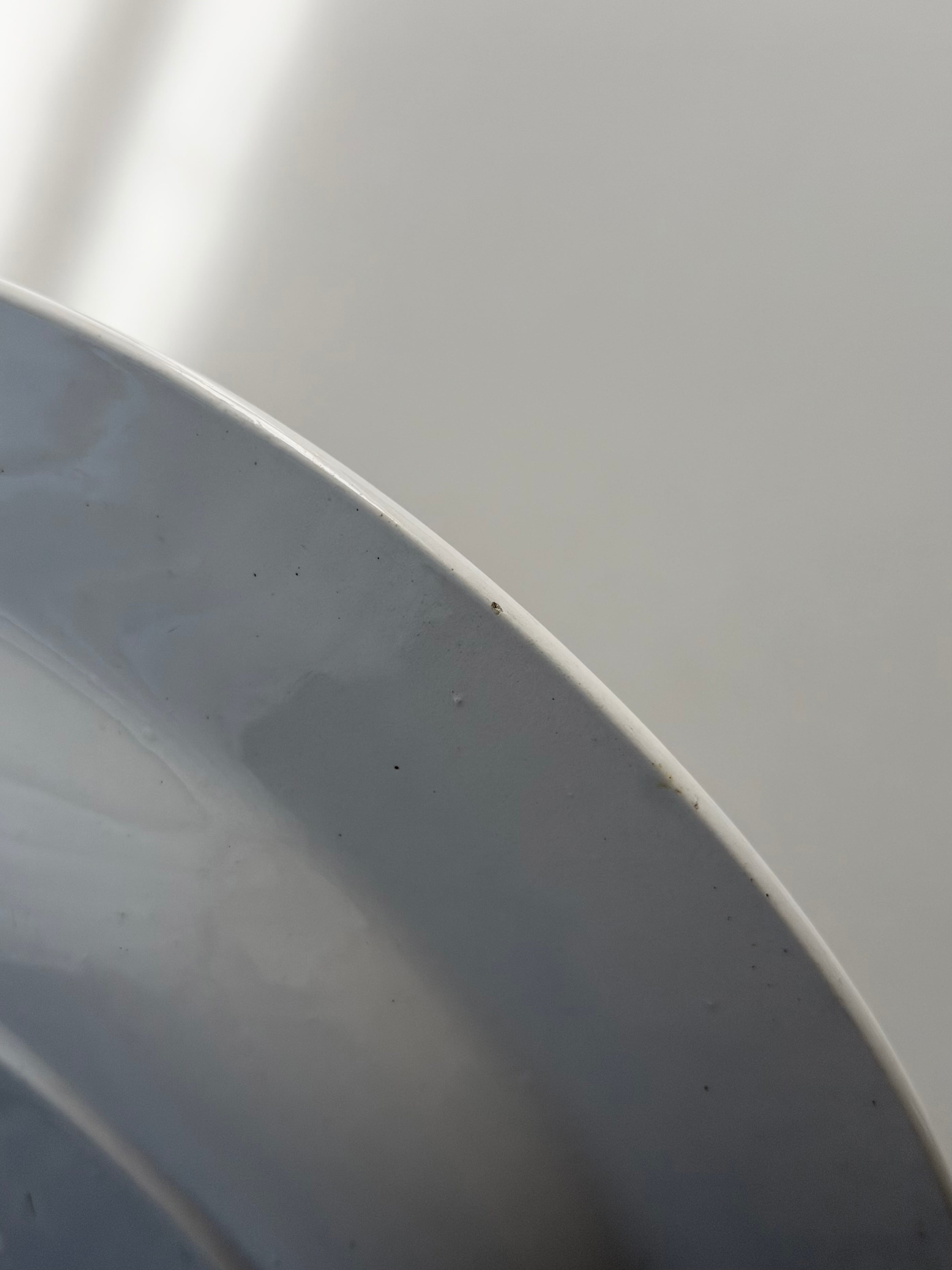 程よく肉厚の陶質で、純白の素地にサックスブルーが印象的。
