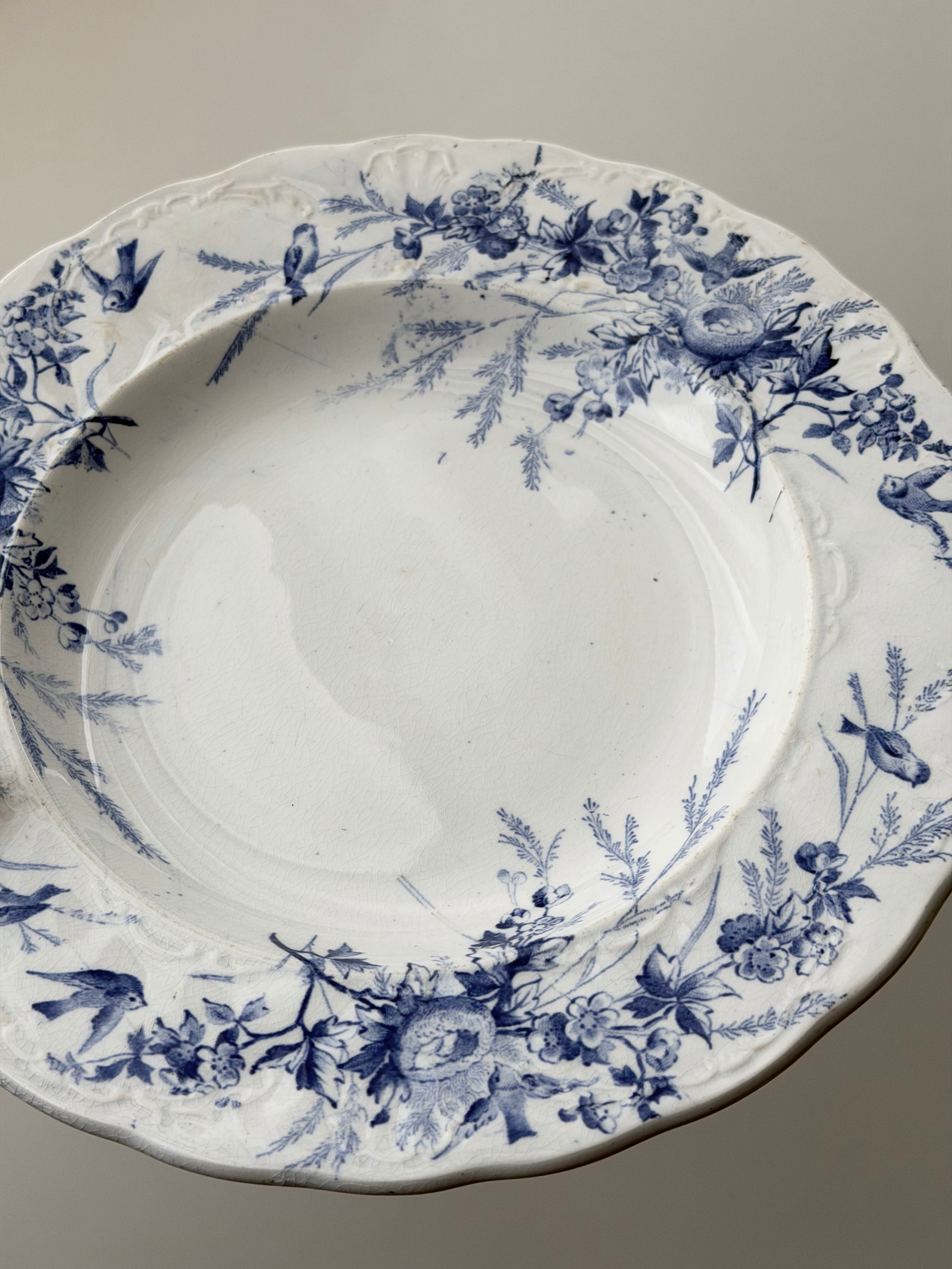 Creil et Montereau クレイユモントロー / “LINOTTE” blue レリーフの入った深皿プレート b