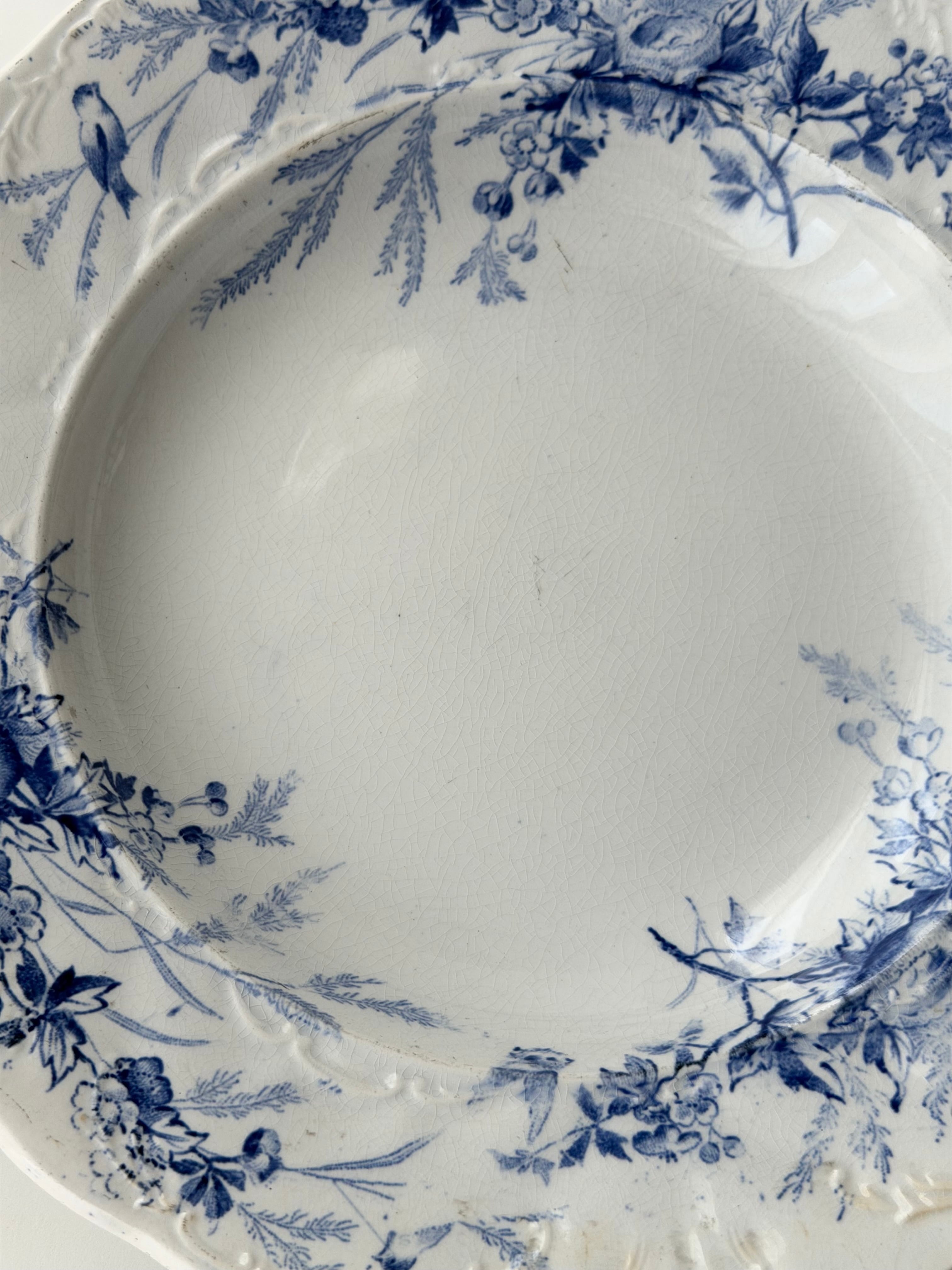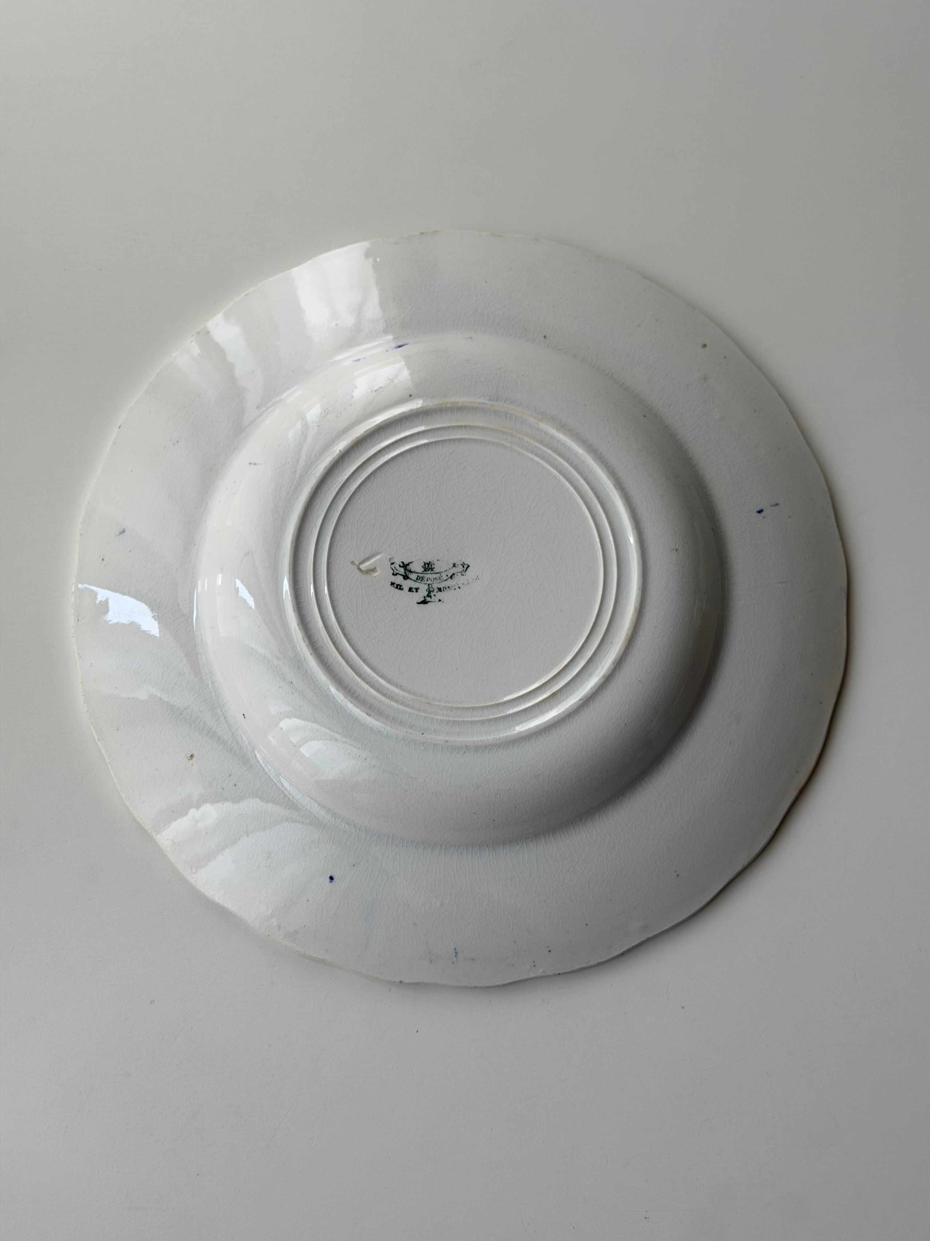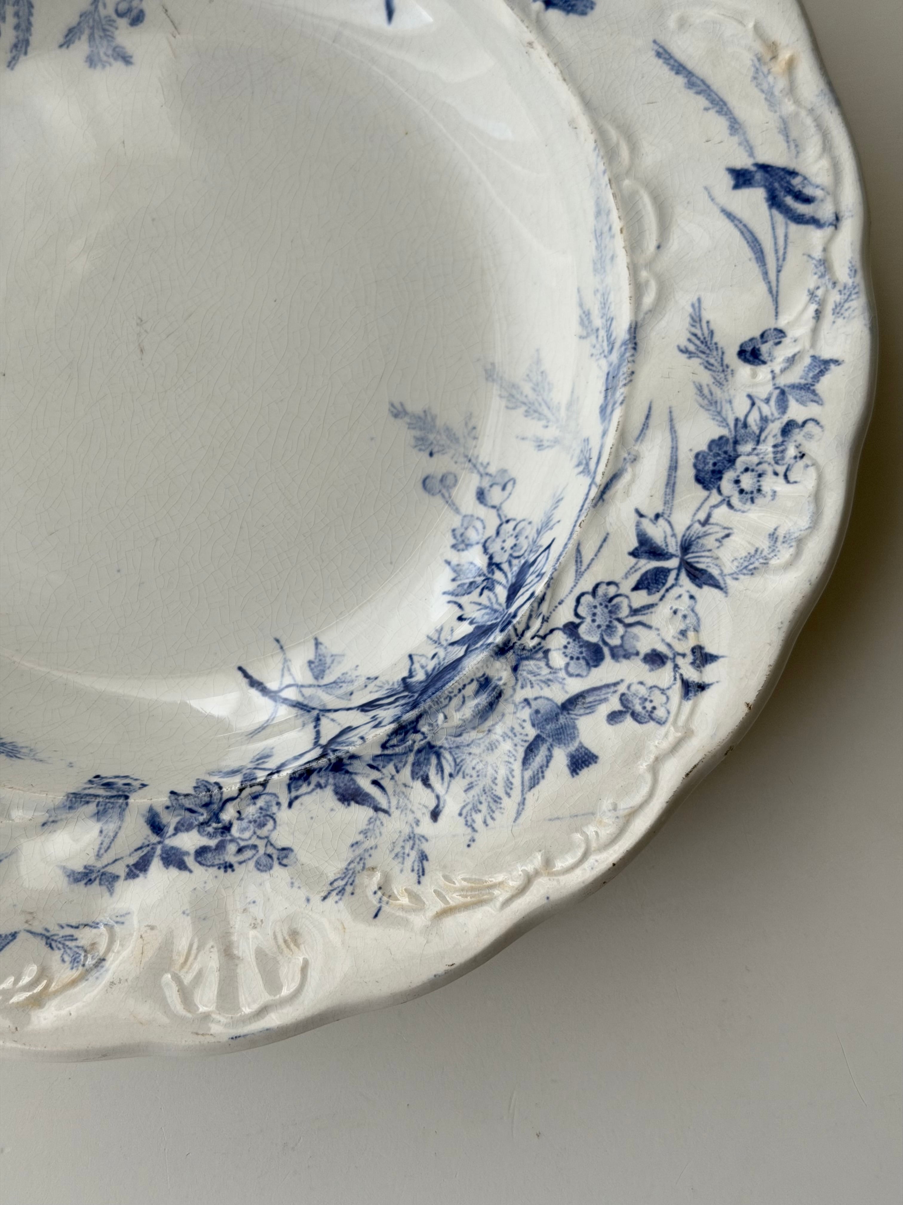 Creil et Montereau クレイユモントロー / “LINOTTE” blue レリーフの入った深皿プレート c