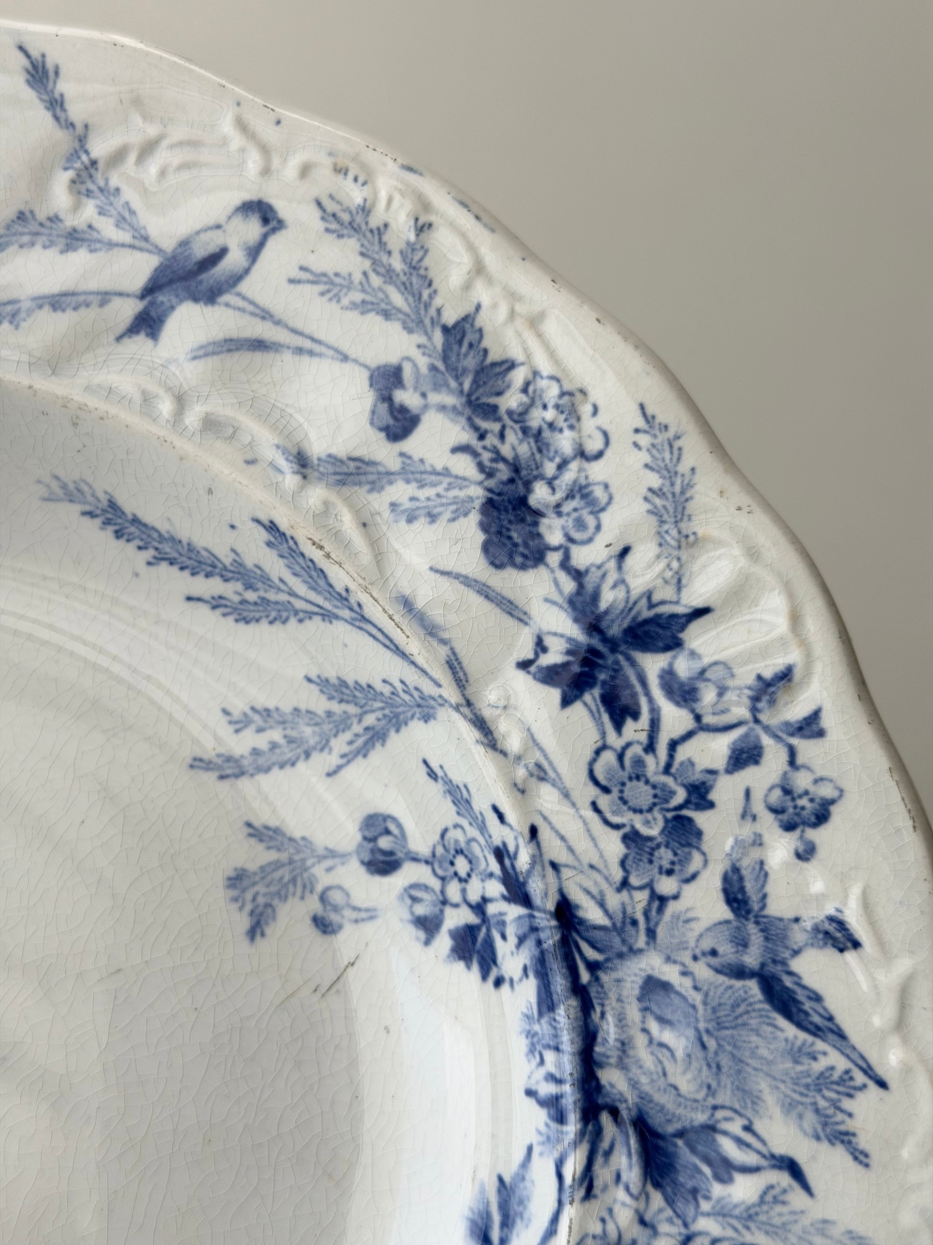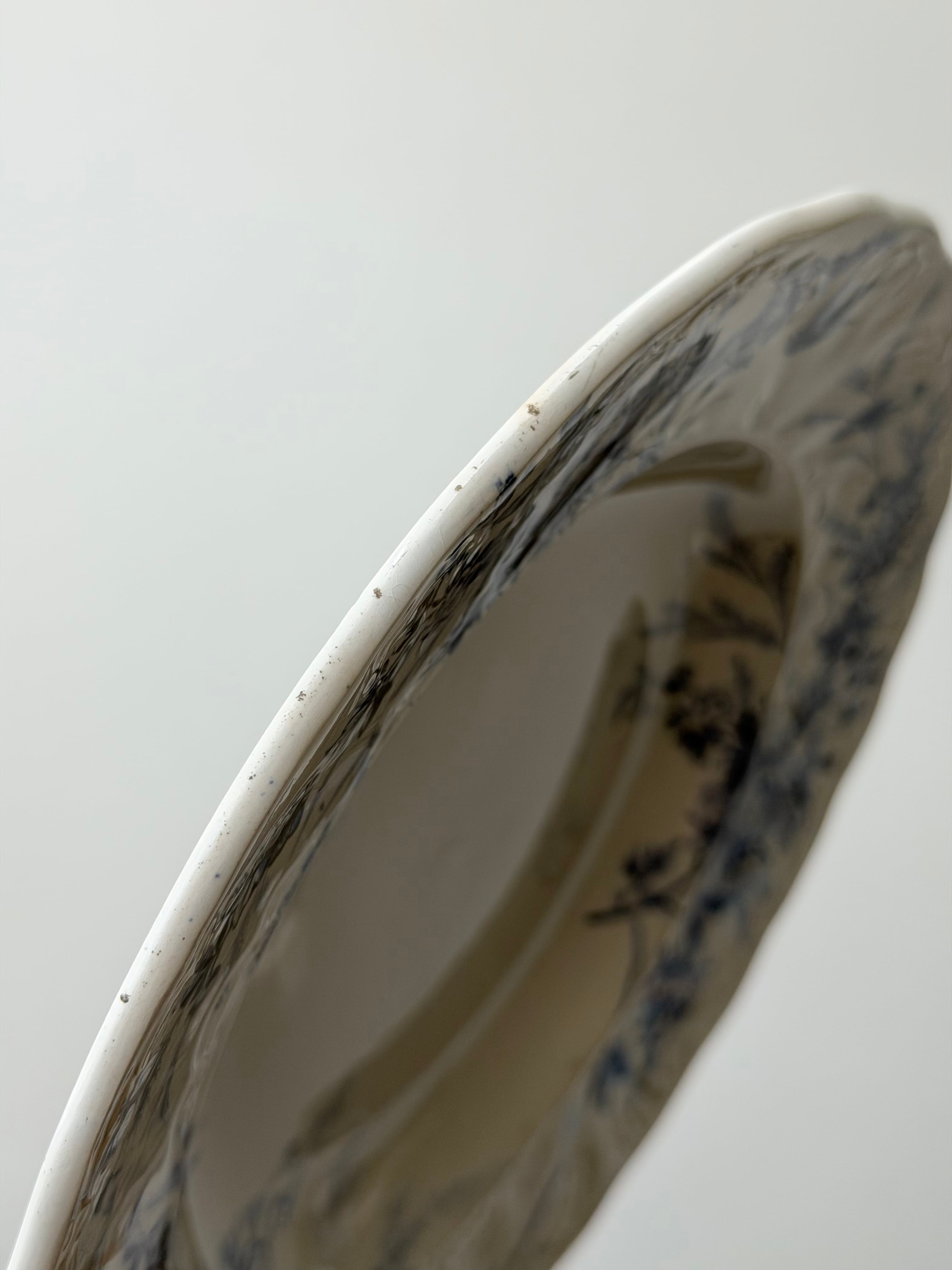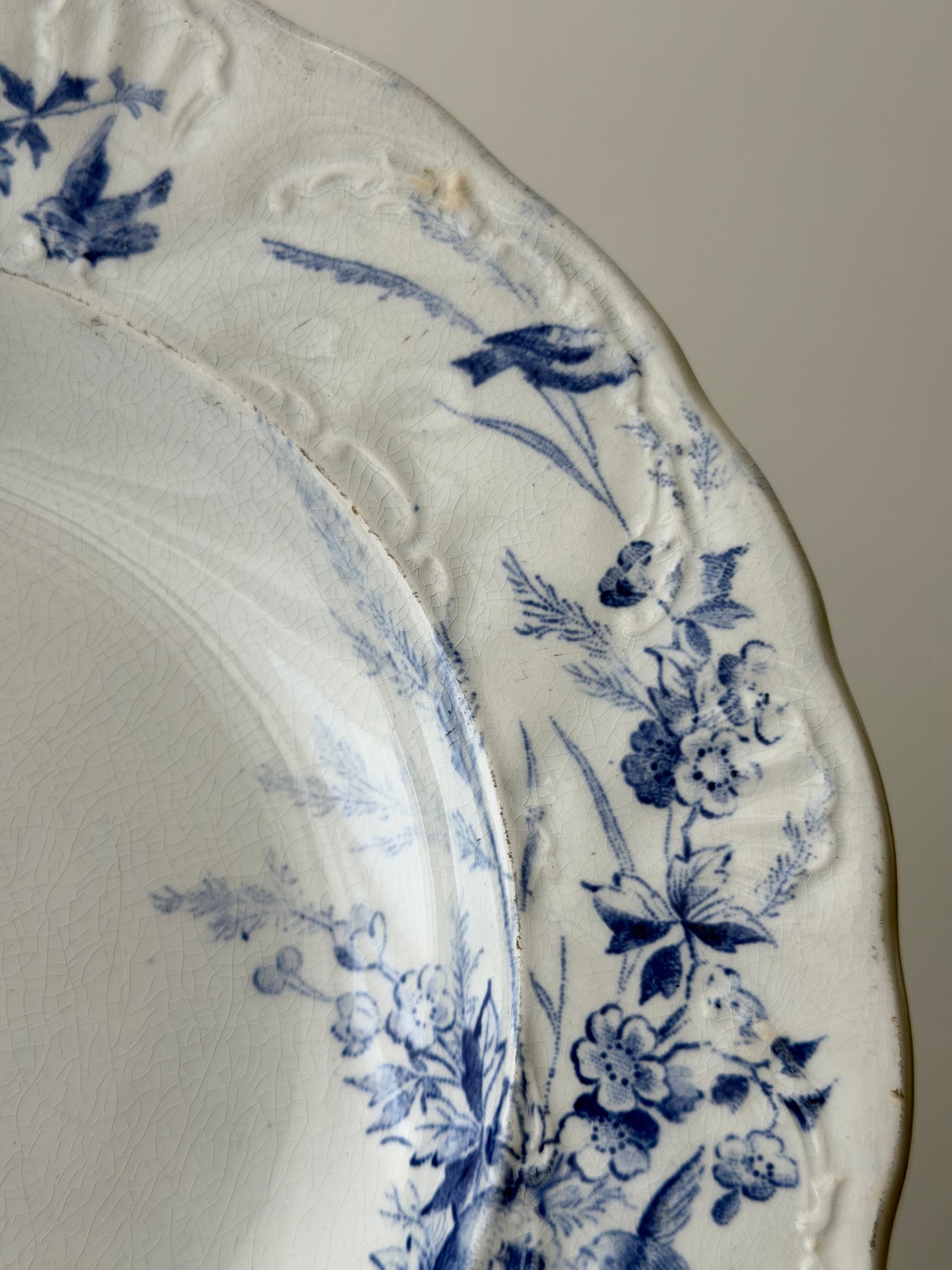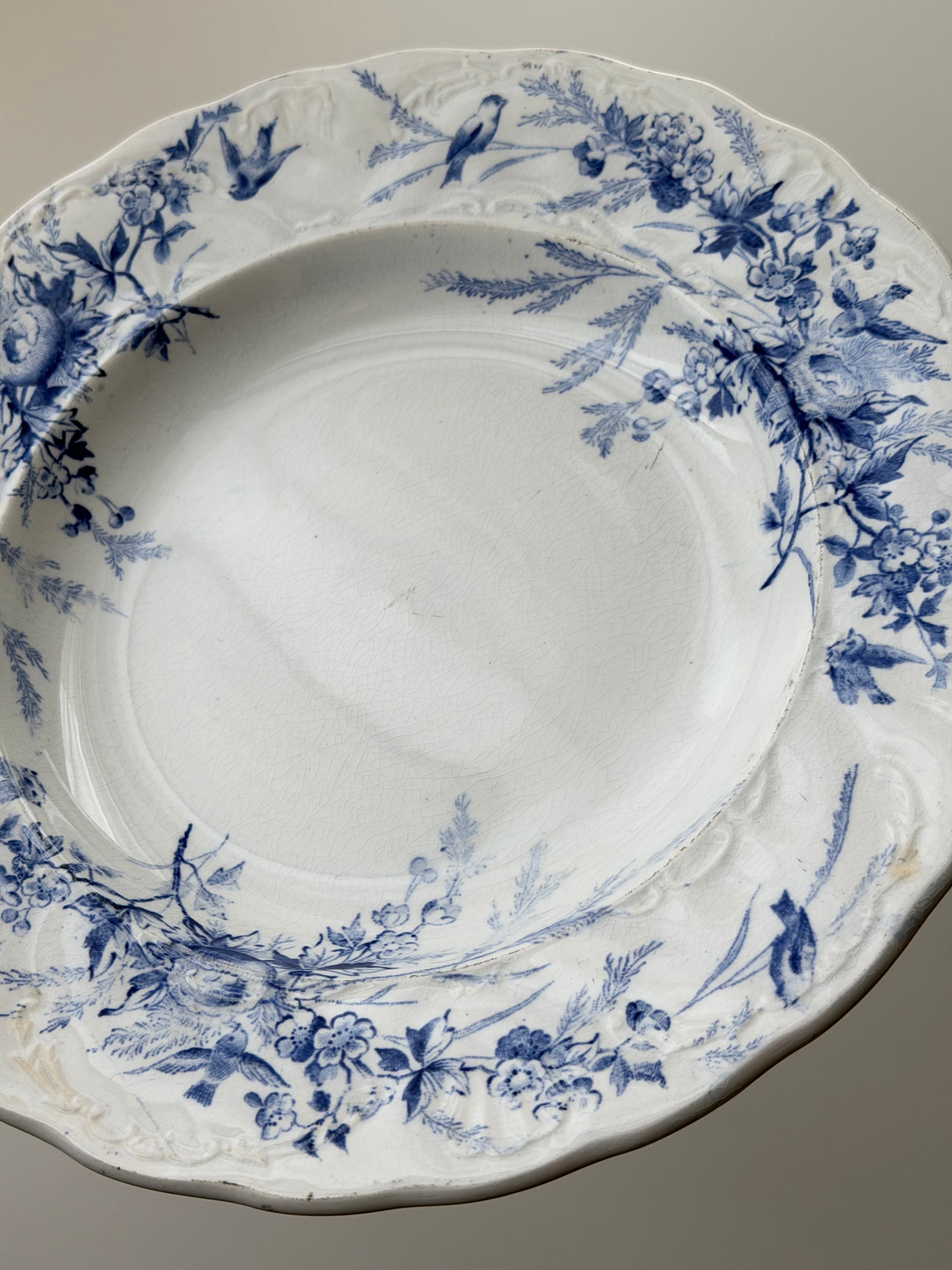 Creil et Montereau クレイユモントロー / “LINOTTE” blue レリーフの入った深皿プレート c