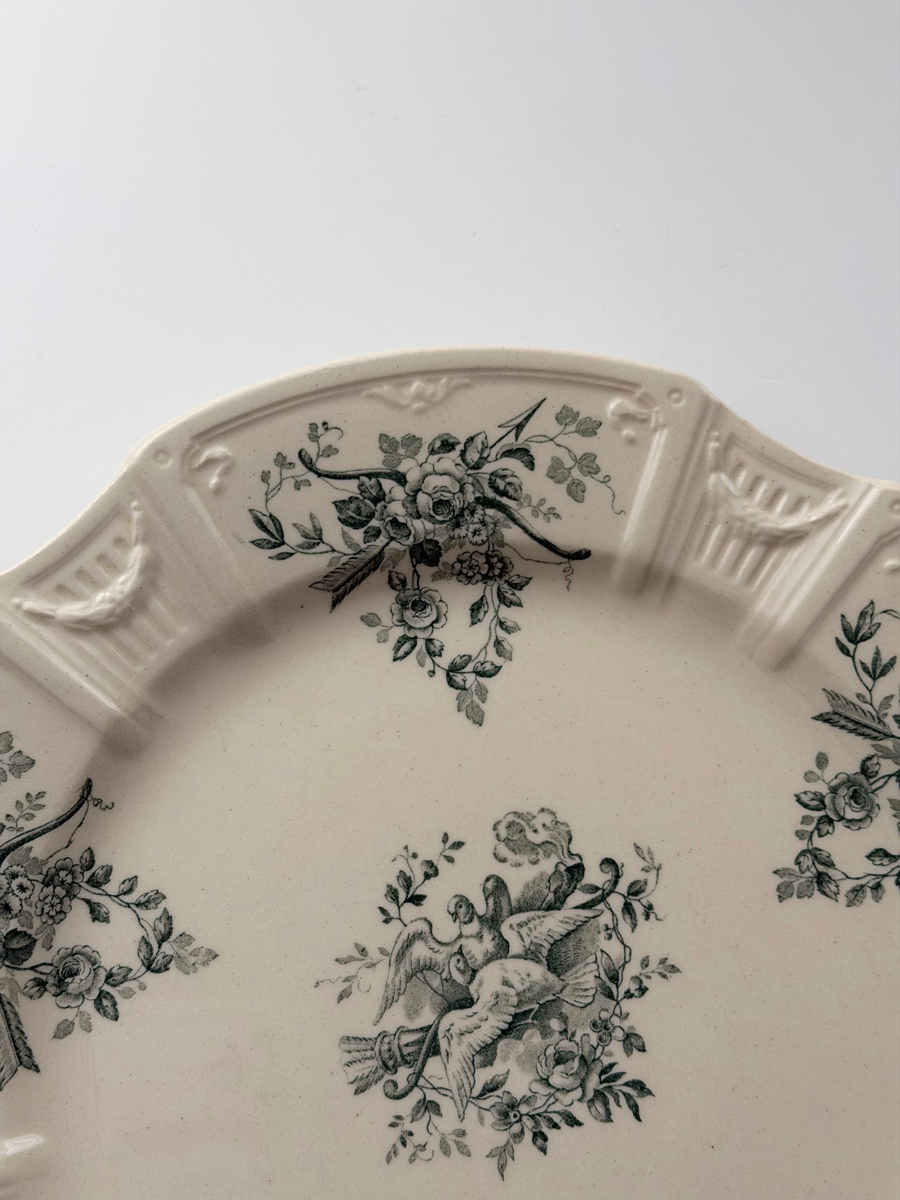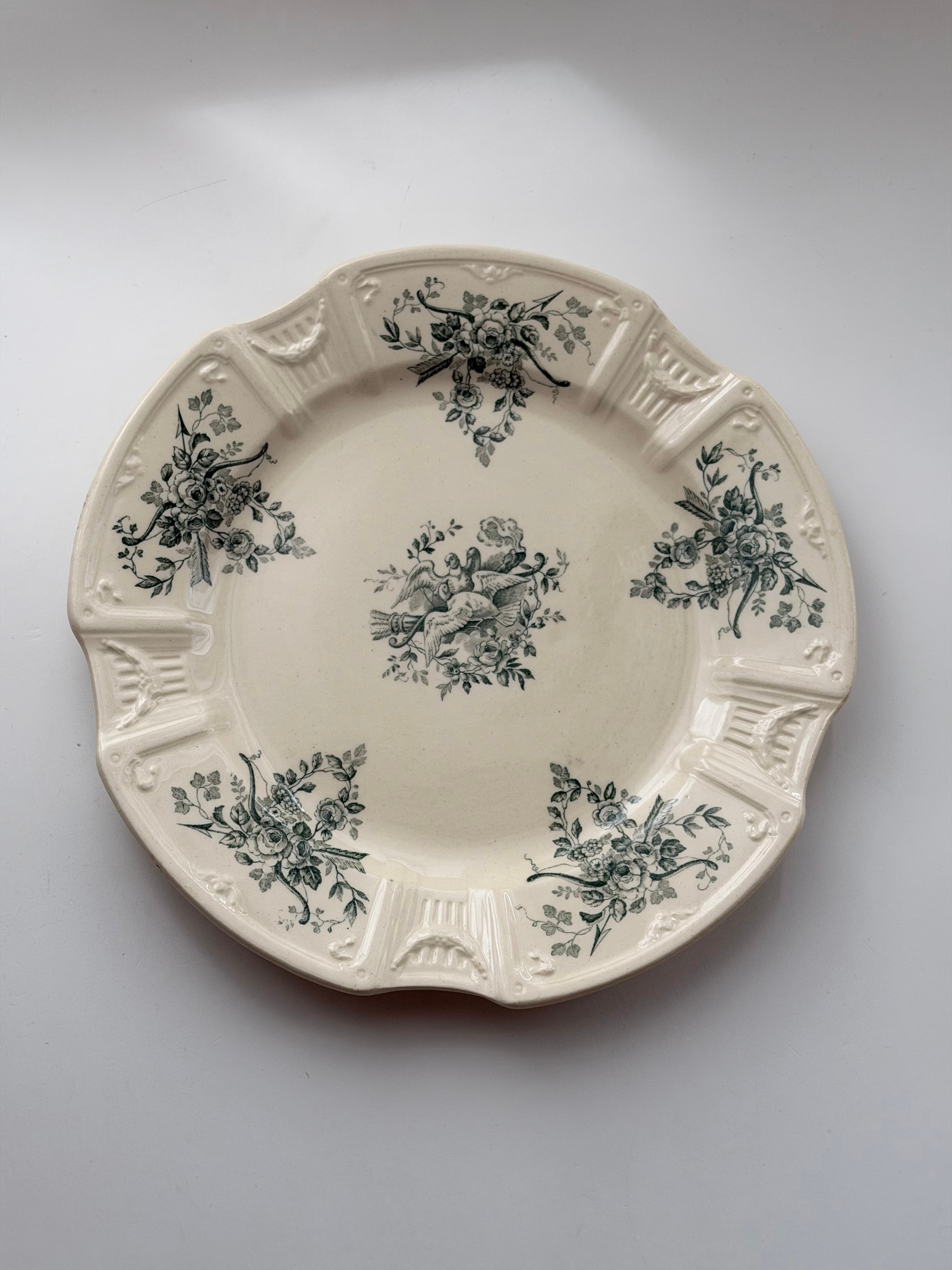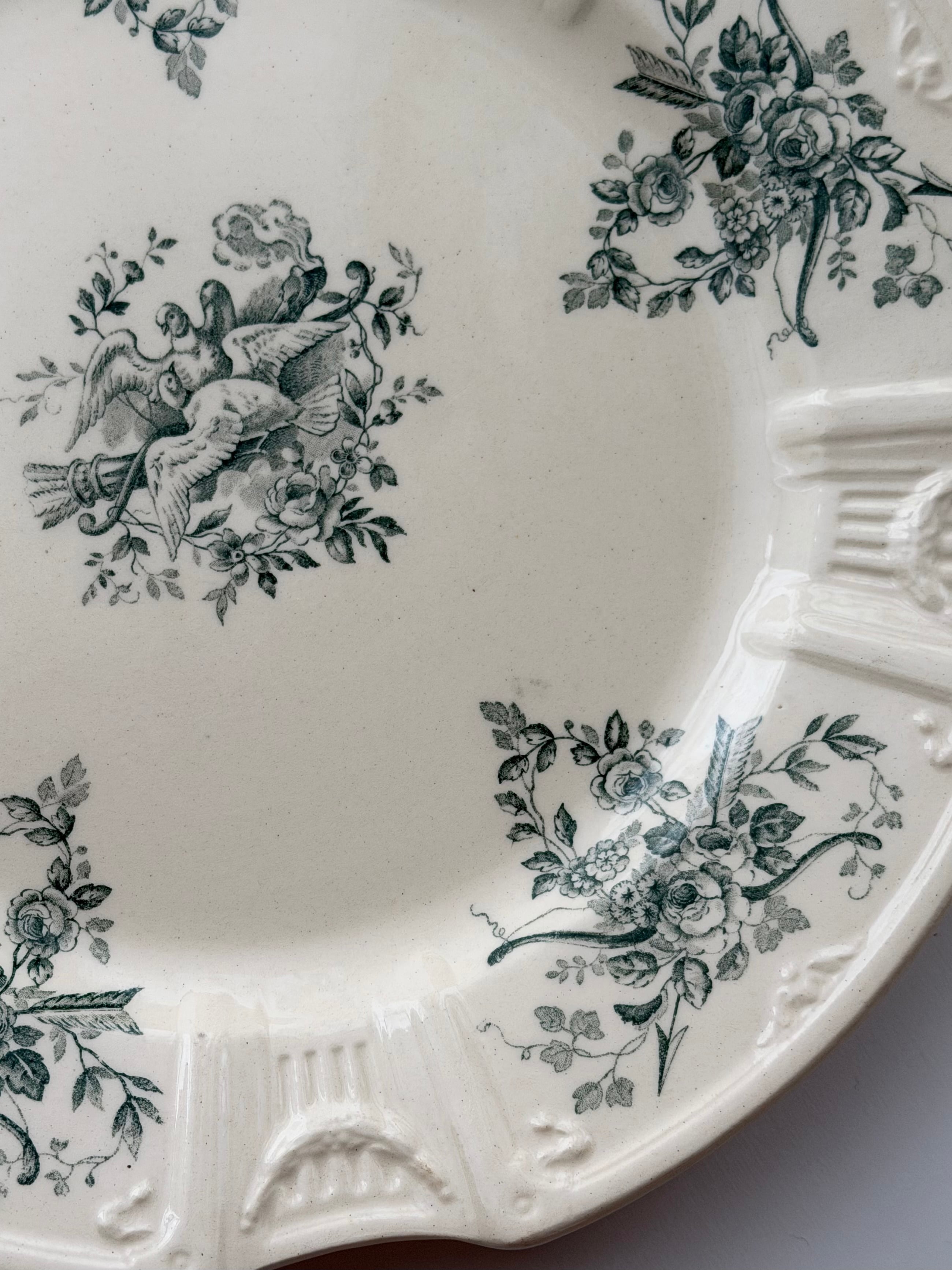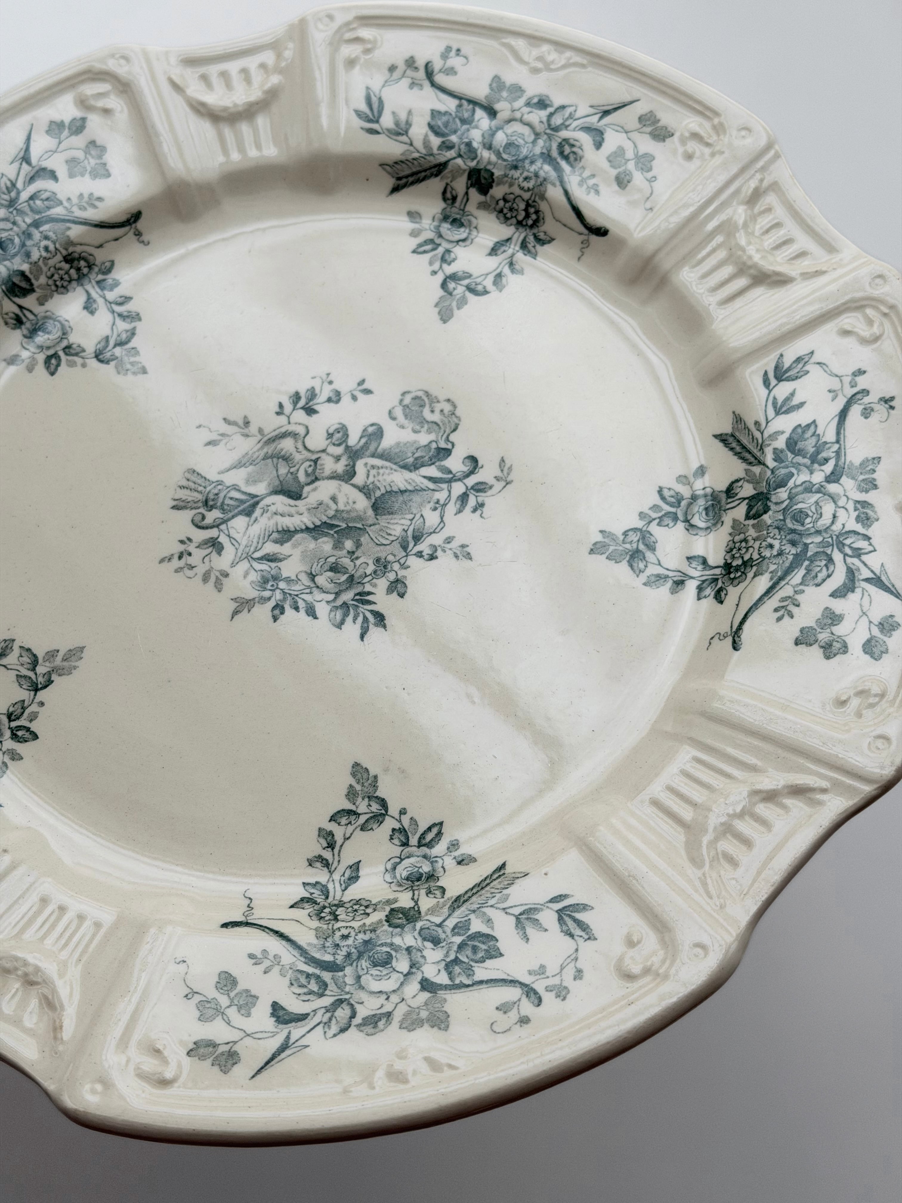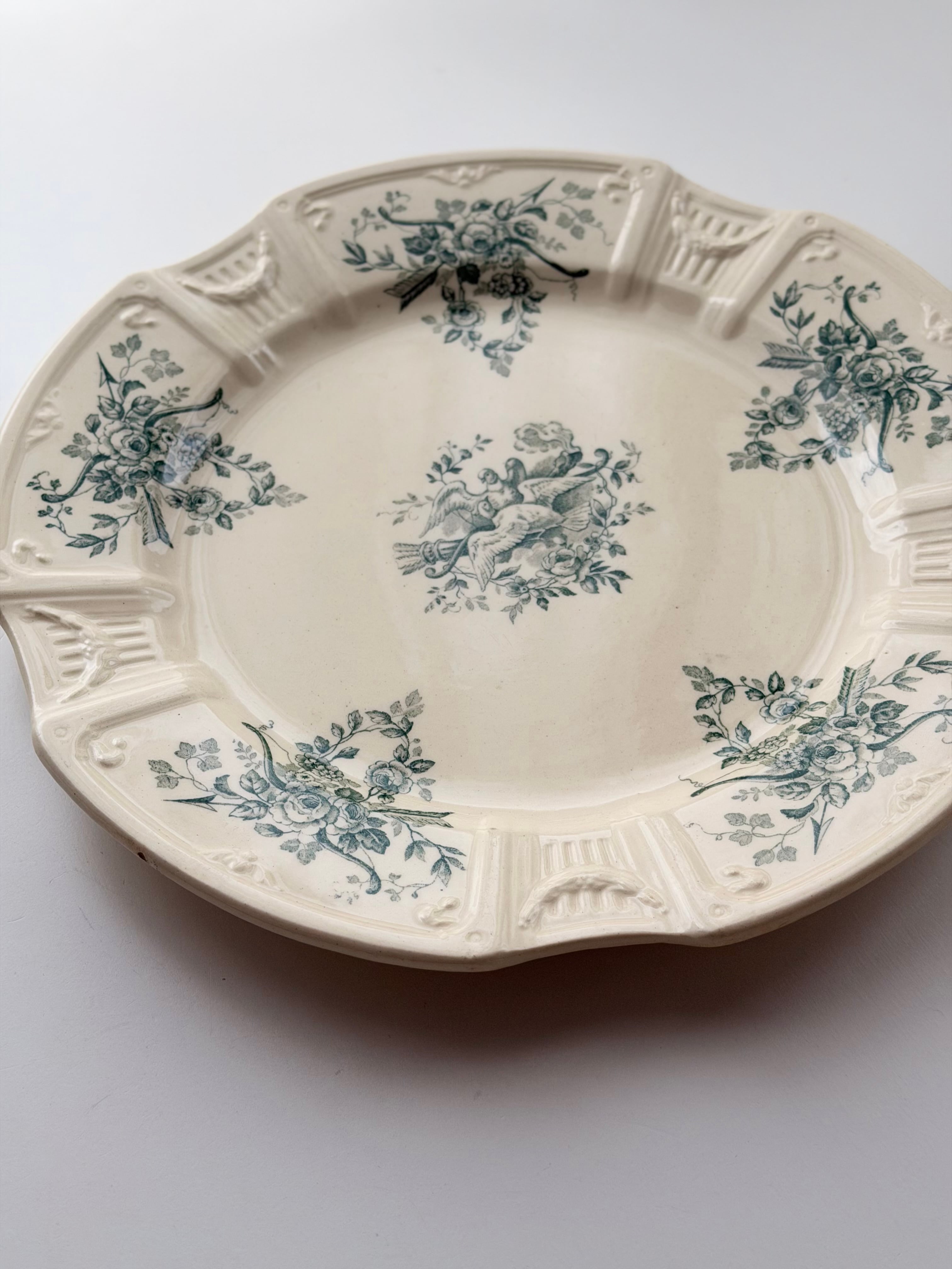 Gien ジアン / 鳩と薔薇のレリーフプレート a