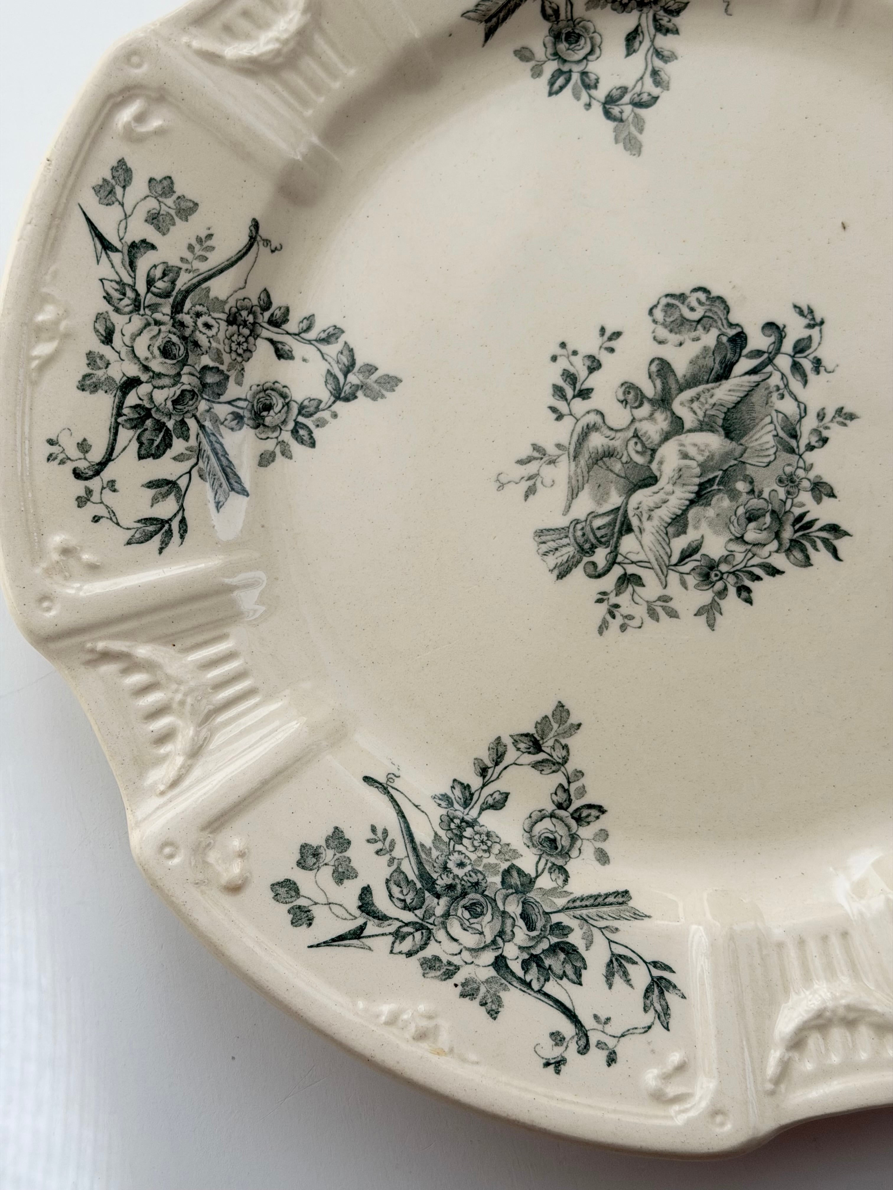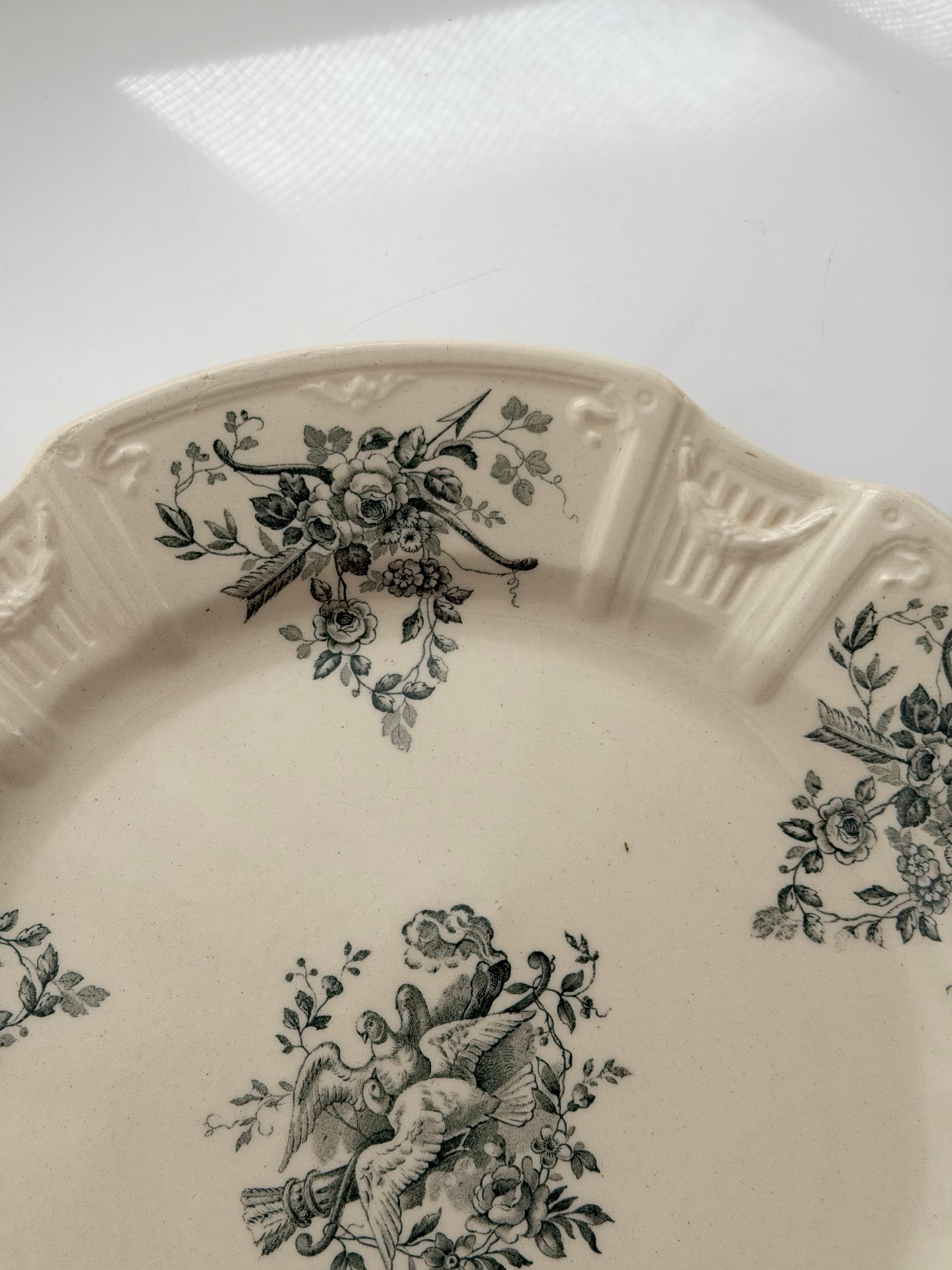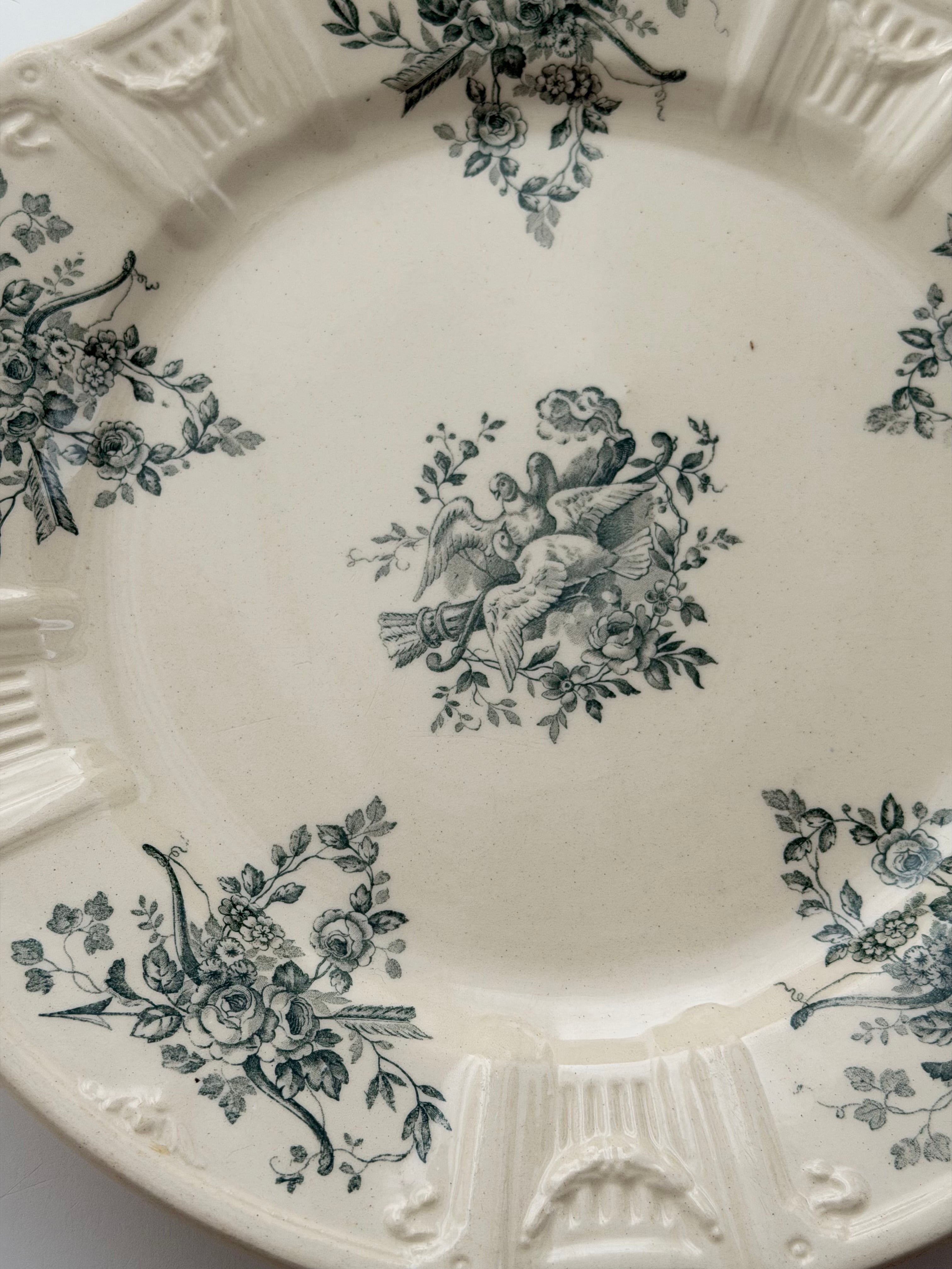 Gien ジアン / 鳩と薔薇のレリーフプレート b
