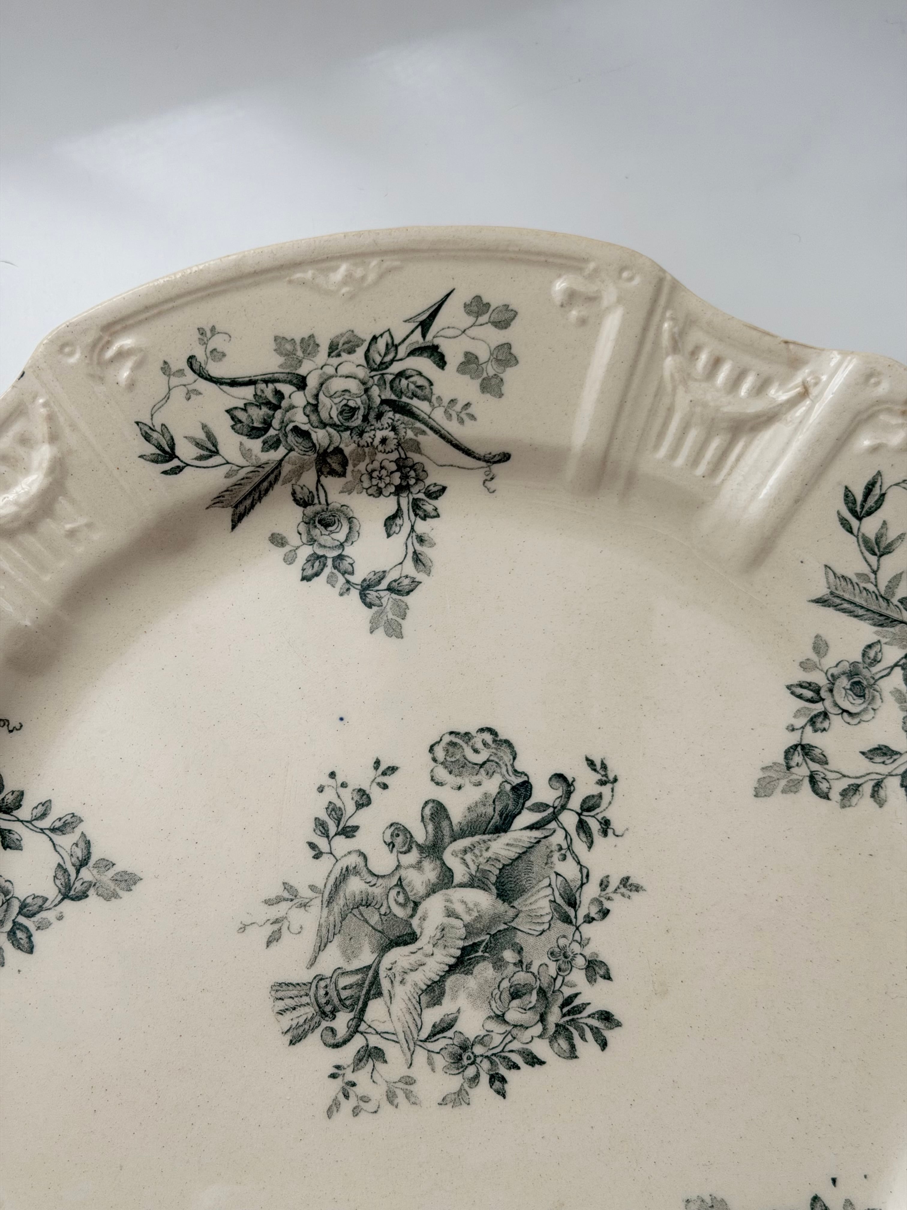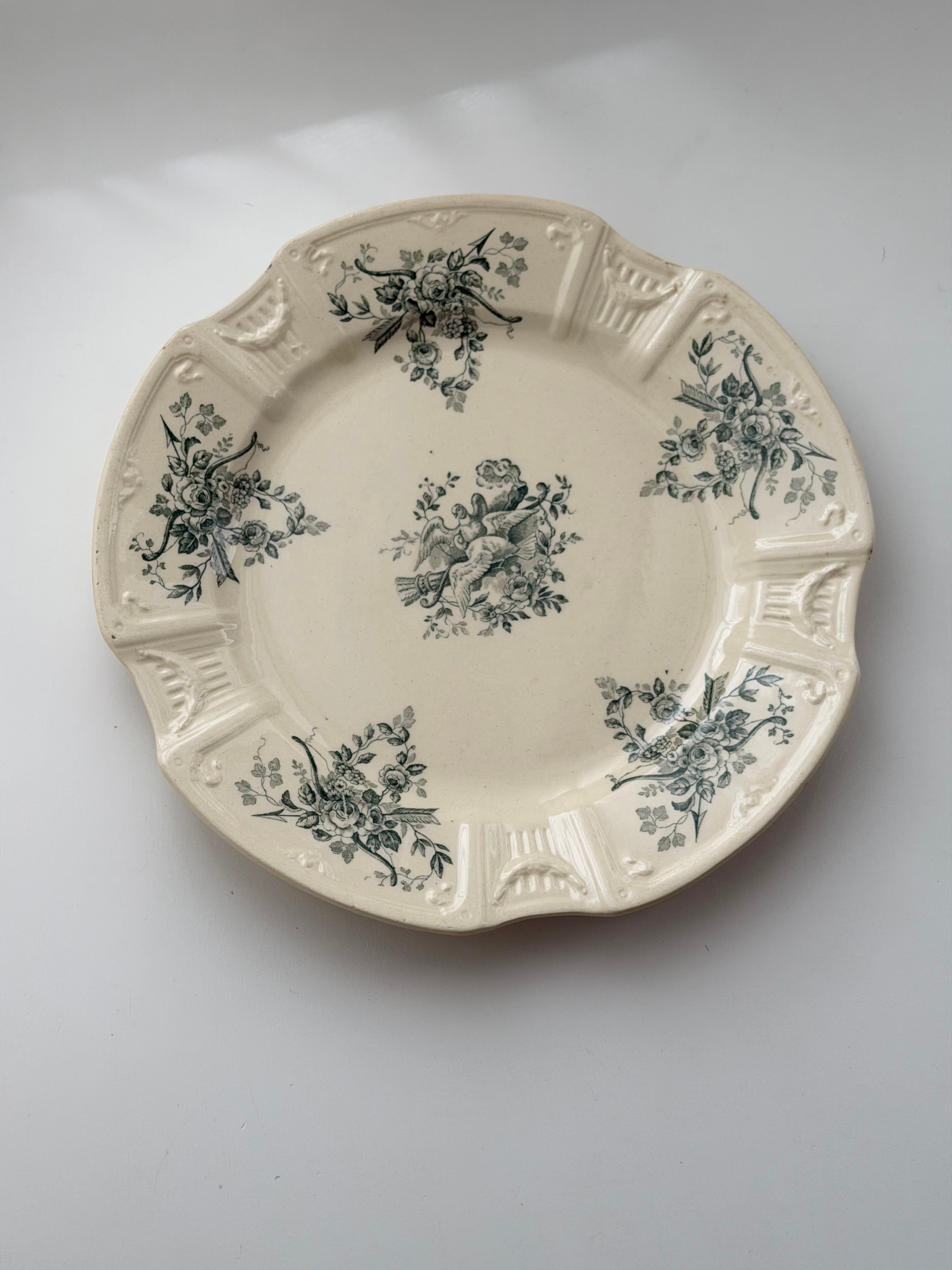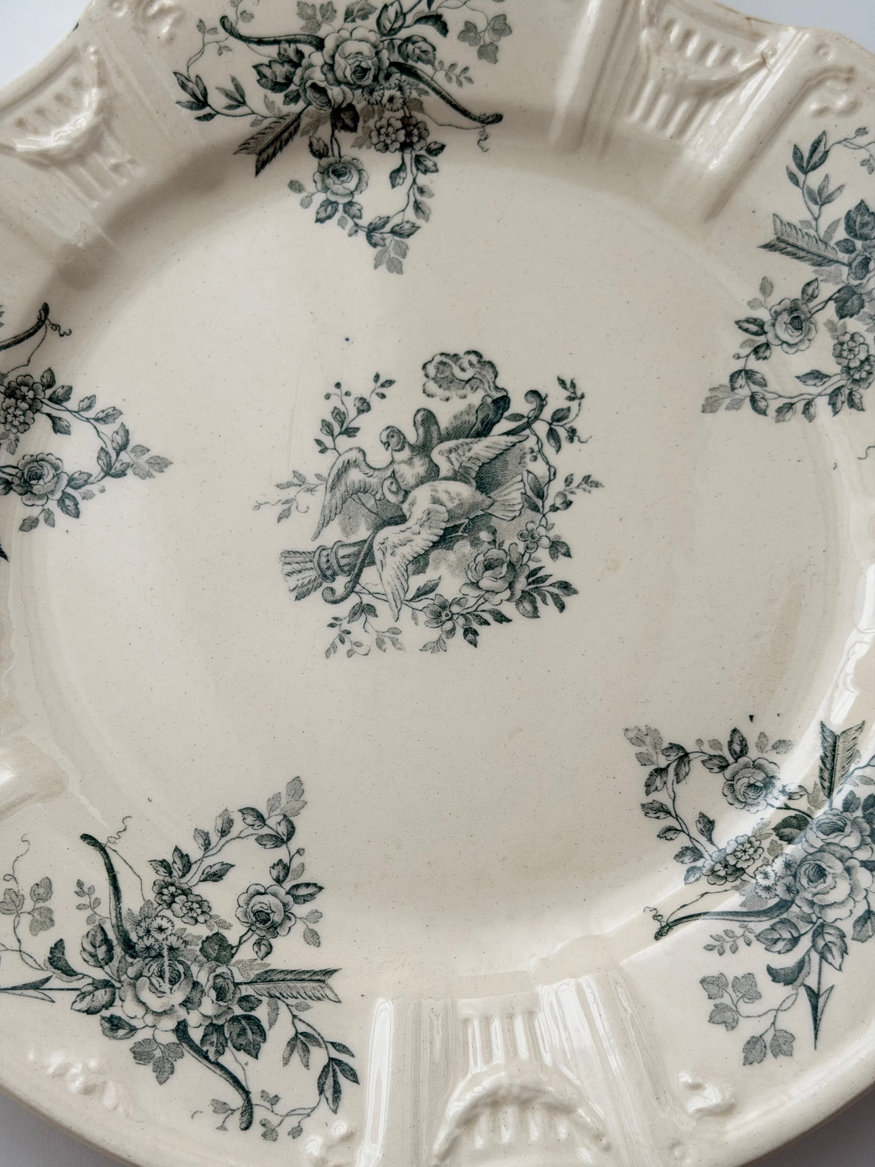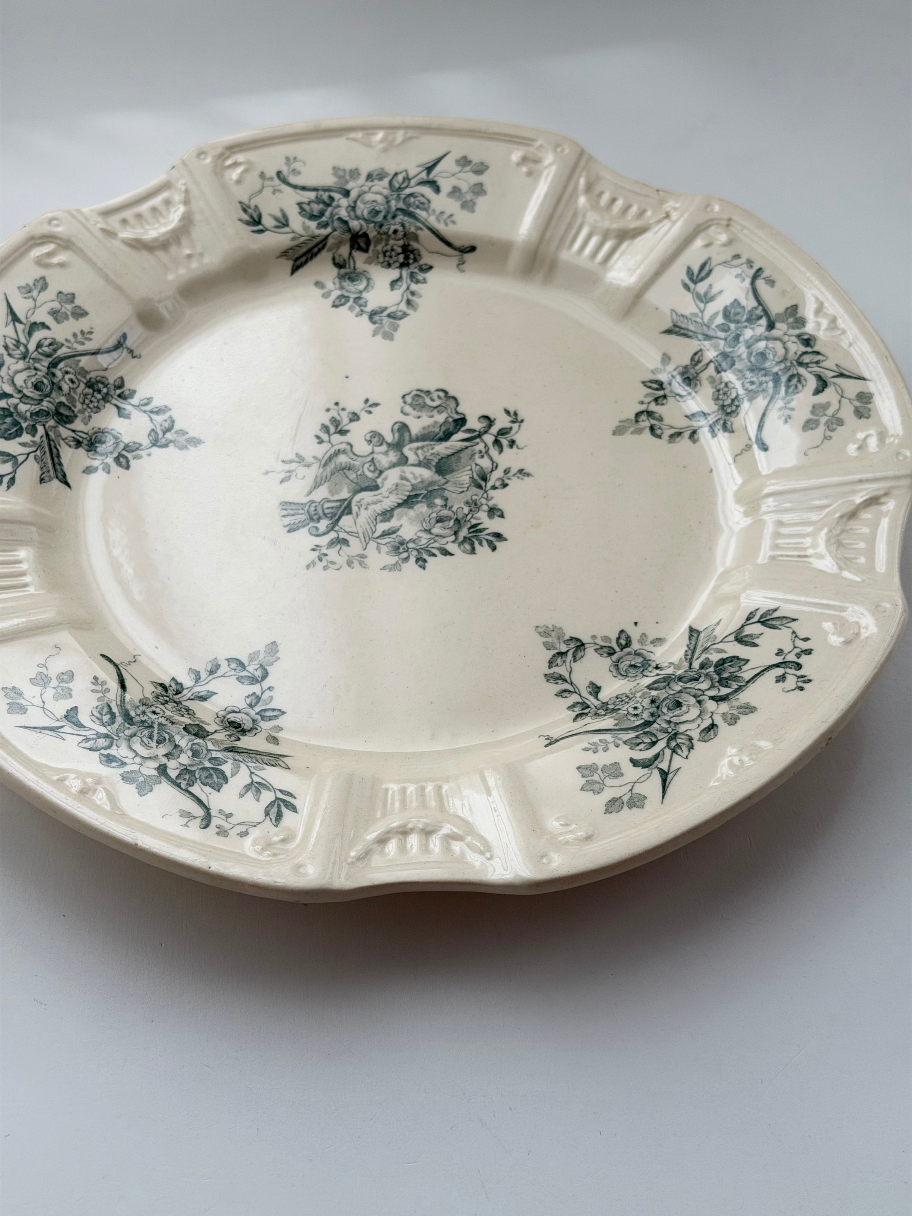 Gien ジアン / 鳩と薔薇のレリーフプレート d
