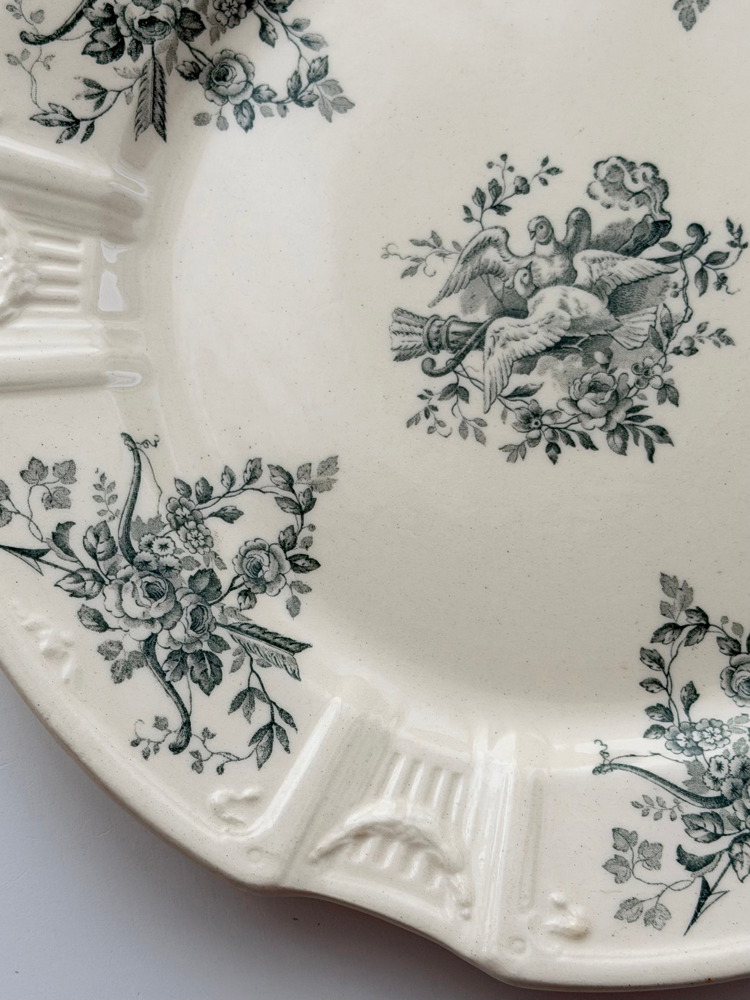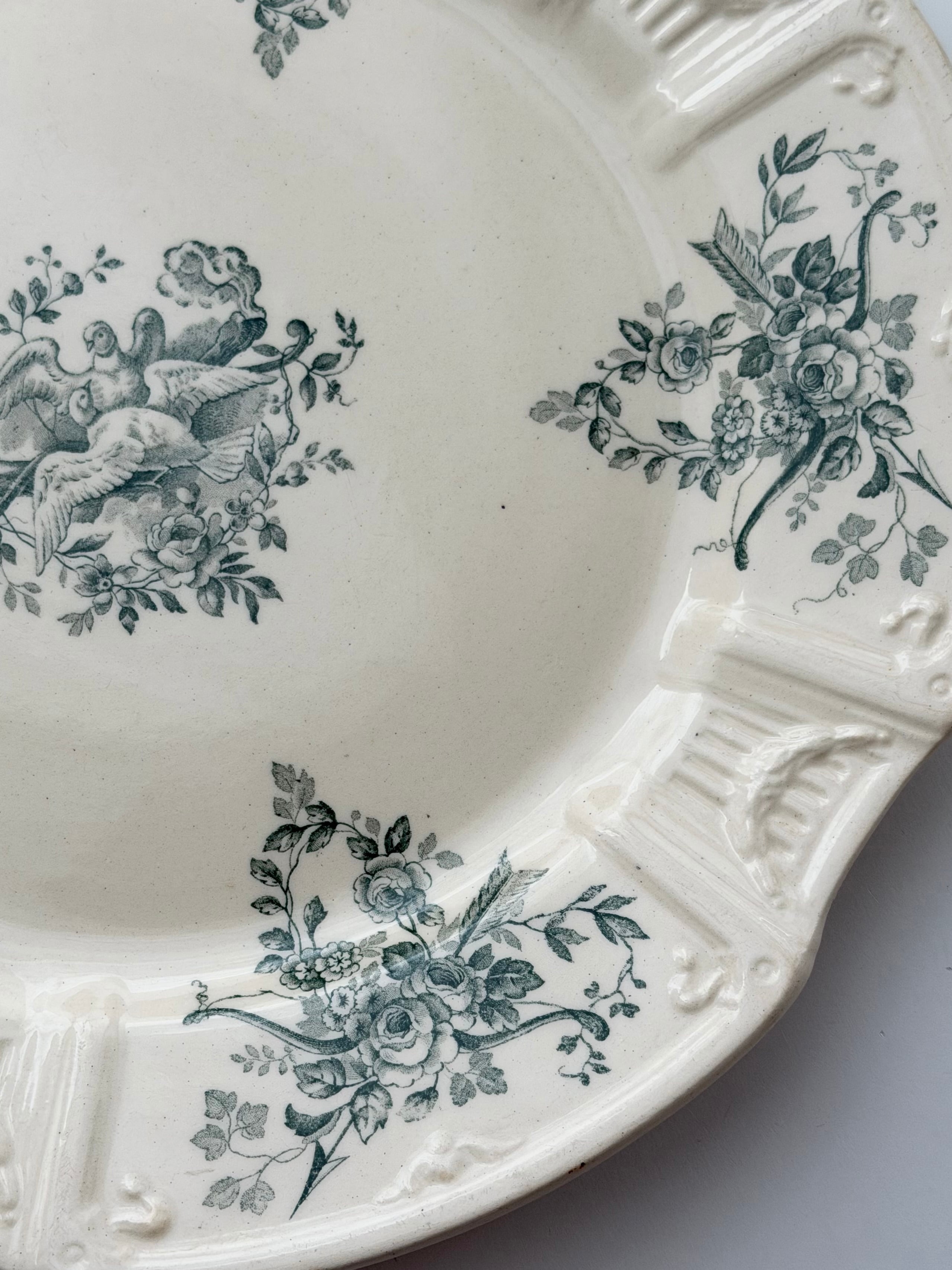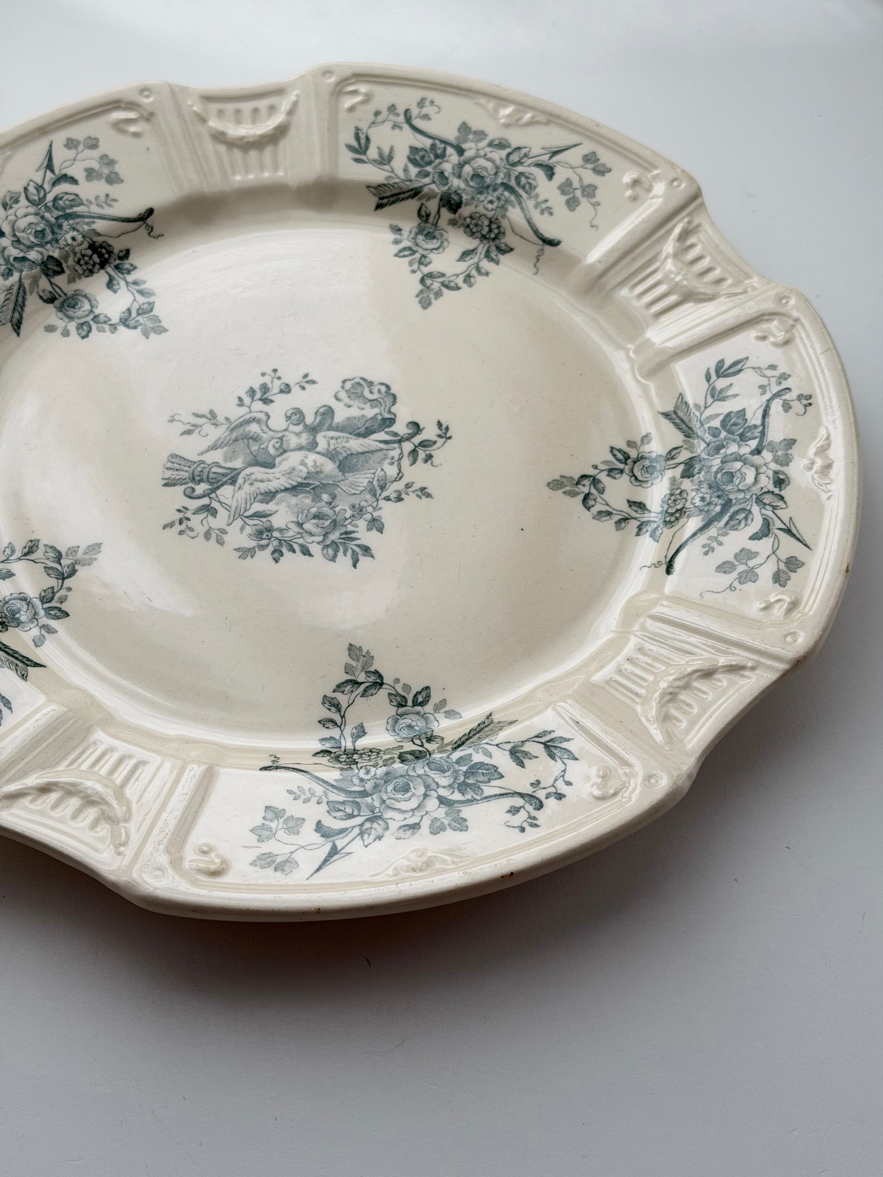 Gien ジアン / 鳩と薔薇のレリーフプレート e