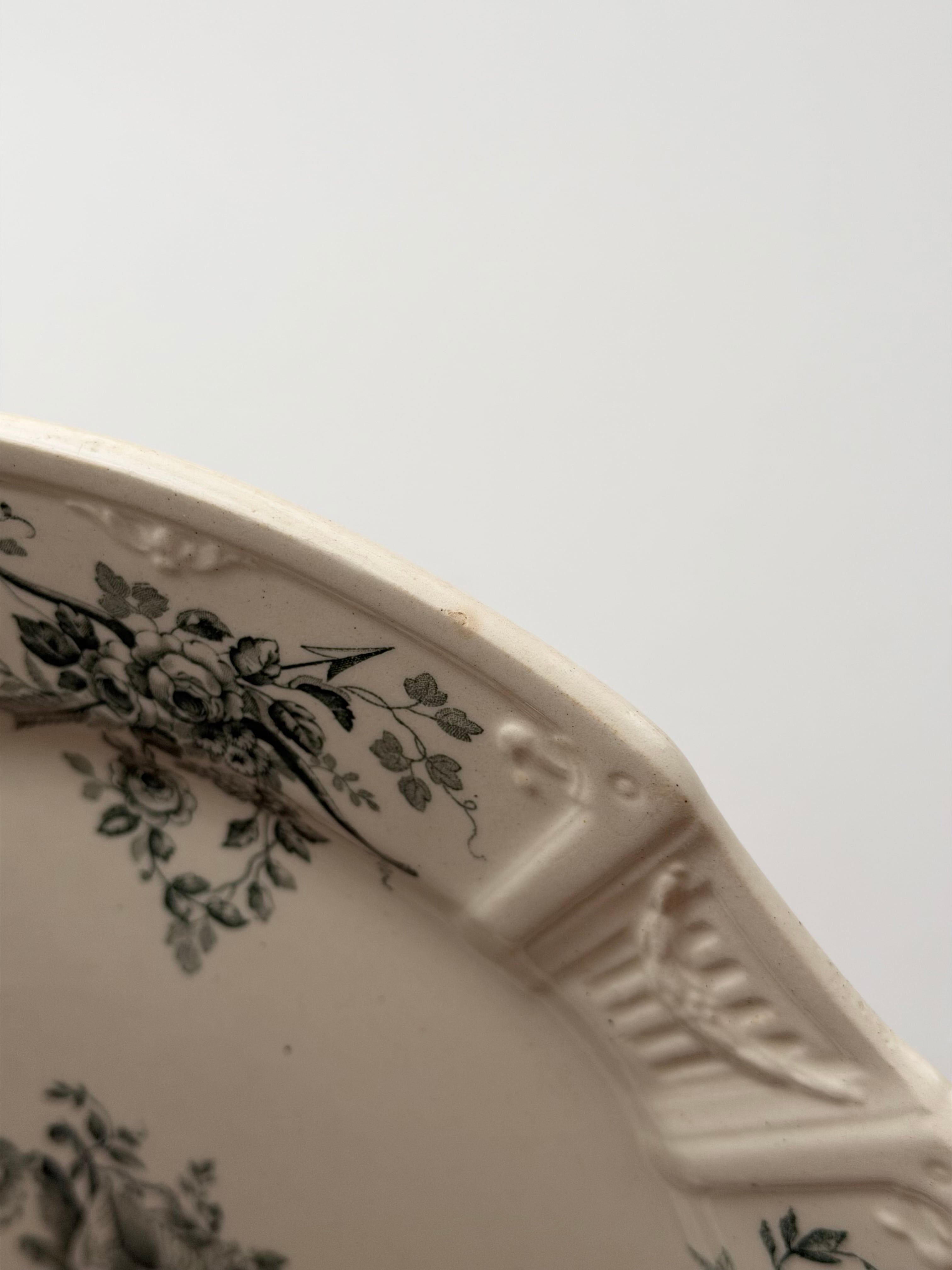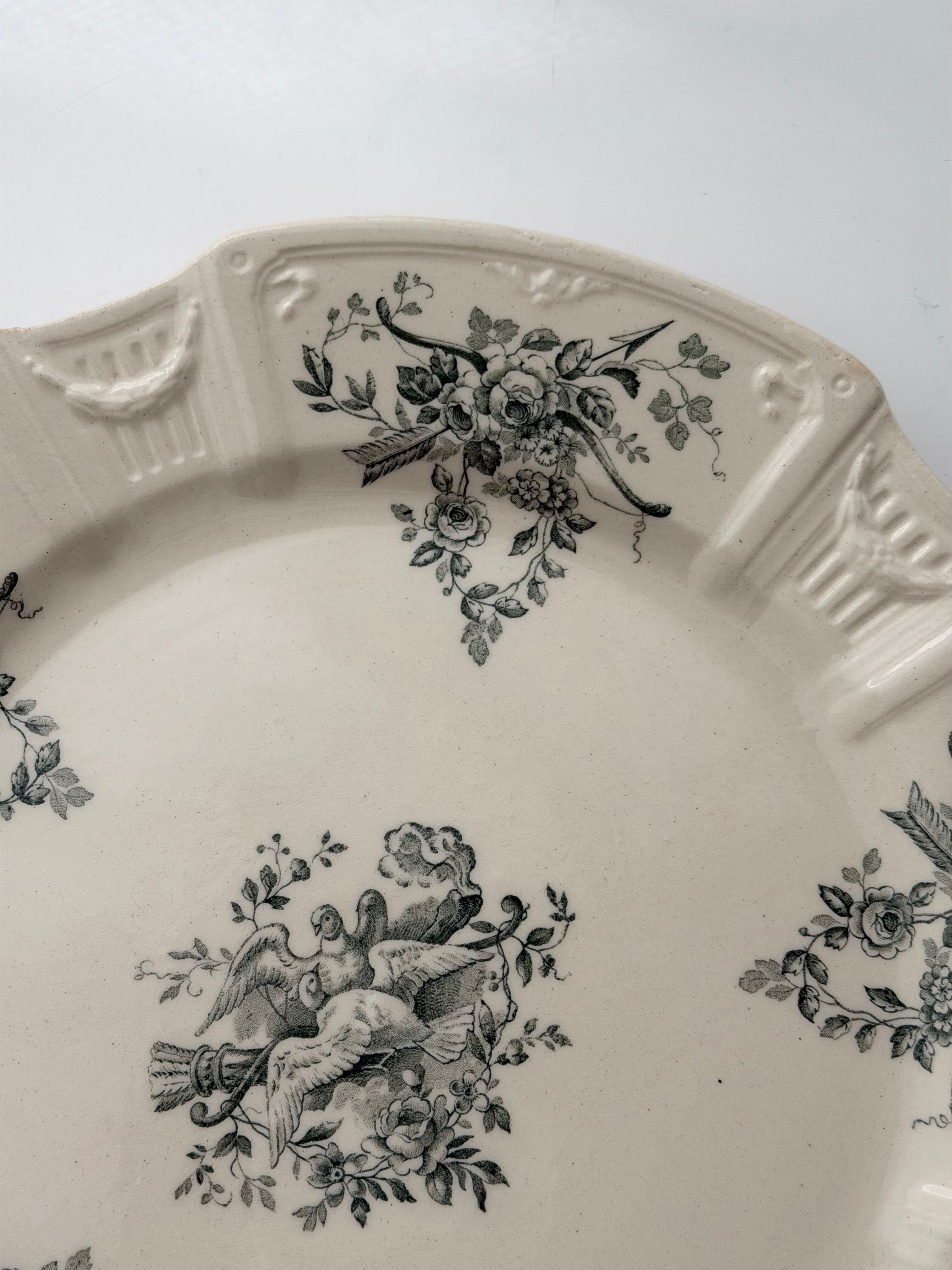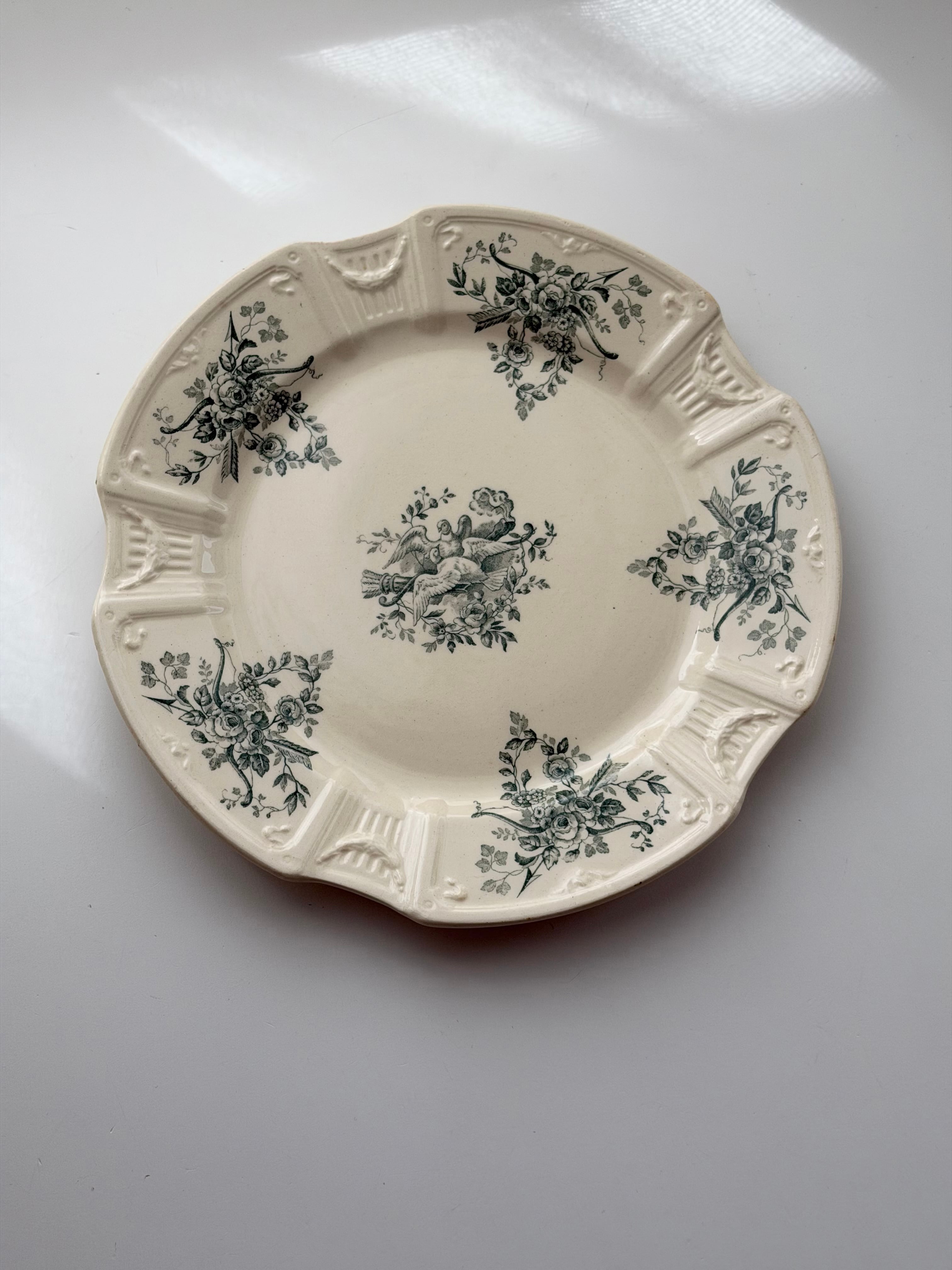 Gien ジアン / 鳩と薔薇のレリーフプレート e