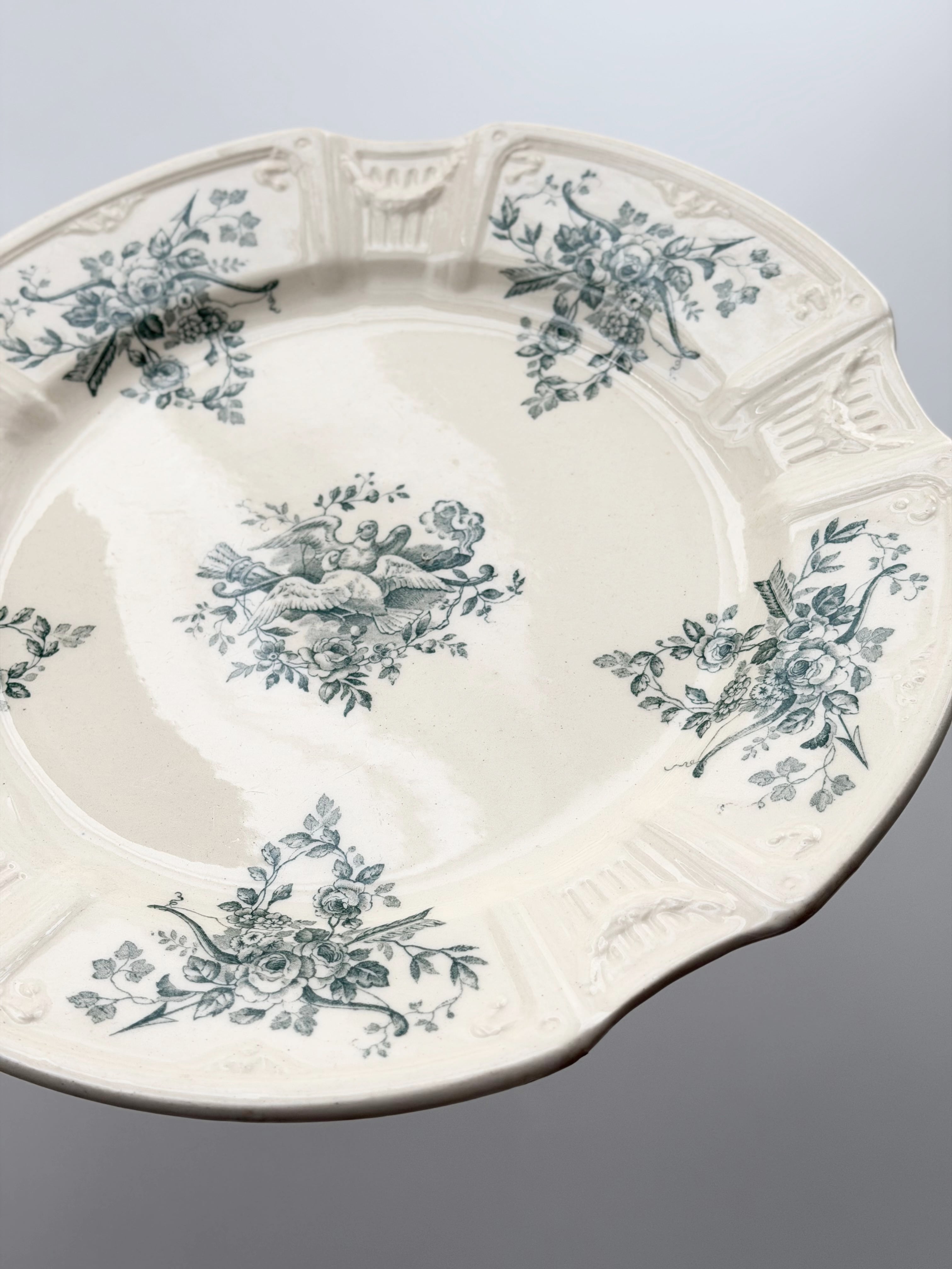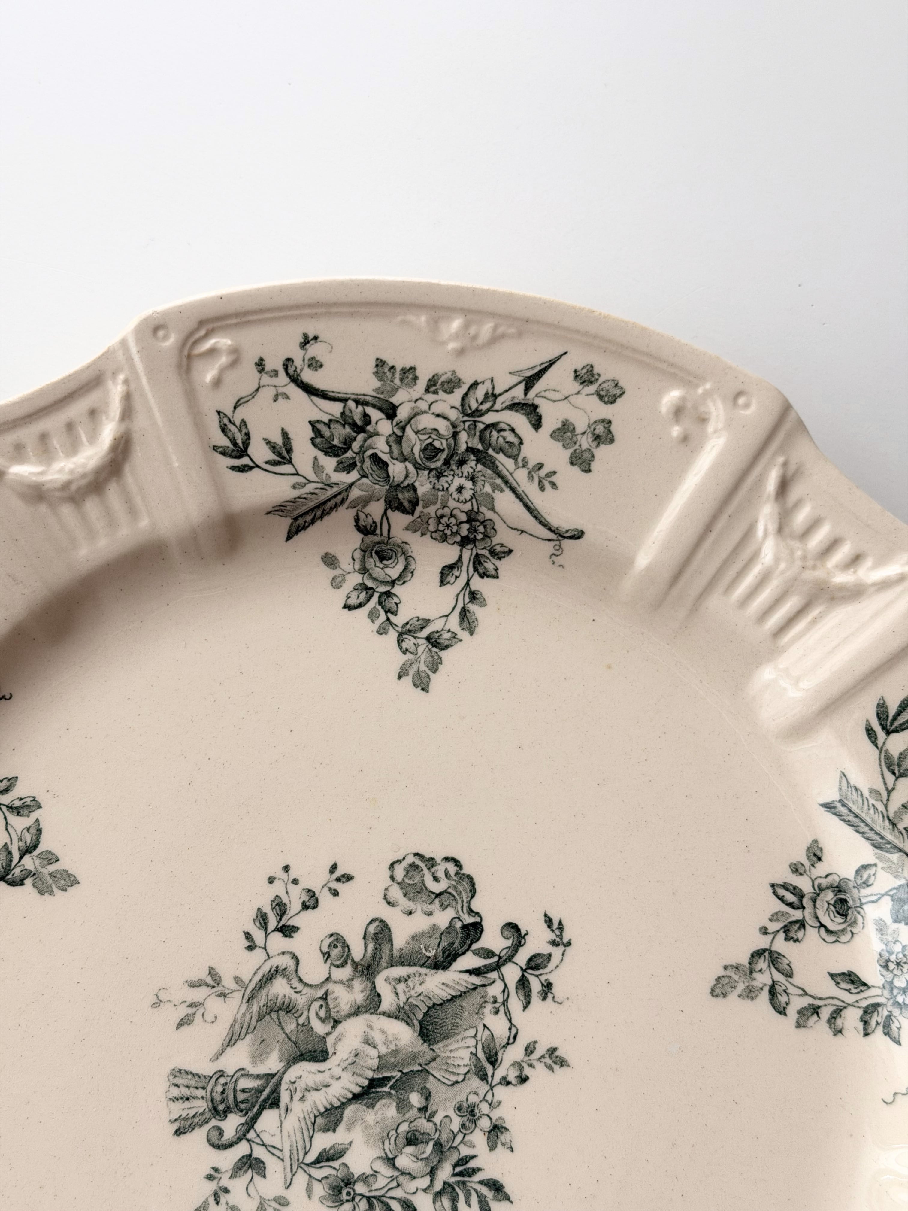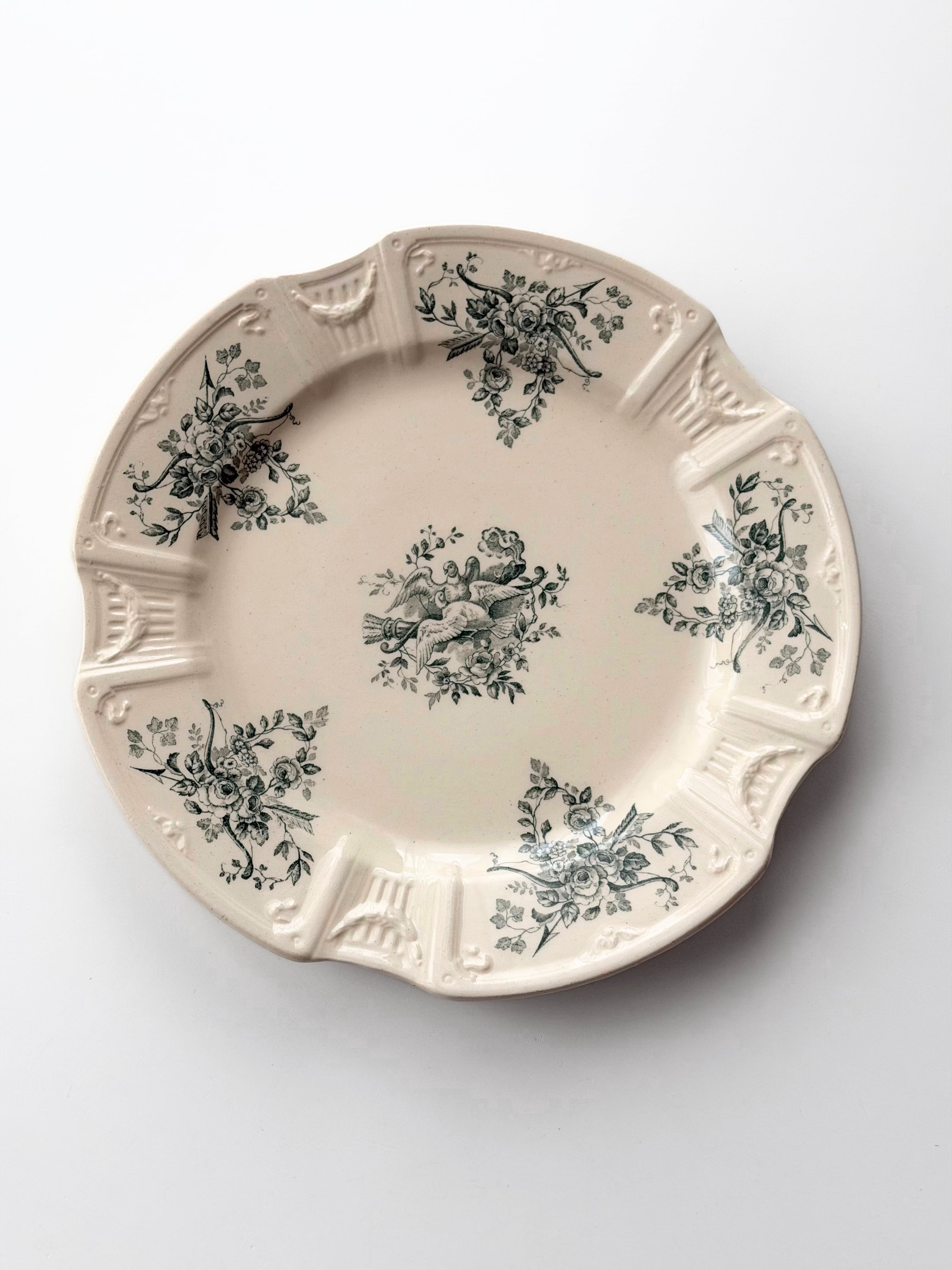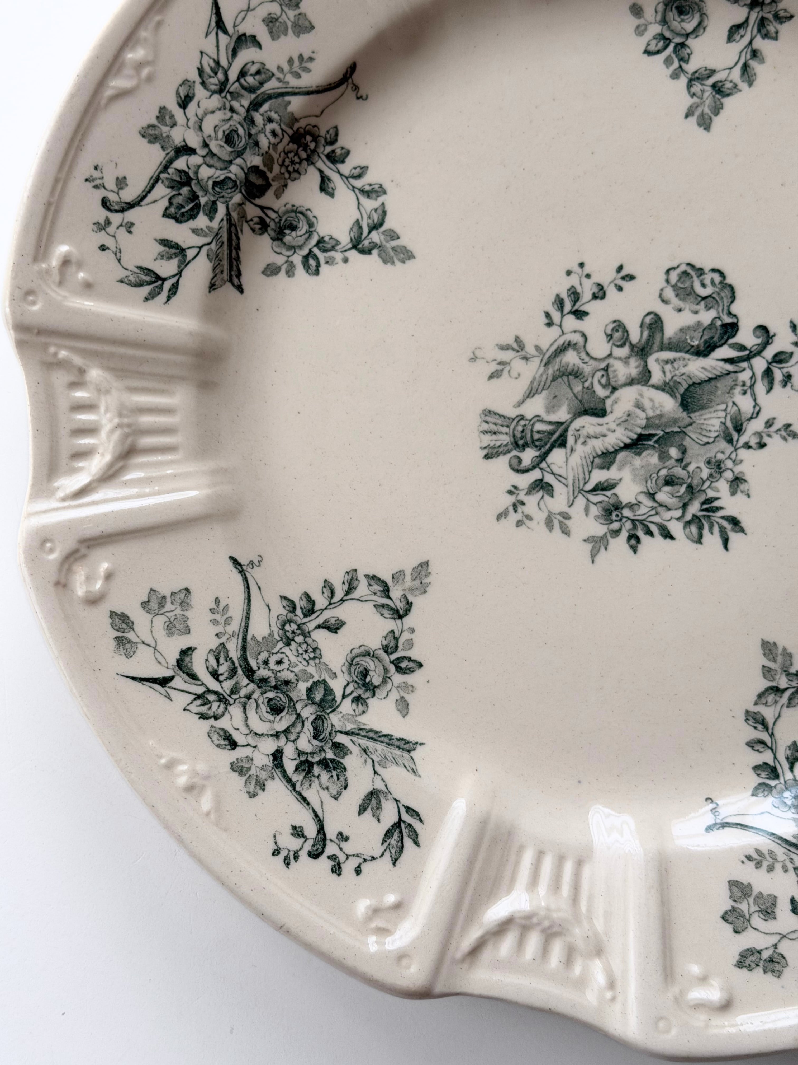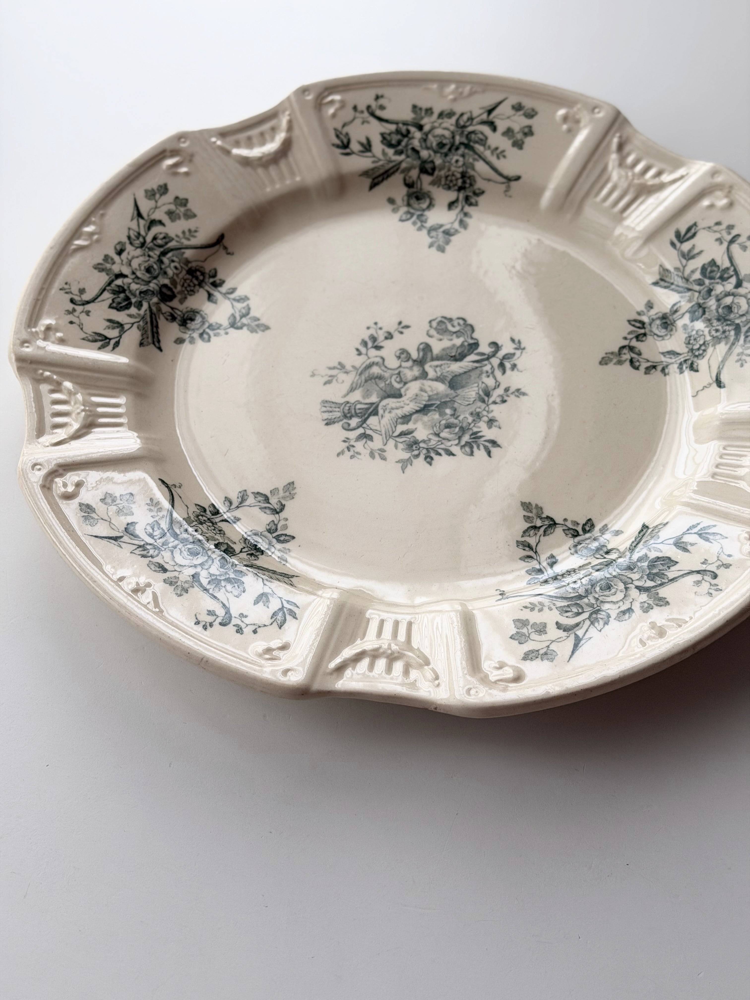 Gien ジアン / 鳩と薔薇のレリーフプレート g