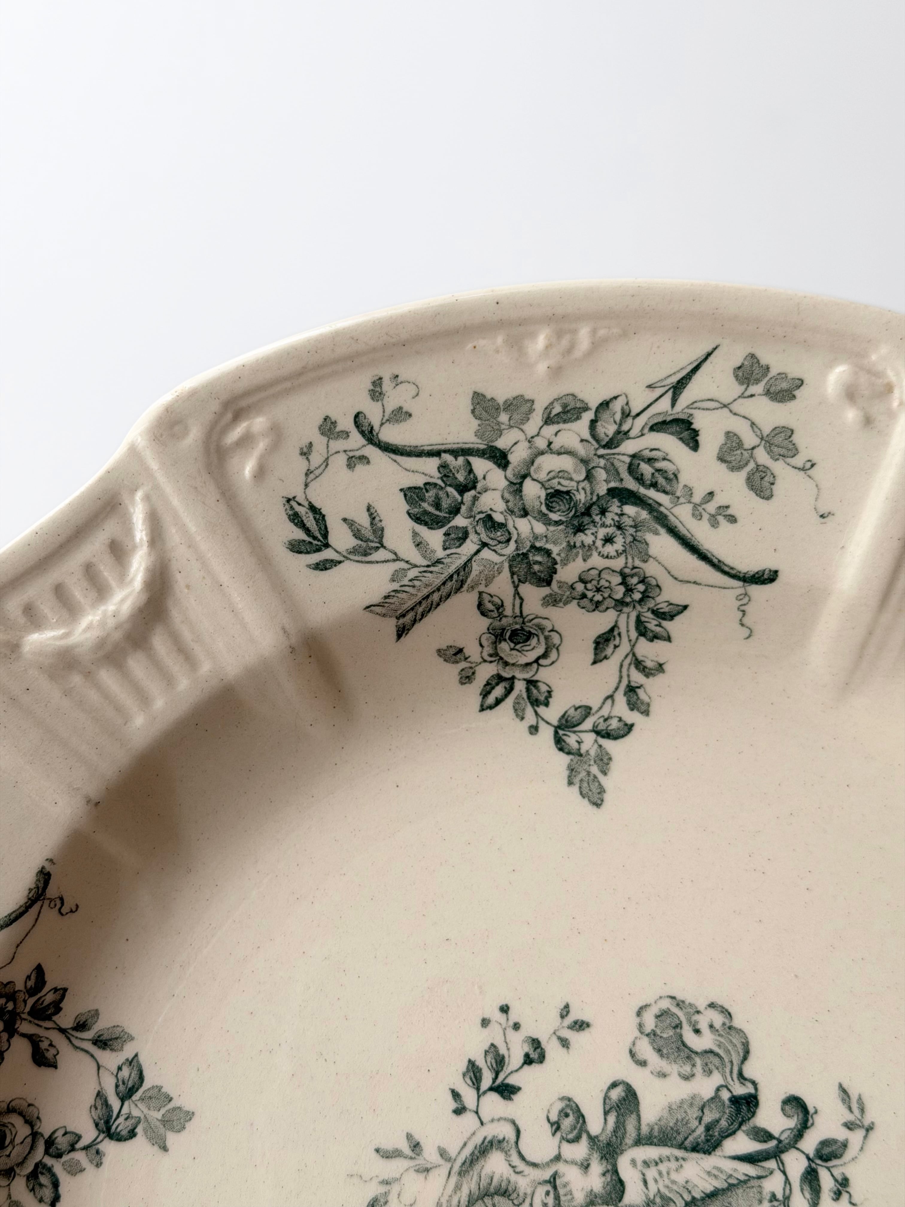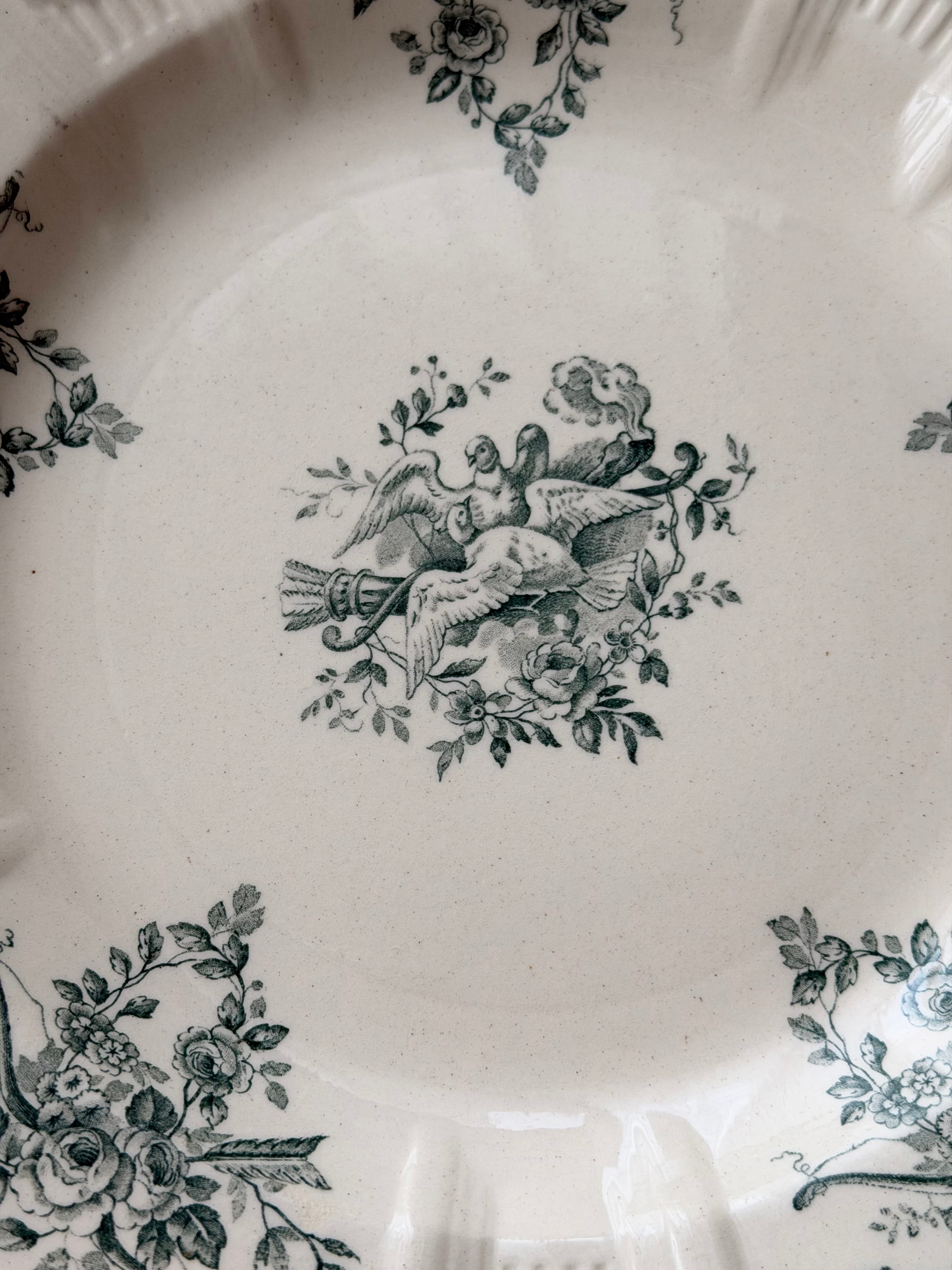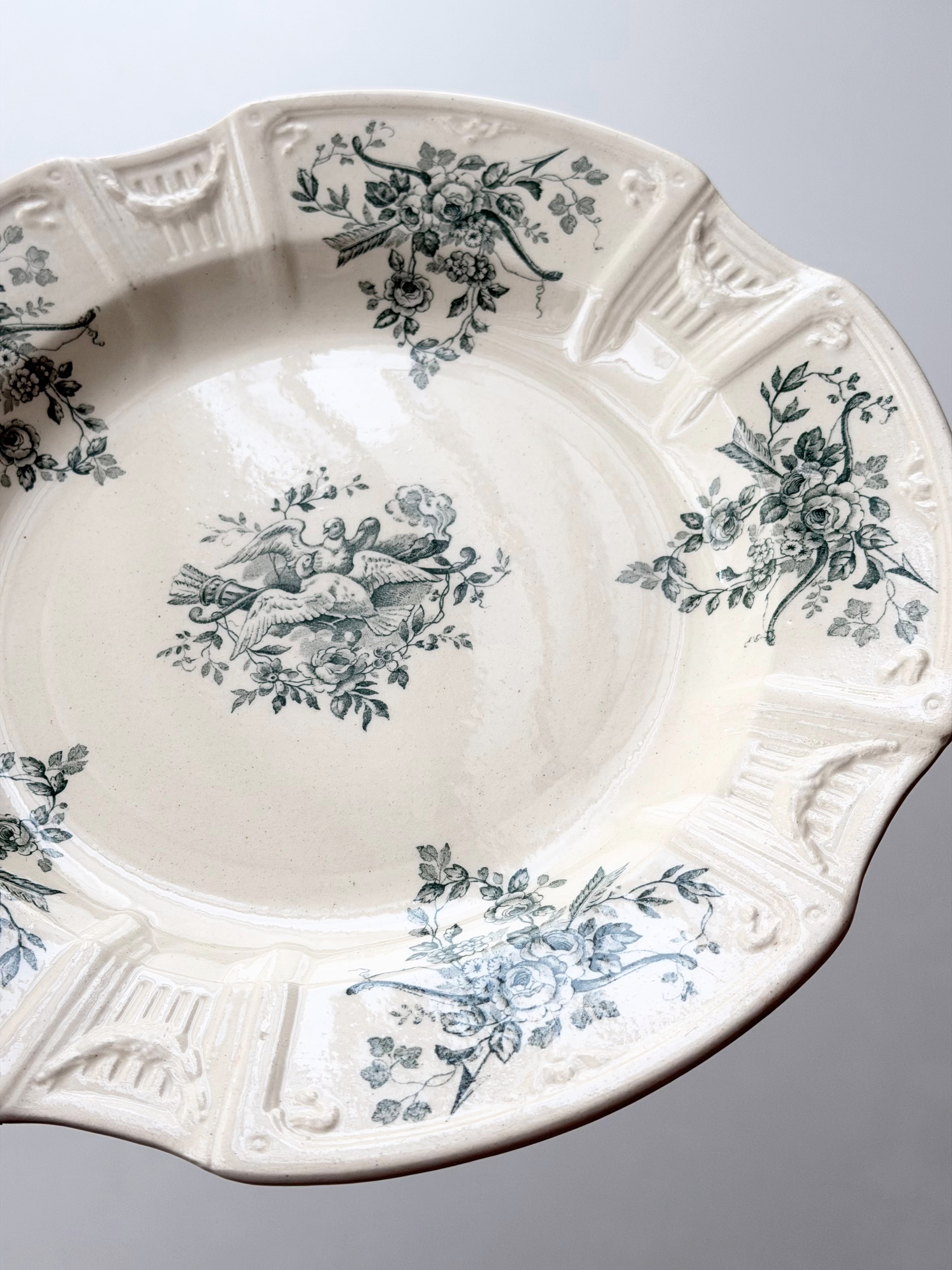 Gien ジアン / 鳩と薔薇のレリーフプレート 深皿 c