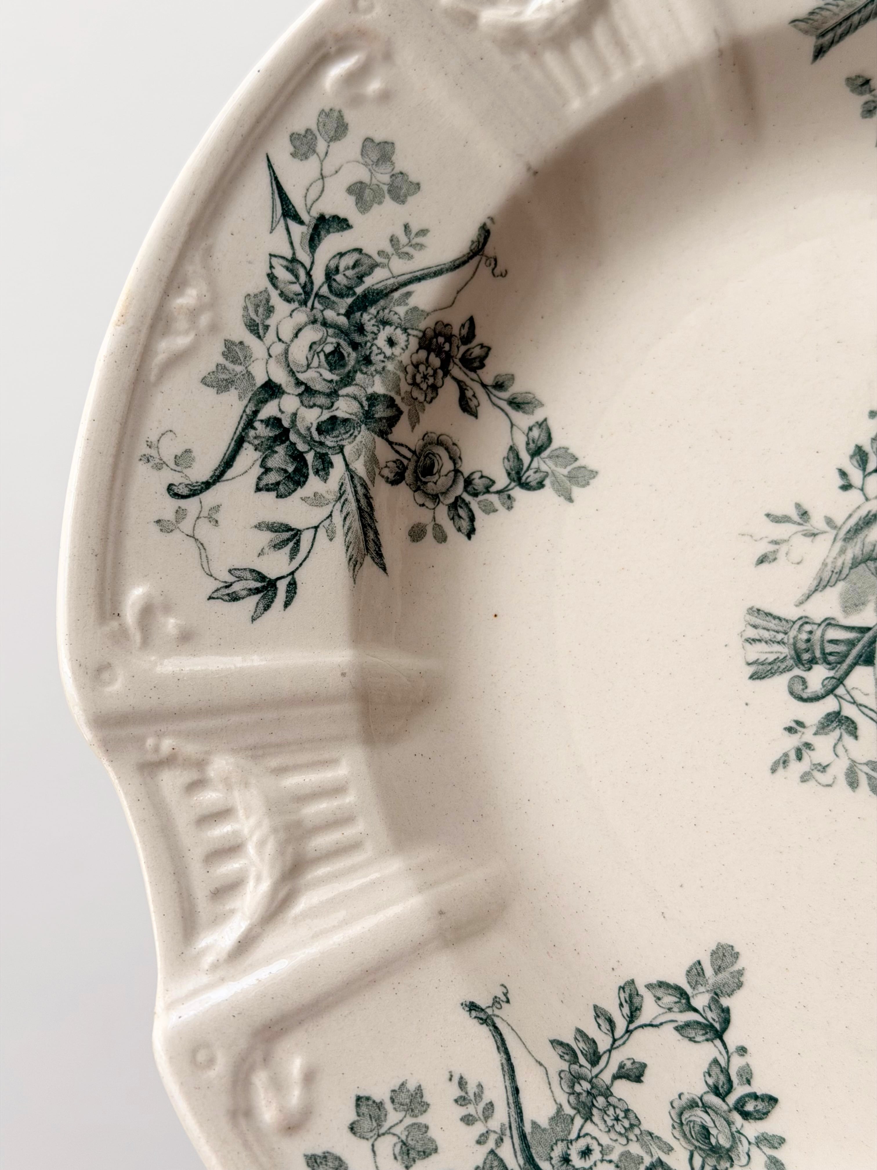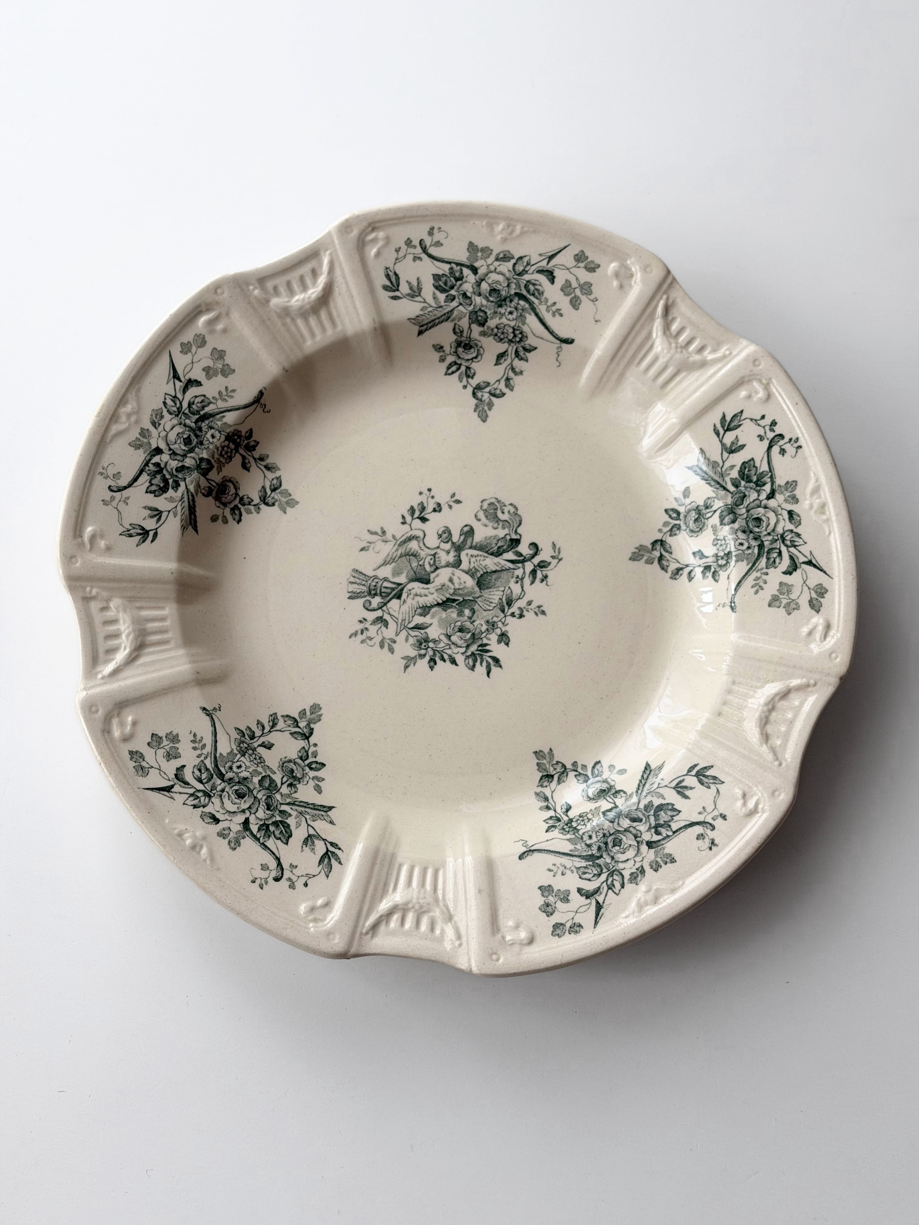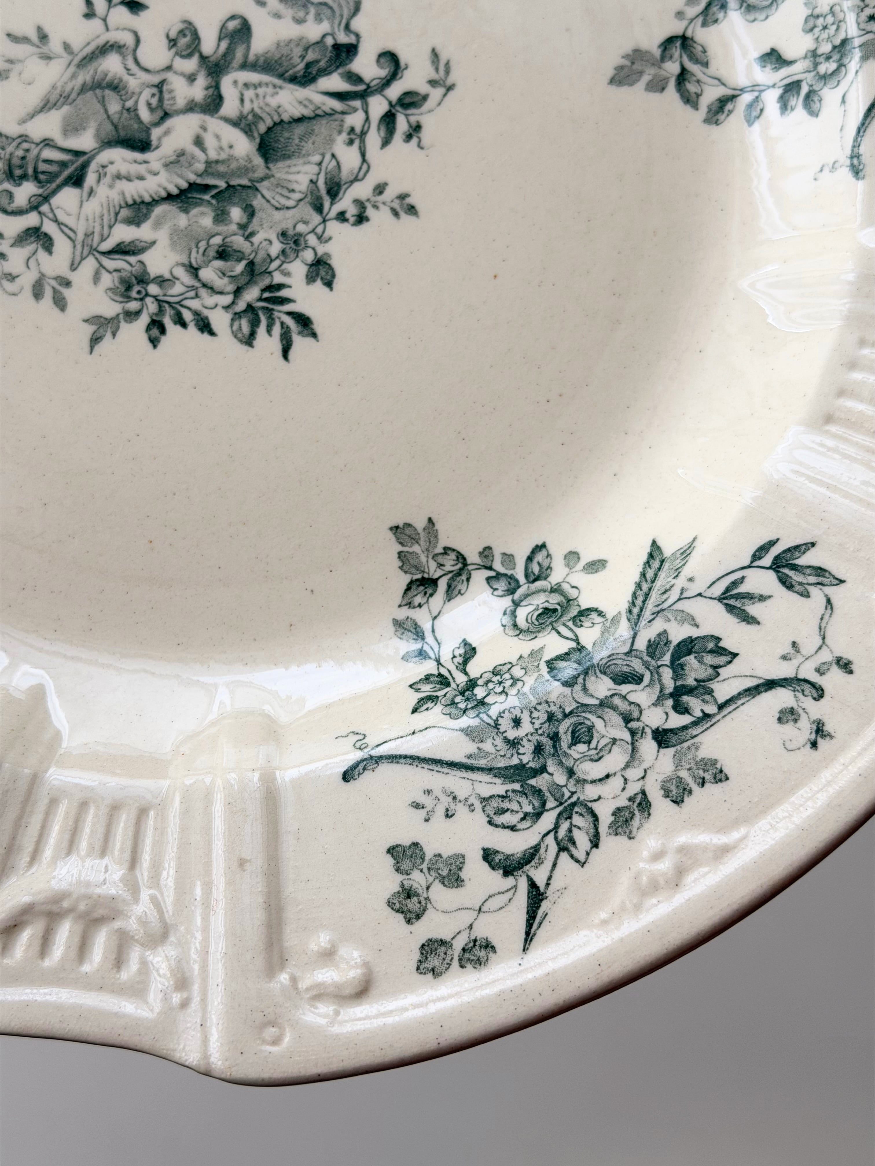Gien ジアン / 鳩と薔薇のレリーフプレート 深皿 c