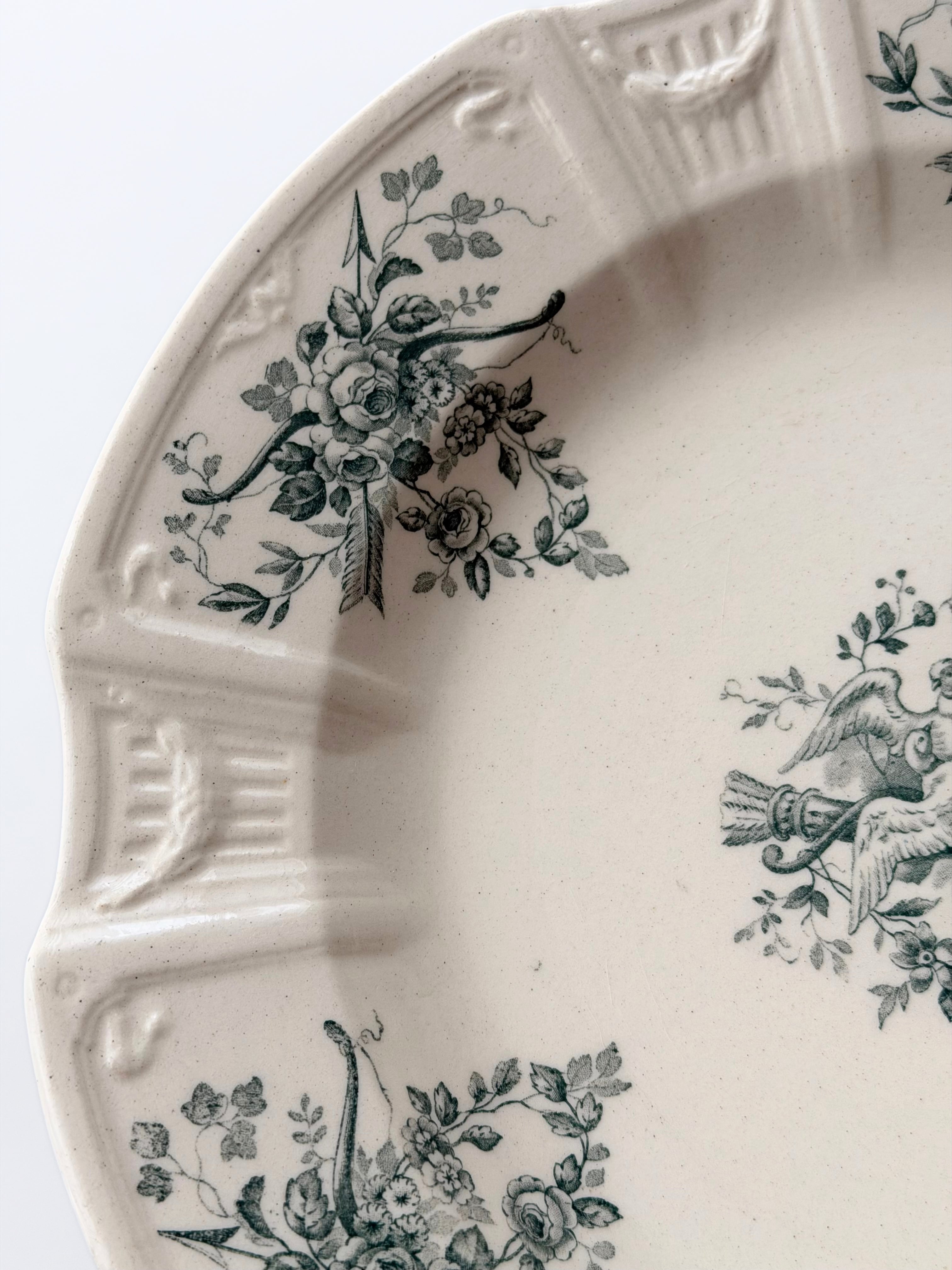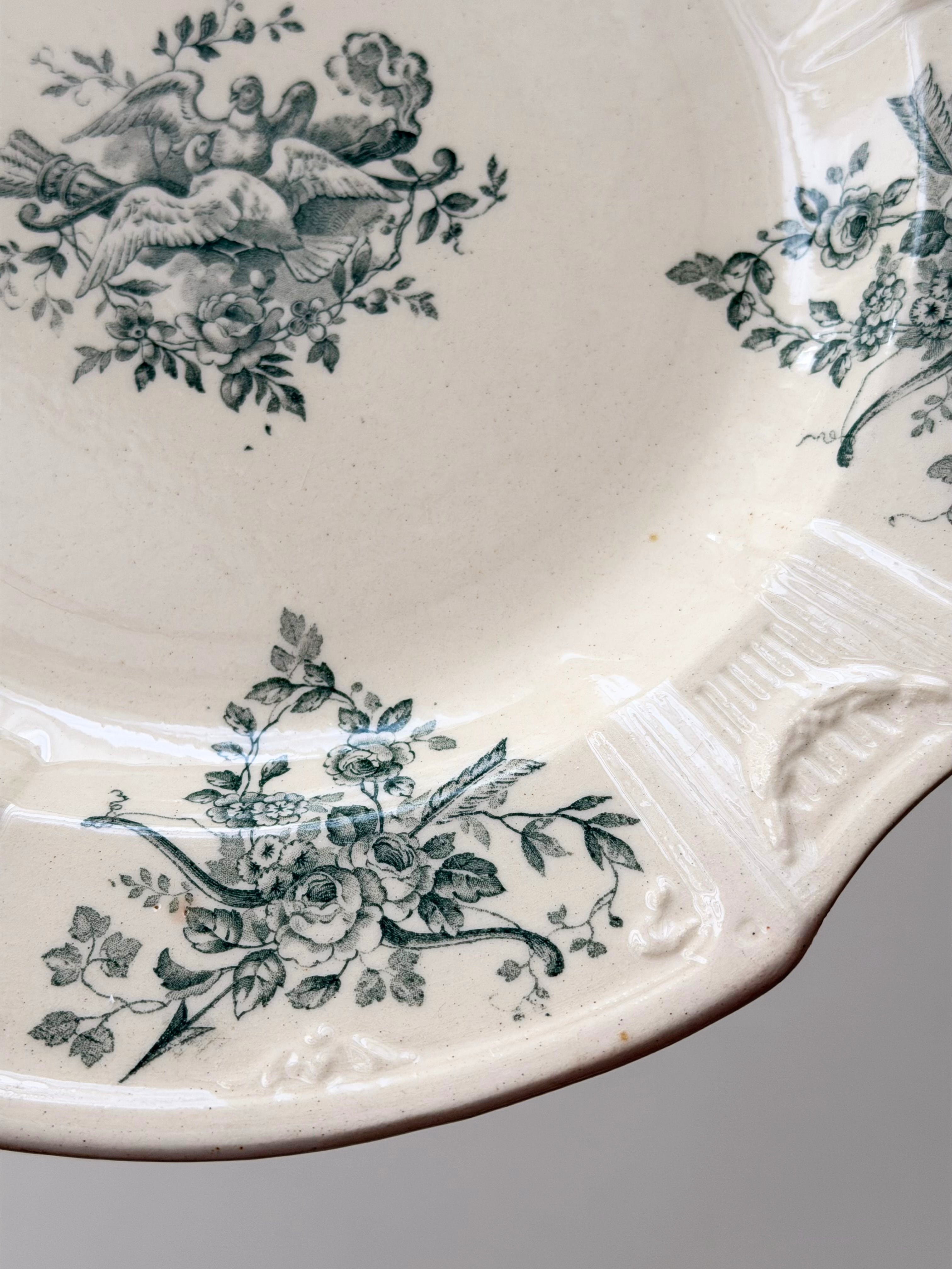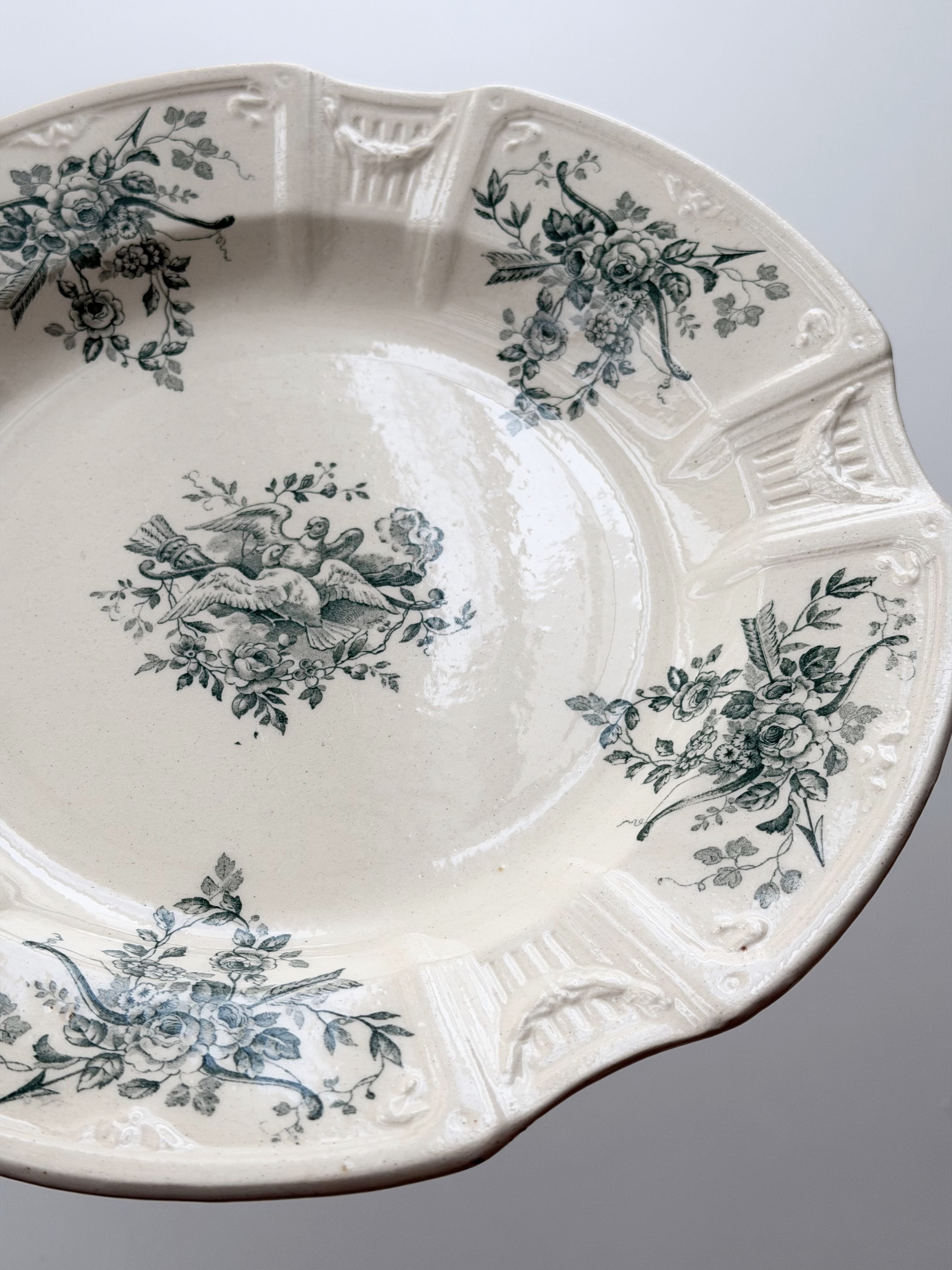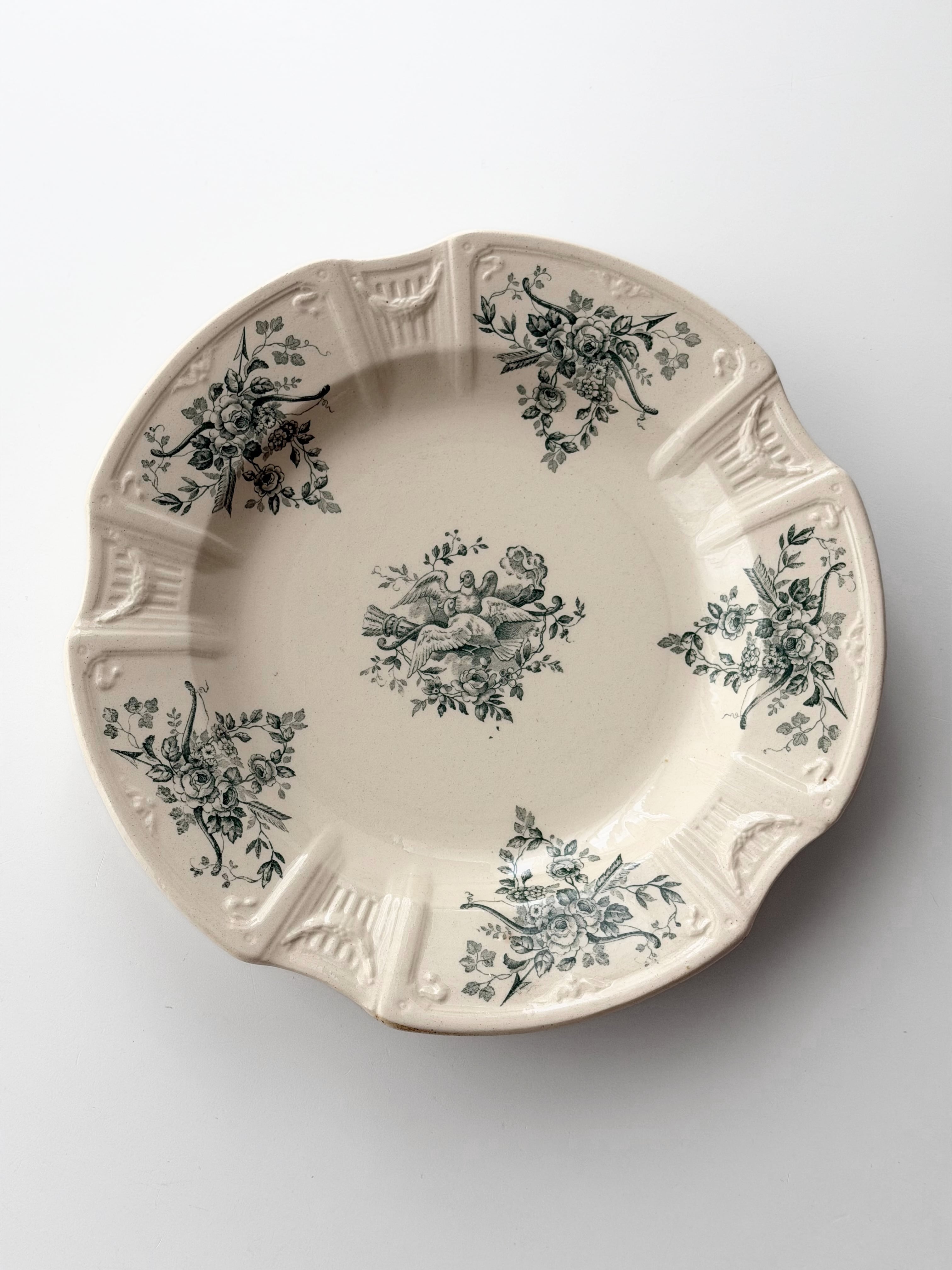 I.Yさま お取り置き品(Gien ジアン / 鳩と薔薇のレリーフプレート 深皿 d)