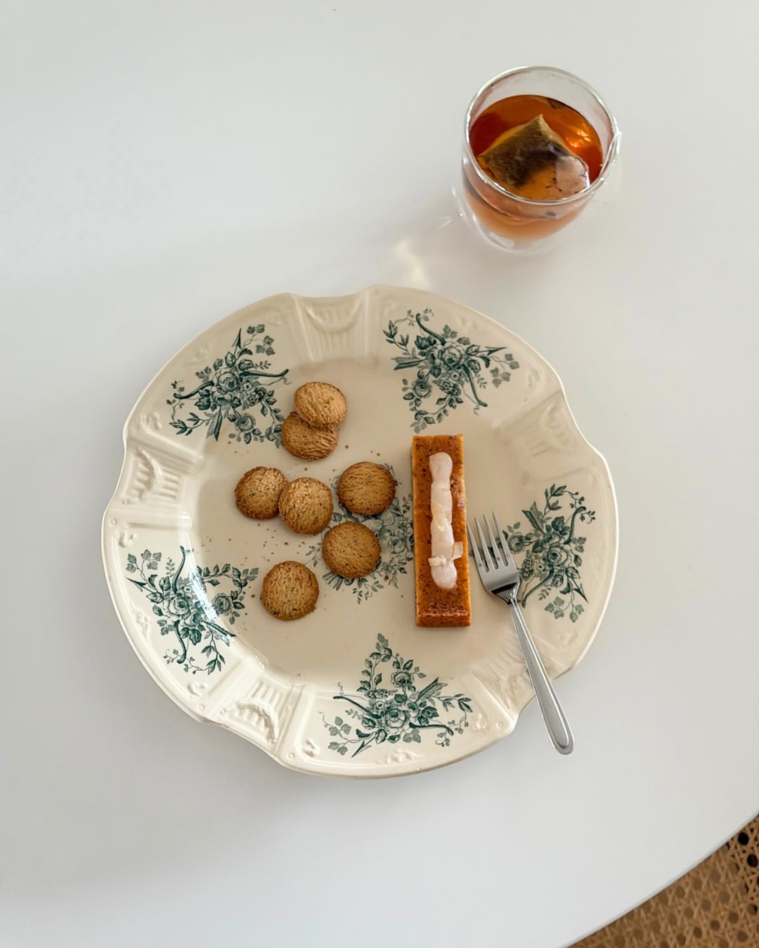 柔らかなクリームカラーに淡いグリーンの色合い。